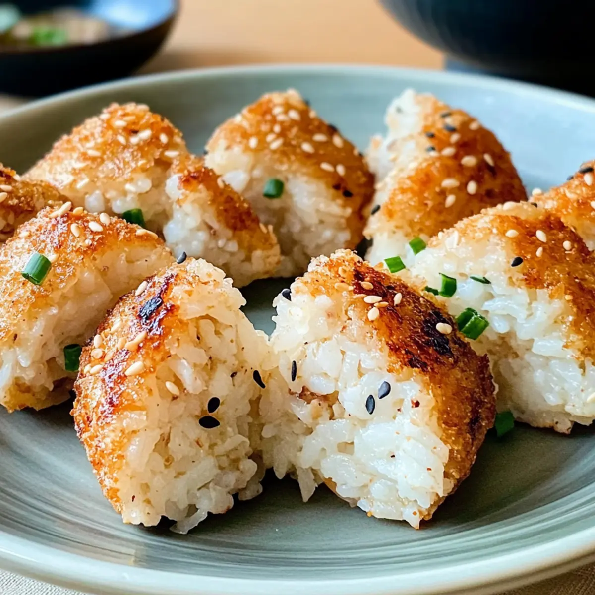 Als ich ein kleines, verstecktes Izakaya in Tokio entdeckte, konnte ich dem verführerischen Duft von gegrillten Reisbällchen nicht widerstehen. Diese klassischen Onigiri sind nicht nur ein Fest für die Sinne, sondern auch die perfekte Grundlage für kreative Füllungen, die jedes Gericht aufwerten. Unsere Version der gegrillten Reisbällchen bietet eine wunderbare Kombination aus knuspriger Außenschicht und fluffigem Inneren – ideal als einfacher Snack oder leichtes Hauptgericht. Mit ihrer unkomplizierten Zubereitung und der Möglichkeit zur individuellen Anpassung sind sie der Hit auf jedem Picknick oder BBQ. Bereit, Ihre Geschmacksknospen mit den köstlichen, vielseitigen gegrillten Reisbällchen zu erfreuen? Warum sind gegrillte Reisbällchen so beliebt? Einfache Zubereitung: Das Rezept ist unkompliziert und erfordert nur grundlegende Kochfähigkeiten, sodass Sie im Handumdrehen loslegen können. Vielseitige Füllungen: Mit Optionen wie Hühnchen, Thunfisch oder Gemüse können Sie ganz nach Ihrem Geschmack variieren. Köstlicher Geschmack: Die Kombination aus umami-reichem Sojasoße und nussigem Sesamöl sorgt für ein geschmackliches Erlebnis, das begeistert. Perfekte Konsistenz: Die knusprige Außenhülle und die fluffige Innenseite machen jeden Bissen zu einem Genuss. Ideal für an jedem Anlass: Ob Picknick, BBQ oder gemütliches Abendessen – diese Snacks kommen immer gut an! Nutzen Sie auch Ihre kreative Freiheit und probieren Sie unsere Ideen für Füllungen und Saucen aus, um noch mehr Abwechslung in Ihre Küche zu bringen. Gegrillte Reisbällchen Zutaten • Die perfekten Zutaten für ein geschmackliches Abenteuer. Für den Reis Kurzkornreis – sorgt für die gewünschte Klebrigkeit, die die Form hält; mittelkörniger Reis kann als Ersatz verwendet werden. Wasser – benötigt zum Kochen des Reises; ist die Hauptquelle für die Feuchtigkeit. Für die Würzung Sojasoße – verleiht einen umami-reichen Geschmack und verbessert die Farbe; eine reduzierte Natriumvariante ist eine gesündere Option. Geröstetes Sesamöl – bringt einen nussigen Geschmack; kann durch pflanzliches Öl ersetzt werden, falls Allergien bestehen. Für die Füllungen Hühnchen (gerieben) – für eine proteinreiche Füllung, die herzhaft und befriedigend ist. Thunfisch – sorgt für eine köstliche, maritime Note. Fein gehacktes Gemüse – für eine gesunde, vegetarische Variante, die vielfältig ist. Diese Zutaten machen die Zubereitung der gegrillten Reisbällchen zu einem einfachen und kreativen Kochprozess, der die ganze Familie begeistert! Schritt-für-Schritt-Anleitung für gegrillte Reisbällchen Step 1: Reis vorbereiten Spülen Sie 1 Tasse Kurzkornreis unter kaltem Wasser, bis das Wasser klar bleibt. Lassen Sie den Reis mit 1 ½ Tassen Wasser für etwa 30 Minuten einweichen, um die perfekte Konsistenz zu erreichen. Dies sorgt dafür, dass die Reisbällchen beim Grillen ihre Form behalten und köstlich klebrig werden. Step 2: Reis kochen Kochen Sie den eingeweichten Reis gemäß den Anweisungen auf der Verpackung, typischerweise etwa 20 Minuten, bis er eine zarte Konsistenz erreicht. Überprüfen Sie nach dem Kochen, ob der Reis weich und weich ist, und lassen Sie ihn einige Minuten abkühlen, damit er nicht zu heiß zum Formen ist. Step 3: Würzen des Reises Lockern Sie den abgekühlten Reis mit einer Gabel auf und geben Sie 2 EL Sojasoße sowie 1 EL geröstetes Sesamöl hinzu. Mischen Sie die Zutaten vorsichtig unter, um eine gleichmäßige Würzung zu erreichen. Der Reis sollte jetzt angenehm duften und eine glänzende Oberfläche haben, bereit für die Füllung. Step 4: Füllungen vorbereiten Während der Reis abkühlt, schneiden Sie Ihre gewünschten Füllungen wie geriebenes Hühnchen, Thunfisch oder fein gehacktes Gemüse klein. Bereiten Sie eine Schüssel mit Wasser vor und halten Sie sie bereit, um die Hände befeuchten zu können. Dies verhindert, dass der Reis an Ihren Händen kleben bleibt, wenn Sie die gegrillten Reisbällchen formen. Step 5: Reisbällchen formen Befeuchten Sie Ihre Hände mit Wasser, nehmen Sie etwa ½ Tasse Reis, drücken Sie ihn flach auf Ihre Handfläche, fügen Sie die vorbereitete Füllung in die Mitte hinzu und formen Sie den Reis vorsichtig zu einer Kugel. Achten Sie darauf, dass die Füllung gut eingekapselt ist, damit beim Grillen der gegrillte Reisball nicht auseinanderfällt. Step 6: Grill vorheizen Heizen Sie den Grill auf mittlerer Temperatur vor, etwa 200 °C. Dies stellt sicher, dass die gegrillten Reisbällchen eine optimale Knusprigkeit erreichen. Warten Sie, bis der Grill vollständig aufgeheizt ist, bevor Sie die geformten Reisbällchen darauf legen. Step 7: Reisbällchen grillen Legen Sie die geformten Reisbällchen vorsichtig auf den Grill. Grillen Sie jede Seite für etwa 3 Minuten, oder bis sie goldbraun und knusprig sind. Beobachten Sie die Reisbällchen genau, um sicherzustellen, dass sie nicht anbrennen und eine gleichmäßige Röstung erhalten. Step 8: Servieren Servieren Sie die gegrillten Reisbällchen sofort, während sie noch heiß sind. Garnieren Sie sie nach Belieben mit zusätzlicher Sojasoße oder gerösteten Sesamsamen für einen zusätzlichen geschmacklichen Kick. Diese köstlichen Snacks sind nun bereit, Ihre Gäste zu begeistern! Expert Tips für gegrillte Reisbällchen Reis gut spülen: Achten Sie darauf, den Reis gründlich zu spülen, bis das Wasser klar bleibt. Das verhindert, dass die gegrillten Reisbällchen zu klebrig werden. Richtige Reisart wählen: Verwenden Sie bestenfalls Kurzkornreis für die perfekte Konsistenz. Mittelkornreis kann als Notlösung dienen, aber die Textur wird nicht ganz dieselbe sein. Hände befeuchten: Befeuchten Sie Ihre Hände mit Wasser, bevor Sie die Reisbällchen formen. Das verhindert, dass der Reis an Ihren Händen kleben bleibt. Grill rechtzeitig vorheizen: Stellen Sie sicher, dass der Grill auf mittlere Temperatur vorgeheizt ist, bevor Sie die Reisbällchen darauflegen. So erh