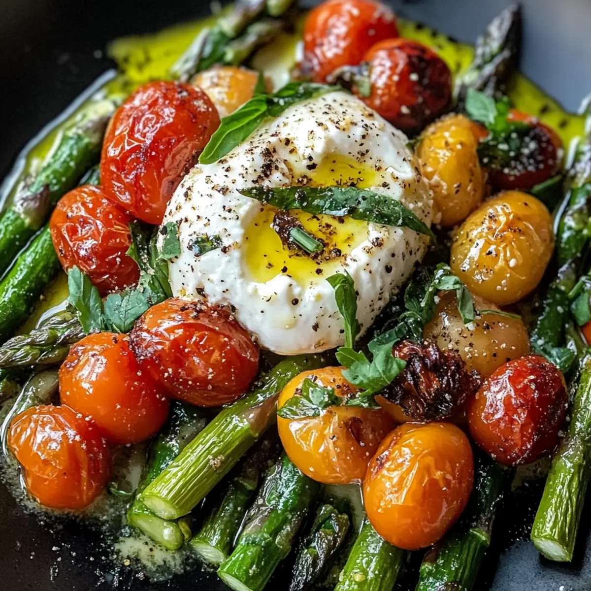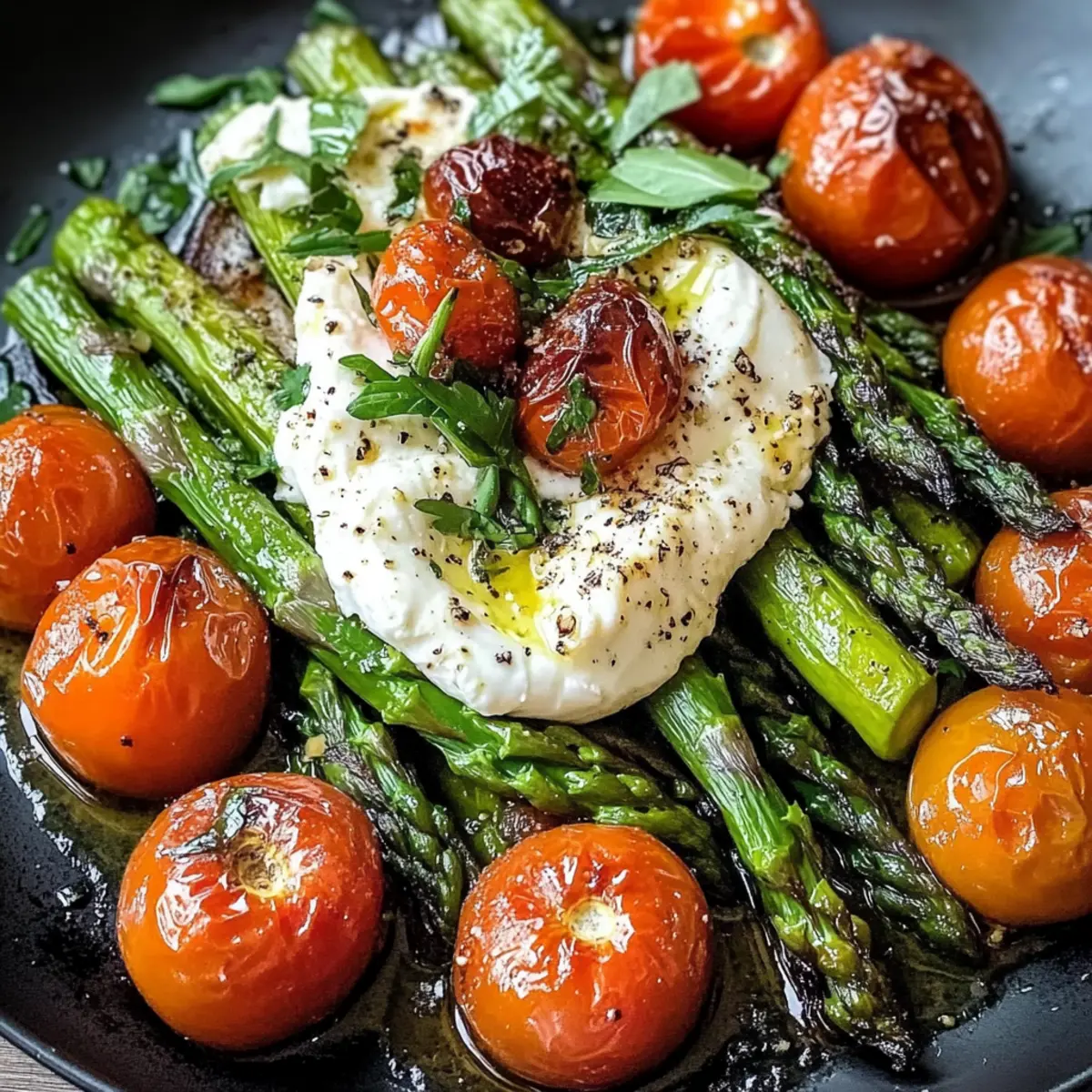 Als ich letztens im Gemüseladen stand, fiel mir der frisch geerntete grüne Spargel direkt ins Auge. Der leuchtende Farbton und der verlockende Duft machten sofort Appetit auf mehr! Gerösteter grüner Spargel mit Burrata und Tomaten ist ein absolutes Muss für jeden, der die Kombination von knackigem Gemüse und cremigem Käse liebt. Dieses Gericht überzeugt nicht nur durch seine einfache Zubereitung – in nur etwa 30 Minuten bringt es eine wahrhaft geschmackliche Explosion auf den Tisch. Zudem ist es unglaublich vielseitig: ob als elegante Vorspeise oder als leichtes Hauptgericht, der Spargel wird zum Star auf deinem Teller. Wollen wir gemeinsam entdecken, wie man diese saisonale Köstlichkeit perfekt zubereitet? Warum ist gegrillter grüner Spargel so beliebt? Einfachheit: Die Zubereitung erfordert nur grundlegende Kochtechniken, sodass du deine Zeit mit den leckeren Aromen genießen kannst. Frische Aromen: Die Kombination aus geröstetem Spargel, cremiger Burrata und süßen Tomaten bringt ein wahres Geschmackserlebnis auf den Tisch. Vielseitigkeit: Dieses Gericht eignet sich nicht nur als Vorspeise, sondern auch als leichtes Hauptgericht – perfekt für jede Gelegenheit! Du kannst es auch wunderbar mit einem Stück frischem Baguette kombinieren, um die Burrata zu genießen. Saisonale Zutaten: Nutze das Beste, was die Saison zu bieten hat, und experimentiere mit verschiedenen Kräutern wie Basilikum, um die Aromen zu variieren. Schnell gemacht: In nur etwa 30 Minuten hast du ein beeindruckendes Gericht, das deine Gäste begeistern wird – ideal für spontane Dinnerpartys! Gegrillter grüner Spargel Zutaten • Für den Spargel • Grüner Spargel – Das Herzstück des Gerichts, das für Frische und knackige Textur sorgt. • Olivenöl – Zum Braten; bringt die Aromen zusammen und verbessert die Röstung. • Salz – Grundgewürz; verstärkt den Geschmack des Spargels. • Pfeffer – Für eine leichte Schärfe, empfehlenswert ist frisch gemahlener schwarzer Pfeffer. • Für die Beilage • Burrata – Cremiger Käse, der dem Gericht Reichtum verleiht. Alternativ kann eine vegane Käsealternative verwendet werden. • Tomaten – Süß und saftig; sie verleihen Farbe und einen herrlichen Kontrast. Unterschiedliche Sorten bieten spannende Geschmacksvariationen. • Frische Kräuter (z. B. Basilikum oder Thymian) – Für das Extra an Aroma und zum Garnieren, um das Gericht abzurunden. Schritt-für-Schritt-Anleitung für Gerösteter Grüner Spargel mit Burrata und Tomaten Step 1: Vorbereitung des Gemüses Wasche den grünen Spargel und die Tomaten gründlich unter kaltem Wasser. Schneide die holzigen Enden des Spargels ab, damit er zart und schmackhaft bleibt. Lege den geschnittenen Spargel zusammen mit den Tomaten auf ein Backblech, um die Zubereitung zu erleichtern. So sind wir bereit für den nächsten Schritt und haben alles parat! Step 2: Rösten des Spargels und der Tomaten Heize den Ofen auf 200 °C vor. Beträufle den Spargel und die Tomaten großzügig mit Olivenöl und würze sie mit Salz und frisch gemahlenem Pfeffer. Achte darauf, dass der Spargel gleichmäßig auf dem Backblech verteilt ist, damit er gleichmäßig rösten kann. Röste das Gemüse für etwa 20 Minuten im vorgeheizten Ofen, bis der Spargel zart und leicht gebräunt ist. Step 3: Anrichten des Gerichts Nachdem der Spargel und die Tomaten aus dem Ofen kommen, lasse sie für einige Minuten abkühlen. Platziere die cremige Burrata vorsichtig auf dem gerösteten Gemüse. Diese Kombination aus geröstetem grünem Spargel und Burrata sollte sich harmonisch verbinden, um ein optisches und geschmackliches Highlight zu schaffen. Step 4: Garnieren und Servieren Gib nach Belieben frische Kräuter wie Basilikum oder Thymian über das Gericht, um den letzten Schliff zu verleihen. Serviere den Gerösteten Grünen Spargel mit Burrata und Tomaten direkt warm und genieße die Aromen, die zusammen ein fantastisches Geschmackserlebnis ergeben. Perfekt als elegante Vorspeise oder leichtes Hauptgericht! Vorbereitung für gerösteten grünen Spargel mit Burrata und Tomaten Gerösteter grüner Spargel mit Burrata und Tomaten lässt sich hervorragend im Voraus vorbereiten, um dir wertvolle Zeit zu sparen! Du kannst das Gemüse (Spargel und Tomaten) bis zu 24 Stunden vor dem Rösten waschen, schneiden und in einem luftdichten Behälter im Kühlschrank aufbewahren. Beim Rösten einfach Olivenöl und Gewürze hinzufügen und für etwa 20 Minuten bei 200 °C backen. Um die Qualität der Burrata zu bewahren, füge diese erst kurz vor dem Servieren hinzu. So bleibt sie schön cremig und sorgt für ein ebenso köstliches Ergebnis wie frisch zubereitet. Genießen Sie dieses geschmackvolle Gericht mit minimalem Aufwand! Expert Tips für Gegrillten Grünen Spargel Gleichmäßiges Verteilen: Achte darauf, den Spargel gleichmäßig auf dem Backblech zu verteilen, damit er optimal geröstet wird. Uneinheitliches Rösten kann zu teils zähem Gemüse führen. Frisches Gemüse: Verwende frischen Spargel und reife Tomaten, um die besten Aromen zu erzielen. Vermeide ältere, geschmacklich schwächere Varianten. Olivenöl richtig dosieren: Zu wenig Olivenöl kann den Spargel trocken erscheinen lassen, während zu viel das Gericht fettig macht. Ein großzügiger, aber kontrollierter Schuss sorgt für die perfekte Röstung. Zubereitungszeit: Behalte den Spargel während des Röstens im Auge. Jeder Ofen ist anders, also überprüfe nach 15 Minuten, ob der Spargel bereits zart und leicht gebräunt ist. Variationen nutzen: Experimentiere mit unterschiedlichen Gemüsesorten und frischen Kräutern, um deinen gegrillten grünen Spargel immer wieder neu zu erfinden und abwechslungsreich zu gestalten. Variationen für gegrillten grünen Spargel Entdecke die kreativen Möglichkeiten, deinen gerösteten grünen Spargel noch schmackhafter zu gestalten und deinen Gaumen zu verwöhnen! Vegan: Ersetze die Burrata durch eine vegane Käsealternative, um das Reze
