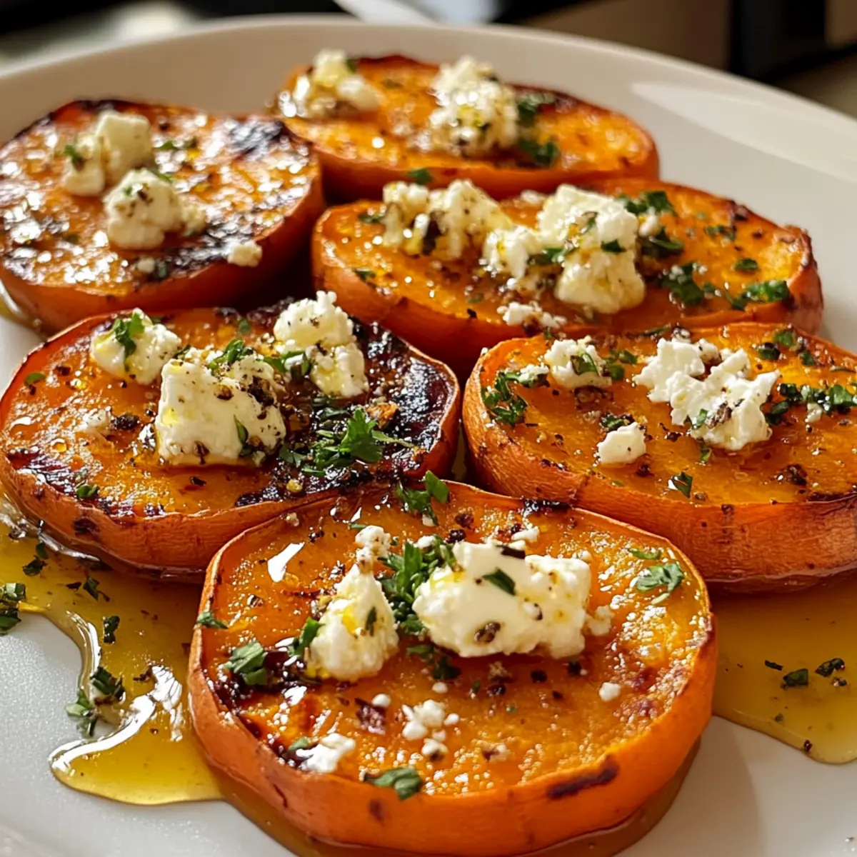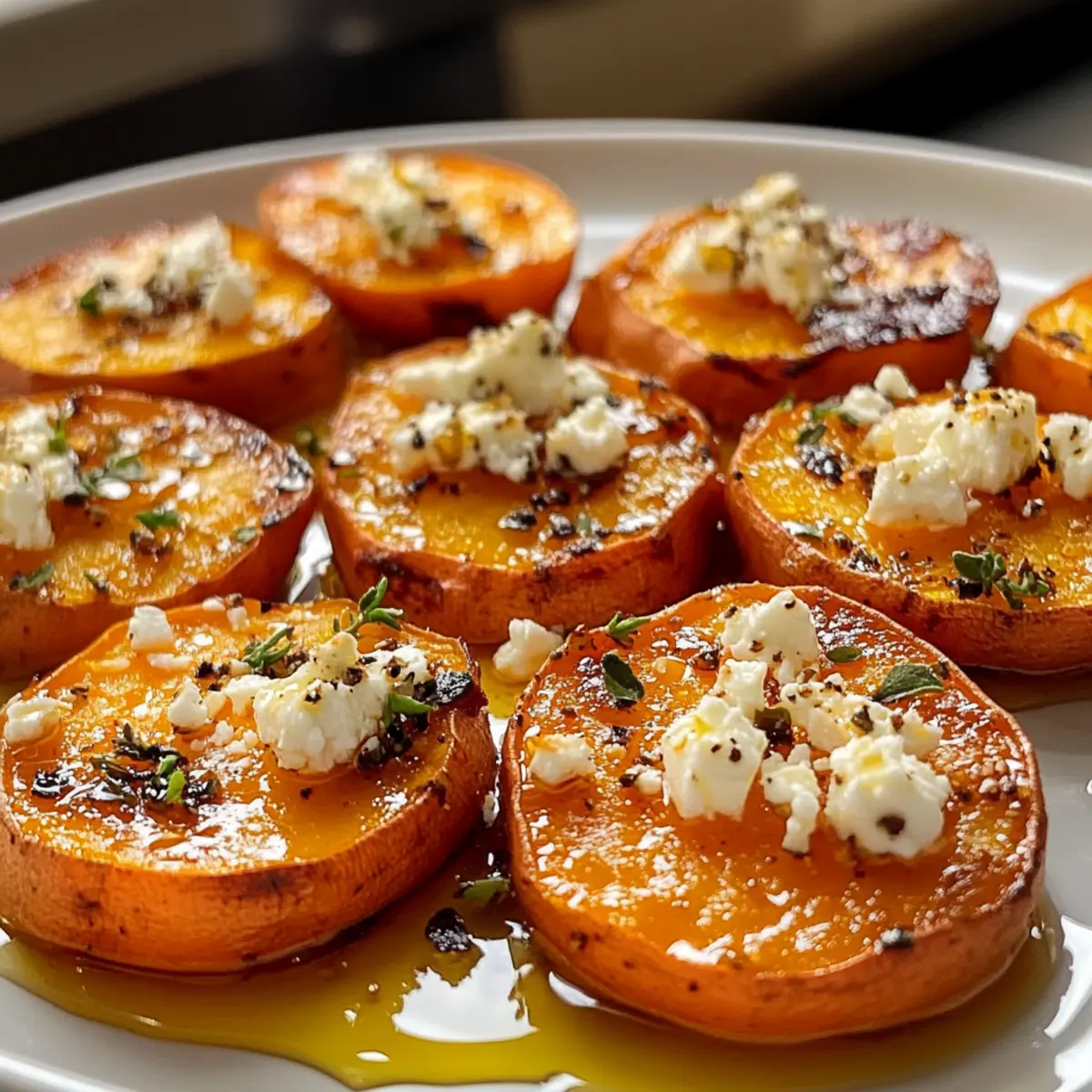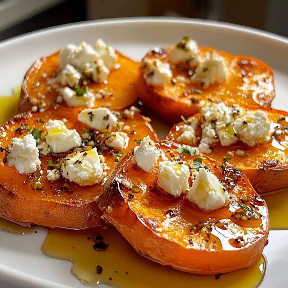 Ein aromatischer Duft von geröstetem Gemüse kann einen Raum erfüllen und die Vorfreude auf eine köstliche Mahlzeit steigern. Die gerösteten Süßkartoffelrunden mit Honig und Feta sind nicht nur ein Fest für die Sinne, sondern auch ein einfaches Rezept, das in weniger als einer Stunde zubereitet werden kann. Diese herzhaften, goldbraunen Scheiben bringen eine wunderbare Balance aus Süße und Salzigkeit auf den Tisch und sind perfekt als Appetizer oder Beilage. Außerdem sind sie vegetarisch und bieten eine gesunde Alternative zum oft schnellen Essen. Ich liebe es, diese mundgerechten Leckerbissen für Freunde zuzubereiten, und sie sind immer ein Hit! Neugierig, wie du sie selbst herstellen kannst? Lass uns gleich loslegen! Warum geröstete Süßkartoffelrunden lieben? Einfachheit pur: Die Zubereitung der gerösteten Süßkartoffelrunden ist kinderleicht und benötigt nur wenige Zutaten. Geschmacksexplosion: Die Kombination aus süßen und herzhaften Aromen schafft ein unvergessliches Geschmackserlebnis, das deine Gäste garantiert begeistert. Vielseitig einsetzbar: Ob als Appetizer oder Beilage, diese Runden passen zu jeder Gelegenheit. Gesunde Wahl: Diese vegetarische Option ist nicht nur lecker, sondern auch besonders gesund – perfekt für alle, die sich bewusst ernähren möchten. Schnell zubereitet: In weniger als einer Stunde bringst du diese köstlichen Snacks auf den Tisch. Entdecke auch dieses einfache Rezept für einen gesunden Dip, der perfekt zu den Süßkartoffeln passt! Geröstete Süßkartoffelrunden Zutaten Für die Süßkartoffeln Süßkartoffeln – Sie bilden die süße und erdige Basis; wähle feste Süßkartoffeln für gleichmäßiges Garen. Olivenöl – Fördert die Knusprigkeit und intensiviert den Geschmack; alternativ kann Avocadoöl für einen anderen Geschmack verwendet werden. Salz – Verstärkt die natürliche Süße und balanciert die Aromen. Schwarzer Pfeffer – Fügt milde Schärfe hinzu; nach Geschmack anpassen. Räucherpaprika – Bringt Smoky-Noten und Tiefe; reguläre Paprika kann auch verwendet werden. Für das Topping Feta-Käse – Bietet eine cremige, pikante Note; unverzichtbar für den einzigartigen Geschmack. Alternativ eignet sich Ziegenkäse gut für einen ähnlichen Geschmack. Honig – Liefert Süße und eine klebrige Finesse; Ahornsirup ist eine vegane Option. Frische Petersilie – Fügt Frische und Farbe hinzu; kann durch Schnittlauch ersetzt werden. Die Gerösteten Süßkartoffelrunden sind eine köstliche Mischung aus Aromen, die perfekt als Snack oder Beilage geeignet sind! Schritt-für-Schritt-Anleitungen für Geröstete Süßkartoffelrunden mit Feta und Honig Step 1: Ofen vorheizen Heize deinen Ofen auf 220°C vor und lege ein Backblech mit Backpapier aus. Diese Vorbereitung gewährleistet, dass die gerösteten Süßkartoffelrunden gleichmäßig und knusprig werden. Das Backpapier verhindert zudem ein Ankleben und erleichtert die Reinigung nach dem Kochen. Step 2: Süßkartoffeln schneiden Schneide die Süßkartoffeln in 1,5 cm dicke Runden. Achte darauf, dass die Scheiben gleichmäßig dick sind, damit sie gleichmäßig garen. Diese goldbraunen Runden sind die Basis für unser köstliches Gericht und sollten appetitlich aussehen, wenn sie bereit sind zum Würzen. Step 3: Süßkartoffeln würzen Gib die geschnittenen Süßkartoffelrunden in eine große Schüssel. Füge Olivenöl, Salz, schwarzen Pfeffer und Räucherpaprika hinzu und vermische alles gut, bis die Runden gleichmäßig mit der Würzmischung überzogen sind. Dies wird den Süßkartoffeln beim Rösten einen herrlichen Geschmack verleihen. Step 4: Anrichten auf dem Backblech Verteile die gewürzten Süßkartoffelrunden gleichmäßig auf dem vorbereiteten Backblech. Achte darauf, dass sie sich nicht überlappen, damit die Runden schön knusprig werden können. Ein gleichmäßiges Verteilen ermöglicht eine ideale Röstung und goldbraune Ränder, die unwiderstehlich sind. Step 5: Rösten im Ofen Schiebe das Backblech in den vorgeheizten Ofen und röste die Süßkartoffelrunden für etwa 25–30 Minuten. Halbe Zeit in etwa, wende die Runden vorsichtig, bis sie zart und goldbraun sind. Achte auf ein knuspriges Äußeres, um das perfekte Aroma zu erzeugen. Step 6: Abkühlen lassen Nehme die gerösteten Süßkartoffelrunden aus dem Ofen und lasse sie leicht abkühlen. Dies fördert nicht nur die Textur, sondern macht sie auch einfacher zu handhaben. Während sie abkühlen, kannst du bereits die restlichen Toppings vorbereiten. Step 7: Anrichten auf einer Servierplatte Platziere die gerösteten Süßkartoffelrunden kunstvoll auf einer Servierplatte. Diese Präsentation macht das Gericht optisch ansprechend und verführt deine Gäste dazu, sofort zuzugreifen. Ein schönes Arrangement steigert das Genusserlebnis. Step 8: Feta-Käse hinzufügen Streue den zerbröckelten Feta-Käse über die warmen Süßkartoffelrunden. Die cremige Konsistenz des Fetas ergänzt die Süße der Runden perfekt und sorgt für ein schmackhaftes Highlight. Sei großzügig mit dem Feta, um den besten Geschmack in jeder Biss zu erleben. Step 9: Honig drizzeln Um das Gericht abzurunden, träufle den Honig gleichmäßig über die Süßkartoffelrunden mit Feta. Dies verleiht den Runden eine süße, klebrige Note, die die Aromen verstärkt. Der Kontrast zwischen dem salzigen Feta und dem süßen Honig ist einfach unwiderstehlich. Step 10: Mit Petersilie garnieren Gib schließlich die frisch gehackte Petersilie über die Süßkartoffelrunden, um ihnen einen zusätzlichen Farbtupfer und Frische zu verleihen. Diese Garnitur ist nicht nur dekorativ, sondern sorgt auch für ein zusätzliches Aroma. Die gerösteten Süßkartoffelrunden sind nun bereit, serviert zu werden! Lagerung und Einfrieren von gerösteten Süßkartoffelrunden Kühlschrank: Bewahre die Reste in einem luftdichten Behälter für bis zu 3 Tage auf, damit die köstlichen Aromen erhalten bleiben und die Konsistenz nicht leidet. Einfrieren: F