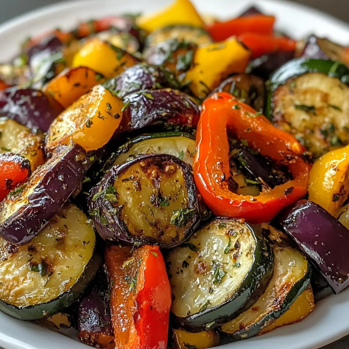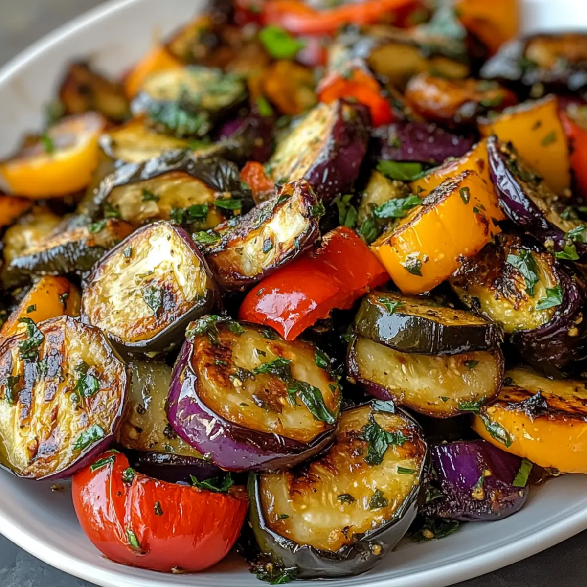 Wenn ich an den letzten Sommer denken, fühle ich sofort die Wärme der Sonne und den frischen Duft von geröstetem Gemüse, das auf dem Grill zubereitet wird. Mein Rezept für Geröstetes mediterranes griechisches Gemüse bringt alle diese Erinnerungen zurück und ist perfekt für jede Gelegenheit. Diese bunte Mischung aus tiefviolettem Auberginen, leuchtend grünem Zucchini und knallroten sowie gelben Paprika stellt nicht nur ein gesundes Side-Dish dar, sondern wird auch zum Wortführer eines geselligen Essens unter Freunden und Familie. Zudem ist es super einfach zuzubereiten und sorgt garantiert für glückliche Gesichter am Tisch. Neugierig, wie du dieses köstliche, vegetarische Gericht zu Hause nachkochen kannst? Lass uns direkt in die Zubereitung eintauchen! Warum wirst du dieses Rezept lieben? Einfachheit in der Zubereitung: Dieses Rezept für Geröstetes mediterranes griechisches Gemüse erfordert keine speziellen Kochkünste und ist in kürzester Zeit zubereitet. Vielfalt der Aromen: Die Kombination aus verschiedenen Gemüsesorten und frischen Kräutern sorgt für eine wunderbare geschmackliche Harmonie. Wunderbare Texturen: Die Kombination aus dem zarten Auberginenfleisch und dem knackigen Zucchini wird selbst die größten Feinschmecker begeistern. Perfektes Beilagen-Gericht: Egal ob zu gegrilltem Fleisch oder als Hauptgericht über Quinoa, dieses Rezept ist äußerst vielseitig. Gesund und nahrhaft: Vollgepackt mit Vitaminen und Antioxidantien, ist dieses Gericht eine großartige, gesunde Wahl für jede Mahlzeit. Geselliges Kochen: Lade Freunde und Familie ein, zusammen zu essen und diesen bunten Genuss zu teilen – es wird garantiert ein Gesprächsstoff sein! Geröstetes mediterranes griechisches Gemüse Zutaten • Bereite dich auf ein geschmackvolles Erlebnis mit diesen einfachen Zutaten vor! Für das Gemüse Aubergine – sorgt für eine zarte, saftige Textur; achte darauf, dass sie frisch ist für optimalen Geschmack. Zucchini – bringt Feuchtigkeit und einen leichten Crunch; du kannst sie auch durch gelbe Zucchini ersetzen, um mehr Farbe ins Spiel zu bringen. Paprika (rot, gelb) – fügt Süße und Farbe hinzu, was das Gericht visuell aufwertet; jede Paprikafarbe ist willkommen, oder verwende sogar Gurken, wenn du kreativ werden möchtest. Zwiebeln – verleiht eine süße, karamellisierte Note; ersetze sie mit Schalotten für einen milderen Geschmack. Für die Zubereitung Olivenöl – hilft beim Rösten und sorgt für eine köstliche Karamellisierung; probiere auch Avocadoöl für eine andere Geschmacksnuance. Knoblauch (optional) – fügt Tiefe und Reichhaltigkeit hinzu; wenn du keinen frischen Knoblauch hast, kannst du auch Knoblauchpulver verwenden. Kräuter (z.B. Oregano, Thymian) – liefern aromatische Noten und ergänzen die mediterranen Aromen; frische Kräuter können die getrockneten Kräuter ersetzen, aber sei sparsam damit. Lass dich von diesem Rezept für Geröstetes mediterranes griechisches Gemüse inspirieren und genieße die gesunde, köstliche Vielfalt! Schritt-für-Schritt-Anleitung für Geröstetes mediterranes griechisches Gemüse Step 1: Ofen vorheizen Heize deinen Ofen auf 220°C vor, um die besten Röstresultate zu erzielen. Während der Ofen aufheizt, kannst du die frischen Zutaten für das Geröstete mediterrane griechische Gemüse bereitstellen. Ein gut vorgeheizter Ofen sorgt dafür, dass das Gemüse gleichmäßig bräunt und die Aromen intensiviert werden. Step 2: Gemüse vorbereiten Schneide die Aubergine, Zucchini, Paprika und Zwiebeln in gleichmäßige Stücke, etwa 2-3 cm groß. Achte darauf, die Stücke in einer einheitlichen Größe zu halten, damit sie gleichmäßig garen. Die bunte Vielfalt der Gemüse wird nicht nur das Auge erfreuen, sondern auch den Geschmack deines Gerichts wunderbar bereichern. Step 3: Mit Olivenöl vermengen Gib die geschnittenen Gemüse in eine große Schüssel und füge das Olivenöl, den gehackten Knoblauch und die gewünschten Kräuter hinzu. Mische alles gut durch, bis das Gemüse gleichmäßig mit dem Öl und den Gewürzen überzogen ist. Diese aromatische Mischung wird beim Rösten eine köstliche Karamellisierung hervorrufen. Step 4: Auf dem Backblech anordnen Verteile das vorbereitete Gemüse gleichmäßig auf einem Backblech, das mit Backpapier ausgelegt ist. Sorge dafür, dass die Stücke nicht übereinanderliegen, damit sie gleichmäßig garen und schön bräunen. Eine uniforme Anordnung ist der Schlüssel für perfektes Geröstetes mediterranes griechisches Gemüse. Step 5: Rösten Schiebe das Backblech in den vorgeheizten Ofen und röste das Gemüse für etwa 30 Minuten. Nach der Hälfte der Garzeit solltest du das Gemüse einmal durchmischen, damit es gleichmäßig bräunt und die Süße karamellisiert. Achte darauf, dass das Gemüse weich und leicht angebraten aussieht. Step 6: Servieren Nimm das Geröstete mediterrane griechische Gemüse aus dem Ofen, lasse es kurz abkühlen und serviere es warm. Es eignet sich perfekt als Beilage zu gegrilltem Fleisch oder über Reis und Quinoa. Lass die Farben und Aromen auf deinem Teller zur Geltung kommen und genieße diese gesunde und köstliche Speise! Tipps für das beste geröstete mediterrane griechische Gemüse Gleichmäßige Stücke: Achte darauf, die Gemüsestücke gleichmäßig zu schneiden. Dadurch garen sie gleichmäßig und vermeiden halbgarte oder verbrannte Teile. Röstdauer beobachten: Kontrolliere das Gemüse nach 20 Minuten. Es sollte zart und leicht caramelisiert sein, um den besten Geschmack zu erzielen. Würzen nach Gefühl: Probiere während des Kochens. Die richtige Gewürzmischung macht das geröstete mediterrane griechische Gemüse zu einem besonderen Erlebnis. Platz auf dem Blech: Überlade das Backblech nicht. Genug Platz zwischen den Gemüsestücken sorgt für eine gleichmäßige Röstung und fördert die Aromen. Kreativität beim Gemüse: Scheue dich nicht, mit verschiedenen Gemüsesorten zu experimentieren! Zucchini, Aub