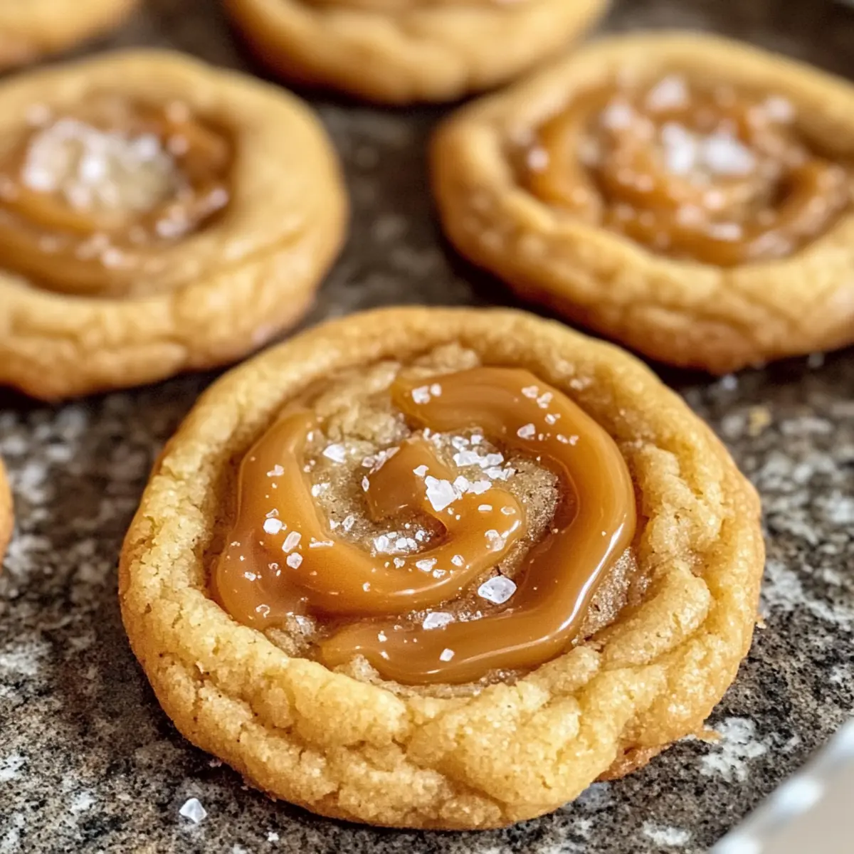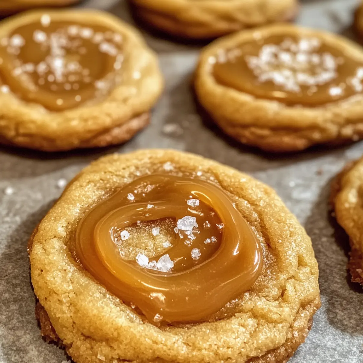 Gerade als ich die Tür zu meiner Küche öffnete, strömte der süße Duft von frisch gebackenem Karamell direkt in meine Nase und ließ mir das Wasser im Mund zusammenlaufen. Diese gesalzenen Karamellkekse sind nicht nur unglaublich einfach zuzubereiten, sondern bringen auch eine köstliche Kombination aus süßem und salzigem Genuss, die selbst unsere besten Bäcker ins Staunen versetzt. In weniger als vierzig Minuten verwandeln sich einfache Vorratszutaten in eine himmlische Leckerei, die perfekt für jede Gelegenheit ist, sei es ein gemütlicher Nachmittag oder eine festliche Feier. Du wirst den unwiderstehlichen, buttrigen Geschmack und die zarte Textur lieben – und ich kann dir versichern, dass sie jedes Mal gut ankommen! Bist du bereit, dich von der Magie dieser Kekse verführen zu lassen? Warum sind diese Kekse unwiderstehlich? Einfachheit: Die Zubereitung ist kinderleicht und benötigt nur grundlegende Backkünste, sodass selbst Anfänger schnell Erfolgserlebnisse haben. Reicher Geschmack: Die harmonische Kombination aus süßem Karamell und einem Hauch von Meersalz sorgt für ein Geschmackserlebnis, das dich begeistern wird. Vielseitigkeit: Egal ob du Gäste bewirten oder einfach selbst naschen möchtest, diese Kekse sind für jede Gelegenheit ideal. Probiere sie warm mit einer Kugel Vanilleeis oder zu einer Tasse Kaffee aus! Anpassungsfähigkeit: Du kannst die Rezeptur nach deinem Geschmack variieren, z.B. glutenfrei mit einer 1:1 Mehlalternative oder vegan mit Pflanzenmargarine. Zeitersparnis: In weniger als 40 Minuten sind diese Köstlichkeiten bereit! Perfekt für spontane Backaktionen. Zutaten für gesalzene Karamellkekse • Verwende nur frische, qualitativ hochwertige Zutaten für das beste Ergebnis. Für den Teig Allzweckmehl – sorgt für die Struktur; achte darauf, es richtig abzumessen. Maisstärke – verleiht den Keksen die nötige Zartheit und verhindert übermäßiges Auseinanderlaufen. Backpulver – hilft den Keksen leicht aufzugehen. Feines Meersalz – hebt den Geschmack hervor; etwas mehr für das Topping verstärkt das süß-salzige Erlebnis. Ungesalzene Butter – die Basis des Keksteigs, sorgt für reichen Geschmack und Feuchtigkeit; achte darauf, dass sie Zimmertemperatur hat. Hellbrauner Zucker – bringt Süße und einen Hauch Karamellgeschmack; kann durch dunkelbraunen Zucker ersetzt werden, wenn du einen intensiveren Geschmack möchtest. Kristallzucker – sorgt für die Süße und trägt zur Textur der Kekse bei. Großes Ei – bindet die Zutaten und trägt zur Lockerung bei; sollte Zimmertemperatur haben. Reiner Vanilleextrakt – verstärkt den Geschmack und verleiht den Keksen eine warme Note. Für das Karamell Schlagsahne – sorgt für die Cremigkeit der Karamellsoße; verwende eine hochwertige Variante. Zusätzliche ungesalzene Butter – trägt zur seidigen Textur und zum Geschmack des Karamells bei. Hellbrauner Zucker (für Karamell) – sorgt für Süße und Karamellnoten. Flaky Sea Salt (für Karamell und Garnitur) – fügt Knusprigkeit hinzu und ergänzt die Süße der Kekse. Erlebe die köstliche Verschmelzung von Aromen mit diesen gesalzenen Karamellkeksen, die sowohl einfach zuzubereiten sind als auch beeindruckend schmecken! Schritt-für-Schritt-Anleitung für gesalzene Karamellkekse Step 1: Karamell zubereiten In einem mittelgroßen Topf die 60 g ungesalzene Butter bei mittlerer Hitze schmelzen. Dann 70 g hellbraunen Zucker hinzufügen und gut umrühren. Gießen Sie 120 ml Schlagsahne hinein und rühren Sie kräftig, bis alles gut vermischt ist. Lassen Sie die Mischung für etwa 5–7 Minuten köcheln, bis sie dicklich wird. Zum Schluss ¼ Teelöffel feines Meersalz einrühren und die Karamellsoße leicht abkühlen lassen. Step 2: Keksteig herstellen In einer großen Rührschüssel 115 g ungesalzene Butter, 70 g hellbraunen Zucker und 50 g Kristallzucker cremig schlagen, bis die Mischung leicht und luftig ist (ca. 3-5 Minuten). Fügen Sie ein großes Ei und 1 Teelöffel reinen Vanilleextrakt hinzu und schlagen Sie weiter, bis alles gut vermischt ist. Dieser Schritt sorgt dafür, dass die gesalzenen Karamellkekse schön buttrig schmecken. Step 3: Trockene Zutaten kombinieren In einer separaten Schüssel 180 g Allzweckmehl, 1 Teelöffel Backpulver, 1 Teelöffel Maisstärke und eine Prise feines Meersalz gut vermischen. Nachdem die trockenen Zutaten gut kombiniert sind, fügen Sie sie langsam zur vorherigen Mischung hinzu. Mischen Sie alles vorsichtig, bis der Teig gerade so zusammenkommt. Vermeiden Sie ein Übermixen, um zarte Kekse zu gewährleisten. Step 4: Karamell einarbeiten Nehmen Sie die leicht abgekühlte Karamellsoße und falten Sie sie vorsichtig unter den Keksteig. Stellen Sie sicher, dass das Karamell gleichmäßig verteilt ist, aber übertreiben Sie es nicht. Dies wird dazu führen, dass die gesalzenen Karamellkekse einen köstlichen, überraschenenden Karamellkern haben. Step 5: Backen Heizen Sie den Ofen auf 175 °C vor und legen Sie ein Backblech mit Backpapier aus. Verwenden Sie einen Esslöffel, um kleine Portionen des Teigs auf das Backblech zu setzen; lassen Sie ausreichend Platz zwischen den Keksen, da sie beim Backen auseinanderlaufen. Bestreuen Sie die Kekse leicht mit zusätzlichem Meersalz und backen Sie sie für 10–12 Minuten, bis die Ränder fest sind und die Mitte noch weich aussieht. Step 6: Abkühlen lassen Nach dem Backen die Kekse für 5 Minuten auf dem Blech ruhen lassen, damit sie fester werden. Anschließend vorsichtig auf ein Kuchengitter legen, um vollständig abzukühlen. Die gesalzenen Karamellkekse sollten weich und zäh sein, mit einem wunderbar glänzenden Karamell-Touch. Meal Prep für Gesalzene Karamellkekse Die gesalzenen Karamellkekse sind perfekt für die Vorbereitung im Voraus! Du kannst die Karamellsoße bis zu 3 Tage im Voraus zubereiten und im Kühlschrank aufbewahren, um den köstlichen, klebrigen Kern zu bewahren. Außerdem kannst du den Keksteig bis zu 24 Stunden im Voraus vo
