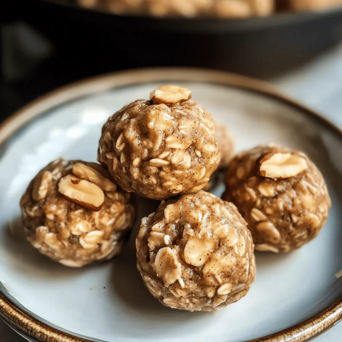 Gerade als ich in der Küche stand und den Duft von frisch gebackenem Apfelkuchen in der Luft wahrnahm, kam mir eine Idee: Warum nicht diesen köstlichen Geschmack in eine gesunde, nahrhafte Snack-Option verwandeln? So entstand das Rezept für die gesunden Apfelkuchen-Proteinbällchen – ein perfekter Begleiter für alle, die eine gesunde Ernährung schätzen, aber keinen Kompromiss bei Genuss eingehen wollen. Diese no-bake Proteinbällchen sind nicht nur blitzschnell zubereitet, sondern auch glutenfrei und liefern dir die nötige Kraft für lange Tage oder nach dem Training. Mit einer unwiderstehlichen Mischung aus Zimt, knackigen Walnüssen und einem Hauch von Apfelkuchen-Geschmack sind sie der ideale Snack für zwischendurch. Bist du bereit, diesen gesunden Genuss auszuprobieren? Warum werden diese Proteinbällchen dein Lieblingssnack? Gesundheitlich wertvoll: Diese Proteinbällchen sind nicht nur köstlich, sondern auch nahrhaft. Reich an Nährstoffen dank der Kombination aus Hafer, Nüssen und proteinreichem Pulver sorgen sie für eine langanhaltende Energiequelle. Einfache Zubereitung: In nur 10 Minuten sind sie ohne Backen fertig – ideal für hektische Tage oder wenn der kleine Hunger ruft. Köstlicher Geschmack: Die Mischung aus Zimt und getrockneten Äpfeln bietet den unverwechselbaren Geschmack von Apfelkuchen, ohne das schlechte Gewissen. Vielseitigkeit: Passe die Zutaten nach deinem Geschmack an, zum Beispiel mit verschiedenen Nussbuttern oder getrockneten Früchten. Perfekt für unterwegs: Ob im Büro, beim Sport oder als Snack für die Kinder – diese Proteinbällchen sind jederzeit ein fröhlicher Begleiter. Immer ein Hit: Sie sind so lecker, dass deine Familie nicht genug davon bekommen kann! Probiere sie zusammen mit einem Erdbeer Spinat Salat oder genieße sie nach dem Training, als perfekte Ergänzung. Gesunde Apfelkuchen Proteinbällchen Zutaten • Entdecke, wie einfach es ist, diese köstlichen no-bake Proteinbällchen zuzubereiten! Für die Mischung Haferflocken – sorgen für die nötige Struktur und bieten einen köstlichen Biss; benutze zertifizierte glutenfreie Haferflocken für eine glutenfreie Variante. Protein-Pulver – erhöht den Proteingehalt und macht den Snack sättigender; du kannst es durch 2 EL mehr Haferflocken und etwas mehr Nussbutter ersetzen. Getrocknete Äpfel – verleihen natürliche Süße und den unverwechselbaren Apfelgeschmack; frische Äpfel sind aufgrund der Feuchtigkeit nicht empfehlenswert. Gehackte Walnüsse – geben zusätzlichen Crunch und gesunde Fette; sie können durch andere Nüsse ersetzt oder ganz weggelassen werden, wenn gewünscht. Zimt – bringt einen warmen Gewürzgeschmack; passe die Menge nach deinem Geschmack an. Muskatnuss – verstärkt die Geschmacksnuancen; kann weggelassen werden, wenn es nicht gewünscht wird. Salz – balanciert die Süße; ein kleiner Hauch davon reicht aus, um die Aromen nicht zu überladen. Mandelbutter – bindet die Zutaten und sorgt für eine cremige Textur; du kannst sie durch eine andere Nuss- oder Samenbutter ersetzen, wenn nötig. Ahornsirup – sorgt für natürliche Süße und Feuchtigkeit; Honig oder Agavensirup können als Alternativen verwendet werden. Apfelmus – hält die Proteinbällchen schön saftig; optional, je nach Konsistenz der Mischung anpassen. Step-by-Step Instructions for Gesunde Apfelkuchen Proteinbällchen Step 1: Mischung vorbereiten In einer großen Schüssel die Haferflocken, das Protein-Pulver, die gehackten getrockneten Äpfel, die gehackten Walnüsse, den Zimt, die Muskatnuss und das Salz gründlich vermengen. Achte darauf, dass alles gut verteilt ist, um ein harmonisches Geschmackserlebnis in deinen gesunden Apfelkuchen Proteinbällchen zu gewährleisten. Diese Mischung ist die Grundlage für deinen Snack, der gesund und lecker ist. Step 2: Feuchte Zutaten hinzufügen Füge nun die Mandelbutter, den Ahornsirup und 1 Esslöffel Apfelmus zu der trockenen Mischung hinzu. Verwende einen Spatel, um alle Zutaten gründlich zu vermengen, bis sie gleichmäßig kombiniert sind. Sollte die Mischung zu trocken erscheinen, gib nach Bedarf noch etwas mehr Apfelmus hinzu, um die gewünschte Konsistenz zu erreichen. Step 3: Formen der Bällchen Nehme mit den Händen oder einem Keksausstecher kleine Portionen der Mischung und forme sie zu etwa 2,5 cm großen Bällchen. Achte darauf, dass sie eine gleichmäßige Größe haben, damit sie später gleichmäßig fest werden. Diese gesunden Apfelkuchen Proteinbällchen sind einfach zu erstellen und der Prozess macht Spaß! Step 4: Kühlen für den perfekten Biss Lege die geformten Bällchen auf ein mit Backpapier belegtes Blech und stelle es für 15–30 Minuten in den Kühlschrank. Dies ermöglicht es den Bällchen, fest zu werden und die Aromen intensiv miteinander zu verbinden. Während sie kühlen, kannst du dich auf die bevorstehenden Genussmomente freuen. Step 5: Genießen oder aufbewahren Nach dem Kühlen kannst du die gesunden Apfelkuchen Proteinbällchen sofort genießen oder sie in einem luftdichten Behälter im Kühlschrank für bis zu einer Woche aufbewahren. Diese nahrhaften Snacks sind perfekt für unterwegs oder als schnelle Energiequelle nach dem Training. Was serviert man zu gesunden Apfelkuchen Proteinbällchen? Genieße diese köstlichen Bällchen als Teil eines ausgewogenen Snacks, der Freude und Energie kombiniert. Frischer Obstsalat: Bietet eine erfrischende und fruchtige Note, die die Aromen der Proteinbällchen wunderbar ergänzt. Eine Mischung aus Äpfeln, Beeren und einer Zitrusnote bringt Farbe und Geschmack auf deinen Teller. Griechischer Joghurt: Cremig und proteinreich, sorgt er für einen himmlischen Kontrast dazu. Ob pur oder mit Honig verfeinert, ist er die perfekte Ergänzung, um deinen Snack abzurunden. Nussmilch-Shake: Ein nährstoffreicher Drink, der die Aromen der Bällchen verstärkt. Bereite einen Shake mit Mandeldrink und einer Prise Zimt zu, um einen köstlichen Effekt zu erziele