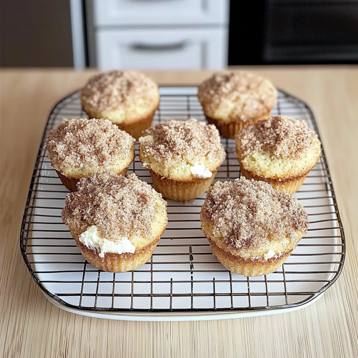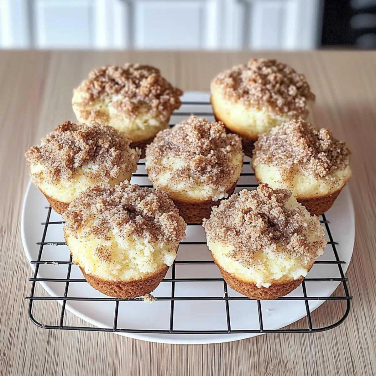 Wenn ich an die perfekte Begleitung zu meinem Morgenkaffee denke, schweben mir sofort die Bilder von diesen unglaublich fluffigen glutenfreien Kaffee-Kuchen-Muffins vor. Diese kleinen Gaumenfreuden sind nicht nur ein Genuss für den Gaumen, sondern auch eine himmlische Lösung für alle, die auf Gluten verzichten möchten. Mit einer cremigen Schicht aus Frischkäse und einem knusprigen Zimtcrumbletopping bieten sie das ideale Gleichgewicht zwischen süß und würzig. Ganz gleich, ob als schnelles Frühstück oder als köstlicher Snack am Nachmittag, diese Muffins sind ein wahrer Publikumsliebling und lassen sich im Handumdrehen zubereiten. Hast du schon Lust, deine Küche in eine kleine Bäckerei zu verwandeln? Warum sind diese Muffins so besonders? Fluffiger Genuss: Diese glutenfreien Kaffee-Kuchen-Muffins überzeugen mit ihrer leichten, luftigen Textur, die jeden Biss zu einem Erlebnis macht. Vielfältige Anpassungsmöglichkeiten: Du kannst die Muffins mit verschiedenen Früchten oder Gewürzen variieren, was sie perfekt für jede Gelegenheit macht. Rasche Zubereitung: Mit minimalem Aufwand sind sie schnell gebacken und eignen sich hervorragend für unerwartete Gäste oder ein schnelles Frühstück. Kombination von Aromen: Die cremige Frischkäsefüllung und der knusprige Zimtcrumble sorgen für ein geschmackliches Erlebnis, das glücklich macht. Aufmerksamkeitsfänger: Ob zum Brunch oder als Nachmittagskalorienstrohhalm, diese Muffins werden sicher alle begeistern! Probiere auch meinen zart geschmortem Hähnchen mit cremigem Spinat oder ein cremiges thailändisches Kokosnuss-Garnelen-Curry für köstliche Ergänzungen! Zutaten für glutenfreie Muffins • Hier sind die notwendigen Zutaten für deinen glutenfreien Kaffee-Kuchen. Für den Teig: Eier – sorgen für Struktur und Feuchtigkeit. Empfehlung: Mit einem Leinsamen-Ei für eine vegane Option ersetzen. Brauner Zucker – fügt Tiefe im Geschmack und Feuchtigkeit hinzu. Alternative: Kokoszucker für einen niedrigeren glykämischen Index. Kristallzucker – süßt die Muffins. Tipp: Die Menge für einen geringeren Zuckergehalt reduzieren. Griechischer Joghurt – verbessert die Feuchtigkeit und verleiht Cremigkeit. Ersatz: Sauerrahm oder pflanzlicher Joghurt. Avocadoöl oder Olivenöl – sorgt für Zartheit. Verwende ein neutrales Öl, je nach Geschmack. Geschmolzene Butter – trägt zum Geschmack und zur Fülle bei. Alternative: Vegane Butter für die milchfreie Version verwenden. Milch – sorgt für Feuchtigkeit. Ersatz: Mandelmilch oder andere pflanzliche Milch für die milchfreie Option. Vanilleextrakt – verstärkt den Gesamtgeschmack. Tipp: Verwende reinen Vanilleextrakt für den besten Geschmack. Bob’s Red Mill 1:1 Glutenfreie Mehlmischung – dient als Basis für die Muffins. Wichtig: Sicherstellen, dass die Mehlmischung Xanthan-Gummi enthält. Backnatron – wirkt als Treibmittel. Überprüfe die Frische für die besten Ergebnisse. Backpulver – ein weiteres Treibmittel für eine perfekte Auffaltung. Überprüfen, dass es glutenfrei und aktiv ist. Salz – gleicht die Süße aus und verstärkt den Geschmack. Hier sind keine Substitutionen nötig. Muskatnuss – fügt Wärme zum Geschmacksprofil hinzu. Optional: Weglassen, wenn nicht verfügbar. Ceylon-Zimt – sorgt für einen süßen und feinen Zimtgeschmack. Ersatz: Normaler Zimt, falls Ceylon nicht verfügbar ist. Frischkäse – fügt eine reichhaltige, cremige Schicht hinzu. Ersatz: Pflanzlicher Frischkäse für die milchfreie Option. Zusätzliches Ei für die Frischkäse-Schicht – bindet und sorgt für Feuchtigkeit in der Füllung. Optional: In der milchfreien Version weglassen und eine pflanzliche Alternative verwenden. Zusätzlicher brauner Zucker für das Crumble-Topping – süßt und verbessert die Textur des Belags. Alternative Süßstoffe bei Bedarf verwenden. Zimt für das Crumble – Gewürz zur Ergänzung der Muffins. Kann je nach Geschmack mit anderen Gewürzen gemischt werden. Butter für das Crumble – bindet die trockenen Zutaten für eine krümelige Textur. Verwende vegane Butter, falls milchfrei. Bereite dich darauf vor, die köstlichen glutenfreien Kaffee-Kuchen-Muffins in deiner Küche zu zaubern! Schritt-für-Schritt-Anleitung für Glutenfreier Kaffee-Kuchen Step 1: Ofen vorheizen Heize deinen Ofen auf 180 °C vor und bereite ein Muffinblech mit 6 großen Muffinförmchen vor. Achte darauf, dass die Förmchen gleichmäßig verteilt sind, um eine optimale Wärmeverteilung beim Backen zu gewährleisten. Step 2: Feuchte Zutaten kombinieren Gib in eine Küchenmaschine das Ei, die beiden Zuckersorten, den griechischen Joghurt, das Avocadoöl, die geschmolzene Butter, die Milch und den Vanilleextrakt. Mische alles auf mittlerer Stufe, bis die Masse gut vermengt und leicht schaumig ist. Dies sorgt für eine schöne, luftige Basis für deinen glutenfreien Kaffee-Kuchen. Step 3: Trockene Zutaten mischen In einer separaten Schüssel vermenge das glutenfreie Mehl, Backnatron, Backpulver, Salz, Muskatnuss und Ceylon-Zimt mit einem Schneebesen. Achte darauf, alle Klumpen zu entfernen und die trockenen Zutaten gleichmäßig zu verteilen, damit dein Muffin gleichmäßig aufgeht. Step 4: Zutaten zusammenführen Füge die trockenen Zutaten nach und nach zu den feuchten Zutaten in der Küchenmaschine hinzu. Rühre die Mischung auf niedriger Stufe, bis alles gerade so kombiniert ist. Übermische den Teig nicht, damit die Muffins schön fluffig bleiben – das ist der Schlüssel für den perfekten glutenfreien Kaffee-Kuchen. Step 5: Teig verteilen Nutze einen Esslöffel, um den Muffinteig gleichmäßig in die vorbereiteten Förmchen zu verteilen. Fülle jedes Förmchen etwa bis zur Hälfte, um Platz für die frische Frischkäse-Schicht und das Crumble-Topping zu lassen. Step 6: Frischkäse-Schicht vorbereiten In einer kleinen Schüssel den Frischkäse mit dem zusätzlichen Ei und etwas Zucker vermengen, bis die Mischung leicht klumpig und gut durchmischt ist.