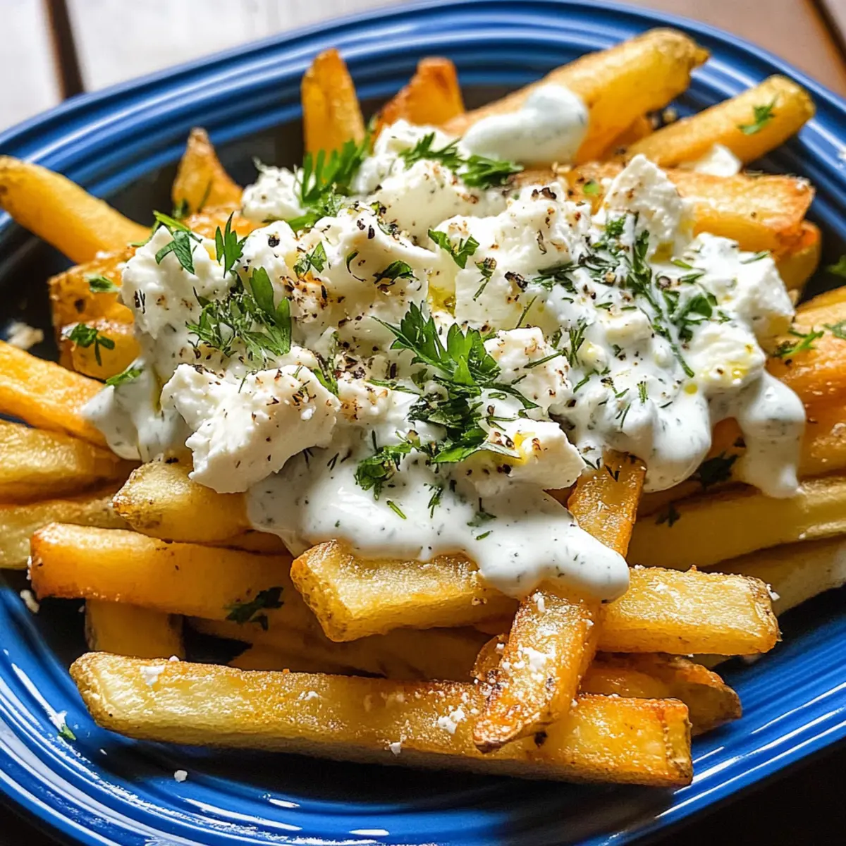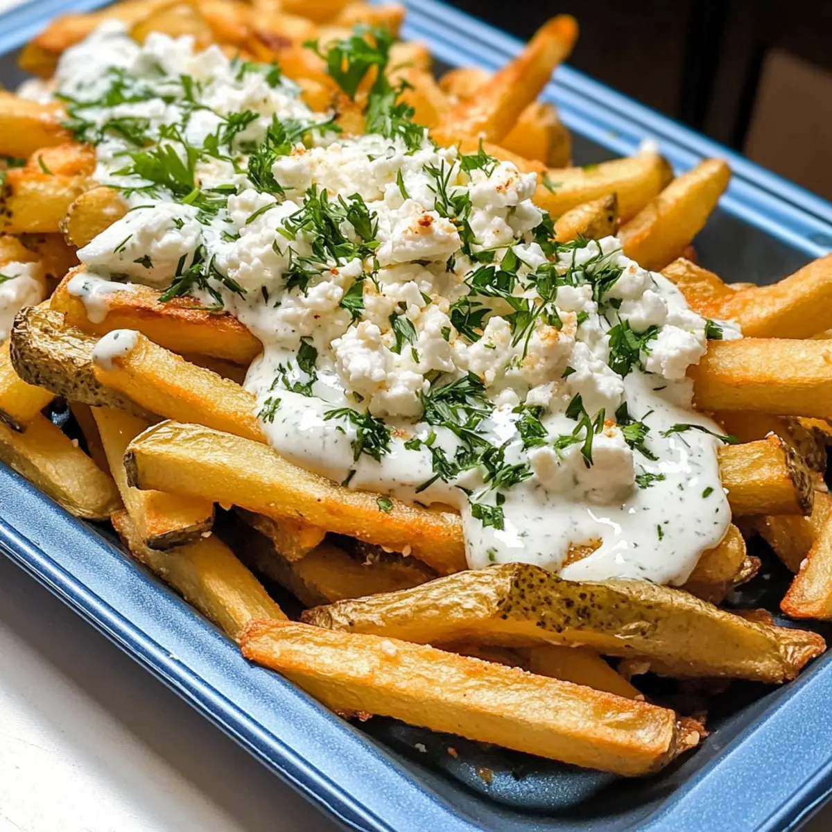 In meinem kleinen griechischen Restaurant um die Ecke gab es immer einen Hit auf der Speisekarte: Griechische Pommes mit Feta Käse. Diese unschlagbare Kombination aus knusprigen Pommes und salzigem Feta hat mich für immer in ihren Bann gezogen. Wenn du nach einem köstlichen Snack oder einer tollen Beilage für dein nächste Gathering suchst, sind diese aromatischen, einfach zuzubereitenden Pommes genau das Richtige. Der hebende Twist? Eine cremige Tzatziki-inspirierte Feta-Joghurt-Sauce, die jeden Bissen zum Erlebnis macht. Diese Griechischen Pommes mit Feta Käse sind nicht nur ein wahrer Gaumenschmaus, sondern auch perfekt für gesellige Abende oder schnelle Snacks nach einem langen Tag. Bist du bereit, dich von diesen herzhaften Köstlichkeiten verführen zu lassen? Lass uns loslegen! Warum sind Griechische Pommes mit Feta so besonders? Knusprig und lecker: Diese Pommes sind nicht nur außen goldbraun, sondern auch fluffig und weich im Inneren. Einfach zuzubereiten: Ideal für Kochanfänger oder Profis, die wenig Zeit haben. Aromatische Fusion: Die Kombination aus Feta und Kräutern verleiht jedem Bissen einen unvergleichlichen Geschmack. Vielseitig: Ob als Snack oder Beilage zu griechischen Gerichten wie Käse Knoblauch Hühnchen, sie passen immer! Geselligkeit pur: Perfekt für Partys oder gemütliche Abende zuhause. Diese Griechischen Pommes mit Feta Käse sind einfach unwiderstehlich und machen jedes Event zu einem kulinarischen Erlebnis! Griechische Pommes mit Feta Käse Zutaten Für die Pommes • Pommes frites – Verwende dicke, gefrorene Pommes für optimale Knusprigkeit. • Feta Käse – Wähle hochwertigen Feta für einen besseren Geschmack und die perfekte Würze. Für die Feta-Joghurt-Sauce • Naturjoghurt – Bildet die cremige Basis der Sauce; griechischer Joghurt verleiht extra Frische. • Sauerrahm – Sorgt für eine reichhaltige Cremigkeit; nutze Vollfett für den besten Geschmack. • Knoblauch – Frischer Knoblauch bringt ein intensives Aroma in die Sauce; frisch ist am besten. • Zitronensaft – Frisch gepresst hellt die Aromen auf und bringt eine prickelnde Frische. • Frische Petersilie & Dill – Für eine lebendige Note; du kannst auch andere Kräuter wie Koriander verwenden. • Getrockneter Oregano – Traditionelles griechisches Gewürz, das Tiefe und Geschmack verleiht; frisch ist auch super. • Salz – Passt die Gesamtgeschmack an; nach Geschmack anpassen. Für die Garnitur • Zusätzlicher Feta Käse – Zerbröselter Feta für einen extra Geschmackskick obendrauf. • Weitere frische Kräuter – Leckere Varianten wie Thymian oder Minze je nach Verfügbarkeit. Diese griechischen Pommes mit Feta Käse sind einfach zuzubereiten und bringen den Genuss Griechenlands direkt auf deinen Tisch! Schritt-für-Schritt-Anleitung für Griechische Pommes mit Feta Käse Step 1: Ofen vorheizen und Pommes backen Heize den Ofen auf 220 °C (Umluft) vor. Verteile die gefrorenen Pommes frites gleichmäßig auf einem Backblech und backe sie für etwa 25–30 Minuten oder bis sie goldbraun und knusprig sind. Achte darauf, die Pommes in der Hälfte der Zeit zu wenden, damit sie gleichmäßig garen und perfekte knusprige Griechische Pommes mit Feta Käse entstehen. Step 2: Feta-Joghurt-Sauce zubereiten Während die Pommes im Ofen sind, bereite die Feta-Joghurt-Sauce vor. In einer mittelgroßen Schüssel vermischst du den zerbröselten Feta Käse, Naturjoghurt, Sauerrahm, fein gehackten Knoblauch, frisch gepressten Zitronensaft, gehackte Petersilie, Dill, Oregano und Salz. Rühre die Mischung gut durch und lasse sie für etwa 10 Minuten stehen, damit sich die Aromen entfalten können. Step 3: Pommes salzen Sobald die Pommes aus dem Ofen kommen, prüfe ihre Knusprigkeit. Sie sollten goldbraun und heiß sein. Bestreue sie sofort mit einer Prise Salz, wenn sie noch heiß sind, damit das Salz gut haftet. Diese entscheidende Note verstärkt den Geschmack deiner Griechischen Pommes mit Feta Käse und sorgt für eine herrliche Grundlage für die Sauce. Step 4: Pommes anrichten Arrangiere die heißen Pommes auf einem ansprechenden Servierteller. Achte darauf, dass sie gleichmäßig verteilt sind, sodass jeder einen Blick auf die köstlichen, knusprigen Pommes werfen kann. Dies ist der perfekte Moment, um die Feta-Joghurt-Sauce großzügig über die Pommes zu träufeln, sodass sie verleitet, den ersten Biss zu nehmen. Step 5: Garnieren und servieren Um das Gericht abzurunden, garniere die Pommes mit zerbröseltem Feta Käse und frisch gehackten Kräutern nach Wahl. Diese zusätzlichen Schritte verleihen deinen Griechischen Pommes mit Feta Käse nicht nur eine ansprechende Optik, sondern auch eine aromatische Frische. Serviere sie direkt nach der Zubereitung, um die beste Konsistenz und den besten Geschmack zu genießen. Was passt zu Griechischen Pommes mit Feta Käse? Erlebe, wie herrlich harmonisch eine Vielzahl von Beilagen und Getränken zu diesen knusprigen Köstlichkeiten schmecken kann. Spanakopita: Dieses gefüllte Blätterteiggebäck aus Spinat und Feta ergänzt die Pommes perfekt und bringt einen herzhaften, griechischen Touch. Ouzo: Der charakteristische griechische Anisschnaps ist ein erfrischender Begleiter, der die Aromen der Pommes schön zur Geltung bringt. Griechischer Salat: Mit frischen Tomaten, Gurken und Oliven bringt dieser Salat einen knackigen und leichten Kontrast zur Cremigkeit der Feta-Joghurt-Sauce. Tzatziki: Dieser erfrischende Joghurt-Dip, reich an Gurken und Knoblauch, passt perfekt zu den Pommes und verstärkt das griechische Geschmackserlebnis. Geröstete Paprika: Süß und rauchig, diese Paprika fügt einen weiteren geschmacklichen Aspekt hinzu und sorgt für eine lebendige Farbkombination auf dem Teller. Dessertwein: Ein süßer griechischer Dessertwein, wie Muscat, rundet das Essen wunderbar ab und macht es zu einem vollendeten Fest für die Sinne. Griechische Pommes mit Feta Käse Variationen Fühle dich frei, diese köstlichen Pommes g
