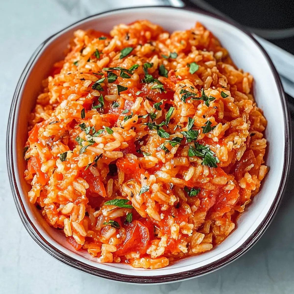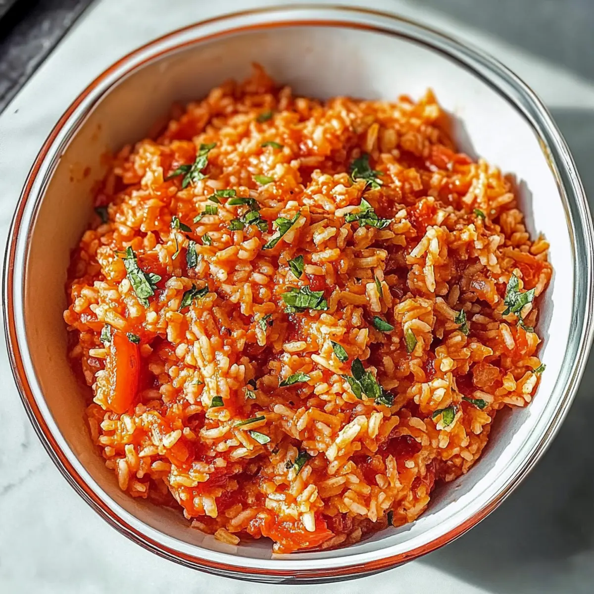 Hast du schon einmal den unverwechselbaren Duft von frisch gebackenem Reis in der Küche erlebt? Wenn ich in Gedanken an meine Reisen durch Griechenland zurückdenke, dann ist einer der größten Genüsse der greifbare, köstliche Griechische Tomatenreis (Ntomatorizo). Diese köstliche Kombination aus aromatischen Tomaten, zarten Gewürzen und perfekt gegartem Reis ist nicht nur ein schneller Genuss, sondern auch eine gesunde Beilage, die sich wunderbar mit jedem Hauptgericht kombinieren lässt. Selbst mitten in einem hektischen Tag zaubert dieses Rezept ein Stück mediterrane Leichtigkeit auf den Tisch. Und das Beste daran? Du kannst es ganz leicht individuell anpassen, um deinem eigenen Geschmack gerecht zu werden! Bereit, mehr über dieses einfache, aber köstliche Rezept zu erfahren? Lass uns gleich loslegen! Warum wirst du dieses Rezept lieben? Einfachheit: Die Zubereitung ist unkompliziert und benötigt nur grundlegende Kochkenntnisse, was es zu einer idealen Wahl für Anfänger und Profis macht. Vielfältige Anpassungen: Egal, ob du es vegan halten, Fleisch oder Gemüse hinzufügen möchtest – dieses Rezept ist wunderbar anpassbar und lässt sich leicht nach deinem Geschmack gestalten. Wohltuender Geschmack: Die Kombination aus frischen Tomaten und aromatischen Gewürzen sorgt für ein Geschmackserlebnis, das jeden bei Tisch begeistert. Schnelle Zubereitung: Perfekt für stressige Tage – in kurzer Zeit hast du ein gesundes und nahrhaftes Gericht, das als Beilage oder Hauptgericht serviert werden kann. Gesunde Wahl: Als vegane, glutenfreie und milchfreie Option ist der Griechische Tomatenreis (Ntomatorizo) eine gute Wahl für alle, die auf ihre Ernährung achten. Entdecke auch die Möglichkeiten, dieses Rezept mit einfachen Variationen zu bereichern, wie zum Beispiel durch das Hinzufügen von deinen Lieblingsgemüsesorten. Griechischer Tomatenreis Zutaten • Eine gesunde Grundlage für dein Gericht. Für den Reis Langkornparboiled Reis – sorgt für perfekte Konsistenz und ist weniger klebrig als normaler Reis. Wasser oder Gemüsebrühe – kochen das Gericht und erhöhen den Geschmack; du kannst auch Hühnerbrühe verwenden. Für die aromatische Basis Olivenöl – fügt gesunde Fette und Geschmack hinzu; kann durch Rapsöl ersetzt werden. Kleine Zwiebel (gehackt) – sorgt für ein angenehmes Aroma; verwende Schalotten für einen milden Geschmack. Knoblauchzehen (gehackt) – intensiviert den Geschmack; Knoblauchpulver ist eine gute Alternative. Allgewürz (5-6 ganze Stücke) – bringt eine warme Tiefe; ein Päckchen gemahlener Allgewürz kann auch verwendet werden. Nelken (5-6 ganze Stücke) – gibt dem Gericht einen einzigartigen Duft; gemahlene Nelken sind ein guter Ersatz. Lorbeerblätter (2 kleine) – verleihen das gewisse Etwas; vor dem Servieren entfernen. Für die Erdnussbasis Doppelt konzentrierte Tomatenpaste (2 Esslöffel) – sorgt für einen intensiven Tomatengeschmack; normale Tomatenpaste kann ebenfalls genommen werden. Kleine reife Tomate (gerieben) – fügt Frische und Süße hinzu; verwende auch eine Dose gehackte Tomaten, wenn gewünscht. Zucker (½ Teelöffel) – balanciert die Säure der Tomaten aus; kann bei Bedarf weggelassen werden. Der Griechische Tomatenreis (Ntomatorizo) ist wirklich vielseitig und perfekt für jeden Tag! Schritt-für-Schritt-Anleitung für Griechischer Tomatenreis Step 1: Ofen vorheizen Heize deinen Ofen auf 200°C vor. Diese Temperatur sorgt dafür, dass dein Griechischer Tomatenreis gleichmäßig gebacken wird und ein köstliches Aroma entfaltet. Während der Ofen aufheizt, hast du genügend Zeit, um die anderen Zutaten vorzubereiten. Step 2: Zwiebel und Knoblauch anbraten In einem mittelgroßen Topf das Olivenöl bei mittlerer Hitze erhitzen. Die fein gehackte Zwiebel und den Knoblauch hinzugeben und unter Rühren etwa 3–4 Minuten anbraten, bis sie weich und leicht goldbraun sind. Dies wird die aromatische Basis für deinen Tomatenreis. Step 3: Gewürze und Tomatenabrieb hinzufügen Füge die ganzen Allgewürze, Nelken und Lorbeerblätter in den Topf. Danach die doppelt konzentrierte Tomatenpaste und die geriebene Tomate dazugeben und alles gut verrühren. Lass die Mischung für 1–2 Minuten kochen, bis sie leicht sprudelt und herrlich duftet. Step 4: Flüssigkeit und Würze hinzufügen Gieße nun das Wasser oder die Gemüsebrühe unter ständigem Rühren in den Topf. Füge den Zucker, Salz und Pfeffer hinzu und lass die Mischung 5 Minuten lang köcheln. Achte darauf, dass sich die Gewürze gleichmäßig im Flüssigkeit verteilen und der Duft intensiviert wird. Step 5: Rice und Tomatensauce kombinieren In einer Auflaufform (ungefähr 33x22cm) den rohen Langkornparboiled Reis gleichmäßig verteilen. Gieße die vorbereitete Tomatensauce vorsichtig über den Reis und rühre alles leicht um, um die Zutaten gut zu vermischen. Dies sorgt dafür, dass der Reis gleichmäßig Geschmack aufnimmt. Step 6: Backen und umrühren Backe den Griechischen Tomatenreis für etwa 30 Minuten im vorgeheizten Ofen. Rühre alle 10 Minuten um, um sicherzustellen, dass der Reis nicht anbrennt und gleichmäßig gar wird. Der Reis sollte am Ende zart und die Flüssigkeit gut aufgenommen sein. Step 7: Servieren und genießen Nimm die Auflaufform nach Ablauf der Backzeit aus dem Ofen und lass sie kurz abkühlen. Entferne die Lorbeerblätter und servier den Griechischen Tomatenreis warm als köstliche Beilage oder Hauptgericht. Die einzelnen Körner sollten zart und leicht klebrig sein, ein Genuss für alle Gaumen! Meal Prep für Griechischer Tomatenreis (Ntomatorizo) Der Griechische Tomatenreis (Ntomatorizo) ist perfekt für die Vorbereitung im Voraus und erleichtert dir die Stressmomente unter der Woche! Du kannst die aromatische Basis aus Zwiebeln, Knoblauch und Gewürzen bis zu 24 Stunden im Voraus zubereiten und im Kühlschrank aufbewahren. Auch die Tomatensauce lässt sich vorbereiten; einfach die Zutaten kombinieren und im Kühlschrank lagern