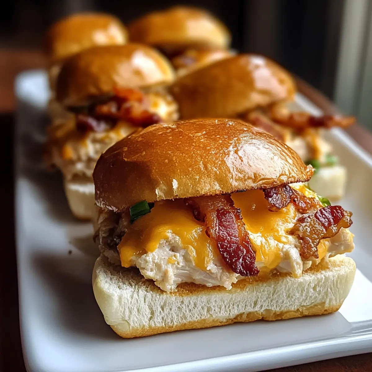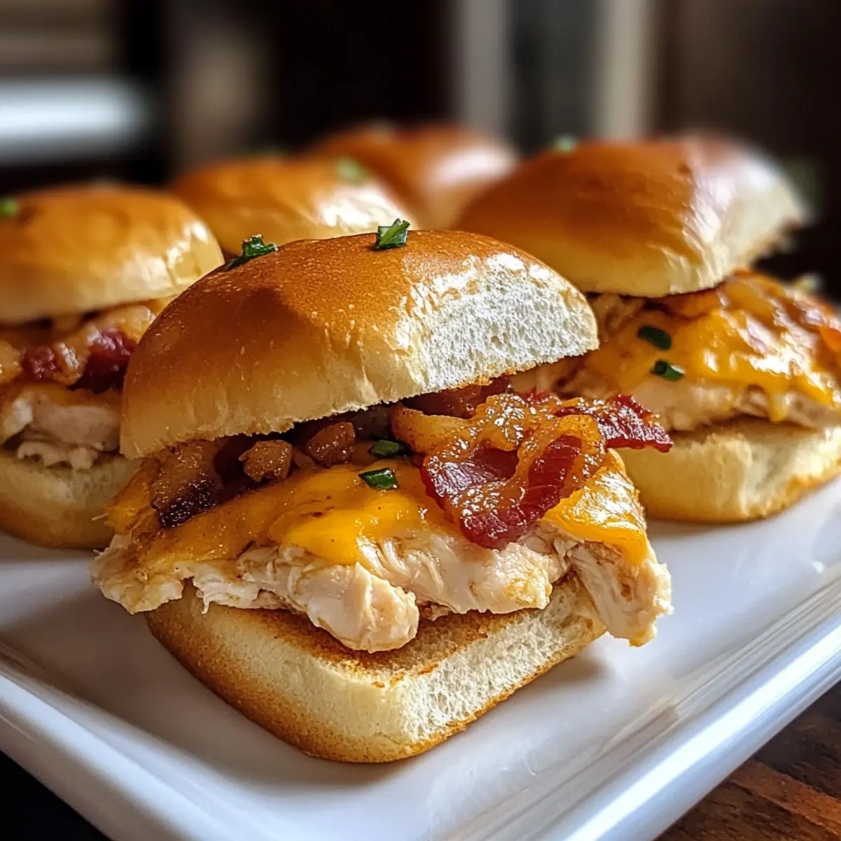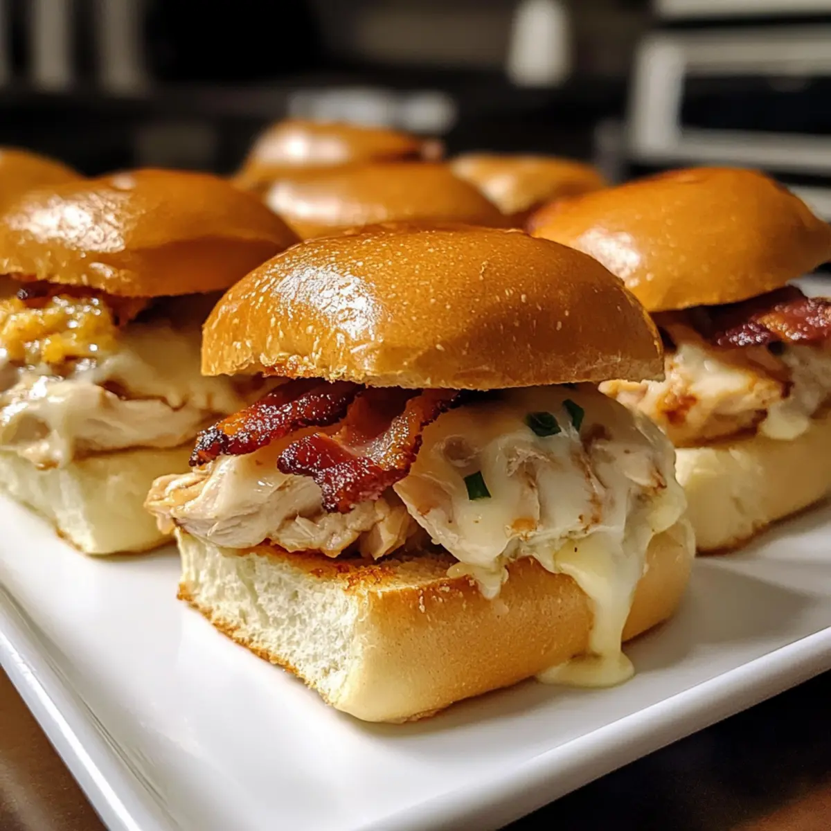 Die Frage kitzelt meine Neugier: Was könnte köstlicher sein als zarte Hähnchen-Bacon-Ranch-Slider, die zwischen fluffigen Brötchen versteckt sind? Diese kleinen Leckerbissen sind nicht nur mühelos zuzubereiten, sondern bringen auch einen Hauch von Geselligkeit auf jeden Tisch, perfekt für die nächste Grillparty oder den Familienabend. In gerade mal 40 Minuten stelle ich diese herzhaften Slider auf den Tisch und überrasche damit selbst die wählerischsten Esser. Mit knackigem Bacon und dem cremigen Geschmack von Ranch-Dressing sind sie nicht nur schnell gemacht, sondern auch für jeden Anlass anpassbar. Neugierig, wie Sie sie in Ihren eigenen Kreationen variieren können? Warum diese Slider ein Hit sind Einfachheit: Diese Hähnchen-Bacon-Ranch-Slider sind im Handumdrehen zubereitet und erfordern nur Grundkenntnisse beim Kochen. Vielseitigkeit: Sie können diese Slider ganz nach Ihrem Geschmack anpassen, sei es mit scharfen Jalapeños oder einer Avocado-Variante. Perfekte Wurstrolle: Die Kombination aus zartem Hähnchen, knusprigem Bacon und cremigem Ranch-Dressing zwischen fluffigen Brötchen sorgt für ein Geschmackserlebnis der Extraklasse. Geselligkeit: Ob beim Grillfest oder Familienabend, sie zaubern sofort ein Lächeln auf die Gesichter Ihrer Gäste. Schnell und einfach: In nur 40 Minuten sind diese Slider bereit, um serviert zu werden – ideal, wenn der Hunger schnell gestillt werden muss! Probieren Sie auch einmal die Wuerzige Chinakohl Rinderhack für eine weitere tolle Option auf der nächsten Feier! Hähnchen-Bacon-Ranch-Slider Zutaten • Diese Zutaten sind alles, was Sie für ein köstliches Slider-Erlebnis brauchen! Für die Füllung Hähnchenbrust – Der Hauptbestandteil; gut gekocht und zart zerrissen bringt es viel Geschmack. Olivenöl – Ein weiterer wichtiger Schritt; es verhindert das Anhaften beim Garen des Hähnchens. Knoblauchpulver – Verleiht dem Gericht eine würzige Note; perfekt, um das Hähnchen abzurunden. Zwiebelpulver – Für eine subtile Süße und Tiefe im Geschmack; ein Muss in jeder Gewürzmischung. Paprika – Sorgt für eine schöne Farbe und milde Schärfe; probieren Sie auch geräucherte Paprika für zusätzlichen Geschmack. Salz & Pfeffer – Unverzichtbar, um die Aromen zu intensivieren; immer nach Geschmack anpassen. Ranch-Dressing – Bindemittel und Geschmacksgeber; sorgt für die cremige Konsistenz und rundet die Füllung ab. Bacon – Knusprige Textur und umwerfender Geschmack; knusprig gebraten bietet er einen tollen Kontrast. Geriebener Cheddar-Käse – Diese schmelzende Köstlichkeit macht die Slider besonders verlockend; versuchen Sie auch andere geschmolzene Käsesorten! Für die Brötchen Slider-Brötchen – Die perfekte Basis; weich und fluffig, hält die Füllung gut zusammen; Vollkornbrötchen sind eine gesunde Alternative. Schritt-für-Schritt-Anleitung für Hähnchen-Bacon-Ranch-Slider Step 1: Ofen vorheizen Heizen Sie Ihren Ofen auf 175 °C (350 °F) vor, damit die Hähnchen-Bacon-Ranch-Slider gleichmäßig und perfekt gebacken werden. Während der Ofen vorheizt, bereiten Sie die anderen Schritte vor, um die Zubereitung effizienter zu gestalten. Step 2: Hähnchenbrust anbraten Erhitzen Sie in einer großen Pfanne etwas Olivenöl bei mittlerer Hitze. Würzen Sie die Hähnchenbrüste großzügig mit Knoblauchpulver, Zwiebelpulver, Paprika, Salz und Pfeffer. Braten Sie das Hähnchen für 6-7 Minuten pro Seite an, bis es goldbraun und durchgegart ist. Die Hähnchenbrust sollte eine Innentemperatur von 75 °C erreichen. Step 3: Hähnchen zerkleinern Nehmen Sie die Hähnchenbrüste aus der Pfanne und lassen Sie sie leicht abkühlen. Sobald sie kühl genug sind, zerkleinern Sie das Hähnchen mit zwei Gabeln in eine große Schüssel. Dies gibt den Hähnchen-Bacon-Ranch-Slidern eine zarte Textur, die perfekt in die weichen Brötchen passt. Step 4: Füllung zubereiten Mischen Sie das zerkleinerte Hähnchen in der Schüssel gründlich mit dem Ranch-Dressing. Rühren Sie alles gut um, sodass die Hähnchenstücke gleichmäßig mit der cremigen Sauce überzogen sind. Diese Mischung wird das Herzstück unserer Hähnchen-Bacon-Ranch-Slider und sorgt für saftige Aromen. Step 5: Brötchen vorbereiten Schneiden Sie die Slider-Brötchen in der Mitte durch und legen Sie die unteren Hälften in eine große Auflaufform. Achten Sie darauf, dass die Brötchen gut nebeneinander Platz haben, um die Füllung gut zu halten. Diese Grundlage sorgt für das ideale Bett für die köstliche Füllung. Step 6: Füllung auftragen Verteilen Sie die Hähnchenmischung gleichmäßig auf die unteren Brötchenhälften in der Auflaufform. Achten Sie darauf, dass jede Hälfte gut bedeckt ist und dass die Aromen überall gut verteilt sind. Diese Schicht wird mit knusprigem Bacon und Käse bedeckt, was den Geschmack der Hähnchen-Bacon-Ranch-Slider intensiviert. Step 7: Bacon und Käse hinzufügen Legen Sie die knusprig gebratenen Baconstreifen gleichmäßig über die Hähnchenfüllung. Streuen Sie den geriebenen Cheddar-Käse großzügig darüber, um zusätzlichen Geschmack und eine geschmolzene Textur zu verleihen. Diese Kombination wird zu einem köstlichen Genuss gehören, wenn die Slider gebacken sind. Step 8: Bedecken und backen Legen Sie die oberen Hälften der Brötchen auf die belegten unteren Hälften. Decken Sie die Auflaufform mit Aluminiumfolie ab und backen Sie die Hähnchen-Bacon-Ranch-Slider für 15 Minuten. Dies sorgt dafür, dass die Aromen sich gut vermischen und die Brötchen weich bleiben. Step 9: Finale Backzeit Entfernen Sie die Folie und backen Sie die Slider für zusätzliche 5 Minuten, bis der Käse geschmolzen und die Oberseiten der Brötchen goldbraun sind. Achten Sie darauf, dass der Käse blubbert und ein köstlicher Duft durch die Küche zieht. Step 10: Abkühlen und Servieren Lassen Sie die Hähnchen-Bacon-Ranch-Slider nach dem Backen etwas abkühlen, damit Sie sie leichter schneiden können. Dann schneiden Sie sie in Portionen u