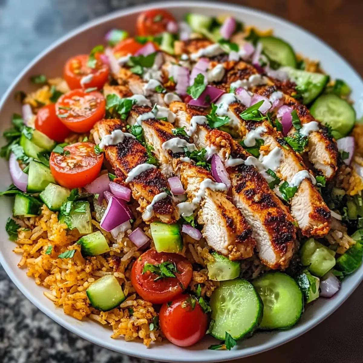 Wenn ich an den zauberhaften Geschmack des Nahen Ostens denke, kommt mir sofort unser Hähnchen Shawarma Knuspriger Reis Salat in den Sinn. Dieses unkomplizierte Rezept bringt nicht nur die Aromen dieser Region direkt auf unseren Tisch, sondern es ist auch perfekt für hektische Abende, an denen wir etwas Gesundes und Leckeres zaubern möchten. In nur 35 Minuten vereint dieser Salat saftiges Hähnchen, knusprigen Reis und frische, knackige Gemüsesorten zu einem farbenfrohen Gericht, das sowohl das Auge als auch den Gaumen verzaubert. Durch die Kombination aus nahrhaften Zutaten und einer cremigen Tahini-Dressing wird jedes Biss zu einem kleinen Fest. Bist du bereit, deine Familie oder Freunde mit dieser köstlichen Aromenkreation zu beeindrucken? Warum wirst du dieses Rezept lieben? Einfachheit, Die Zubereitung ist kinderleicht und benötigt keine speziellen Kochkünste. Vielseitigkeit, Du kannst das Hähnchen durch gegrillte Falafel ersetzen und somit eine köstliche vegetarische Variante kreieren. Frischer Genuss, Die Kombination aus knackigem Gemüse und saftigem Hähnchen bringt eine frische Note in dein Abendessen. Knusprige Textur, Der knusprige Reis als Basis sorgt für ein aufregendes Esserlebnis bei jedem Biss. Die Zutaten sind zudem glutenfrei und perfekt für gesundheitsbewusste Genießer. Zeitersparnis, In nur 35 Minuten hast du dieses geschmackvolle Gericht auf dem Tisch; ideal für vielbeschäftigte Abende. Probiere auch diese leckeren Rezepte wie Wuerzige Chinakohl Rinderhack oder Scharfe Knoblauch Rindersteak für weitere Inspirationen! Crowd-Pleaser, Dieser Salat kommt bei Familie und Freunden garantiert gut an und wird schnell zum neuen Favoriten! Hähnchen Shawarma Knuspriger Reis Salat Zutaten • Hier findest du die notwendigen Zutaten für dieses köstliche Gericht, das im Handumdrehen zubereitet ist! Für das Hähnchen Hähnchenbrust – Die Hauptquelle für Protein; würze sie mit Shawarma-Gewürzen für zusätzlichen Geschmack. Shawarma-Gewürzmischung – Sie verleiht dem Gericht den authentischen Geschmack des Nahen Ostens; verwende eine fertige Mischung für mehr Bequemlichkeit. Für den Reis Olivenöl – Zum Braten des Hähnchens und Frittieren des Reises; kann auch durch neutrales Öl ersetzt werden. Gekochter Reis – Die Basis des Salates für Textur; nutze weißen oder braunen Reis, je nach Vorliebe und diätetischen Bedürfnissen. Für das Gemüse Cherrytomaten – Sorgen für Frische und Farbe; du kannst sie auch durch gewürfelte rote Paprika ersetzen. Gurke – Fügt einen knusprigen Biss hinzu; für eine andere Textur kannst du auch geraspelte Karotten verwenden. Rote Zwiebel – Gibt dem Gericht Schärfe; milder sind Frühlingszwiebeln. Petersilie – Frisches Kraut, das das Gericht aufhellt; Basilikum oder Minze eignen sich ebenfalls gut. Für das Dressing Tahini – Die cremige Basis für das Dressing, die alles zusammenbindet; Sonnenblumenkernbutter ist eine gute nicht-Sesam-Alternative. Zitronensaft – Gibt dem Dressing eine frische Säure; kann durch Rotweinessig ersetzt werden. Salz und Pfeffer – Essenzielle Gewürze; nach Geschmack anpassen. Genieße die Zubereitung deines Hähnchen Shawarma Knuspriger Reis Salat und lasse deiner Kreativität mit den frischen Zutaten freien Lauf! Schritt-für-Schritt-Anleitung für Hähnchen Shawarma Knuspriger Reis Salat Schritt 1: Hähnchen vorbereiten Würze die geschnittenen Hähnchenbruststücke mit der Shawarma-Gewürzmischung, Salz und Pfeffer. Massiere die Gewürze gründlich in das Fleisch ein, damit sich die Aromen gleichmäßig verteilen. Lasse das Hähnchen während der nächsten Schritte bei Zimmertemperatur ruhen, damit es zarter wird. Schritt 2: Hähnchen garen Erhitze in einer beschichteten Pfanne 2 Esslöffel Olivenöl bei mittlerer Hitze. Füge das gewürzte Hähnchen hinzu und brate es für 5-7 Minuten, bis es goldbraun ist und keine rosa Stellen mehr sichtbar sind. Drehe die Stücke während des Garens gelegentlich um, um eine gleichmäßige Bräunung zu erreichen. Schritt 3: Reis knusprig backen Während das Hähnchen gart, erhitze in einer separaten Pfanne erneut 1-2 Esslöffel Olivenöl. Füge den gekochten Reis dazu und brate ihn etwa 5-8 Minuten lang, bis er knusprig und goldbraun wird. Rühre gelegentlich um, um sicherzustellen, dass alle Reisteile gleichmäßig geröstet werden. Schritt 4: Gemüse mischen In einer großen Schüssel kombinierst du die halbierten Cherrytomaten, die gewürfelte Gurke, die in Ringe geschnittene rote Zwiebel und die grob gehackte Petersilie. Vermische alles sanft, sodass das Gemüse gleichmäßig verteilt ist, und bereite dich auf die nächste Zutatenschicht für den Hähnchen Shawarma Knuspriger Reis Salat vor. Schritt 5: Dressing vorbereiten In einer kleinen Schüssel verrührst du 3 Esslöffel Tahini, 2 Esslöffel Zitronensaft, eine Prise Salz, Pfeffer und etwas Wasser, bis die gewünschte Konsistenz erreicht ist. Das Dressing sollte cremig und gut vermischt sein. Es wird später über den Salat gegeben und verbindet die Aromen wunderbar. Schritt 6: Salat anrichten Beginne auf einem großen Teller oder in einer Schüssel mit einer Schicht des knusprigen Reises. Lege das gebratene Hähnchen gleichmäßig darauf und füge dann die Gemüse-Mischung hinzu. Zum Schluss träufelst du das Tahini-Dressing über den Salat, bevor du ihn servierst. So entsteht der köstliche Hähnchen Shawarma Knuspriger Reis Salat. Hähnchen Shawarma Knuspriger Reis Salat Variationen Lass deiner Kreativität freien Lauf und passe dieses Rezept ganz nach deinem Geschmack an! Vegetarische Option: Ersetze das Hähnchen durch gegrillte Falafel für eine herzhafte, fleischlose Variante. So bleibt der Geschmack des Nahen Ostens erhalten. Quinoa statt Reis: Nutze Quinoa anstelle von Reis für eine proteinreiche, nahrhafte Alternative, die zudem glutenfrei ist. Der nussige Geschmack bringt eine neue Dimension ins Gericht. Würzige Note: Füge Jalapeños oder Cayennepfeffer währen