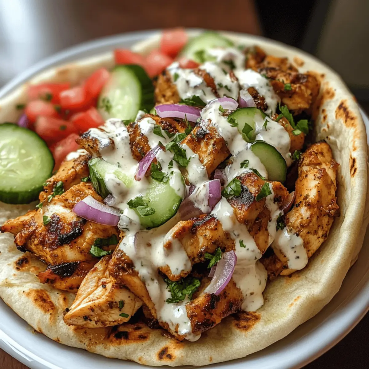 Die Straßen von Beirut duften nach gewürztem Grillfleisch und frisch gebackenem Brot, während die Geschmäcker des Nahen Ostens in der Luft hängen. In diesem Rezept für Chicken Shawarma mit cremiger Knoblauchsoße bringe ich diese köstlichen Aromen direkt in Ihre Küche. Diese einfache und gesunde Mahlzeit ist nicht nur ein echter Publikumsmagnet, sondern auch schnell zubereitet und lässt sich wunderbar für ein Familienessen anpassen. Die Kombination aus zart mariniertem Hähnchen und der reichhaltigen Soße macht jeden Biss zu einem Fest für die Sinne. Sind Sie bereit, Ihre Gäste mit einem unverwechselbaren Geschmackserlebnis zu begeistern? Warum werden Sie dieses Rezept lieben? Einfachheit: Die Zubereitung ist kinderleicht und erfordert nur grundlegende Kochkenntnisse. Aromen der Tradition: Die Mischung aus Gewürzen und frischen Zutaten bringt den authentischen Geschmack des Nahen Ostens direkt auf Ihren Tisch. Gesunde Wahl: Dieses Gericht ist reich an gesunden Zutaten, die nicht nur lecker, sondern auch nahrhaft sind – perfekt für ein leichtes Abendessen. Vielseitigkeit: Sie können Hähnchen durch Garnelen oder Gemüse ersetzen, um verschiedene Geschmäcker zu kreieren. Familienfreundlich: Jeder kann seine eigene Wrap nach Belieben gestalten – ein Spaß für Groß und Klein! Lassen Sie sich auch von anderen köstlichen Rezepten wie Kofta mit Knoblauch oder Chicken Wonton Tacos inspirieren. Hähnchen Shawarma Zutaten • Auf die Aromen des Nahen Ostens! Für die Marinade Boneless, Skinless Chicken Thighs – Die besten Stücke für saftiges, geschmackvolles Fleisch; können durch Hähnchenbrust ersetzt werden, die jedoch schneller austrocknen kann. Plain Yogurt – Macht das Hähnchen zart und saftig; griechischer Joghurt ist eine gesunde Alternative ohne Geschmacksverlust. Olive Oil – Verleiht Reichtum und sorgt dafür, dass die Gewürze gleichmäßig am Hähnchen haften. Lemon Juice – Unterstützt die Frische und Säure, die den Geschmack und die Zartheit des Hähnchens verbessert. Minced Garlic – Bringt eine herzhafte Tiefe in die Marinade; frischer Knoblauch ist am besten. Ground Cumin – Fügt warme, erdige Noten hinzu; unverzichtbar für den authentischen Geschmack. Ground Coriander – Bringt zitrusartige Töne in die Gewürzmischung. Smoked Paprika – Gibt einen Hauch von Rauchigkeit und Farbe. Ground Allspice – Ergänzt die Gewürzmischung mit einer einzigartigen süßen Wärme. Turmeric – Sorgt für Farbe und milde Erdigkeit, was auch gesundheitsfördernd ist. Salt and Pepper – Grundlegend für die Würze, um den Geschmacksbalance anzupassen. Für die Wraps Pita oder Flatbread – Die ideale Grundlage für die Füllung; weich und warm. Sliced Cucumbers, Tomatoes, Red Onion – Frisches Gemüse für einen knackigen Kontrast und erfrischenden Geschmack. Fresh Parsley – Verleiht nicht nur Farbe, sondern auch eine frische, Kräuternote. Für die Soße Creamy Garlic Sauce – Der Hauptdip, der aus Mayonnaise und Knoblauch besteht; griechischer Joghurt kann als leichtere Alternative verwendet werden. Schritt-für-Schritt-Anleitung für Hähnchen Shawarma mit cremiger Knoblauchsauce Step 1: Marinade vorbereiten In einer großen Schüssel Joghurt, Olivenöl, Zitronensaft, gehackten Knoblauch, Kreuzkümmel, Koriander, geräuchertes Paprika, Piment, Kurkuma, Salz und Pfeffer gut vermischen. Diese köstliche Marinade zaubert den typischen Geschmack für Ihr Hähnchen Shawarma. Achten Sie darauf, die Konsistenz gleichmäßig zu halten, damit alle Aromen gut miteinander verschmelzen. Step 2: Hähnchen marinieren Fügen Sie die Hähnchenoberschenkel zur Marinade hinzu und stellen Sie sicher, dass sie gründlich bedeckt sind. Decken Sie die Schüssel mit Frischhaltefolie ab und stellen Sie sie mindestens für 1 Stunde in den Kühlschrank – diese Zeit ermöglicht dem Hähnchen, die Aromen tief aufzunehmen, was zu einem unwiderstehlichen Geschmack führt. Für intensivere Ergebnisse über Nacht marinieren. Step 3: Grill oder Ofen vorheizen Heizen Sie den Grill auf mittelhohe Temperatur vor oder stellen Sie den Ofen auf 200 °C (400 °F) ein. Ein gut vorgeheizter Grill sorgt dafür, dass das Hähnchen Shawarma eine schöne Kruste bekommt und gleichmäßig gegart wird. Achten Sie darauf, dass der Grillrost auch geschmiert wird, um ein Ankleben zu vermeiden. Step 4: Hähnchen grillen Legen Sie die marinierten Hähnchenoberschenkel auf den Grill und braten Sie sie 5-7 Minuten pro Seite, bis sie goldbraun und durchgegart sind. Alternativ können Sie das Hähnchen 20-25 Minuten im Ofen backen, wobei Sie es nach der Hälfte der Zeit wenden. Achten Sie darauf, dass die Kerntemperatur mindestens 75 °C (165 °F) erreicht. Step 5: Cremige Knoblauchsauce zubereiten Während das Hähnchen gart, bereiten Sie die cremige Knoblauchsauce vor, indem Sie in einer Schüssel Mayo, Zitronensaft, gehackten Knoblauch, Salz und Pfeffer glatt vermischen. Diese Sauce ergänzt perfekt den Geschmack des Hähnchen Shawarma. Kühlen Sie sie bis zum Servieren im Kühlschrank, damit sie gut durchziehen kann. Step 6: Hähnchen schneiden Sobald das Hähnchen fertig gegrillt ist, nehmen Sie es vom Grill und lassen Sie es kurz ruhen. Dann schneiden Sie das Hähnchen in dünne Scheiben gegen die Faser. Durch das richtige Schneiden bleibt das Fleisch zart und saftig, was das Hähnchen Shawarma besonders schmackhaft macht. Step 7: Wraps vorbereiten und servieren Füllen Sie warme Pita oder Fladenbrot mit den geschnittenen Hähnchenstücken. Toppen Sie die Wraps mit frischen Gurken, Tomaten, roten Zwiebeln und der cremigen Knoblauchsauce. Ein bisschen frisch gehackte Petersilie darüberstreuen, um dem Gericht eine schöne Farbe und einen frischen Kräutergeschmack zu verleihen. Genießen Sie Ihr selbstgemachtes Hähnchen Shawarma! Variationen & Alternativen Passen Sie Ihr Hähnchen Shawarma nach Ihren Wünschen an! Dairy-Free: Ersetzen Sie den Joghurt und die Mayonnaise durch Pflanzenjoghurt oder 