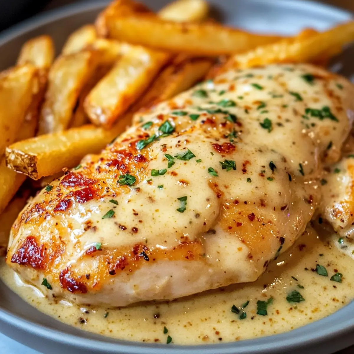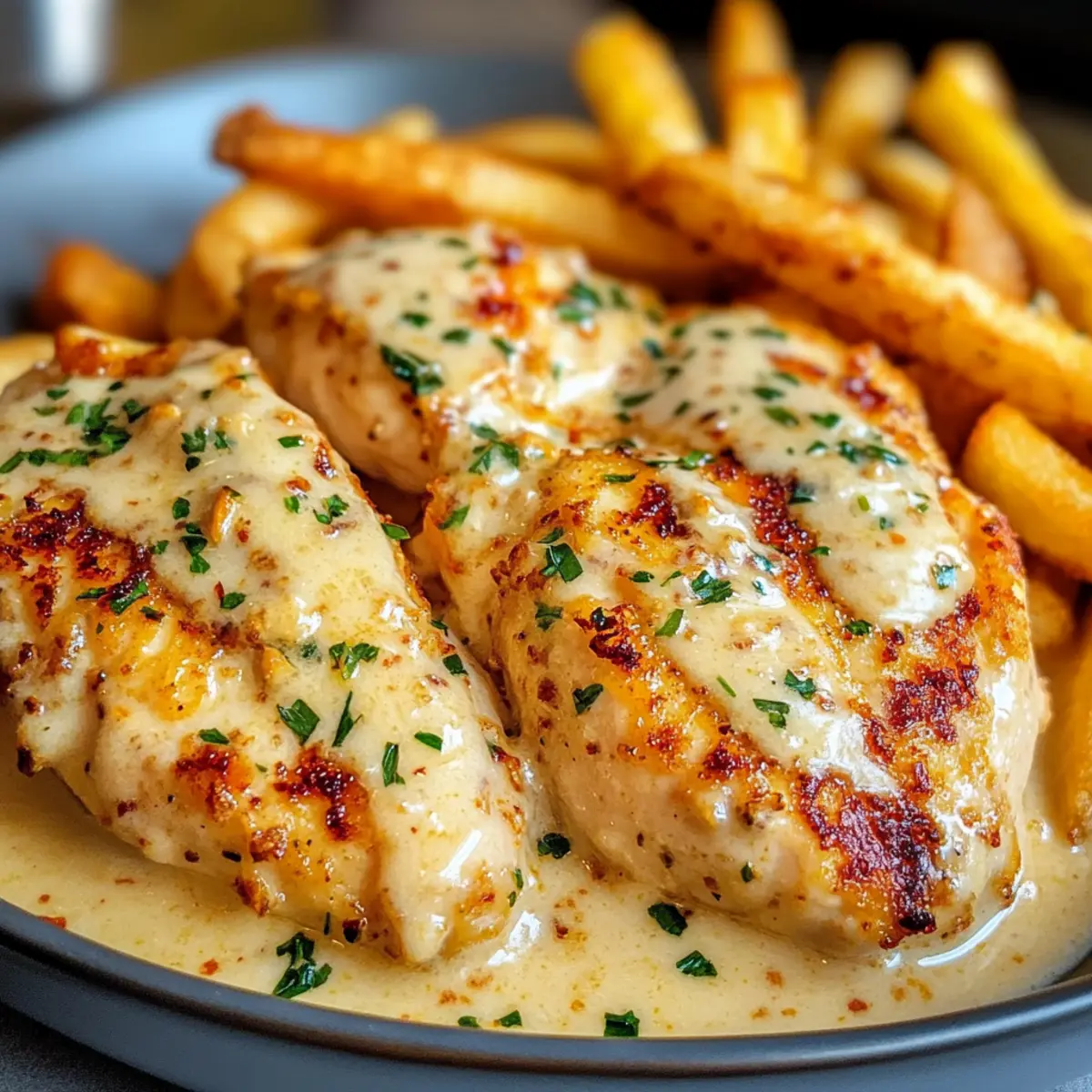 Beim ersten Bissen in das Hähnchenfilet in würziger, cremiger Knoblauch-Parmesan-Sauce konnte ich nicht anders, als meiner Begeisterung Ausdruck zu verleihen. Diese köstliche Kombination aus zartem Hähnchen und einer reichhaltigen, leicht scharfen Sauce schafft nicht nur ein perfektes Geschmackserlebnis, sondern bietet auch ein Stückchen Gemütlichkeit, das wir alle manchmal brauchen. Wenn du nach einem Rezept suchst, das schnellen Genuss mit Geschmack und einem knusprigen Fries-Highlight vereint, bist du hier genau richtig! Mit einer unkomplizierten Zubereitung und der Möglichkeit, alles glutenfrei zu halten, wirst du bestimmt nicht nur deine Familie, sondern auch dich selbst begeistern. Bereit, in die wunderbare Welt dieser Wohlfühlküche einzutauchen? Lass uns loslegen! Warum wirst du dieses Rezept lieben? Einfachheit: Die Zubereitung ist so unkompliziert, dass du auch ohne Kochprofi zu sein, schnell ein köstliches Gericht zaubern kannst. Reichhaltiger Geschmack: Die Kombination aus würzigem Knoblauch und Parmesan sorgt für ein intensives Aroma, das deine Geschmacksknospen verwöhnt. Vielseitigkeit: Ob mit knusprigen Pommes oder einem frischen Salat – dieses Gericht passt zu verschiedenen Beilagen und macht es besonders anpassbar. Perfektes Komfortessen: Dieses Rezept bringt nicht nur Wärme ins Herz, sondern ist auch glutenfrei, was es für alle zugänglich macht. Zeitersparnis: In nur 30 Minuten kannst du dieses herzhafte Gericht auf den Tisch bringen; ideal für einen schnellen Werktagsabend. Falls du nach weiteren einfachen und gesunden Rezepten suchst, probiere doch auch unseren Brokkoli Pasta Gesund oder einen erfrischenden Ananas Gurken Salat, die ebenfalls schnell zubereitet sind. Hähnchenfilet in würziger, cremiger Knoblauch-Parmesan-Sauce Zutaten Für das Hähnchen • Hähnchenfilets – Hauptproteinquelle; achte darauf, dass sie gleichmäßig geschnitten sind für gleichmäßiges Garen. • Olivenöl – Zum Braten verwendet; verleiht Geschmack. Du kannst es durch Avocadoöl ersetzen, das einen höheren Rauchpunkt hat. • Salz und Pfeffer – Unentbehrlich für die Würze; nach Geschmack anpassen. Für die Sauce • Knoblauch (gehackt) – Fügt ein aromatisches Aroma hinzu; frisch ist vorzuziehen, aber in der Not kannst du auch Knoblauchpulver verwenden. • Sahne – Basis für die cremige Sauce; für eine leichtere Variante, verwende Halb und Halb oder Kokoscreme. • Parmesan (gerieben) – Sorgt für einen reichen, nussigen Geschmack; frisch gerieben wird empfohlen. • Rote Paprikaflocken – Verleiht der Sauce Schärfe; die Menge individuell anpassen. Für die Beilage • Pommes (frozen oder frisch) – Werden zusammen mit dem Hähnchen serviert; mache eigene Pommes für eine frischere Option. Mit diesem Hähnchenfilet in würziger, cremiger Knoblauch-Parmesan-Sauce wirst du sicher die Geschmacksknospen deiner Familie verzaubern! Schritt-für-Schritt-Anleitung für Hähnchenfilet in würziger, cremiger Knoblauch-Parmesan-Sauce Step 1: Pommes vorbereiten Heize den Ofen auf 220 °C (425 °F) vor. Lege die gefrorenen Pommes auf ein Backblech und backe sie für etwa 30-35 Minuten, bis sie goldbraun und knusprig sind. Wende die Pommes nach der Hälfte der Zeit, damit sie gleichmäßig bräunen. Step 2: Hähnchen braten Erhitze in einer großen Pfanne 2 Esslöffel Olivenöl bei mittlerer Hitze. Würze die Hähnchenfilets mit Salz und Pfeffer und lege sie in die Pfanne. Brate das Hähnchen für 6-7 Minuten auf jeder Seite, bis es goldbraun ist und eine Innentemperatur von 74 °C (165 °F) erreicht hat. Nimm das Hähnchen anschließend aus der Pfanne und stelle es beiseite. Step 3: Sauce zubereiten In derselben Pfanne fügst du den gehackten Knoblauch hinzu und brätst ihn für etwa 1 Minute, bis er duftet. Gieße dann die Sahne hinein und bringe die Mischung zum Köcheln. Rühre den geriebenen Parmesan und die roten Paprikaflocken unter und lasse die Sauce 2-3 Minuten köcheln, bis sie leicht eingedickt ist. Schmecke sie nach Belieben ab. Step 4: Hähnchen mit Sauce kombinieren Lege die Hähnchenfilets zurück in die Pfanne zur Sauce und löffele die Sauce großzügig über das Hähnchen. Lass alles zusammen für weitere 2-3 Minuten köcheln, sodass die Filets die köstlichen Aromen der würzigen, cremigen Knoblauch-Parmesan-Sauce aufnehmen können. Step 5: Anrichten und servieren Platziere die knusprigen Pommes sowie das Hähnchen auf einem Teller. Gieße die übriggebliebene Sauce großzügig über das Hähnchen und dekoriere das Gericht mit frisch gehackter Petersilie. Serviere das Hähnchenfilet in würziger, cremiger Knoblauch-Parmesan-Sauce sofort für ein herrliches Geschmackserlebnis. Vorbereitung für Hähnchenfilet in würziger, cremiger Knoblauch-Parmesan-Sauce Das Hähnchenfilet in würziger, cremiger Knoblauch-Parmesan-Sauce eignet sich hervorragend für die Vorbereitung im Voraus! Du kannst die Hähnchenfilets bereits bis zu 24 Stunden im Voraus marinieren und sie in einem luftdichten Behälter im Kühlschrank aufbewahren, um die Aromen intensivieren. Die Sauce kann ebenfalls im Voraus zubereitet werden; sie hält sich bis zu 3 Tage im Kühlschrank. Um die Qualität zu bewahren, solltest du die Sauce in einem fest verschlossenen Behälter lagern, um ein Austrocknen zu verhindern. Wenn du bereit bist zu servieren, erhitze die Sauce sanft und füge die wieder aufgewärmten Hähnchenfilets hinzu, sodass alles gleichmäßig erwärmt wird und die im Gericht enthaltenen Aromen sich wunderbar entfalten können. So sparst du wertvolle Zeit an hektischen Abenden und kannst dennoch ein köstliches Gericht genießen! Tipps für das beste Hähnchenfilet Frische Zutaten: Verwende frischen Knoblauch und frisch geriebenen Parmesan für intensiveren Geschmack in deinem Hähnchenfilet in würziger, cremiger Knoblauch-Parmesan-Sauce. Gleichmäßiges Garen: Achte darauf, dass die Hähnchenfilets gleichmäßig geschnitten sind, um ein gleichmäßiges Garen zu gew
