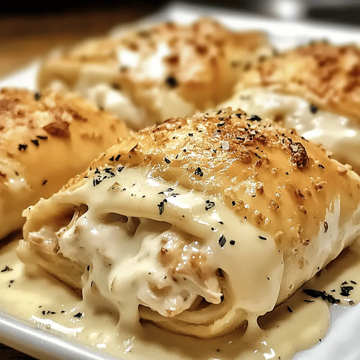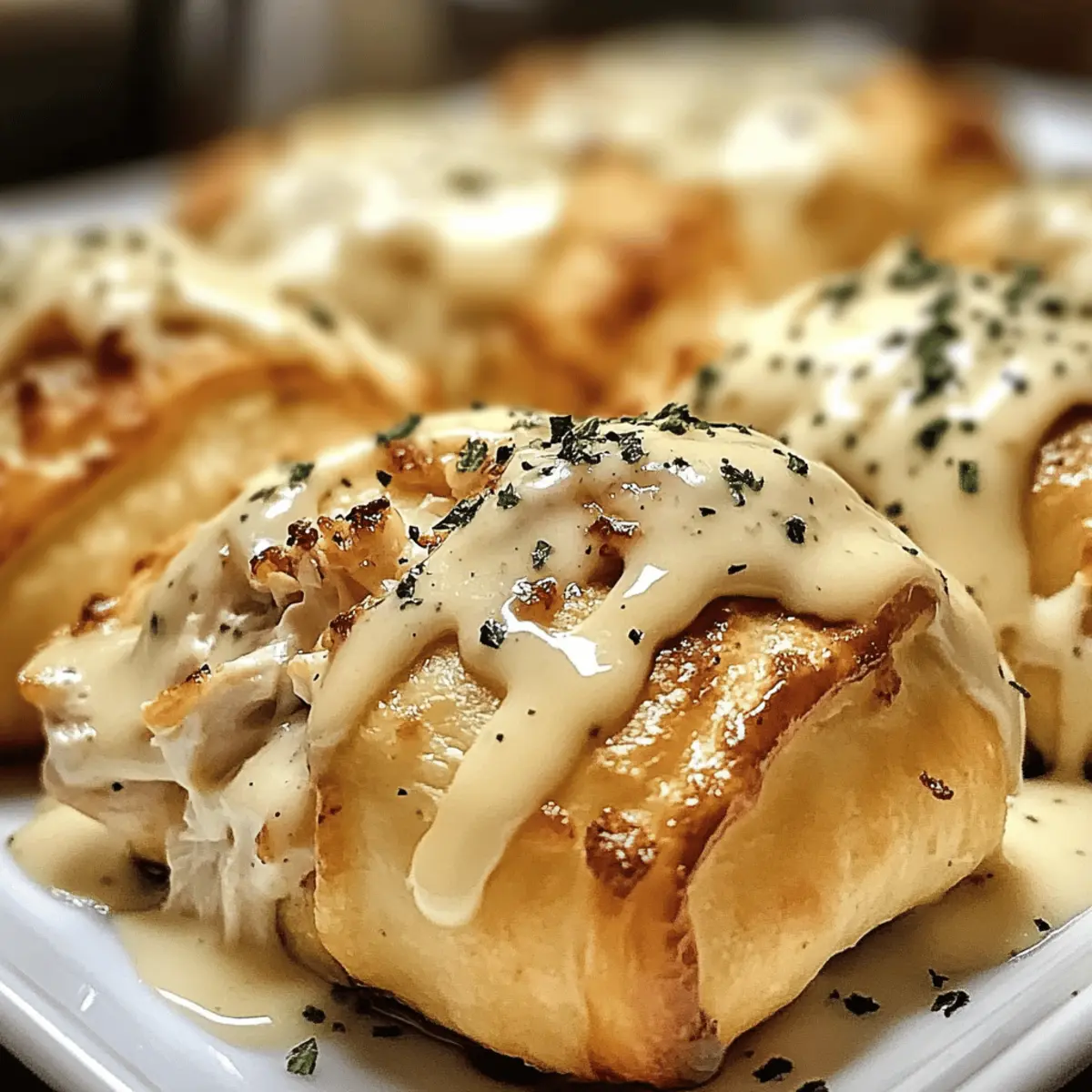 Die knisternden Geräusche beim Öffnen der Ofentür kündigen die Leckerei an, die gleich serviert wird – Chicken Pillows mit cremiger Parmesan-Sauce. Diese kleinen, knusprigen Köstlichkeiten, gefüllt mit einer Mischung aus zartem Hühnerfleisch und reichhaltigem Frischkäse, sind nicht nur ein Genuss für den Gaumen, sondern auch unglaublich unkompliziert zuzubereiten. Perfekt für geschäftige Wochentage oder als Highlight bei besonderen Anlässen, bieten sie sowohl als appetitlicher Snack als auch als herzhaftes Hauptgericht einen Anlass zum Schlemmen. Mit ihrer verführerischen, samtigen Parmesan-Sauce verzaubern sie jedes Gericht und machen die Zubereitung zum puren Vergnügen. Wer möchte nach einem langen Tag nicht in den Genuss dieser warmen Umarmung auf dem Teller kommen? Warum sind Chicken Pillows unwiderstehlich? Wärme und Trost: Diese Hähnchenkissen sind wie eine Umarmung auf dem Teller, perfekt für entspannte Familienabende. Schnell und einfach: Mit wenig Aufwand sind sie zubereitet, ideal für vielbeschäftigte Köche, die dennoch genießen möchten. Vielseitigkeit: Ob als kleine Appetizer oder als herzhaftes Hauptgericht, sie passen zu jedem Anlass. Anpassungsfähig: Mit verschiedenen Füllungen und Teigvarianten bleiben die Möglichkeiten endlos – ideal für kreative Seelen! Unglaublicher Geschmack: Die Kombination aus knackigem Teig und cremiger Parmesan-Sauce begeistert jeden Gaumen und macht aus einfachen Zutaten ein Festmahl. Entdecke auch unsere Rezepte für Butter Chicken Rezept und Kaese Knoblauch Huehnchen, um deine Küche weiter zu bereichern! Hähnchenkissen Zutaten Für die Füllung • Gekochtes und zerrupftes Hähnchen – bildet die Basisfüllung; verwende Rotisserie- oder übrig gebliebenes Hähnchen für eine schnelle Zubereitung. • Frischkäse – sorgt für eine reichhaltige, cremige Füllung; am besten bei Raumtemperatur für einfaches Mischen. • Knoblauchpulver – fügt eine herzhafte Tiefe hinzu. • Zwiebelpulver – verstärkt den Gesamtschmack. • Getrocknete Petersilie – frische kann als lebendige Alternative verwendet werden. • Salz – nach Geschmack würzen. • Schwarzer Pfeffer – frisch gemahlen sorgt für einen intensiveren Geschmack. • Geschmolzene Butter – verleiht der Füllung Reichhaltigkeit. • Crescent Roll Teig – kreiert eine blättrige, buttrige Kruste; kühl halten bis zur Verwendung. • Panko-Brösel (optional) – sorgt für Knusprigkeit beim Belag. • Ei (für den Waschgang) – sorgt beim Backen für eine goldbraune Farbe. Für die cremige Parmesansauce • Butter – unverzichtbar für die Mehlschwitze. • Allzweckmehl – verdickt die Sauce effektiv. • Vollmilch – bildet die cremige Basis. • Schlagsahne – fügt zusätzliche Reichhaltigkeit hinzu. • Geriebener Parmesan – verleiht authentischen Geschmack; Parmigiano-Reggiano wird empfohlen. • Knoblauchpulver, Salz, schwarzer Pfeffer – zur Geschmacksverstärkung. Schritt-für-Schritt-Anleitung für Hähnchenkissen mit cremiger Parmesansoße Step 1: Backofen vorheizen Heizen Sie den Ofen auf 190°C vor und legen Sie ein Backblech mit Backpapier aus. Diese Vorbereitung sorgt dafür, dass die Hähnchenkissen gleichmäßig backen und eine köstlich goldene Farbe erhalten. Achten Sie darauf, dass der Ofen vollständig vorgeheizt ist, bevor Sie die Hähnchenkissen hineinlegen. Step 2: Füllung zubereiten In einer großen Schüssel kombinieren Sie das zerrupfte Hähnchen, den Frischkäse, das Knoblauch- und Zwiebelpulver, die getrocknete Petersilie, Salz, Pfeffer und die geschmolzene Butter. Mischen Sie alles gut, bis die Füllung gleichmäßig und cremig ist. Dieser köstliche Mix bildet die Grundlage für Ihre Hähnchenkissen und sorgt für einen reichhaltigen Geschmack. Step 3: Teig vorbereiten Rollen Sie den Crescent Roll Teig vorsichtig aus und trennen Sie die Dreiecke. Drücken Sie die Teigstücke leicht platt, damit sie mehr Platz für die Füllung bieten. Halten Sie den Teig kühl, bis Sie bereit sind, die Hähnchenkissen zu füllen, um eine perfekte Blätterstruktur zu erhalten. Step 4: Füllen und verschließen Geben Sie einen großzügigen Löffel der Hähnchenfüllung in die Mitte jedes Teigdreiecks. Falten Sie den Teig über die Füllung und drücken Sie die Ränder gut zusammen, um sie dicht zu verschließen. Achten Sie darauf, nicht zu viel Füllung zu verwenden, da dies das Zubereiten und Backen erschweren könnte. Step 5: Eiwasch auftragen Bürsten Sie die Oberseite jedes Hähnchenkissens mit dem verquirlten Ei. Optional können Sie auch Panko-Brösel auf die Oberseite streuen, um eine knusprige Textur zu erzielen. Dies gibt den Hähnchenkissen nicht nur einen schönen Glanz, sondern sorgt auch für eine appetitliche, goldbraune Kruste beim Backen. Step 6: Backen Ordnen Sie die vorbereiteten Hähnchenkissen auf dem Backblech an und schieben Sie es in den vorgeheizten Ofen. Backen Sie die Kissen 20-25 Minuten lang, bis sie goldbraun und aufgegangen sind. Überwachen Sie den Backprozess, damit sie nicht zu dunkel werden – der perfekte Zeitpunkt ist erreicht, wenn die Kissen deutlich goldfarben sind. Step 7: Sauce zubereiten Während die Hähnchenkissen backen, schmelzen Sie in einem kleinen Topf die Butter. Rühren Sie das Mehl dazu, um eine Mehlschwitze zu bilden, und gießen Sie dann langsam die Milch und die Schlagsahne dazu, während Sie ständig rühren. Lassen Sie die Sauce 5-7 Minuten köcheln, bis sie leicht eindickt, und fügen Sie den geriebenen Parmesan, das Knoblauchpulver, Salz und Pfeffer hinzu. Step 8: Servieren Sobald die Hähnchenkissen goldbraun aus dem Ofen kommen, arrangieren Sie sie auf einem Servierteller. Träufeln Sie die cremige Parmesansauce großzügig über die Kissen, bevor Sie sie servieren. Diese Kombination aus knusprigem Teig und würziger, cremiger Sauce wird Ihre Gäste begeistern. Was passt zu Hähnchenkissen mit cremiger Parmesansoße? Die perfekte Beilage macht den Genuss dieser köstl