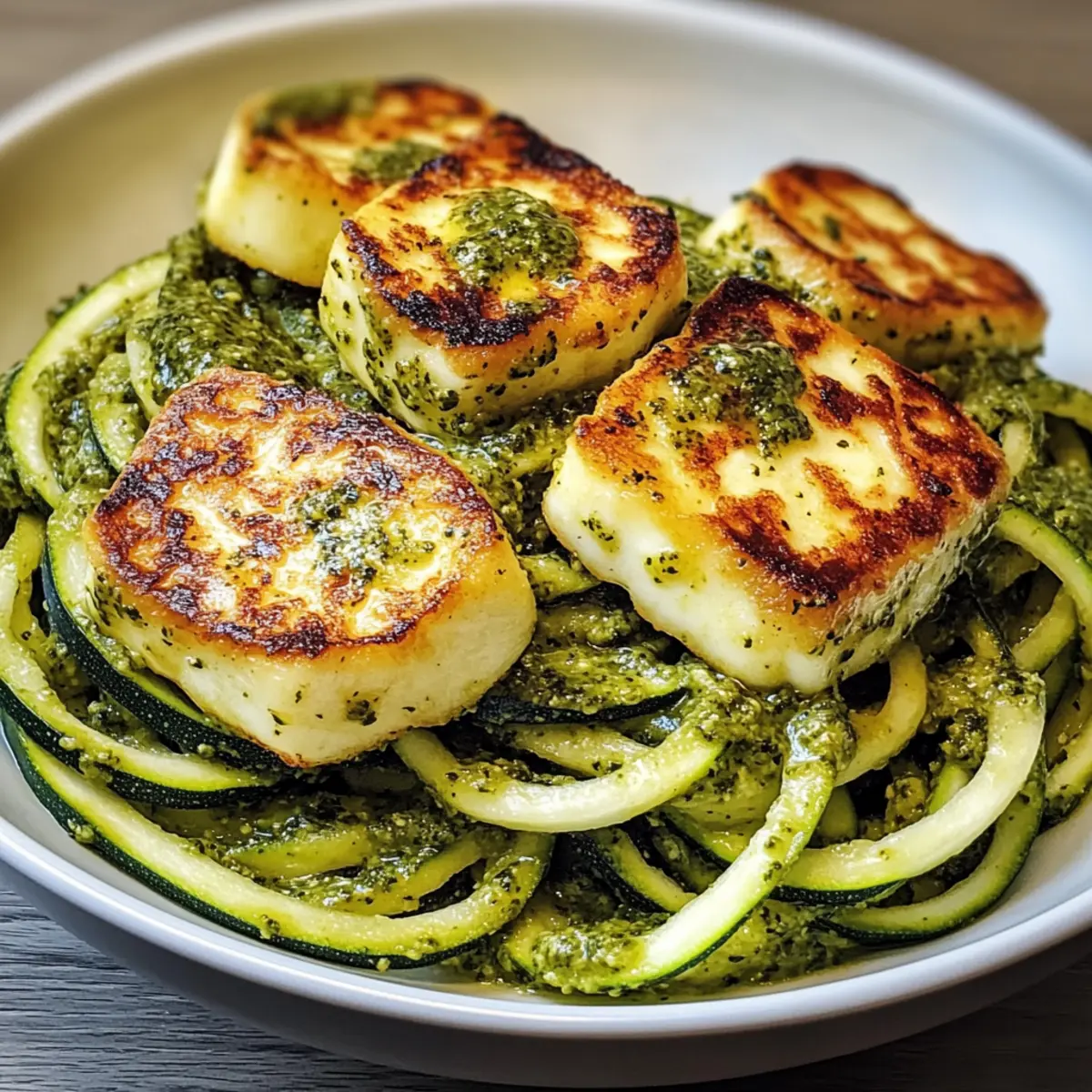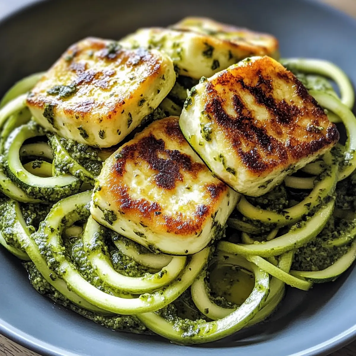 Als ich neulich durch die Märkte schlenderte, erfasste mich der verführerische Duft von frisch gebrühtem Pesto und geröstetem Halloumi. Diese Aromen inspirierten mich sofort zu einem leckeren Gericht: Halloumi mit Zucchini-Pesto-Nudeln. Ideal für gesunde Genießer und diejenigen, die schnelle, köstliche Mahlzeiten suchen, vereint dieses Rezept die knusprige Textur des goldbraunen Halloumi mit zarten Zucchini-Nudeln und einem aromatischen Pesto aus frischem Basilikum und Knoblauch. Es ist nicht nur eine low-carb Option, sondern auch ein wunderbares Erlebnis für den Gaumen, das in weniger als 30 Minuten auf den Tisch kommt. Perfekt für geschäftige Abendessen oder eine entspannte Sommernacht – dieses Gericht wird garantiert zum neuen Favoriten in eurer Küche! Bereit, eure Geschmacksknospen zu kitzeln? Lasst uns gemeinsam in die Zubereitung eintauchen! Warum wirst du dieses Rezept lieben? Vielfalt, die begeistert: Dieses Gericht lässt sich leicht anpassen – probiere zum Beispiel, den Halloumi durch gegrilltes Hähnchen zu ersetzen oder füge bunte Paprika hinzu. Einfache Zubereitung: In weniger als 30 Minuten kannst du ein gesundes und schmackhaftes Abendessen zaubern, ideal für einen stressfreien Wochentag. Frische Aromen: Das Zusammenspiel aus aromatischem Pesto und frischem Gemüse sorgt für ein Geschmackserlebnis, das dich nachhaltig begeistert. Gesund und nährstoffreich: Halloumi mit Zucchini-Pesto-Nudeln ist nicht nur low-carb, sondern auch reich an Proteinen – perfekt für alle, die gesund leben möchten. Köstlich und sättigend: Die knusprige Konsistenz des Halloumi und die zarten Zucchini-Nudeln machen dieses Gericht zu einem echten Gaumenschmaus. Entdecke auch andere leichte Rezepte wie Zucchini-Nudeln mit Tomatensauce. Halloumi mit Zucchini-Pesto-Nudeln Zutaten • Für die Zubereitung dieses köstlichen, gesunden Gerichts benötigst du folgende Zutaten: Für den Halloumi Halloumi – bietet eine herzhafte Komponente; du kannst ihn durch Feta ersetzen, falls du eine weichere Textur bevorzugst. Für die Zucchini-Pesto-Nudeln Zucchini – bildet die Basis des Gerichts; einfach spiralisiere sie und verwende zur Abwechslung auch gelbe Zucchini. Pesto – verleiht dem Gericht seinen lebendigen Geschmack; verwende hausgemachtes oder gekauftes Pesto für mehr Komfort. Für das Anbraten Olivenöl – wird zum Braten des Halloumi verwendet und verstärkt den Geschmack; achte darauf, dass das Öl heiß genug ist, um eine knusprige Textur zu erreichen. Knoblauch – verbessert das Aroma des Gerichts; im Ernstfall kannst du auch Knoblauchpulver verwenden. Genieße die herzhaften Aromen und die einfache Zubereitung mit diesem gesunden, low-carb Rezept von Halloumi mit Zucchini-Pesto-Nudeln! Schritt-für-Schritt-Anleitung für Halloumi mit Zucchini-Pesto-Nudeln Step 1: Zucchini vorbereiten Spiralisiere die Zucchini mit einem Spiralschneider in feine Nudeln und lege sie beiseite. Dies dauert etwa 5 Minuten. Achte darauf, dass die Zucchini frisch und fest ist, damit die Nudeln eine ansprechende Textur haben. Step 2: Halloumi anbraten Erhitze eine beschichtete Pfanne auf mittlerer Stufe und füge ausreichend Olivenöl hinzu, bis der Boden leicht bedeckt ist. Gib die Halloumi-Scheiben in die heiße Pfanne und brate sie etwa 3-4 Minuten pro Seite, bis sie goldbraun und knusprig sind. Achte darauf, dass die Scheiben nicht anbrennen. Step 3: Pesto zubereiten Bereite währenddessen das Pesto vor, indem du frisches Basilikum, geschälten Knoblauch und Olivenöl in einem Mixer oder mit einem Stabmixer pürierst. Mische die Zutaten für etwa 1-2 Minuten, bis eine glatte, homogene Paste entsteht. Stelle sicher, dass das Pesto eine intensiv grüne Farbe hat und gut duftet. Step 4: Zucchini-Nudeln erhitzen Füge die vorbereiteten Zucchini-Nudeln in die Pfanne, in der der Halloumi brät, und gieße das Pesto darüber. Schwenke alles gut durch und erhitze die Nudeln für etwa 1-2 Minuten. Die Zucchini sollte leicht weich werden, aber noch etwas Biss haben, um die frischen Aromen zu bewahren. Step 5: Anrichten und servieren Serviere die Zucchini-Pesto-Nudeln auf Tellern und lege die knusprigen Halloumi-Scheiben darauf. Auf Wunsch kannst du zusätzlich etwas Pesto darüber träufeln und mit frischen Basilikumblättern garnieren. Sorge dafür, dass alles schön warm serviert wird, um den besten Geschmack zu erzielen. Was passt gut zu Halloumi mit Zucchini-Pesto-Nudeln? Ein schmackhaftes und harmonisches Menü lässt sich leicht zusammenstellen, um diesen köstlichen Geschmack zu vervollständigen. Cremige Polenta: Die weiche Textur ergänzt die Knusprigkeit des Halloumi wunderbar und sorgt für ein heimeliges Gefühl. Ein wenig Parmesan darüber gestreut intensiviert das Geschmackserlebnis. Gerösteter Brokkoli: Dieses Gemüse bringt knackige Frische und eine leicht herbe Note ins Spiel. Zudem ist er nährstoffreich und harmoniert perfekt mit dem Pesto. Frischer Tomatensalat: Saftige, reife Tomaten mit frischem Basilikum und einem Spritzer Balsamico bieten eine fruchtige Erfrischung und Kontrast zu den Aromen des Gerichts. Dazu ein knuspriges Baguette – einfach himmlisch! Zitronenwasser: Ein spritziges Getränk, um die frischen Aromen des Pestos zu betonen und einen zusätzlichen Refreshing-Effekt während des Essens zu bieten. Dunkles Schokoladeneis: Ein kleiner süßer Abschluss wäre ein erfrischendes Schokoladeneis – der perfekte Kontrast zu dem herzhaften, würzigen Hauptgericht und ideal für einen warmen Sommerabend. Weißwein: Ein leichter, fruchtiger Weißwein wie Sauvignon Blanc passt wunderbar zu den Zutaten und hebt die Aromen noch weiter hervor. Meal Prep für Halloumi mit Zucchini-Pesto-Nudeln Halloumi mit Zucchini-Pesto-Nudeln ist ideal für die Vorbereitung im Voraus! Du kannst die Zucchini-Nudeln bis zu 24 Stunden vor dem Kochen vorbereiten; achte darauf, sie in einem luftdichten Behälter im Kühlschrank zu lagern, um ein Austrocknen zu vermeiden. Das Pesto kannst du sog