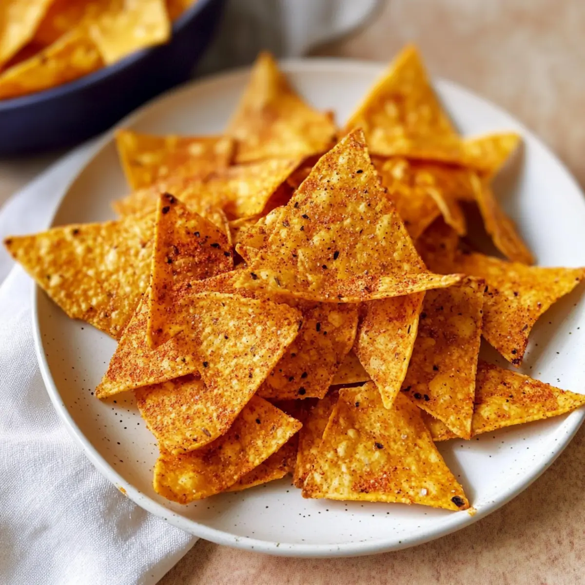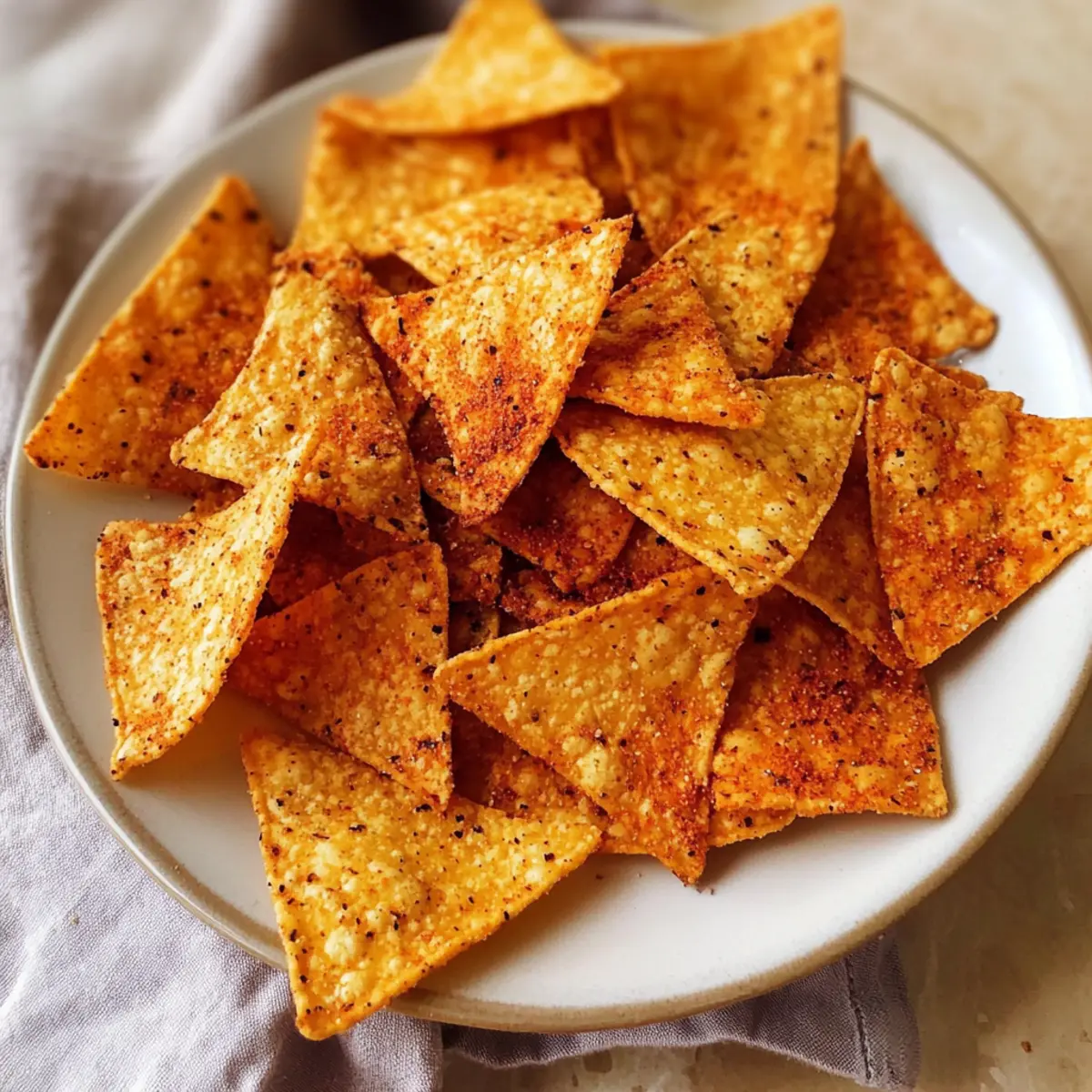 Plötzlich stand ich vor dem Regal mit den Snacks und fühlte mich von den unzähligen Verpackungen überfordert. Will ich wirklich diese fettigen Chips kaufen? Nein, ich wollte eine gesunde, selbstgemachte Alternative! Ein paar Minuten später hatte ich die perfekte Lösung gefunden: Hausgemachte Doritos! Mit diesem Rezept für einfache Tortilla-Chips, die in weniger als 25 Minuten in deinem Ofen oder Airfryer zubereitet werden können, kannst du deinen Snack-Gelüsten auf leckere Weise nachgeben. Diese Chips sind nicht nur gesünder als die im Laden, sondern sie sind auch vollgepackt mit natürlichen Zutaten, die ganz nach deinem Geschmack angepasst werden können. Ob zum Dippen oder einfach pur – wirst du auch in die knusprige Welt der hausgemachten Snacks eintauchen? Warum du diese hausgemachten Doritos lieben wirst? Einfachheit: Die Zubereitung erfordert nur wenige Schritte und keine komplizierten Techniken, sodass auch unerfahrene Köche schnell zum Ziel kommen. Gesunde Alternative: Mit natürlichen Zutaten sind diese Chips nicht nur frei von Konservierungsstoffen, sie sind auch vegan und somit ideal für alle, die eine bewusste Ernährung wünschen. Vielseitigkeit: Du kannst mit Gewürzen experimentieren – von Ranch-Gewürz bis hin zu süßem Zimt-Zucker – und so jedem Biss eine persönliche Note verleihen. Schnelligkeit: In weniger als 25 Minuten hast du knusprige Snacks, die perfekt für spontanen Besuch oder einen gemütlichen Filmabend sind. Crowd-Pleaser: Egal ob bei einem Abend mit Freunden oder als Snack für die Familie, diese hausgemachten Doritos sind ein echter Hit! Du wirst die positiven Reaktionen nicht nur bei deinen Lieben sehen, sondern auch den Unterschied zu gekauften Chips schmecken. Hausgemachte Doritos Zutaten • Für die Chips: Mais-Tortillas – Die Basis, die für Struktur und den typischen Crunch sorgt; wähle am besten biologische Exemplare. Avocadoöl – Hilft bei der Zubereitung und sorgt für knusprige Chips; du kannst auch Olivenöl oder ein neutrales Öl verwenden. Chilipulver – Verleiht den Chips etwas Würze; ersetze es durch Kreuzkümmel oder Paprika, wenn du magst. Geräuchertes Paprikapulver – Sorgt für das besondere rauchige Aroma; für einen milderen Geschmack kannst du normales Paprikapulver verwenden. Knoblauchpulver – Verbessert das Gesamtaroma; für eine andere Note kann auch Zwiebelpulver verwendet werden. Salz – Wichtig zur Würzung; du kannst es anpassen oder durch Meersalz ersetzen, um einen anderen Geschmack zu erhalten. Nährhefe – Gibt den Chips einen käsigen Geschmack, der sie traditionelleren Doritos ähnlicher macht; lasse sie weg, wenn sie nicht verfügbar ist. Entdecke die Welt der hausgemachten Doritos und bereite selbst diese leckeren und gesunden Snacks zu! Schritt-für-Schritt-Anleitung für Hausgemachte Doritos Step 1: Ofen vorheizen Heize deinen Ofen auf 180°C (360°F) vor und lege ein Backblech mit Backpapier aus. Diese Vorbereitung sorgt dafür, dass die Hausgemachten Doritos gleichmäßig gebacken werden und nicht ankleben. Ein gut vorgeheizter Ofen ist der Schlüssel zu knusprigen Chips, also achte darauf, dass du ihn früh genug einschaltest. Step 2: Tortillas schneiden Schneide die Mais-Tortillas mit einer Schere oder einem Pizzaschneider in 6 oder 8 gleichmäßige Dreiecke. Lege die geschnittenen Tortillastücke in eine Schüssel. Achte darauf, dass die Stücke nicht zu klein sind, damit sie beim Backen knusprig bleiben und nicht verbrennen. Step 3: Tortillastücke ölen Gib das Avocadoöl zu den Tortillastücken in die Schüssel und wirf alles gut um, bis jedes Stück gleichmäßig mit Öl bedeckt ist. Dies hilft nicht nur beim Bräunen, sondern sorgt auch für den gewünschten Crunch. Du kannst das Öl leicht mit den Händen einmassieren, um eine gleichmäßige Verteilung zu gewährleisten. Step 4: Gewürze hinzufügen In einer separaten Schüssel mischst du das Chilipulver, geräuchertes Paprikapulver, Knoblauchpulver und Salz. Streue diese Gewürzmischung über die öligen Tortillastücke und reibe sie gut ein. Damit stellst du sicher, dass jede Chip gleichmäßig gewürzt ist, was zu einem vollen Geschmack der hausgemachten Doritos führt. Step 5: Chips backen Lege die Tortillastücke in einer einzigen Schicht auf das Backblech. Backe die Chips etwa 15 Minuten lang, wobei du sie nach der Hälfte der Zeit umdrehst. Um sicherzustellen, dass die Chips perfekt gebacken sind, überprüfe sie nach 10 Minuten; sie sollten goldbraun und knusprig sein. Step 6: Abkühlen lassen Nimm die Hausgemachten Doritos aus dem Ofen und lasse sie vollständig abkühlen. Dieser Schritt ist wichtig, da die Chips beim Abkühlen ihre Knusprigkeit optimal entwickeln. Wenn sie noch warm serviert werden, können sie schnell weich werden und ihren leckeren Crunch verlieren. Lagerungstipps für Hausgemachte Doritos Raumtemperatur: Die Chips können in einem luftdichten Behälter bis zu einer Woche bei Raumtemperatur aufbewahrt werden, um ihre Frische zu bewahren. Kühlschrank: Sollten die Chips weich werden, kannst du sie im Kühlschrank aufbewahren, aber achte darauf, sie in einem gut verschlossenen Behälter zu lagern, um Feuchtigkeit zu vermeiden. Aufwärmen: Um die Knusprigkeit der hausgemachten Doritos wiederherzustellen, lege sie für einige Minuten bei 180°C (360°F) in den Ofen, bis sie wieder warm und knusprig sind. Freezer: Du kannst die Chips auch einfrieren, indem du sie in einem luftdichten Behälter für bis zu 1 Monat aufbewahrst; lasse sie vor dem Verzehr bei Raumtemperatur auftauen. Tipps für die besten hausgemachten Doritos Richtige Ölmenge: Achte darauf, dass die Tortillas gleichmäßig mit Avocadoöl bedeckt sind, aber nicht zu viel verwenden, um ein fettiges Ergebnis zu vermeiden. Tortillagröße: Schneide die Tortillas in gleichmäßige Stücke; kleinere Stücke können schneller verbrennen. Ein guter Umgang sorgt für perfekte, knusprige Chips. Backtemperatur: Jeder Ofen ist anders—beobachte 