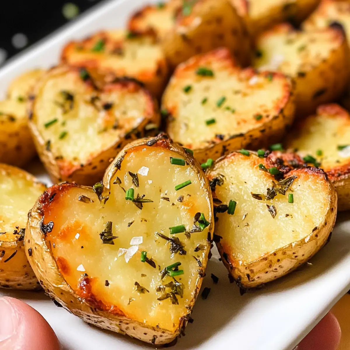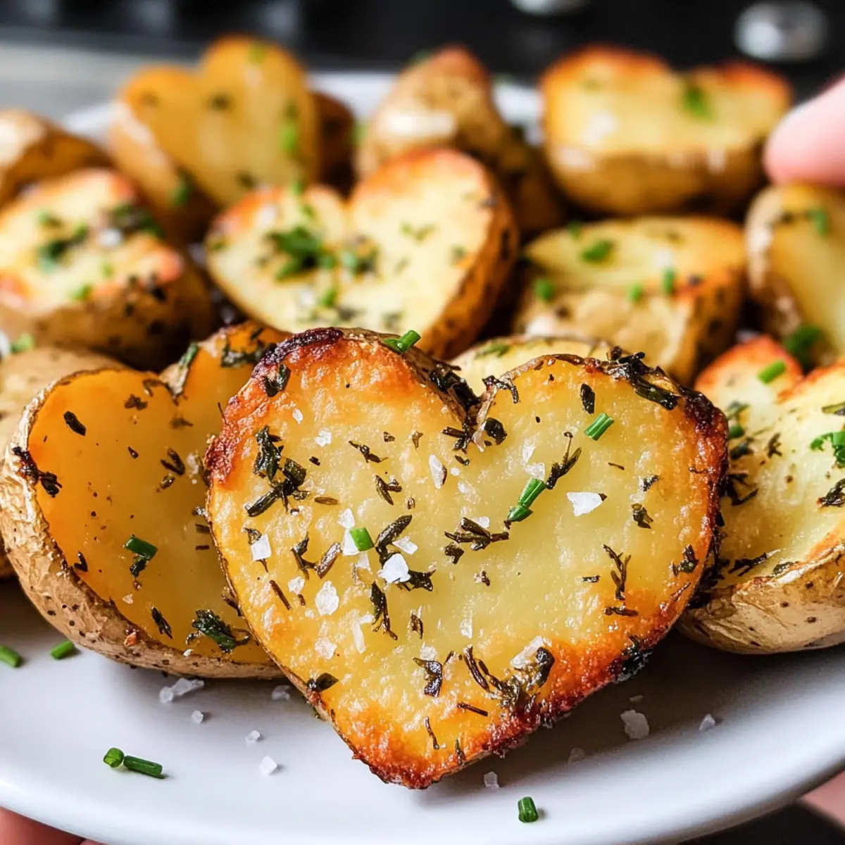 Es war ein nebliger Abend, und die Romantik hing förmlich in der Luft. Wenn man an ein romantisches Dinner denkt, darf eine charmante Beilage wie Herzförmige geröstete Kräuterkartoffeln nicht fehlen. Diese Kartoffeln sind außen wunderbar knusprig und innen wunderbar zart, was sie zu einem perfekten Begleiter für eure Lieblingsgerichte macht. Und das Beste daran? Sie sind kinderfreundlich und machen das Kochen zu einem gemeinsamen Erlebnis, das die Kleinen begeistert! Egal, ob ihr sie zu einem festlichen Dinner oder einfach zum Wochenendbrunch serviert, dieses einfache Rezept wird garantiert für Freude am Tisch sorgen. Seid ihr bereit, das kreative Kochen mit Herz in Angriff zu nehmen? Warum sind Herzförmige Kartoffeln so besonders? Besonderheit: Diese herzförmigen gerösteten Kräuterkartoffeln sind nicht nur ein Genuss für den Gaumen, sondern auch ein echter Augenöffner auf jedem Tisch. Einfachheit: Mit wenigen Zutaten und unkomplizierten Schritten gelingt dieses Rezept im Handumdrehen. Kindgerecht: Es macht Spaß, diese Kartoffeln gemeinsam mit den Kleinen zuzubereiten – eine schöne Möglichkeit, Zeit miteinander zu verbringen. Vielseitigkeit: Egal, ob als Beilage zu einem saftigen Filetsteak oder einem saftigen Grillhähnchen, sie passen perfekt zu jeder Mahlzeit. Gesundheit: Diese Kartoffeln sind eine nahrhafte und schmackhafte Alternative zu klassischen Beilagen und bereichern jedes Dinner. Warum nicht gleich auch unser Rezept für Leichter Joghurtkuchen Blaubeeren ausprobieren, um das Menü abzurunden? Herzförmige geröstete Kräuterkartoffeln Zutaten • Eine einfache Auflistung der Zutaten für eure herzförmigen gerösteten Kräuterkartoffeln: Für die Kartoffeln Yukon Gold Kartoffeln – Diese schaffen die ideale Textur; alternativ eignen sich auch andere wachsartige Kartoffeln. Olivenöl – Sorgt für reiche Aromen und Knusprigkeit; kann durch geschmolzene Butter ersetzt werden, um einen anderen Geschmack zu erzielen. Knoblauch – Verleiht dem Gericht einen aromatischen Tiefgang; frischer Knoblauch ist am besten, aber in der Not kann auch Knoblauchpulver verwendet werden. Für die Kräuter Frischer Thymian – Fügt einen duftenden, krautigen Geschmack hinzu; getrockneter Thymian kann als Ersatz verwendet werden, jedoch die Menge halbieren. Frischer Rosmarin – Bringt einen robusten Geschmack mit; getrockneter Rosmarin sollte fein gehackt werden, wenn ersetzt. Frische Schnittlauch – Gibt eine milde Zwiebelnote und eine frische Garnitur; kann durch Frühlingszwiebeln ersetzt werden, falls Schnittlauch nicht verfügbar ist. Für die Würze Meersalz und schwarzer Pfeffer – Unverzichtbar für die Würze und zum Hervorheben der Geschmäcker; nach Geschmack anpassen. Schritt-für-Schritt-Anleitungen für Herzförmige geröstete Kräuterkartoffeln Step 1: Ofen vorheizen und Backblech vorbereiten Heize deinen Ofen auf 220°C (425°F) vor und fette ein Backblech leicht mit Olivenöl ein. Dies sorgt dafür, dass die Herzförmigen gerösteten Kräuterkartoffeln gleichmäßig knusprig werden und nicht ankleben. Achte darauf, dass dein Backblech bereit ist, während der Ofen seine Temperatur erreicht. Step 2: Kräutermischung zubereiten In einer kleinen Schüssel mischst du Olivenöl, fein gehackten Knoblauch, frischen Thymian, Rosmarin und Schnittlauch. Rühre alles gut durch, bis die Kräuter gleichmäßig im Öl verteilt sind. Diese aromatische Mischung verleiht den Kartoffeln während des Backens eine köstliche Geschmacksnote. Step 3: Kartoffeln schneiden Schäle die Yukon Gold Kartoffeln und schneide sie in etwa 1,5 cm dicke Scheiben. Verwende einen herzförmigen Ausstecher, um die Herzen aus den Scheiben auszuschneiden. Achte darauf, dass die Schnitte gleichmäßig sind, damit die Herzförmigen gerösteten Kräuterkartoffeln gleichmäßig garen. Step 4: Kartoffeln würzen Gib die herzförmigen Kartoffeln in eine große Schüssel und übergieße sie mit der vorbereiteten Kräutermischung. Mische alles gut durch, bis die Kartoffeln gleichmäßig mit der Kräuter-Öl-Mischung bedeckt sind. Füge dann Meersalz und schwarzen Pfeffer nach Geschmack hinzu, um die Aromen zu intensivieren. Step 5: Kartoffeln anrichten und rösten Lege die gewürzten Herzförmigen gerösteten Kräuterkartoffeln auf das vorbereitete Backblech. Achte darauf, dass sie nicht überfüllt sind, um eine gleichmäßige Bräunung zu gewährleisten. Röste die Kartoffeln im vorgeheizten Ofen für etwa 20-30 Minuten, bis sie goldbraun und knusprig sind. Step 6: Servieren und genießen Nimm die Herzförmigen gerösteten Kräuterkartoffeln aus dem Ofen und lasse sie einen Moment abkühlen. Serviere sie heiß als bezaubernde Beilage zu deinem Lieblingsgericht. Ihre einzigartige Form und der köstliche Geschmack machen jedes Essen zu einem besonderen Moment. Variationen für Herzförmige geröstete Kräuterkartoffeln Lass deiner Kreativität freien Lauf und passe das Rezept nach deinem Geschmack an! Dairy-Free: Ersetze Olivenöl durch pflanzliche Margarine für eine milchfreie Variante, die ebenso köstlich schmeckt. Pikant: Füge eine Prise rote Pfefferflocken hinzu, um den Kartoffeln eine spicy Note zu verleihen. So wird es richtig aufregend auf dem Teller! Kräuterwechsel: Tausche die Kräuter gegen italienische Gewürzmischung aus, um einen neuen Geschmacksakzent zu setzen. Dies passt besonders gut zu mediterranen Gerichten. Käse-Liebhaber: Bestreue die Kartoffeln vor dem Rösten mit geriebenem Parmesan oder Feta für eine würzige, cremige Note. Der Käse verleiht ihnen zusätzlichen Geschmackstiefgang. Herzhafter Twist: Mische etwas geräucherten Paprika unter die Kräutermischung, um eine rauchige Überraschung zu kreieren. Dies harmoniert hervorragend mit Grillgerichten! Süße Note: Probiere es mit einem Balsamico-Glasur-Topping vor dem Servieren, um eine süß-säuerliche Balance zu schaffen. Das macht die Kartoffeln besonders einladend. Knoblauchüberfluss: Für Knoblauchliebhaber verrühre