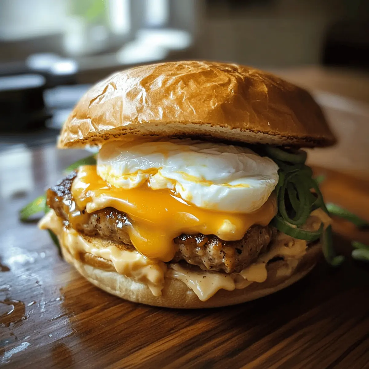 Es war ein sonniger Sonntagmorgen, als ich nach einer herzhaften Frühstücksoption suchte, die sowohl Genuss als auch Sättigung versprach. Mit meinem neuen Rezept für ein herzhaftes Frühstücks-Sandwich mit Truthahn-Wurst und pochierten Eiern wird jeder Biss zu einem kleinen Fest für die Sinne. Dieses Gericht ist nicht nur perfekt für ein entspanntes Brunch mit Freunden, sondern auch ideal für hektische Wochentage, an denen man sich nach etwas Warmem und Befriedigendem sehnt. Außerdem ist es einfach zuzubereiten und kann an die eigenen Vorlieben angepasst werden – ein echter Alleskönner! Wer könnte da schon widerstehen? Für welche köstliche Variation entscheiden Sie sich? Warum werden Sie dieses Rezept lieben? Simplicity, Die Zubereitung ist unkompliziert und benötigt nur grundlegende Kochkünste. Vielfältig, Dieses Sandwich lässt sich leicht an persönliche Vorlieben anpassen – probieren Sie es mit Avocado oder einer anderen Sauce! Sättigend, Mit saftigen Putenwürstchen, frischen Eiern und würziger Chipotle-Mayonnaise ist jeder Biss eine Geschmacksexplosion. Ideal für jeden Anlass, Ob für ein entspanntes Sonntagsfrühstück oder für eine schnelle Woche im Voraus, es findet immer seinen Platz auf Ihrem Tisch. Geselligkeit, Überraschen Sie Freunde und Familie mit diesem köstlichen Brunch-Gericht, das alle begeistert – ein wahrer Hit! Für weitere Ideen schauen Sie sich unser Rezept für Wuerzige Chinakohl Rinderhack oder die Erdbeer Spinat Genuss an! Zutaten für das Frühstückssandwich Für die Patty • Putenhackfleisch – Hauptproteinquelle, Sie können Hühnchen oder eine vegetarische Alternative verwenden. • Fenchelsamen – Fügt Wärme und einen Hauch von Lakritze hinzu; weglassen oder italienische Gewürze verwenden. • Knoblauch – Für aromatische Tiefe; kann auch durch Knoblauchpulver ersetzt werden. • Meersalz und schwarzer Pfeffer – Würzen zur Geschmacksverstärkung; nach Geschmack anpassen. Für die Eier • Eier (groß, freilaufend) – Bietet Reichhaltigkeit und Protein; für eine vegane Option durch Eiersatz ersetzen. Für das Sandwich • Sonnenblumenöl – Essentiell zum Braten in der Pfanne und gibt Geschmack; kann durch Olivenöl ersetzt werden. • Brioche-Brötchen – Weiches, süßes Brot, das das Sandwich zusammenhält; alternativ Vollkorn- oder glutenfreie Brötchen nutzen. • Cheddar-Käse (3,5 oz, in Scheiben) – Fügt Cremigkeit und würzige Tiefe hinzu; kann durch schmelzenden Käse wie Monterey Jack ersetzt werden. • Frühlingszwiebeln (3, dünn geschnitten) – Verleiht einen milden Zwiebelgeschmack und Frische; kann durch Schnittlauch ersetzt werden. Für die Chipotle-Mayonnaise • Mayonnaise – Basis für die Chipotle-Mayonnaise; veganisierte Mayo für eine milchfreie Version verwenden. • Chipotle-Sauce – Fügt Hitze und einen rauchigen Geschmack hinzu; kann durch Sriracha oder eine andere scharfe Sauce ersetzt werden. Schritt-für-Schritt-Anleitung für Herzhafter Frühstückssandwich mit Putenwurst und pochierten Eiern Schritt 1: Öl erhitzen Erhitzen Sie Sonnenblumenöl in einer großen Bratpfanne bei mittlerer Hitze. Warten Sie, bis das Öl leicht shimmernd aussieht, bevor Sie die Putenwürstchen-Patties hineingeben. Diese sollte goldbraun werden und ihr Aroma entfalten, während das Öl warm wird. Schritt 2: Patties vorbereiten In einer Schüssel das Putenhackfleisch mit Fenchelsamen, gehacktem Knoblauch, Meersalz und schwarzem Pfeffer gut vermengen. Formen Sie die Mischung zu gleichmäßigen Patties, die etwa einen Zentimeter dick sind. Legen Sie die Patties beiseite, während das Öl erhitzt wird. Schritt 3: Patties braten Legen Sie die Patties vorsichtig in die heiße Pfanne und braten Sie sie 5-7 Minuten pro Seite, bis sie goldbraun und durchgegart sind. Achten Sie darauf, die Patties nicht zu überfüllen, damit sie gleichmäßig braten können. Sie sind richtig, wenn sie eine schöne Bräune und eine feste Textur haben. Schritt 4: Eier pochieren Füllen Sie einen kleinen Topf mit Wasser und bringen Sie es zum Simmern. Reduzieren Sie die Hitze und rühren Sie das Wasser sanft um, um einen kleinen Whirlpool zu erzeugen. Lassen Sie die Eier vorsichtig ins Wasser gleiten und pochieren Sie sie 3-4 Minuten, bis das Eiweiß fest und das Eigelb noch leicht flüssig ist. Schritt 5: Sandwich zusammenstellen Verteilen Sie die Chipotle-Mayonnaise großzügig auf den horizontalen Brioche-Brötchen. Beginnen Sie mit einem Patty, gefolgt von einer Scheibe Cheddar-Käse, frischen Frühlingszwiebeln und krönen Sie es mit einem pochierten Ei. Beachten Sie die Kombination der warmen und kalten Zutaten für ein harmonisches Geschmackserlebnis. Schritt 6: Sofort servieren Servieren Sie das herzhafte Frühstückssandwich sofort, solange es warm ist. Umgeben Sie das Sandwich mit frischem Obst oder einem leichten Salat für eine ausgewogene Mahlzeit. Genießen Sie diese Geschmacksexplosion, während die cremigen und herzhaften Aromen sich vereinen. Variationen & Substitutionen Lassen Sie Ihrer Kreativität freien Lauf und gestalten Sie dieses Rezept ganz nach Ihrem Geschmack! Glutenfrei: Verwenden Sie glutenfreie Brötchen, um das Sandwich für glutenempfindliche Esser zugänglich zu machen. So bleibt der Genuss für jeden erhalten! Vegetarisch: Tauschen Sie das Putenhackfleisch gegen pflanzliche Wurstalternativen aus. So wird das Rezept zu einer herzhaften vegetarischen Option. Extra scharf: Fügen Sie frische Jalapeños für einen zusätzlichen Kick hinzu. Perfekt für alle, die es gerne würzig mögen! Cremig: Ersetzen Sie Cheddar-Käse durch cremigen Brie, um eine neue Geschmacksebene zu erreichen. Schmelzend und lecker! Mediterran: Verwenden Sie Feta-Käse und Oliven für einen mediterranen Twist, der Frische und Geschmack vereint. Avocado oder Spinat: Verleihen Sie Ihrem Sandwich mit Avocado oder frischem Spinat eine zusätzliche Portion Nährstoffe und Cremigkeit. Das macht jeden Biss noch köstlicher! Hausge