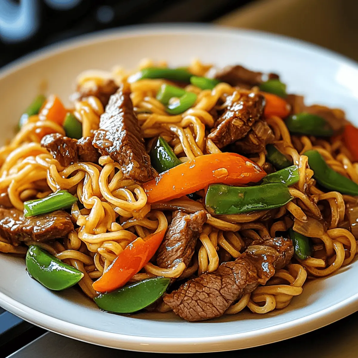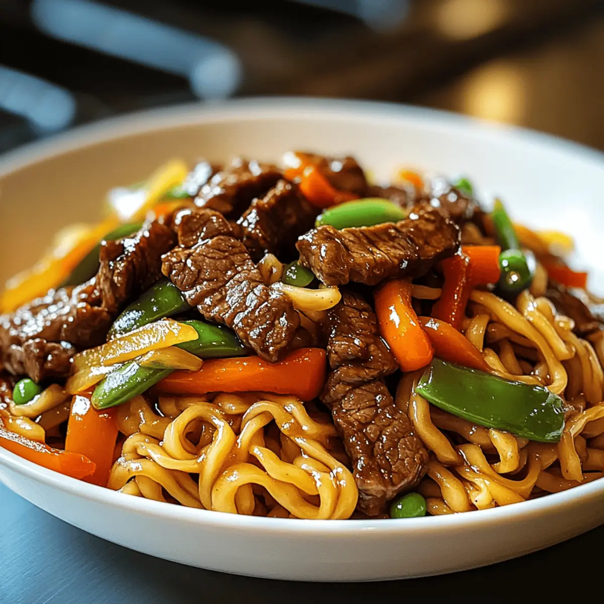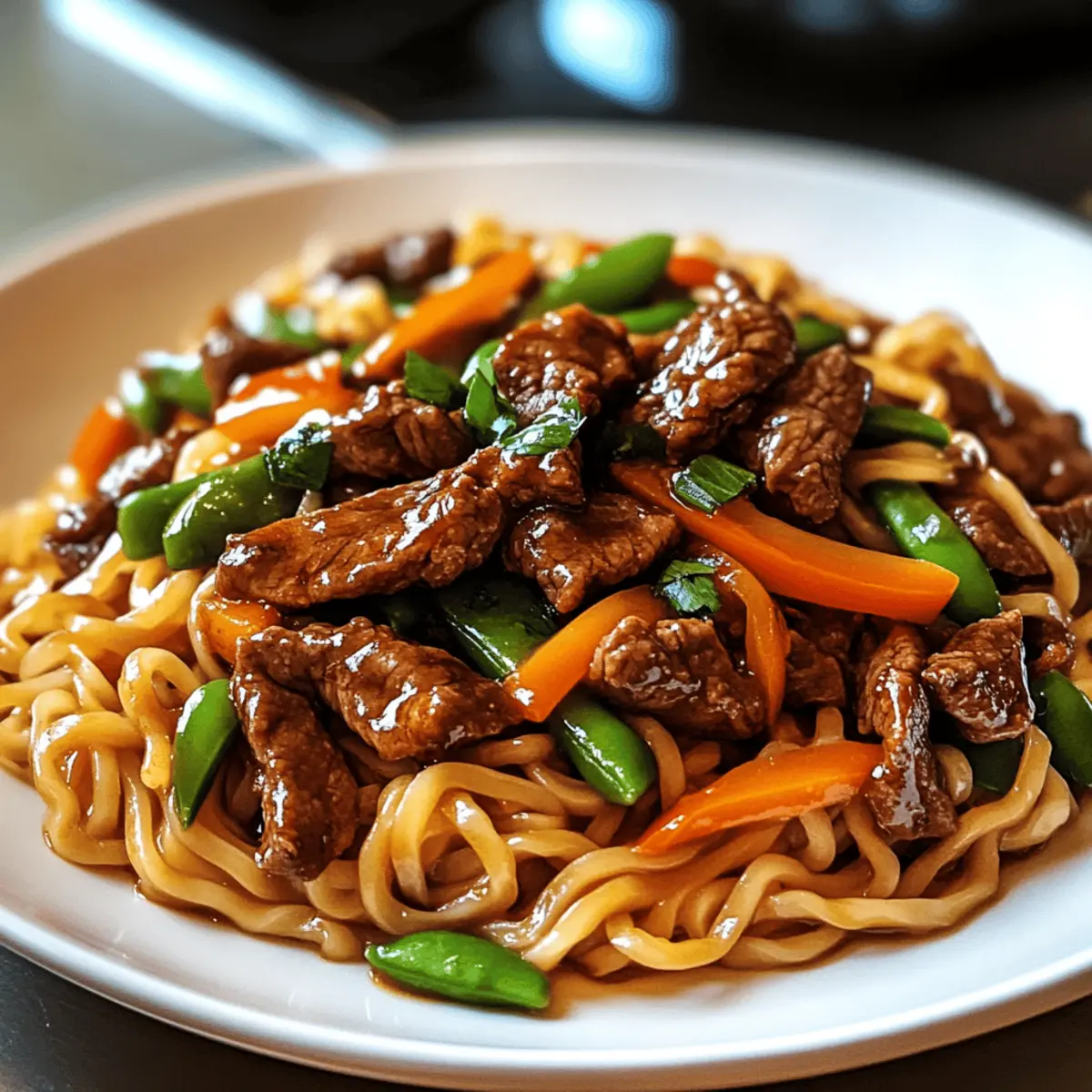 Eines Abends, während ich in der Küche stand und die frischen Zutaten vor mir anordnete, fiel mein Blick auf die Hoisin-Sauce. Sofort wusste ich, dass es Zeit für ein schnelles und köstliches Gericht war: Hoisin Beef Noodles! Dieses Rezept verbindet zarte Rindfleischstreifen, knackiges Gemüse und chewy Nudeln in einem harmonischen Zusammenspiel von Aromen. Außerdem sind diese Noodles nicht nur schneller zubereitet als Lieferung, sondern sie geben dir auch die Sicherheit und Zufriedenheit, die nur hausgemachtes Essen bieten kann. Perfekt für stressige Wochentage oder zur Vorbereitung von Mahlzeiten – du wirst überrascht sein, wie einfach und dennoch beeindruckend dieses Gericht ist. Bereit, deinem Abendessen einen aufregenden Twist zu geben? Warum wirst du dieses Rezept lieben? Einfachheit: Die Zubereitung ist kinderleicht und erfordert keine komplizierten Kochtechniken. Jeder kann diese Hoisin Rindfleisch Nudeln zaubern! Schneller Genuss: In weniger als 30 Minuten von der Küche auf den Tisch – perfekt für hektische Wochentage oder spontane Dinnerpartys. Vielseitigkeit: Passe das Rezept ganz nach deinem Geschmack an; tausche das Rindfleisch gegen Hähnchen oder Tofu aus und füge dein Lieblingsgemüse hinzu! Nährstoffreich: Dank frischer Zutaten wie Gemüse und hochwertigem Protein ist dieses Gericht nicht nur lecker, sondern auch gesund. Hauseigenes Takeout: Hausgemacht schmeckt immer besser – mit der selbstgemachten Hoisin-Sauce erhältst du eine süß-herzhafte Note, die du in Liefergerichten nie findest. Lass dich inspirieren und probiere auch meine Einfaches Schwarzer Pfeffer Rindfleisch Udon oder die Rinderhackfleisch Enchiladas für mehr kulinarische Abwechslung! Hoisin Rindfleisch Nudeln Zutaten Für das Rindfleisch • Rindfleisch (z.B. Sirloin oder Flank Steak) – Wähle zarte Stücke für den besten Geschmack und eine saftige Textur. Für die Nudeln • Nudeln (z.B. Reis- oder Eiernudeln) – Du kannst Reisnudeln für eine glutenfreie Option verwenden oder Eiernudeln, wenn du es bevorzugst. Für die Soße • Hoisin-Sauce – Diese Sauce verleiht deinem Gericht eine süß-herzhafte Note; Teriyaki-Sauce kann auch als Ersatz verwendet werden. Für das Gemüse • Gemüse (z.B. Paprika, Karotten, Zuckerschoten) – Frisches Gemüse sorgt für Textur und Nährstoffe; saisonale Auswahl fördert den Geschmack. Für das Braten • Öl (z.B. Pflanzen- oder Sesamöl) – Wird zum Anbraten verwendet; Sesamöl fügt ein unverwechselbares Aroma hinzu. Schritt-für-Schritt-Anleitung für Hoisin Rindfleisch Nudeln Step 1: Zutaten vorbereiten Schneide das Rindfleisch in dünne Streifen gegen die Faser. Das sorgt für zarte Stücke, die beim Braten schnell gar werden. Wasche das Gemüse und schneide es in mundgerechte Stücke. Diese Vorbereitungen helfen dir, die Hoisin Rindfleisch Nudeln zügig und effizient zu kochen, während du alles griffbereit hast. Step 2: Nudeln kochen Bringe einen großen Topf mit Wasser zum Kochen und füge die Nudeln hinzu. Koche sie gemäß den Anweisungen auf der Verpackung, normalerweise etwa 5-7 Minuten, bis sie al dente sind. Nachdem die Nudeln fertig sind, lass sie in einem Sieb abtropfen und stelle sie beiseite. So kannst du sie später leicht mit der Soße vermischen. Step 3: Rindfleisch anbraten Erhitze in einer großen Pfanne oder einem Wok bei hoher Temperatur 2 Esslöffel Öl. Füge das vorbereitete Rindfleisch hinzu und brate es für 2-3 Minuten, bis es schön gebräunt ist. Achte darauf, dass die Pfanne heiß genug ist, damit das Fleisch nicht dämpft, sondern perfekt angebraten wird. Dies sorgt für einen ausgezeichneten Geschmack und eine angenehme Textur. Step 4: Gemüse hinzufügen Gib das geschnittene Gemüse, wie Paprika und Karotten, zur Pfanne dazu. Brate es für etwa 2 Minuten unter häufigem Rühren an, bis das Gemüse gerade weich, aber noch knackig ist. So bleibt die Frische erhalten und das Gemüse ergänzt die Hoisin Rindfleisch Nudeln mit Textur und Nährstoffen. Step 5: Kombinieren Füge die bereits gekochten Nudeln und 4 Esslöffel Hoisin-Sauce in die Pfanne. Rühre alles gut um, sodass die Nudeln gleichmäßig mit der Soße bedeckt werden. Brate die Mischung für weitere 2 Minuten, bis alles gut heiß ist. Achte darauf, dass die Sauce schön glänzt und die noodles durch die Hitze aufnimmt. Step 6: Servieren Richte die Hoisin Rindfleisch Nudeln auf Tellern an und garniere sie optional mit einem Spiegelei und eingelegtem Gemüse. Diese letzte Note bringt noch mehr Geschmack und macht das Gericht besonders. Genieß dein selbstgemachtes Abendessen! Hoisin Rindfleisch Nudeln Variationen Lass deiner Kreativität freien Lauf und passe dieses Rezept nach deinem Geschmack an. Glutenfrei: Verwende Reisnudeln, um eine glutenfreie Option zu kreieren. Diese sind ebenso lecker! Vegetarisch: Ersetze das Rindfleisch durch Tofu oder Tempeh für eine pflanzliche Variante. Mariniere den Tofu vorher für zusätzlichen Geschmack. Extra Gemüse: Füge zusätzliches Gemüse wie Brokkoli oder Zucchini hinzu. Das sorgt für mehr bunte Vielfalt und Nährstoffe. Schärfe: Integriere frische Chilischoten oder Chiliöl, um dem Gericht einen scharfen Kick zu verleihen. Für Liebhaber von Schärfe ein absolutes Muss! Nussiges Aroma: Streue geröstete Erdnüsse oder Cashews über die fertigen Nudeln. Das gibt dir einen knusprigen Biss und ein tolles Aroma. Asiatische Note: Beträufle das Gericht mit etwas Sojasauce oder Sesamöl für einen intensiveren Geschmack. Perfekt für solche, die ein intensives Aroma lieben. Süße Note: Ein Hauch von Honig oder Agavendicksaft kann deinem Gericht eine exquisite süße Note verleihen, die sich wunderbar mit der Hoisin-Sauce ergänzt. Proteinreiche Variante: Ergänze das Gericht mit gekochtem Ei oder einer Portion Edamame. So wird es nicht nur sättigender, sondern auch noch nahrhafter. Falls du weitere Inspirationen suchst, probiere auch meine köstlichen Einfaches Schwarzer Pfeffer Rindfleisch Udon oder di