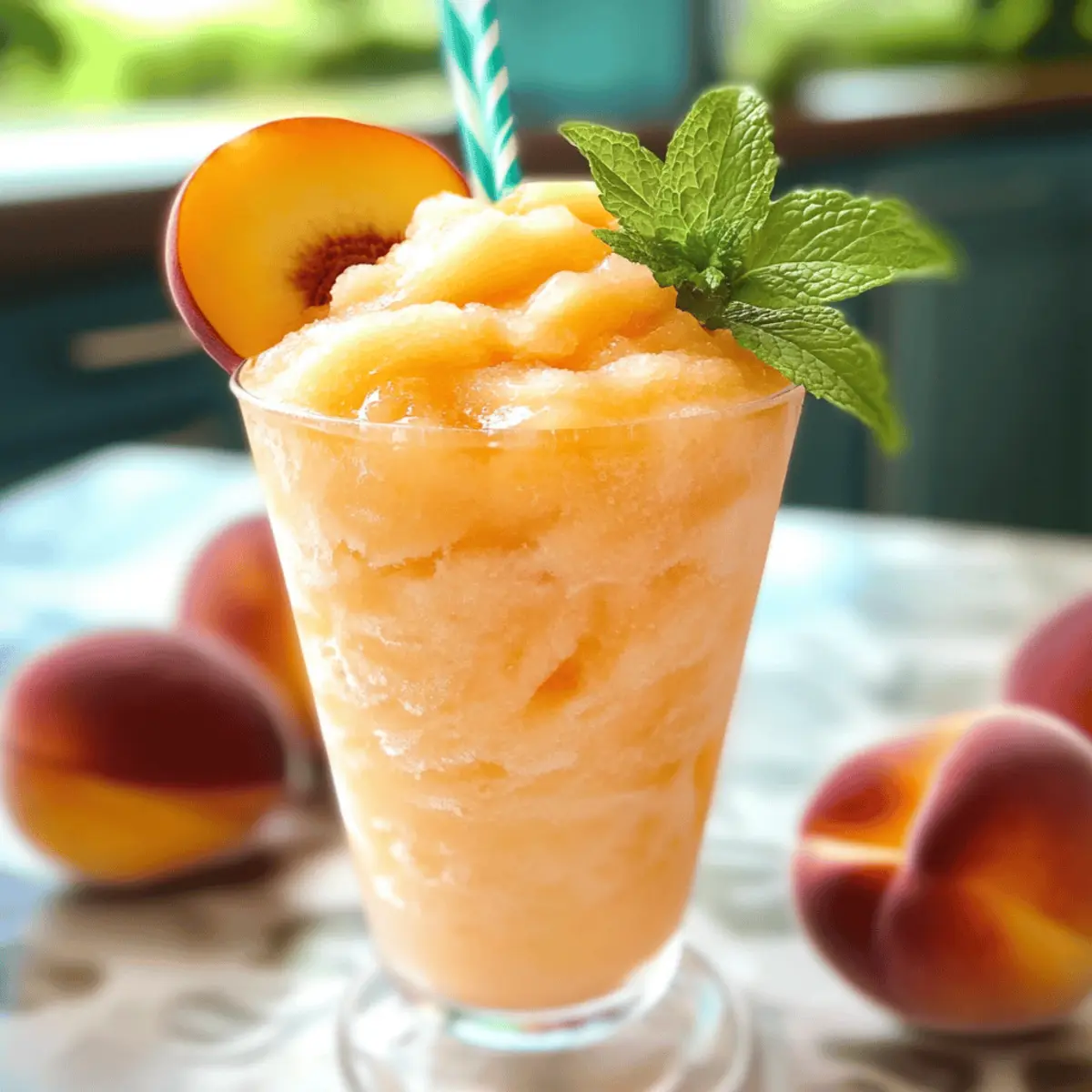 Sommerliche Hitze fordert einen kühlen Begleiter, der uns den Tag versüßt. Mit diesem Rezept zaubern wir einen erfrischenden Homemade Peach Slurpee, der einfach alles in den Schatten stellt! Durch die Kombination von saftigen, reifen Pfirsichen und einem Hauch von frischem Zitronensaft entsteht ein köstlicher, gefrorener Genuss, der nicht nur schnell zubereitet ist, sondern sich auch wunderbar an persönliche Vorlieben anpassen lässt. Dieser Slurpee ist die perfekte Abkühlung für einen Nachmittag im Garten und begeistert sowohl Kinder als auch Erwachsene. Wer könnte da widerstehen? Neugierig, welche Variationen Sie ausprobieren können? Lassen Sie uns gleich zusammen loslegen! Was macht diesen Slurpee besonders? Einfachheit: Die Zubereitung ist kinderleicht und erfordert nur wenige Zutaten, die alle schnell miteinander vermischt werden. Jeder kann diesen Slurpee zaubern! Frischer Genuss: Mit reifen Pfirsichen und frischem Zitronensaft entsteht ein Geschmackserlebnis, das den Sommer in Ihr Glas bringt. Anpassungsfähigkeit: Variieren Sie das Rezept mit verschiedenen Früchten wie Beeren oder Mango und kreieren Sie jeden Tag eine neue Geschmacksexplosion. Perfekt für Partys: Egal ob beim Picknick oder am Pool – dieser Slurpee ist ein absoluter Hit und begeistert alle Gäste. Gesunde Erfrischung: Ohne künstliche Zusätze bietet dieser Slurpee eine fruchtige Alternative zu handelsüblichen Getränken. Lust auf mehr köstliche Sommerrezepte? Probieren Sie auch unseren Millionaire Peach Salad aus! Pfirsich Slurpee Zutaten Entdecken Sie die köstlichen Zutaten, die diesen nahrhaften Slurpee perfekt machen! Für die Basis • Reife Pfirsiche – liefern natürliche Süße und den vollen Geschmack; frische Pfirsiche sind am besten. • Zitronensaft – fügt einen erfrischenden Kick hinzu, um die Süße auszubalancieren; frisch gepresst ist ideal. • Zucker – verstärkt die Süße nach Geschmack; passen Sie die Menge je nach Süße der Pfirsiche an. • Eiswürfel – sind unerlässlich für die slushige Konsistenz; die Menge kann je nach gewünschter Dicke angepasst werden. • Wasser oder Pfirsichsaft – dient als Basis; Pfirsichsaft intensiviert den Pfirsichgeschmack, während Wasser eine leichtere Option bietet. Schritt-für-Schritt-Anleitung für Pfirsich Slurpee Schritt 1: Basis vorbereiten Zuerst die reifen Pfirsiche schälen, entkernen und in grobe Stücke schneiden. Geben Sie die Pfirsichstücke zusammen mit frischem Zitronensaft und Zucker in einen Mixer. Gießen Sie etwas Wasser oder Pfirsichsaft hinzu, um die Mischung flüssiger zu machen. Mixen Sie alles bei hoher Geschwindigkeit für etwa 30 Sekunden, bis eine glatte, cremige Konsistenz erreicht ist und die lebendige Farbe der Pfirsiche sichtbar wird. Schritt 2: Eis hinzufügen Sobald die Basis schön glatt ist, fügen Sie nach und nach etwa zwei Tassen Eiswürfel hinzu. Mixen Sie die Mischung erneut bei mittlerer Geschwindigkeit, bis die Eiswürfel vollständig zerkleinert sind und eine slushige Konsistenz entsteht. Achten Sie darauf, die Mischung regelmäßig zu stoppen und mit einem Spatel nach den Seiten des Mixers zu schaben, damit alles gleichmäßig verarbeitet wird. Schritt 3: Servieren Sobald die Mischung die perfekte slushige Konsistenz hat, füllen Sie klare Gläser mit dem fertigen Pfirsich Slurpee. Diese Präsentation zeigt die lebendige Farbe und die frische Textur des Getränks. Sie können optional mit frischen Minzblättern und Pfirsichscheiben garnieren, um dem Slurpee das gewisse Etwas zu verleihen. Schritt 4: Genießen Servieren Sie den Pfirsich Slurpee sofort für das beste Geschmackserlebnis. Achten Sie darauf, dass Sie ihn frisch genießen, während die Konsistenz noch perfekt slushy ist. Jeder Schluck wird Sie an die sonnigen Sommertage erinnern und ist eine erfrischende Alternative zu herkömmlichen Getränken. Lagerungstipps für Pfirsich Slurpee Raumtemperatur: Lagern Sie den Slurpee nicht bei Raumtemperatur, da er schnell schmelzen und an Qualität verlieren kann. Kühlschrank: Der Pfirsich Slurpee sollte idealerweise sofort serviert werden, kann aber bis zu 2 Stunden im Kühlschrank aufbewahrt werden. Stellen Sie sicher, dass Sie ihn in einem luftdichten Behälter aufbewahren. Gefrierfach: Wenn Sie Reste haben, können diese bis zu 1 Woche im Gefrierfach aufbewahrt werden. Lassen Sie den Slurpee vor dem Servieren einige Minuten bei Raumtemperatur stehen, um eine slushige Konsistenz wiederherzustellen. Wiedererwärmung: Ein Gefrier-Pfirsich Slurpee kann nur durch vorsichtiges Nachmixen (ohne zusätzliche Flüssigkeit) wiederhergestellt werden, um die perfekte Textur zu erzielen. Pfirsich Slurpee Variationen entdecken Passen Sie diesen köstlichen Slurpee ganz nach Ihrem Geschmack an – genießen Sie die vielfältigen Möglichkeiten! Beeren-Boost: Fügen Sie eine Handvoll gemischter Beeren hinzu, um zusätzliche Fruchtaromen und eine schöne Farbe zu erhalten. Genießen Sie die bunte Vielfalt, die Ihr Getränk noch erfrischender macht. Tropisches Flair: Entdecken Sie den Geschmack von Ananas oder Mango für eine exotische Note in Ihrem Slurpee. Diese Früchte bringen nicht nur Farbe, sondern auch eine süße, sonnige Abwechslung. Zuckerfrei: Verwenden Sie statt Zucker Honig oder Agavensirup für eine gesunde Süßungsalternative. So genießen Sie einen köstlichen Slurpee, der gleichzeitig auch nahrhaft ist. Sparkling Twist: Ersetzen Sie das Wasser durch spritziges Mineralwasser oder aromatisierte Kräutertees für einen sprudelnden Genuss. Dieses Upgrade sorgt für mehr Komplexität und ein aufregendes Mundgefühl. Fruchtige Kombination: Mischen Sie Pfirsiche mit Pflaumen oder Aprikosen, um eine interessante Geschmackskombination zu kreieren. Je mehr Früchte, desto mehr Vielfalt – jeder Schluck wird aufregend neu! Kräuter-Kick: Fügen Sie frische Minze oder Basilikum hinzu, um einen überraschenden Kräutergeschmack zu integrieren. Diese Kombination bringt Frische und einen aromatisch
