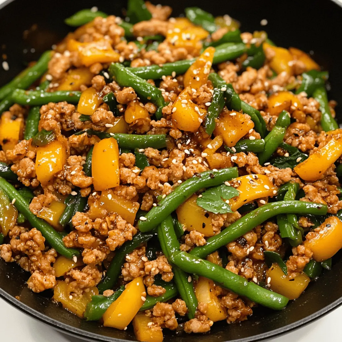 “Wenn der Hunger kommt und die Zeit drängt, sind einfache, schnelle Rezepte wie mein Honig-Sesam-Gemüse-Hühnchen-Pfannengericht die beste Lösung. Diese köstliche Kombination aus saftigem, magerem Hackfleisch, knackigen grünen Bohnen und süßen Paprika in einer liebevoll zubereiteten Honig-Sesam-Soße ist nicht nur eine Augenweide, sondern auch ein wahres Familien-Favorit – perfekt für ein schnelles Abendessen an einem Dienstagabend! Der Clou? Dieses Gericht benötigt nur 30 Minuten Vorbereitung und ist eine gesunde Variante, die zudem noch köstlich schmeckt. Wer hätte gedacht, dass wir das Beste aus dem Abendessen herausholen können, ohne stundenlang in der Küche stehen zu müssen? Lass uns gleich loslegen und dieses tolle Rezept entdecken!” Warum ist dieses Rezept so besonders? Schnelligkeit: In nur 30 Minuten zaubern Sie ein köstliches Gericht, das selbst an hektischen Wochentagen perfekt ist. Familienfreundlich: Dieses Rezept ist ein Hit bei Groß und Klein und sorgt für zufriedene Gesichter am Esstisch. Gesund: Mit magerem Hackfleisch und frischem Gemüse ist es eine gesunde Wahl für alle, die auf ihre Ernährung achten. Vielseitigkeit: Variieren Sie mit verschiedenen Gemüsesorten oder probieren Sie es mit Rinderhack, um neue Geschmäcker zu entdecken. Einfache Zubereitung: Dank der praktischen One-Pan-Methode bleibt die Küche sauber und die Zubereitung unkompliziert. Für weitere schnelle Rezepte empfehle ich die Chicken Wonton Tacos oder die Air Fryer Pasta, die ebenso schnell und lecker zubereitet sind! Honig-Sesam-Hähnchen-Pfanne Zutaten Für das Gericht Olivenöl – Optimal für das Anbraten, verwenden Sie extra natives Olivenöl für den besten Geschmack. Hackfleisch vom Hähnchen – Die Hauptproteinquelle. Kann durch Putenhackfleisch ersetzt werden. Grüne Bohnen – Verleiht Knusprigkeit und Nährstoffe. In 2,5 cm lange Stücke geschnitten für bessere Optik und einfacheren Verzehr. Gelbe Paprika – Bringt Süße und Farbe ins Spiel. In Würfel geschnitten für gleichmäßiges Garen. Salz und Pfeffer – Für die Würze. Nach Geschmack anpassen, abhängig von der persönlichen Vorliebe. Honig – Sorgt für Süße und hilft, die Soße zu karamellisieren. Verwenden Sie einen milden Honig für einen sanfteren Geschmack. Sojasoße – Fügt eine tiefere Umami-Note hinzu. Bei Salzrestriktionen kann eine natriumarme Variante genutzt werden. Reisessig – Bringt Frische durch Säure. Kann durch Apfelessig ersetzt werden. Geröstetes Sesamöl – Verleiht eine nussige Note. Unverzichtbar für den echten Sesamgeschmack. Geröstete Sesamsamen – Zum Garnieren und für zusätzlichen Geschmack. Können bei Nussallergien weggelassen werden. Knoblauch – Aromatische Basisnote. Frischer, gehackter Knoblauch ist für maximale Potenz am besten. Ingwer – Sorgt für Wärme und Gewürz. Frisch gehackter Ingwer verbessert den Geschmack mehr als getrockneter. Wasser und Maisstärke – Verdickt die Soße. Achten Sie darauf, die Maisstärke gründlich zu mischen, um Klumpen zu vermeiden. Hinweis Dieses Rezept für die Honig-Sesam-Hähnchen-Pfanne ist nicht nur einfach und gesund, sondern auch schnell zubereitet – ideal für ein köstliches, schnelles Abendessen! Schritt-für-Schritt-Anleitung für die Honig-Sesam-Hähnchen-Pfanne Schritt 1: Sauce vorbereiten Mischen Sie in einer Schüssel die Sojasauce, den Honig, den Reisessig, den Knoblauch und den Ingwer. In einer separaten Tasse verrühren Sie 2 Esslöffel Wasser mit der Maisstärke, bis sie vollständig gelöst ist. Kombinieren Sie beides, um eine dickflüssige Sauce zu erhalten. Stellen Sie die fertige Sauce beiseite, während Sie das Hackfleisch braten. Schritt 2: Hähnchen anbraten Erhitzen Sie in einer großen Pfanne bei mittelhoher Hitze ½ Esslöffel Olivenöl. Geben Sie das Hackfleisch hinzu und braten Sie es 1-2 Minuten lang an, bis es von allen Seiten goldbraun wird. Rühren Sie das Fleisch regelmäßig um, um gleichmäßige Bräunung zu gewährleisten. Nach dem Garen das Hähnchen aus der Pfanne nehmen und in eine Schüssel umfüllen. Schritt 3: Gemüse sautieren Fügen Sie in dieselbe Pfanne den restlichen Esslöffel Olivenöl hinzu und geben Sie die grünen Bohnen sowie die gewürfelten gelben Paprika hinein. Würzen Sie das Gemüse mit Salz und Pfeffer. Kochen Sie alles für 5-7 Minuten, bis das Gemüse zart und leicht angebräunt ist. Achten Sie darauf, das Gemüse regelmäßig zu wenden, um eine gleichmäßige Garung zu gewährleisten. Schritt 4: Zutaten kombinieren Legen Sie das gebratene Hähnchen wieder in die Pfanne zu den Gemüse. Gießen Sie die vorbereitete Sauce um das Gemüse und das Hähnchen und rühren Sie alles vorsichtig um, bis die Zutaten gleichmäßig überzogen sind. Lassen Sie das Ganze noch 1-2 Minuten bei mittlerer Hitze köcheln, damit die Aromen gut miteinander verschmelzen. Schritt 5: Servieren Servieren Sie die Honig-Sesam-Hähnchen-Pfanne direkt über gekochtem Reis oder einer anderen Beilage Ihrer Wahl. Garnieren Sie das Gericht nach Belieben mit gerösteten Sesamsamen und Schnittlauch. Fügen Sie zusätzlich etwas Sojasauce oder Chili-Crisp für mehr Geschmack hinzu, falls gewünscht. Genießen Sie diese gesunde und schnelle Mahlzeit! Was passt gut zur Honig-Sesam-Hähnchen-Pfanne? Die perfekte Ergänzung zu einer leckeren Honig-Sesam-Hähnchen-Pfanne macht Ihr Abendessen zu einem Fest der Aromen und Texturen. Jasminreis: Dieser duftende Reis bildet die ideale Grundlage, um die süße Soße aufzufangen und harmoniert wunderbar mit dem Hähnchen. Knuspriger Salat: Ein frischer Salat mit knackigen Gemüsesorten bringt eine gewisse Leichtigkeit und Frische ins Spiel, die perfekt dazu passt. Gebratene Zucchini: Vielseitig und saftig, braten Sie sie einfach in der Pfanne, um eine köstliche Beilage mit zusätzlichen Texturen zu erhalten. Süß-saure Karotten: Diese Karotten bieten eine wunderbare süße Note, die die Aromen des Hähnchens ergänzt. Sie sind einfach zuzuber