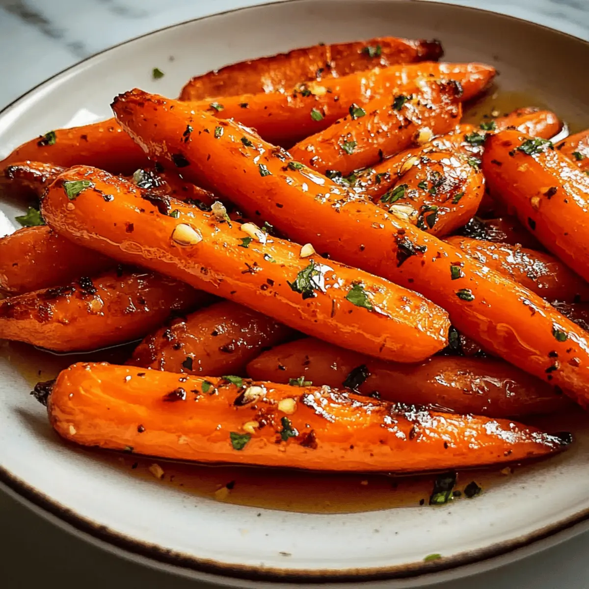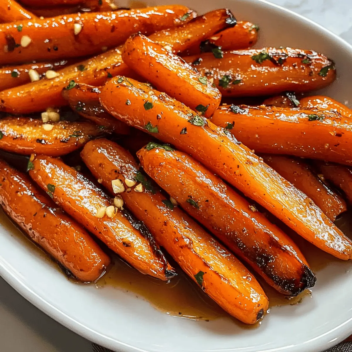 Es gibt nichts Besseres, als den verlockenden Duft von im Ofen gerösteten Karotten, der durch die Küche zieht. Diese honigglasierten Karotten mit Knoblauch sind nicht nur ein einfaches Beilagenrezept, sondern ein echtes Highlight, das eure Sinne verführt. Mit der perfekten Balance aus süßem Honig und herzhaftem Knoblauch zaubert ihr im Handumdrehen ein aromatisches Gericht, das zu jedem Essen passt – egal, ob an einem hektischen Wochentag oder während eines festlichen Dinners. Dazu sind sie glutenfrei und vegetarisch, perfekt für jeden, der auf der Suche nach gesunden und köstlichen Beilagen ist. Wer kann da schon widerstehen? Probiert es aus und entdeckt, wie einfach es ist, Gemüse so spannend zu gestalten! Welche kreativen Variationen werdet ihr ausprobieren? Warum wirst du diese Karotten lieben? Einfachheit: Diese honigglasierten Karotten sind im Handumdrehen zubereitet. Ein einfaches Rezept, das auch Anfängern gelingt. Aromatischer Genuss: Der herzhaft-süße Geschmack von Honig und Knoblauch vereint sich perfekt. Jeder Bissen überzeugt mit Geschmack und macht die Karotten zu einem echten Highlight. Vielseitig: Ob als Beilage zu einem festlichen Braten oder als schneller Snack, diese Karotten passen in jede Mahlzeit. Für mehr Abwechslung kannst du auch Sticky Honey Gochujang oder Honig Butter Pfannenmais Rezept ausprobieren! Gesund & Lecker: Glutenfrei und vegetarisch sind diese Karotten die ideale Wahl für gesundheitsbewusste Genießer. Optisch ansprechend: Die perfekte goldene Farbe und glänzende Oberfläche machen sie zu einem visuellen Genuss auf jedem Teller. Honigglasierte Karotten Zutaten • Diese Zutaten sorgen für ein unwiderstehliches Aroma. Für die Karotten Karotten – Mittlere Karotten bieten die ideale Basis; Babykarotten sind ebenfalls eine praktische Alternative. Knoblauch – Frischer Knoblauch verleiht der Glasur eine herzhafte Tiefe. Ungesalzene Butter – Sorgt für einen reichen Geschmack und lässt die Glasur haften; bei Bedarf kann auch Olivenöl verwendet werden. Honig – Süßt die Karotten und sorgt für eine glänzende Glasur; alternativ kann auch Ahornsirup für Veganer verwendet werden. Koscheres Salz – Hebt den Geschmack hervor; für mehr Salzgeschmack weniger verwenden, wenn Tischsalz verwendet wird. Schwarzer Pfeffer – Frisch gemahlen sorgt für einen feinen Würzkick. Zitronensaft – Bringt frische Säure in die Süße; Apfelessig ist eine interessante Alternative. Frische Petersilie – Eine optionale Garnitur, die Farbe und Frische bringt. Für die Glasur Honig – Er sorgt für die charakteristische Süße, die diese honigglasierten Karotten ausmacht. Genieße diese honigglasierten Karotten als köstliches und einfaches Gericht, das eure Geschmacksknospen erfreuen wird! Schritt-für-Schritt-Anleitung für Honigglasierte Karotten mit Knoblauch Step 1: Ofen vorheizen Heize den Ofen auf 220 °C vor und platziere den Rost in der Mitte. Dies sorgt dafür, dass die Hitze gleichmäßig zirkuliert, während du die Karotten zubereitest. Ein richtig vorgeheizter Ofen ist entscheidend, um die honigglasierten Karotten optimal zu rösten und ihnen eine köstliche Karamellisierung zu verleihen. Step 2: Karotten vorbereiten Schäle die mittleren Karotten und schneide sie in gleichmäßige Stücke von etwa 5 cm. Dabei ist es wichtig, dass sie alle die gleiche Größe haben, damit sie gleichmäßig garen. Stapele die geschnittenen Karotten in einer Schüssel bereit, während du die Glasur zubereitest. Step 3: Butter und Knoblauch schmelzen In einem kleinen Topf bei mittlerer Hitze die ungesalzene Butter schmelzen. Füge den fein gehackten Knoblauch hinzu und brate ihn für etwa 30 Sekunden an, bis er duftet und leicht goldbraun ist. Achte darauf, dass der Knoblauch nicht anbrennt, da er sonst einen bitteren Geschmack abgeben kann. Step 4: Honig hinzufügen Rühre nun den Honig in die geschmolzene Butter mit dem Knoblauch ein, bis sich alles gut vermischt hat. Diese Mischung wird die Basis für die Honigglasur der Karotten sein. Nimm den Topf vom Herd, damit die Glasur nicht zu heiß wird, bevor du die Karotten damit vermengst. Step 5: Karotten glasieren Gieße die Hälfte der Honig-Knoblauch-Glasur über die vorbereiteten Karotten und mische alles gründlich durch, sodass alle Karotten gut bedeckt sind. Würze die Karotten mit koscherem Salz und frisch gemahlenem schwarzen Pfeffer, um den Geschmack zu intensivieren. Step 6: Karotten rösten Breite die glasierten Karotten gleichmäßig auf einem Backblech aus, sodass sie nicht übereinander liegen. Röste die Karotten im vorgeheizten Ofen für 15 Minuten, bis sie leicht gebräunt und zart werden. Diese gleichmäßige Röstung sorgt für eine schöne Karamellisierung und verstärkt das Aroma der bereits süßen Karotten. Step 7: Karotten wenden und weiter rösten Nach 15 Minuten, nimm das Backblech heraus und wende die Karotten vorsichtig mit einem Spachtel. Setze die Röstzeit für weitere 15 bis 20 Minuten fort, bis sie tiefgolden und leicht knusprig an den Rändern sind. Halte ein Auge darauf, damit sie nicht verbrennen und behalte die Garzeit im Auge. Step 8: Glasur hinzufügen und servieren Wenn die Karotten fertig sind, nimm sie aus dem Ofen und träufle die restliche Glasur darüber. Pressen den frischen Zitronensaft darüber, um die Süße auszubalancieren. Garniere die honigglasierten Karotten mit frischer, gehackter Petersilie, um einen Hauch von Farbe und Frische zu verleihen. Serviere sie warm als leckere Beilage. Was passt zu honigglasierten Karotten mit Knoblauch? Die vollmundigen Aromen dieser zarten Karotten machen sie zur perfekten Beilage für eine Vielzahl von Gerichten, die dein Essen zu einem unvergesslichen Erlebnis machen. Saftiger Braten: Der würzige Geschmack eines Rinder- oder Hühnchenbratens harmoniert wunderbar mit der Süße der Karotten. Diese Kombination sorgt für ein festliches und herzhaftes Mahl. Cremiges Kartoffelpüree: Die samtige Textur von Kartoffelp