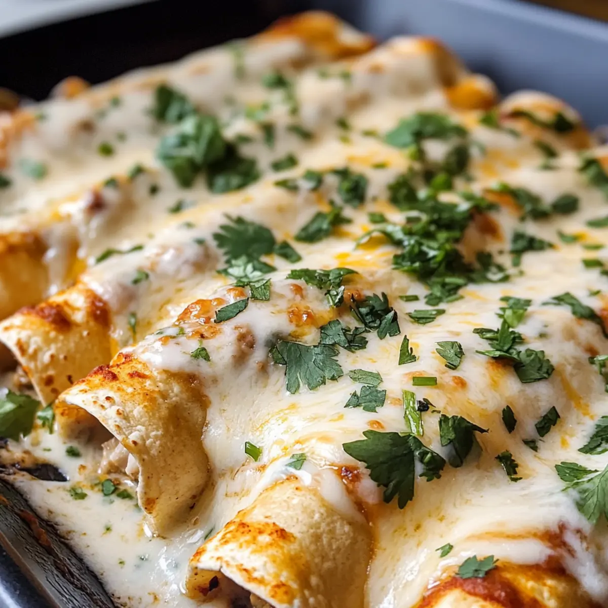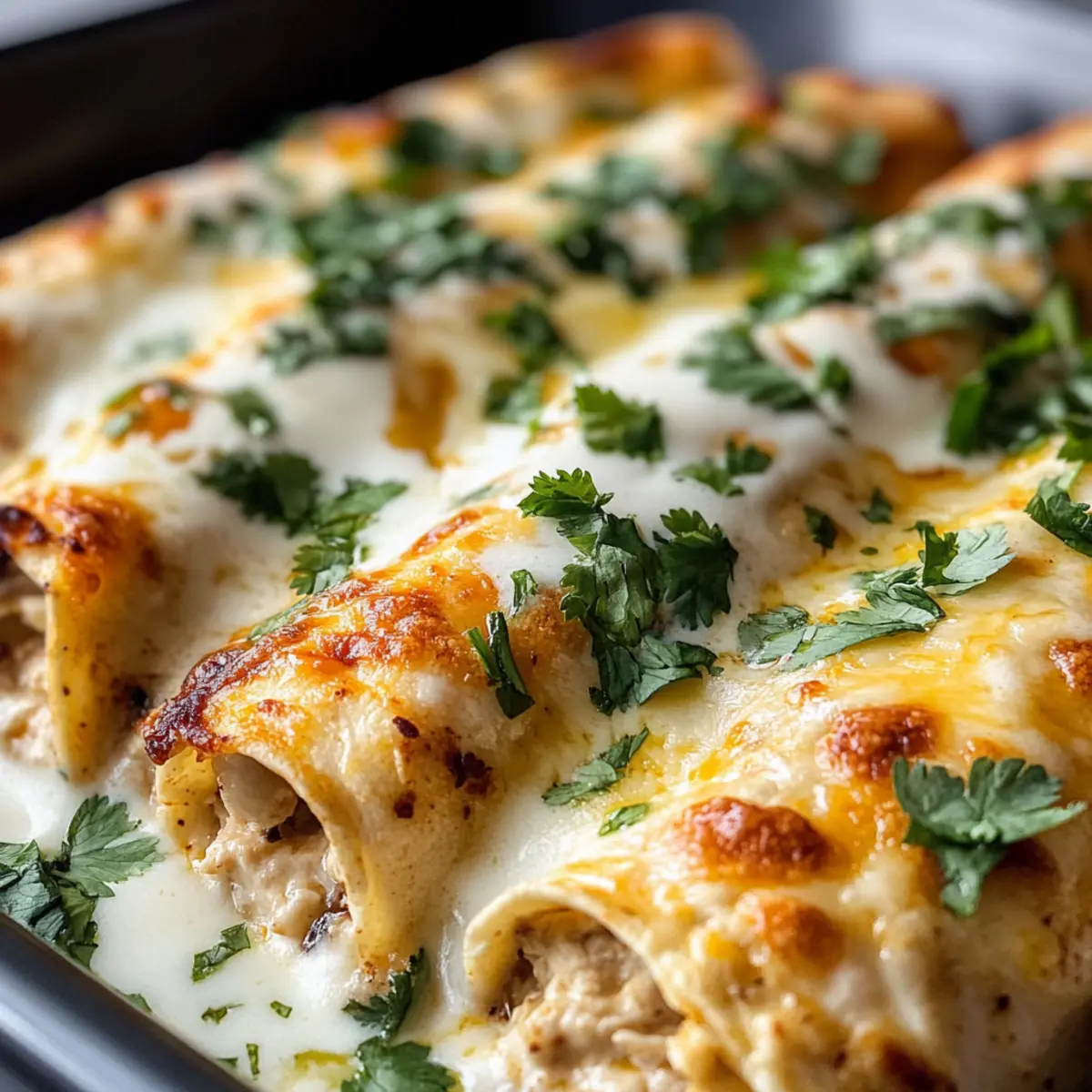 „Hühnchen-Enchiladas“ waren für mich lange Zeit das geheime Highlight eines jeden Familienessens. Mit ihrer zarten Tortilla, die eine würzige, proteinreiche Füllung umschließt, sind sie nicht nur köstlich, sondern auch überraschend einfach zuzubereiten. Diese Hühnchen-Enchiladas mit cremiger Weißsauce bieten eine gesunde Variante des traditionellen Rezepts und sind perfekt für hektische Wochentage. Dank der Kombination aus magerem Hähnchen, griechischem Joghurt und Vollkorn-Tortillas wird diese Mahlzeit nicht nur zur nährstoffreichen Wohlfühloase, sondern auch zu einem Publikumsverkehrsrenner, den die ganze Familie lieben wird. Zudem lassen sich diese Enchiladas wunderbar vorbereiten und sind somit der ideale Begleiter für einen stressfreien Abend. Bist du bereit, deine eigene köstliche Version zu kreieren? Warum sind diese Enchiladas ein Hit? Einfachheit, die Zubereitung dieser Hühnchen-Enchiladas ist kinderleicht, sodass auch weniger erfahrene Köche sie meistern können. Proteinreich, die Kombination aus zartem Hähnchen und griechischem Joghurt sorgt für eine vollwertige, nahrhafte Mahlzeit. Vielfalt, personalisiere die Füllung nach Geschmack, indem du Gemüse oder Gewürze hinzufügst. Familienfreundlich, die ganze Familie wird begeistert sein und um Nachschlag bitten! Diese Enchiladas eignen sich perfekt für ein schnelles Abendessen unter der Woche oder als leckeres Gericht für Gäste. Entdecke weitere köstliche Ideen in unseren nährstoffreichen Rezepten. Hühnchen-Enchiladas Zutaten Hinweis: Diese Hühnchen-Enchiladas sind nicht nur köstlich, sondern auch vollgepackt mit nährstoffreichen Zutaten! Für die Füllung: • Gekochtes Hähnchen – sorgt für die proteinreiche Basis der Enchiladas; du kannst auch Truthahn verwenden, um eine leichtere Variante zu kreieren. • Vollkorn-Tortillas – bieten eine gesunde Grundlage für die Enchiladas; für eine glutenfreie Variante sind Mais-Tortillas ideal. • Griechischer Joghurt – ersetzt Sahne für eine cremige Sauce und erhöht den Proteingehalt; wähle fettarmen Joghurt für eine kalorienärmere Option. • Geriebener Käse – fügt Geschmack und Cremigkeit hinzu; eine Mischung aus Monterey Jack und Cheddar ist empfehlenswert, aber Cotija ist eine authentische Alternative. • Milch – sorgt für die gewünschte Konsistenz der Sauce; Mandelmilch ist eine gute milchfreie Substitute. • Olivenöl – wird zum Anbraten verwendet und verstärkt den Geschmack der Füllung; Avocadoöl oder geschmolzene Butter sind ebenfalls gute Alternativen. • Knoblauchpulver – verleiht der Hähnchenfüllung den nötigen Geschmack; frischer Knoblauch kann ebenfalls zum Einsatz kommen. • Kreuzkümmel – sorgt für Wärme und Tiefe im Gericht; ersetze ihn durch Chili-Pulver für mehr Schärfe. • Salz und schwarzer Pfeffer – Standardgewürze zur Geschmacksverstärkung. Für die Soße: • Griechischer Joghurt – wird als Basis für die cremige Weißsauce verwendet. • Milch – wird hinzugefügt, um die Sauce glatt und cremig zu machen; experimentiere mit pflanzlichen Milchalternativen für einen anderen Geschmack. Schritt-für-Schritt-Anleitungen für Hühnchen-Enchiladas mit cremiger Weißsauce Step 1: Füllung vorbereiten Mische in einer Schüssel das zerkleinerte gekochte Hähnchen mit Olivenöl, Knoblauchpulver, Kreuzkümmel, Salz und schwarzem Pfeffer. Rühre eine Handvoll geriebenen Käse unter, sodass die Füllung schön geschmackvoll wird. Stelle sicher, dass alle Zutaten gut vermischt sind, und lege die Schüssel beiseite, um die Aromen einziehen zu lassen. Step 2: Weiße Sauce zubereiten In einer separaten Schüssel whisk die griechischen Joghurt mit der Milch. Füge nach Belieben etwas Salz und Pfeffer hinzu, um den Geschmack zu verbessern. Die Mischung sollte cremig und gut verbunden sein. Dies wird die köstliche, cremige Weißsauce für deine Hühnchen-Enchiladas sein. Step 3: Enchiladas zusammenstellen Heize deinen Ofen auf 190 °C (375 °F) vor. Fette eine Auflaufform leicht ein und verteile eine kleine Menge der Weißsauce auf dem Boden der Form, um ein Ankleben zu verhindern. Dies sorgt für eine leckere Basis, auf der die Hühnchen-Enchiladas ruhen werden. Step 4: Füllen und rollen Erwärme die Tortillas kurz in der Mikrowelle oder in einer Pfanne, bis sie weich und biegsam sind. Platziere eine Portion der Hähnchenfüllung in der Mitte jeder Tortilla und rolle sie straff auf, sodass sie nahtlos in der Auflaufform liegen. Achte darauf, die Nahtseite nach unten zu legen, um ein Auslaufen der Füllung zu verhindern. Step 5: Belegen und backen Gieße die restliche Weißsauce gleichmäßig über die eingerollten Enchiladas in der Auflaufform. Streue die zurückbehaltene Menge geriebenen Käse großzügig darüber, um eine köstliche, goldene Kruste zu schaffen. Dies wird eine appetitliche und cremige Oberfläche für deine Hühnchen-Enchiladas bilden. Step 6: Backen Schiebe die Form in den vorgeheizten Ofen und backe die Hühnchen-Enchiladas für 25-30 Minuten, bis die Sauce sprudelt und der Käse goldbraun geworden ist. Die perfekte Backzeit sorgt dafür, dass die Enchiladas durchwärmt sind und die Aromen vollständig entfaltet sind. Step 7: Ruhen lassen und servieren Nimm die Auflaufform aus dem Ofen und lasse die Hühnchen-Enchiladas für 5-10 Minuten stehen, bevor du sie servierst. Dies hilft dabei, dass sie beim Schneiden nicht auseinanderfallen. Garniere die Enchiladas nach Belieben mit frischem Koriander für einen zusätzlichen Geschmacksstoß. Meal Prep für Hühnchen-Enchiladas mit cremiger Weißsauce Diese Hühnchen-Enchiladas mit cremiger Weißsauce sind perfekt für die vorbereitende Planung! Du kannst die Füllung (gebackenes Hähnchen, Gewürze und Käse) bis zu 24 Stunden im Voraus zubereiten und im Kühlschrank aufbewahren. Auch die weiße Sauce lässt sich hervorragend einen Tag früher anrühren. Achte darauf, beide Komponenten in luftdichten Behältern aufzubewahren, um die 