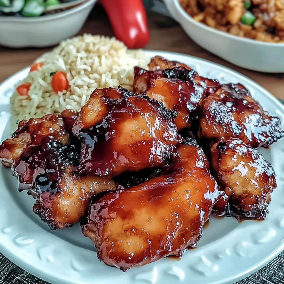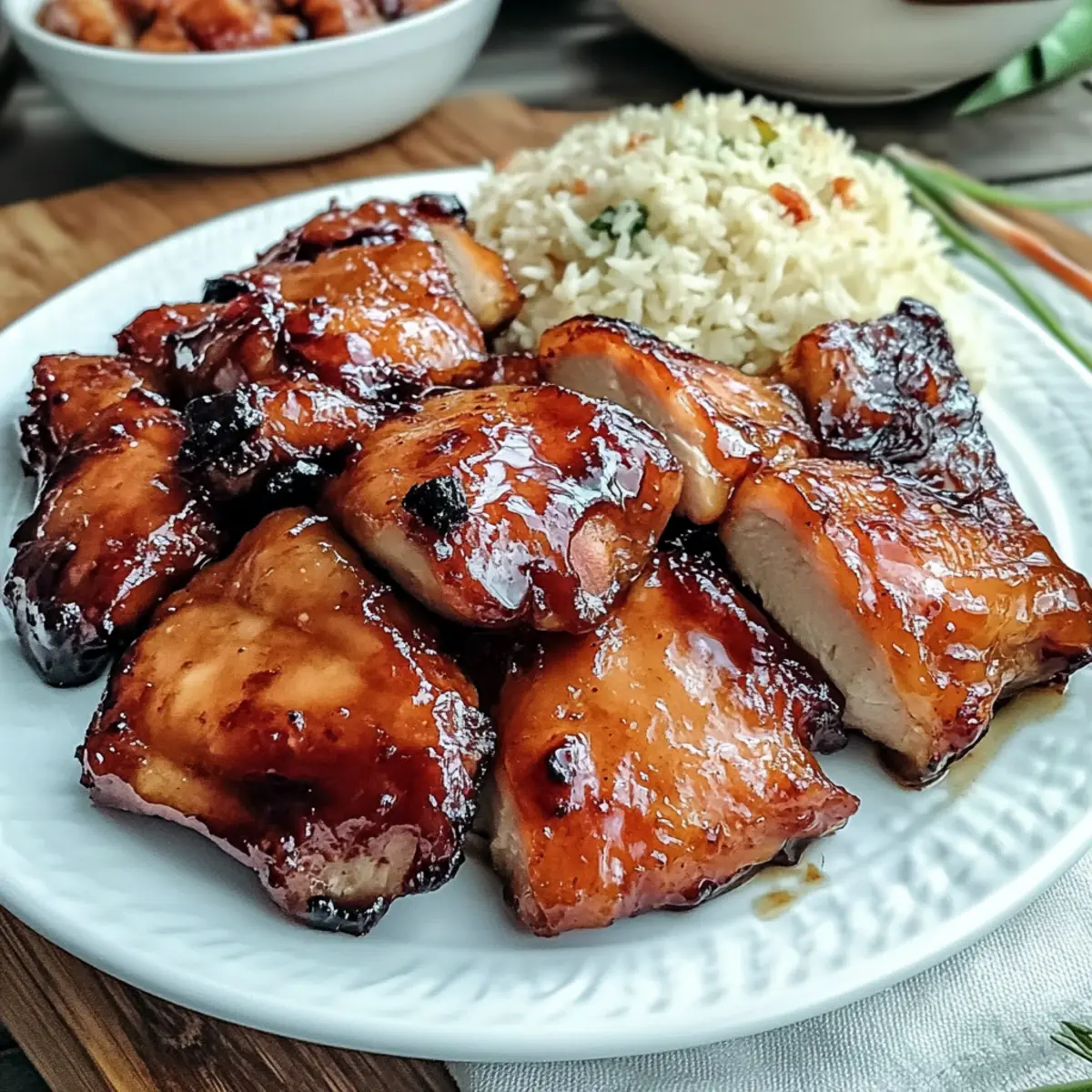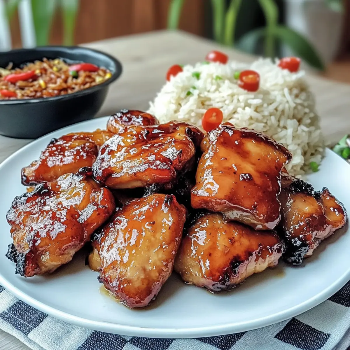 Die süßlich-aromatischen Düfte von Hühnchen Tocino lassen mich sofort an meine Kindheit in der philippinischen Küche zurückdenken. Dieses beliebte Rezept ist nicht nur eine erschwingliche Wahl für den Alltag, sondern auch blitzschnell zubereitet und perfekt für alle, die beim Kochen lieber auf frische Zutaten setzen. Mit zarten Hühnerfilets, die in einer herrlichen und einfachen Marinade eingelegt werden, ist dieses Gericht sowohl als Frühstück als auch zum Abendessen ein Hit. So wird jeder Bissen zum Genuss, egal ob man am Wochenende Zeit hat oder unter der Woche schnell etwas auf den Tisch zaubern möchte. Neugierig, wie du Hühnchen Tocino selbst zubereiten kannst? Lass uns gleich loslegen! Warum ist Hühnchen Tocino so beliebt? Einfachheit: Die Zubereitung von Hühnchen Tocino erfordert keine speziellen Kochkünste — ideal für jedes Level! Vielseitigkeit: Egal ob morgens zum Frühstück oder abends zum Dinner, dieses Gericht passt immer! Herzhafter Geschmack: Die Kombination aus süßer Marinade und zartem Hühnchen begeistert garantiert jeden Gaumen. Budgetfreundlich: Perfekt für jeden Geldbeutel, erhältst du mit einfachen Zutaten ein köstliches Gericht. Meal Prep: Hühnchen Tocino lässt sich prima im Voraus zubereiten und ist super zum Einfrieren, wenn du eine schnelle Mahlzeit brauchst. Möchtest du noch mehr köstliche Rezepte entdecken? Probiere unsere Knusprigen Brokkoli Kaese Nuggets oder die Gelegten Kartoffelscheiben! Hühnchen Tocino Zutaten Hinweis: Diese Zutatenliste gibt dir alles, was du brauchst, um das köstliche Hühnchen Tocino zuzubereiten. Für die Marinade: Hautloses Hühneroberschenkel-Filet – Die Basis für dieses Gericht, saftig und geschmackvoll. Du kannst auch Hühnerbrust verwenden, wenn du es leichter magst. Dunkler Brauner Zucker – Fügt die Süße hinzu und hilft, die Glasur zu kreieren. Kokoszucker ist ein guter Ersatz. Fein gemahlener Weißer Pfeffer – Sorgt für eine subtile Schärfe. Nutze schwarzen Pfeffer für einen würzigeren Geschmack. Reismehl – Verbessert die Textur und zartet das Huhn. Alternativ kannst du auch Speisestärke verwenden. Salz – Unverzichtbar für den Geschmack. Passt die Menge nach Belieben an. Knoblauch (gerieben) – Bringt ein aromatisches Süße. Frische Knoblauchzehen erzielen die besten Ergebnisse. Sojasauce – Verleiht Umami und Tiefe. Tamari ist eine glutenfreie Variante. Essig – Sorgt für Balance mit seiner Säure; empfehlenswert ist Rohrzucker-Essig. Apfelessig ist eine gute Alternative. Ungesüßter Ananassaft – Fügt Süße hinzu und ist ein natürlicher Zartmacher. Wasser kann verwendet werden, wenn du es weniger süß magst. Rote Lebensmittelfarbe (optional) – Verbessert die optische Anziehungskraft. Kann auch weggelassen werden, wenn gewünscht. Kochöl – Notwendig zum Frittieren; Pflanzenöl ergibt die besten Ergebnisse. Wasser – Hält das Huhn während des Simmerns feucht. Step-by-Step Instructions für Hühnchen Tocino Step 1: Marinade mischen In einer großen Schüssel kombinierst du den dunklen braunen Zucker, weißen Pfeffer, Reismehl, Salz, geriebenen Knoblauch, Sojasauce, Essig und ungesüßten Ananassaft (sowie die optionale rote Lebensmittelfarbe). Rühre alles gründlich um, bis eine homogene Mischung entsteht. Die Marinade sollte eine dickflüssige Konsistenz haben, die das Hühnchen perfekt umhüllt. Step 2: Huhn marinieren Füge die hautlosen Hühneroberschenkel-Filets zur Marinade hinzu und achte darauf, dass jedes Stück vollständig bedeckt ist. Decke die Schüssel ab und lasse das Huhn für mindestens 1 Stunde im Kühlschrank marinieren – idealerweise bis zu 3 Tagen, um den Geschmack zu intensivieren. Achte darauf, die Marinade regelmäßig zu wenden, damit sich die Aromen gleichmäßig verteilen. Step 3: Huhn simmern Erhitze eine große Pfanne bei mittlerer Hitze und gib das marinierte Huhn zusammen mit 1 Tasse Wasser dazu. Bringe die Mischung zum Kochen und reduziere dann die Hitze. Lass das Huhn unbedeckt für 15 bis 20 Minuten sieden, bis die Flüssigkeit signifikant reduziert ist und das Huhn zart erscheint. Achte darauf, dass die Temperaturen nicht zu hoch sind, um das Anbrennen zu vermeiden. Step 4: Frittieren bis zur Glasur Sobald die Flüssigkeit reduziert ist, füge etwas Kochöl in die Pfanne hinzu. Brate das Hühnchen bei mittlerer Hitze an, während du es gelegentlich wendest. Koche es weiter, bis das Huhn eine schöne, leicht angebräunte Farbe annimmt und die Marinade zu einer klebrigen Glasur reduziert wird. Dies sollte etwa 5 bis 10 Minuten dauern und eine köstliche Karbonisierung erzeugen. Step 5: Servieren Übertrage das Hühnchen Tocino auf eine Servierplatte und genieße es am besten mit knusprigem Knoblauchreis und gewürztem Essig für ein authentisches Erlebnis. Optional kannst du das Gericht mit frischer Petersilie oder Sesamsamen garnieren, um dem köstlichen Hühnchen einen zusätzlichen Farbtupfer zu verleihen. Aufbewahrungstipps für Hühnchen Tocino Kühlschrank: Bewahre übrig gebliebenes Hühnchen Tocino in einem luftdichten Behälter für bis zu 3 Tage im Kühlschrank auf, um die Frische zu gewährleisten. Gefrierschrank: Mariniertes, rohes Hühnchen kann für bis zu 3 Monate im Gefrierfach aufbewahrt werden. Stelle sicher, dass es gut verpackt ist, um Gefrierbrand zu vermeiden. Wiedererwärmung: Zum Aufwärmen das Hühnchen auf mittlerer Hitze in einer Pfanne mit ein wenig Wasser anbraten, bis es vollständig durchgeheizt ist. Achtung: Vermeide es, Hühnchen Tocino mehrmals zu gefrieren und aufzutauen, da dies die Textur und den Geschmack beeinträchtigen kann. Meal Prep für Hühnchen Tocino Hühnchen Tocino ist perfekt für die Meal Prep, da du die Marinade und das marinierte Huhn im Voraus zubereiten kannst! Beginne, indem du die Marinade bis zu 24 Stunden vorher zubereitest und das Huhn darin mindestens 1 Stunde (idealerweise bis zu 3 Tagen) im Kühlschrank einlegst. Achte darauf, die Marinade alle paar Stunden umzu