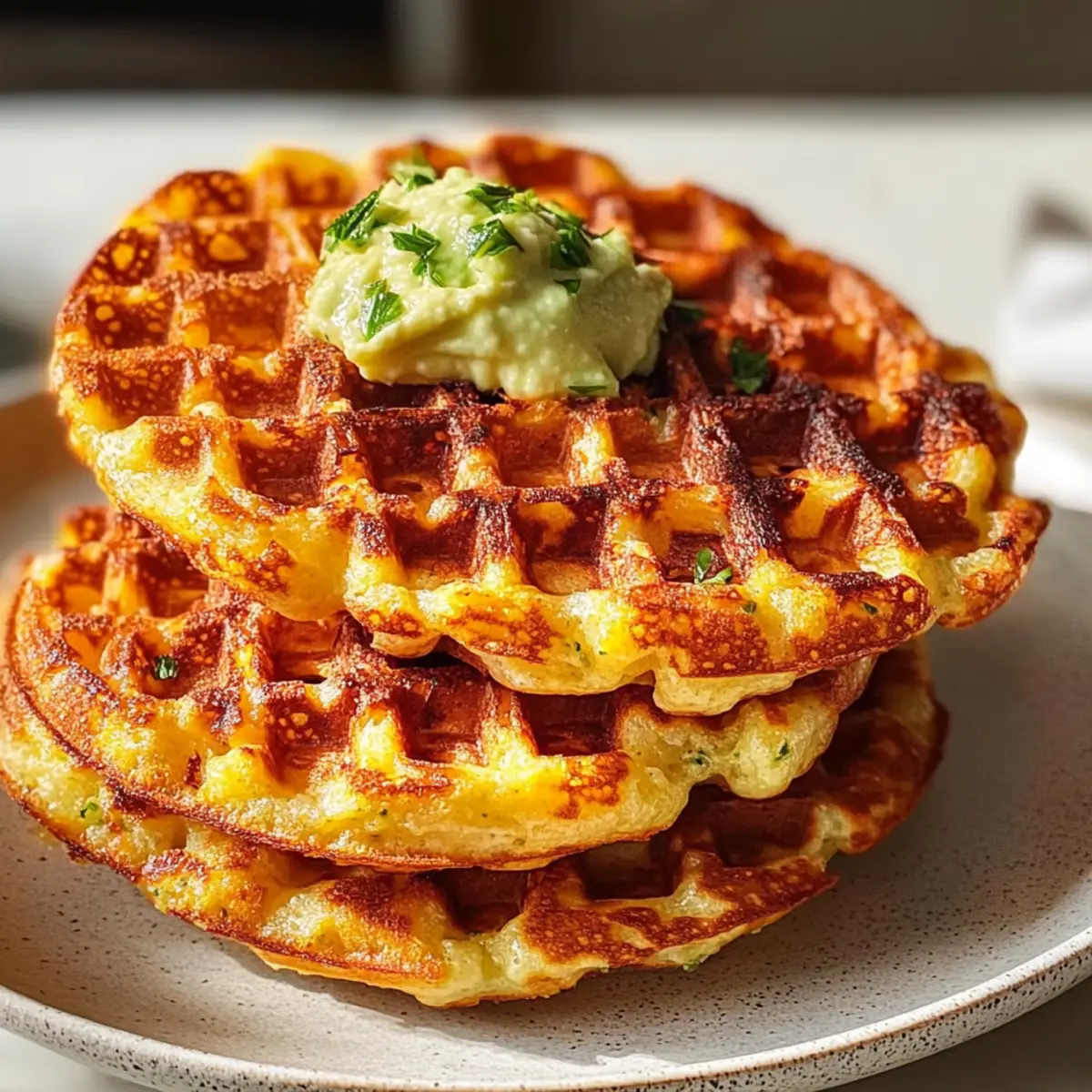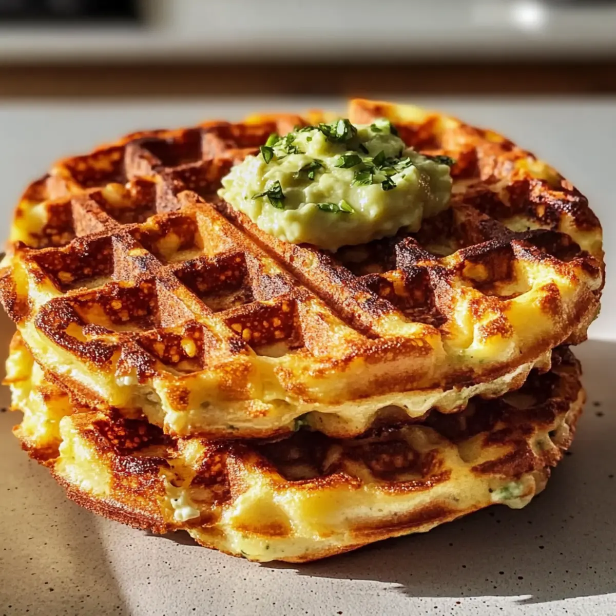 Diese cremige Avocado-Mischung bietet eine herzhafte Note und ergänzt perfekt die aromatischen Chaffles.