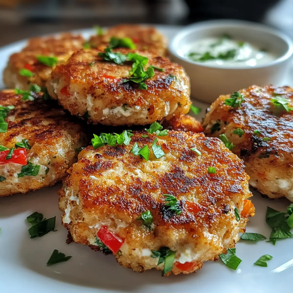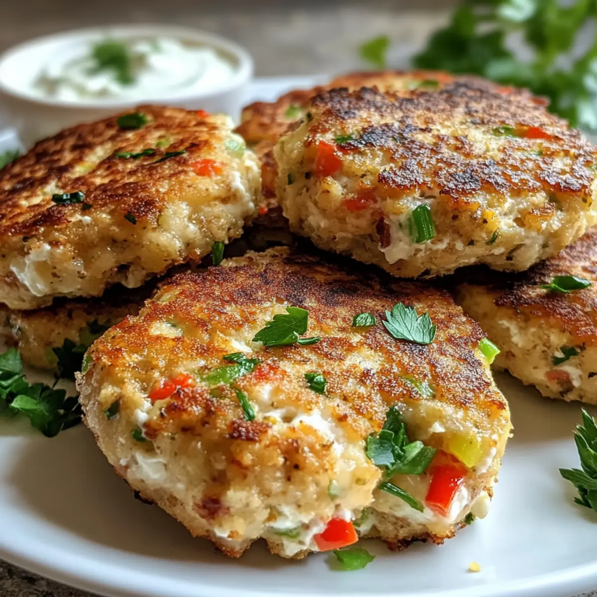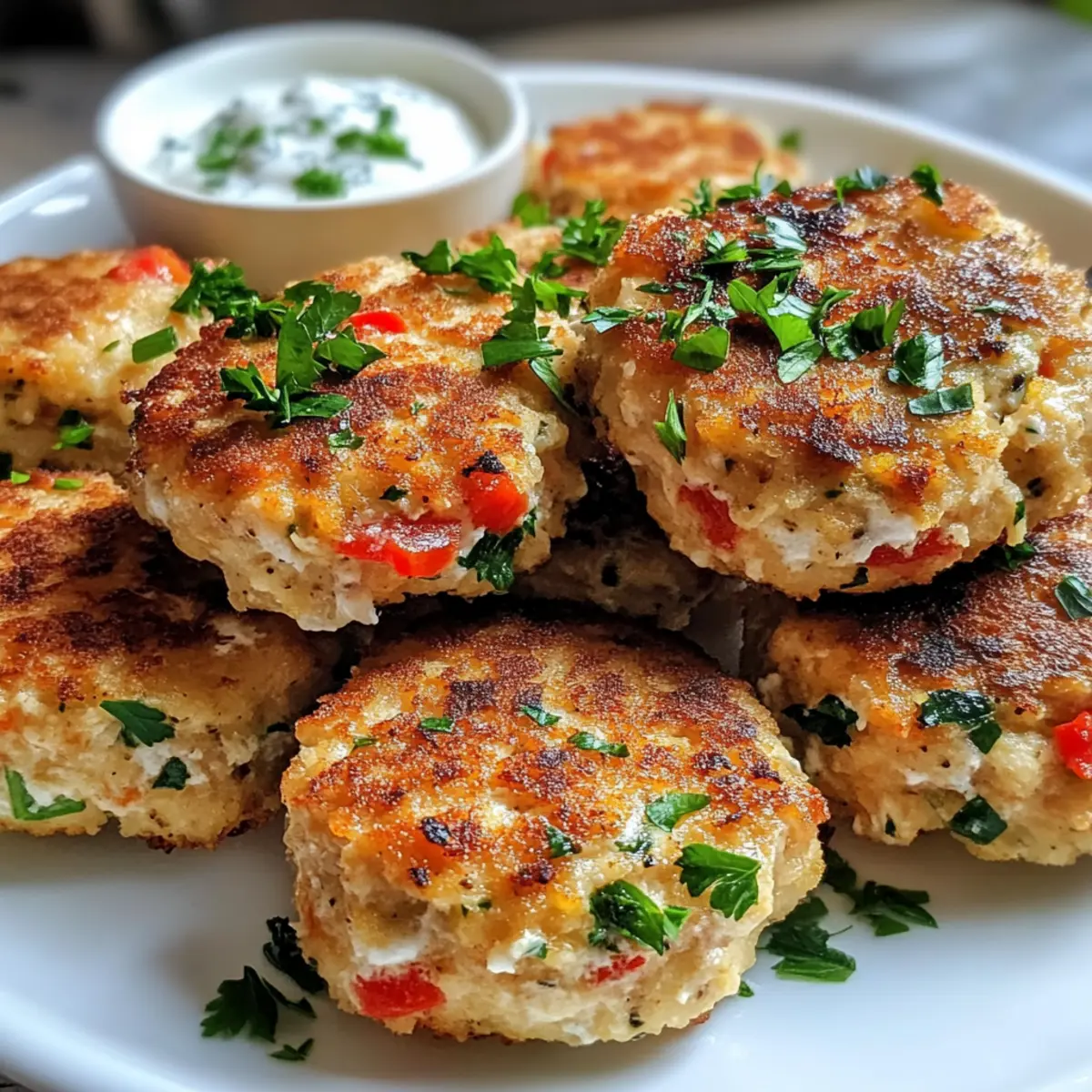 Serviere die Hüttenkäse Thunfischkuchen warm, garniert mit frischer Petersilie und begleitet von deiner Lieblings-Dip-Sauce. Diese Köstlichkeiten sind nicht nur ein Genuss für den Gaumen, sondern auch ein toller Blickfang auf jedem Tisch!