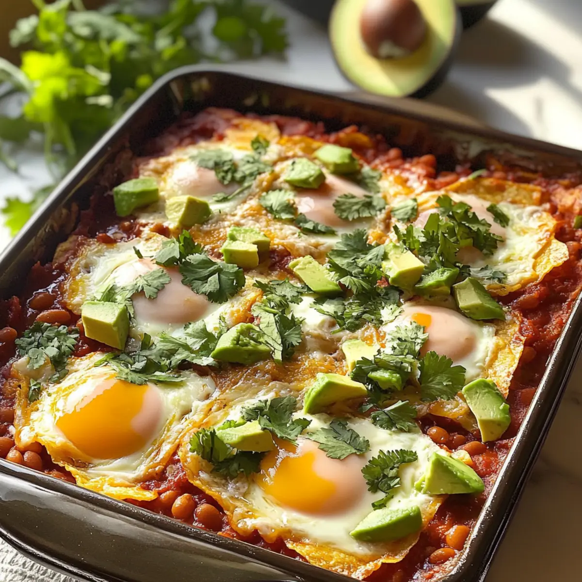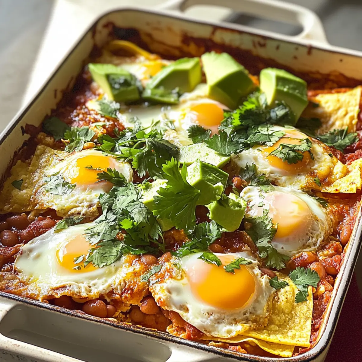 Dieser Huevos Rancheros Auflauf vereint die Aromen eines klassischen Frühstücks in einem herzhaften Gericht und ist ideal für gemütliche Zusammenkünfte.