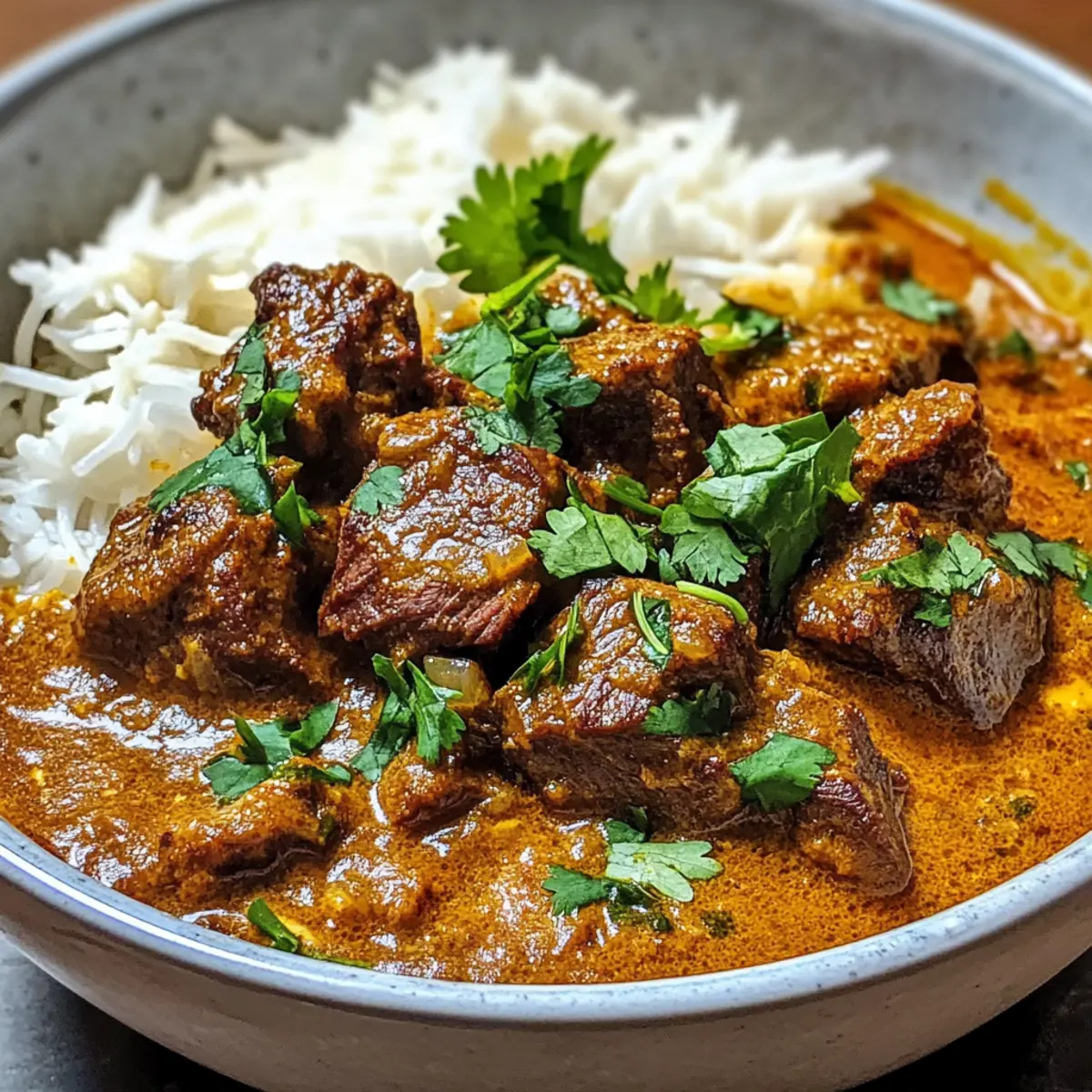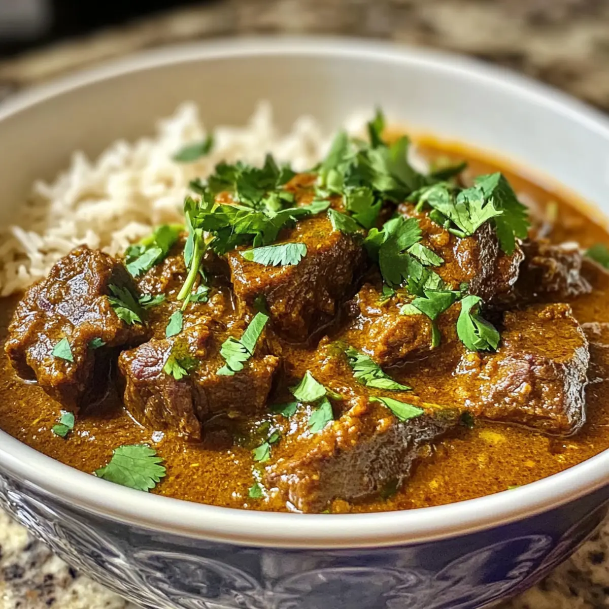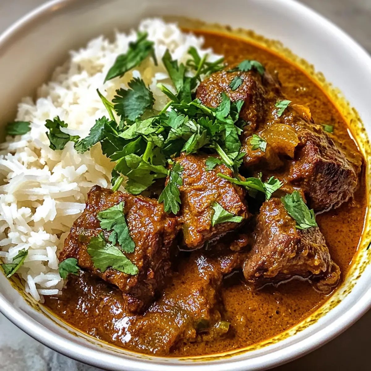 Wenn ich an einen wohltuenden Abend voller Aromen und tröstlicher Gemütlichkeit denke, dann kommt mir sofort mein Indisches Rindfleisch-Curry im Slow Cooker in den Sinn. Saftig zartes Rindfleisch, das in einer reichen, cremigen Kokosmilchsauce mit köstlichen Gewürzen wie Kreuzkümmel und Garam Masala vor sich hin köchelt – einfach himmlisch! Dieses Rezept für ein Slow Cooker Curry kombiniert herzhaften Genuss mit einfacher Zubereitung und eignet sich perfekt für stressige Wochentage oder für ein gemütliches Abendessen mit der Familie. Die Vorteile sind klar: weniger Aufwand und eine überzeugende Geschmacksfülle, die alle am Tisch begeistern wird. Hast du schon einmal eine Curry-Variante ausprobiert, die deinen Geschmacksnerven ein Fest beschert? Lass uns gemeinsam in die Welt der würzigen Köstlichkeiten eintauchen! Warum ist dieses Curry ein Muss? Einfachheit: Die Zubereitung dieses indischen Rindfleisch-Currys ist überraschend unkompliziert – einfach alle Zutaten in den Slow Cooker geben und die Magie geschehen lassen! Wunderbarer Geschmack: Die Kombination aus aromatischen Gewürzen und cremiger Kokosmilch sorgt für einen Geschmack, der jeden Bissen zu einem Erlebnis macht. Wohlfühlgericht: Dieses Curry bietet nicht nur tollen Geschmack, sondern ist auch perfekt für kalte Abende, wenn man nach etwas Warmem und Beruhigendem verlangt. Vielfältig: Du kannst dieses Rezept ganz nach deinem Geschmack anpassen, indem du Gemüse hinzufügst oder die Schärfe variierst. Familienfreundlich: Ein Gericht, das garantiert jeden glücklich macht – ideal für ein gemeinsames Abendessen oder ein gemütliches Abendessen mit Freunden! Entdecke auch andere köstliche Rezepte auf meinem Blog, wie das Kokos-Curry mit Kichererbsen oder das Schnelle Gemüse-Pfanne für noch mehr Abwechslung und Genuss! Indisches Rindfleisch-Curry Zutaten Für das Curry Rindfleisch (Beef Chuck) – Hauptprotein, das beim langsamen Garen zart und saftig bleibt; kann durch Lamm oder Hähnchenbrust ersetzt werden. Pflanzenöl – Zum Anbraten; sorgt für eine aromatische Basis. Kann durch Olivenöl ersetzt werden, um eine andere Geschmacksnote zu erhalten. Zwiebeln – Fügt Süße und Tiefe hinzu; fein gehackt und essenziell für die Aromatik. Knoblauch (4 Zehen) – Verleiht einen kräftigen Geschmack; frisch ist am besten, vermeide Pulverversionen. Ingwer (1 Esslöffel) – Fügt Wärme und Würze hinzu; frisch gerieben ist optimal. Gemahlener Kreuzkümmel (2 Teelöffel) – Für erdige Geschmacksnuancen. Gemahlener Koriander (2 Teelöffel) – Ergänzt den Kreuzkümmel mit citrusartigen Noten. Kurkuma (1 Teelöffel) – Sorgt für eine schöne Farbe und milde Aromen. Garam Masala (1 Teelöffel) – Ein Gewürzgemisch, das die Wärme des Gerichts verstärkt. Chili-Pulver (1 Teelöffel) – Fügt Schärfe hinzu; nach Belieben anpassen. Tomaten (1 Dose, 400g) – Sorgt für Säure und Volumen im Curry. Kokosmilch (1 Dose, 400g) – Bringt eine cremige Textur; kann durch Schlagsahne für eine reichhaltigere Sauce ersetzt werden. Rinderbrühe (2 Tassen) – Fügt Feuchtigkeit hinzu und intensiviert die Aromen; verwende bei Bedarf natriumarme Brühe. Brauner Zucker (2 Esslöffel) – Gleicht die Säure aus; kann durch Honig oder Ahornsirup ersetzt werden. Salz und Pfeffer – Wesentliche Gewürze nach Geschmack. Frischer Koriander (zum Garnieren) – Fügt Frische und Farbe hinzu. Entdecke das volle Aroma meines indischen Rindfleisch-Curry im Slow Cooker und genieße die köstlichen Aromen direkt von deiner Küche! Schritt-für-Schritt-Anleitungen für Indisches Rindfleisch-Curry im Slow Cooker Step 1: Öl erhitzen Erhitze in einer Pfanne bei mittlerer bis hoher Hitze etwas Pflanzenöl, bis es schimmert. Dies dauert etwa 2-3 Minuten. Das heiße Öl sorgt dafür, dass die Zwiebeln gleichmäßig angebraten werden und die Aromen optimal freigesetzt werden, was die Basis für dein Indisches Rindfleisch-Curry im Slow Cooker bildet. Step 2: Zwiebeln anbraten Füge die fein gehackten Zwiebeln in die Pfanne hinzu und brate sie für 8-10 Minuten an, bis sie goldbraun sind. Rühre gelegentlich um, damit sie gleichmäßig garen. Diese goldene Farbe bedeutet, dass sie süß und aromatisch sind und perfekt für das Curry vorbereitet werden. Step 3: Knoblauch und Ingwer hinzufügen Gib den gehackten Knoblauch und den frisch geriebenen Ingwer dazu und koche die Mischung für weitere 2 Minuten. Du wirst die köstlichen Aromen wahrnehmen, die sich verbreiten. Achte darauf, dass die Mischung nicht anbrennt, da dies den Geschmack des Currys beeinträchtigen könnte. Step 4: Gewürze mischen In einer Schüssel vermische den gemahlenen Kreuzkümmel, den Koriander, das Kurkuma, das Garam Masala und das Chili-Pulver. Diese Gewürzmischung wird die Aromen deines Indischen Rindfleisch-Currys im Slow Cooker intensivieren und köstlich machen. Step 5: Gewürze anrösten Rühre die Gewürzmischung für etwa 1 Minute in die Pfanne, um die Gewürze zu rösten. Dieser Schritt wird die Aromen aktivieren und ein herrliches Aroma erzeugen, das für das Curry unverzichtbar ist. Achte darauf, dass die Gewürze nicht anbrennen. Step 6: Mischung in den Slow Cooker geben Übertrage die sautierte Zwiebel-Knoblauch-Ingwer-Mischung in den Slow Cooker. Dies bildet die aromatische Basis für das Curry und wird mit den weiteren Zutaten kombiniert, die dazu beitragen, dass das Rindfleisch zart wird. Step 7: Rindfleisch hinzufügen Lege die Stücke vom Rindfleisch (Beef Chuck) in den Slow Cooker und wende sie, damit sie gleichmäßig mit der Gewürzmischung bedeckt werden. Das Rindfleisch wird während des Kochens die Aromen aufnehmen und wunderbar zart werden. Step 8: Flüssigkeiten einfüllen Füge die gewürfelten Tomaten, die Kokosmilch und die Rinderbrühe in den Slow Cooker hinzu. Rühre alles gut um, sodass die Zutaten gleichmäßig verteilt sind. Diese Flüssigkeiten sind entscheidend, um das Indische Rindfleisch-Curry im Slow Cooker cremig und g