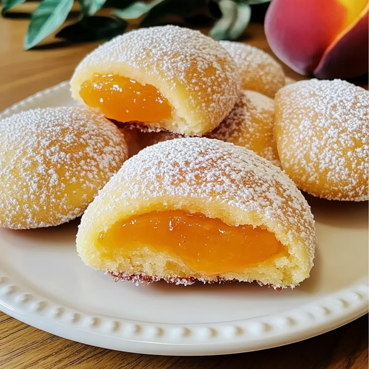 Wenn ich an die sonnendurchfluteten Nachmittage meiner Kindheit zurückdenke, kommen mir der Duft von frisch gebackenen italienischen Pfirsichkeksen in den Sinn. Diese köstlichen Kekse sind nicht nur ein Genuss, sondern auch eine einfache Möglichkeit, ein Stück Sommer auf den Tisch zu bringen. Mit ihrem zarten Teig und der fruchtigen Füllung aus Pfirsichmarmelade bieten sie die perfekte Balance aus Süße und Frische. In nur 45 Minuten zubereitet, sind sie spannt für gesellige Zusammenkünfte oder entspannte Abende zu Hause. Sie sind eine wunderbare Alternative zu Fast Food und bringen auch ein Stück italienischer Tradition ins eigene Backzimmer. Wie wäre es, wenn wir gemeinsam in diese fruchtige Verführung eintauchen und die Geheimnisse dieser italienischen Pfirsichkekse entdecken? Warum sind italienische Pfirsichkekse ein Muss? Einmalige Kombination: Diese Kekse vereinen die Süße von Pfirsichen mit der Zartheit des Teigs und schaffen ein Geschmackserlebnis, das man nicht vergessen kann. Einfache Zubereitung: Mit nur 45 Minuten in der Küche ist diese schnelle Rezeptur perfekt für unerwartete Besuche oder süße Gelüste. Kreative Variationen: Ob mit Mandel- oder Vanillearoma, die Anpassungsmöglichkeiten sind schier endlos und bieten Raum für persönliche Akzente. Sommerliches Flair: Ideal für Sommerfeste, bringen sie den Geschmack Italiens auf jeden Tisch. Servieren Sie sie warm mit einer Tasse Kaffee oder Tee für das perfekte Pairing. Familientradition: Diese Kekse sind mehr als nur ein Snack; sie sind Teil der italienischen Backkultur und wecken Erinnerungen an gemütliche Zusammenkünfte, die man mit Freunden und Familie teilt. Italienische Pfirsichkekse Zutaten • Entdecken Sie alle essenziellen Zutaten für dieses köstliche Rezept! Für den Teig 2 Tassen Mehl – Sorgt für die Struktur; für eine glutenfreie Variante kann eine 1:1 Backmischung verwendet werden, aber die Textur kann variieren. 1 Tasse Butter, weich – Verleiht den Keksen Reichhaltigkeit; achten Sie darauf, dass sie Zimmertemperatur hat, um sie leicht cremig zu machen. 1 Tasse Zucker – Süßt die Kekse; kann durch einen Zuckeraustauschstoff ersetzt werden, um die Kalorien zu reduzieren. 2 große Eier – Binden die Zutaten; auch diese sollten Zimmertemperatur haben für ein gleichmäßiges Mischverhältnis. 1 Teelöffel Vanilleextrakt – Verstärkt den Geschmack; kann mit Mandelaroma ersetzt werden für eine andere Note. 1 Teelöffel Backpulver – Lässt die Kekse aufgehen; stellen Sie sicher, dass es frisch ist für eine optimale Höhe. 1 Prise Salz – Balanciert die Süße und verstärkt die Aromen. Für die Füllung 1 Tasse Pfirsichmarmelade – Sorgt für eine süße Füllung und Feuchtigkeit; frische Pfirsiche können durch die Zubereitung einer Pfirsichkompott-Variante ersetzt werden. 1 Teelöffel Zimt – Fügt eine warme Gewürznote hinzu; kann durch Muskatnuss ersetzt werden für einen anderen Geschmack. Genießen Sie die Zubereitung dieser italienischen Pfirsichkekse, die eine köstliche und fruchtige Leckerei darstellen! Schritt-für-Schritt-Anleitung für italienische Pfirsichkekse Step 1: Ofen vorheizen Heizen Sie Ihren Ofen auf 175 °C (350 °F) vor. Dies ist ein wichtiger erster Schritt, um sicherzustellen, dass die italienischen Pfirsichkekse gleichmäßig backen. Bereiten Sie ein Backblech mit Backpapier vor, damit die Kekse nicht anhaften und leicht entfernt werden können. Step 2: Zutaten vermengen In einer großen Rührschüssel die weiche Butter und den Zucker mit einem Handmixer oder einer Küchenmaschine cremig schlagen. Mischen Sie die Zutaten etwa 3-4 Minuten, bis die Masse luftig und hell ist. Dieses Verfahren sorgt dafür, dass Ihre Kekse eine zarte Konsistenz erhalten. Step 3: Eier und Vanille hinzufügen Fügen Sie nun nacheinander die beiden großen Eier hinzu und schlagen Sie weiter, bis sie gut eingearbeitet sind. Geben Sie dann den Vanilleextrakt dazu, um die Aromen zu intensivieren. Achten Sie darauf, dass alle Zutaten gut miteinander vermischt sind, um eine homogene Masse zu erhalten. Step 4: Trockene Zutaten kombinieren In einer separaten Schüssel das Mehl, Backpulver und Salz vermengen. Mischen Sie diese trockenen Zutaten gründlich, bevor Sie sie langsam zur Butter-Zucker-Ei-Mischung hinzufügen. Arbeiten Sie die trockenen Zutaten etwa 1-2 Minuten ein, bis alles gerade so miteinander verbunden ist, um die perfekte Teigkonsistenz zu erreichen. Step 5: Teig formen Formen Sie aus dem Teig kleine Kugeln, etwa einen Esslöffel groß, und platzieren Sie diese gleichmäßig auf dem vorbereiteten Backblech. Lassen Sie genügend Platz zwischen den Teigkugeln, damit die italienischen Pfirsichkekse beim Backen nicht zusammenkleben. Step 6: Füllung hinzufügen Drücken Sie nun mit Ihrem Finger oder einem Löffel eine kleine Vertiefung in die Mitte jeder Teigkugel. Füllen Sie diese Vertiefungen mit der Pfirsichmarmelade, die zuvor mit etwas Zimt vermischt wurde, um zusätzlichen Geschmack zu verleihen. Achten Sie darauf, dass die Füllung nicht überläuft. Step 7: Kekse backen Schieben Sie das Backblech in den vorgeheizten Ofen und backen Sie die Kekse etwa 15 Minuten lang. Beobachten Sie die Kekse genau; sie sollten leicht goldbraun am Rand sein, aber in der Mitte noch leicht weich und fluffig bleiben. Dies sorgt für den perfekten Biss. Step 8: Abkühlen lassen und servieren Lassen Sie die italienischen Pfirsichkekse einige Minuten auf dem Blech abkühlen, bevor Sie sie auf ein Kuchengitter transferieren. So bleiben sie schön weich. Optional können Sie die Kekse nach dem Abkühlen mit Puderzucker bestäuben für einen zusätzlichen süßen Genuss. Vorbereitung der italienischen Pfirsichkekse für stressfreies Kochen Diese italienischen Pfirsichkekse sind nicht nur ein Genuss, sondern lassen sich auch hervorragend vorbereiten! Sie können den Keksteig bis zu 3 Tage im Voraus im Kühlschrank aufbewahren oder auf bis zu 3 Monate einfrieren. Formen Sie einfach die