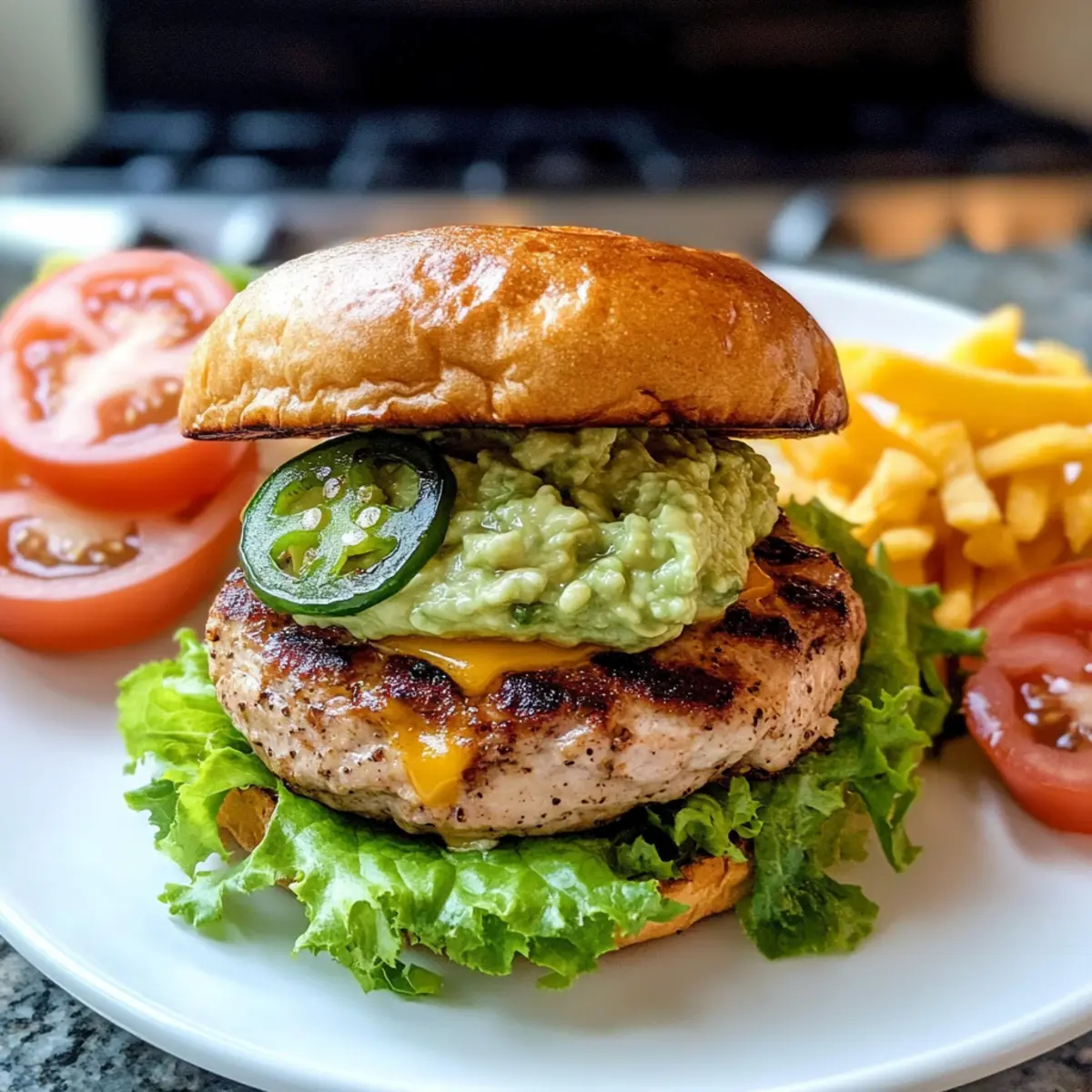 In einem Moment voller Geschmacksexplosionen zubereiten, wird das Grillen mit meinen Jalapeño Cheddar Truthahn Burgern zu einem unvergesslichen Erlebnis! Diese saftigen Burger sind alles andere als fad – sie bringen nicht nur eine perfekte Portion Würze mit, sondern auch einen hohen Proteingehalt, der euch zufriedengestellt und stark fühlen lässt. Mit dem rauchigen Geschmack des Cheddar-Käses und einem spritzigen Hauch von Limette überzeugen sie jeden, der die Kombination aus gesundem Genuss und unvergesslichem Grillgeschmack sucht. Serviert mit cremigem Guacamole und knackigem Gemüse, werden diese Burger zum absoluten Hit – ideal für unkomplizierte Abendessen oder gesellige Grillabende. Seid ihr bereit, euer Grillspiel auf das nächste Level zu heben? Warum sind diese Burger so besonders? Saftige Textur: Die Kombination aus hochwertigem Truthahn und schmelzendem Cheddar sorgt für eine unvergleichliche Saftigkeit, die jeden Bissen zu einem Erlebnis macht. Würzige Vielfalt: Mit der Möglichkeit, die Schärfe durch Jalapeños individuell anzupassen, können Grillfans ihren perfekten Burger kreieren. Gesund und nahrhaft: Diese Burger sind reich an Proteinen und bieten eine gesunde Alternative zu herkömmlichen Fleischgerichten, ohne dabei den Geschmack zu opfern. Perfekte Begleiter: Serverseitige Optionen wie frische Tomaten und Salat oder eine Beilage von Zitronen Brownies Rezept machen das Mahl komplett. Schnell und einfach: Die Zubereitung ist unkompliziert, sodass man in kürzester Zeit ein geschmackvolles Gericht auf den Tisch bringt – ideal für hektische Wochentage oder spontane Grillpartys. Jalapeño Cheddar Truthahn Burger Zutaten Für die Burger-Patties Gemahlenes Truthahn – bietet die gesunde Proteinbasis für die Burger; verwende 93% mageres Fleisch für optimale Saftigkeit. Zwiebel (weiß, rot oder gelb) – fügt subtile Süße und Feuchtigkeit hinzu, die die Burger aufwerten. Frischer Koriander – bringt einen frischen, kräuterigen Geschmack, der die Jalapeños perfekt ergänzt. Knoblauch – verstärkt die Geschmacksintensität der Patties. Jalapeño – sorgt für eine milde Schärfe; behalte die Kerne für extra Würze oder entferne sie für einen sanfteren Geschmack. Gemahlener Kreuzkümmel – verleiht warme, rauchige Untertöne in den Burger-Patties. Paprika (süß oder geräuchert) – sorgt für subtile Rauchnoten und eine schöne Farbe. Limettensaft – bringt einen spritzigen Zitrusgeschmack, der die Fülle der Zutaten ausgleicht. Geriebener Cheddar-Käse – schmilzt herrlich und sorgt für zusätzliche Saftigkeit in den Burgern. Salz und schwarzer Pfeffer – essentielle Gewürze, die alle Aromen zur Geltung bringen. Hamburger-Brötchen – weiche, leicht geröstete Brötchen bilden die perfekte Basis für die Patties. Für den Belag Guacamole – eine cremige, geschmackvolle Ergänzung, die wunderbar zu den würzigen, käsegefüllten Burgern passt. Tomatenscheiben und Salat – bieten einen saftigen, frischen Kontrast und knusprige Textur. Schritt-für-Schritt-Anleitung für Saftige Jalapeño Cheddar Truthahn Burger Step 1: Tzatziki-Sauce vorbereiten Raspeln Sie eine Gurke und drücken Sie überschüssiges Wasser aus. Mischen Sie die Gurke mit Joghurt, gehacktem Knoblauch, Zitronensaft, Dill, Salz und Pfeffer in einer Schüssel. Lassen Sie die Mischung mindestens 30 Minuten im Kühlschrank ruhen, damit die Aromen sich entfalten können. Step 2: Grill vorheizen Heizen Sie den Grill auf mittelhohe Temperatur vor, etwa 200–230°C. Wenn nötig, ölen Sie die Grillroste leicht, damit die Burger später nicht kleben bleiben. Ein gut vorgeheizter Grill sorgt für ein gleichmäßiges Garen der Saftigen Jalapeño Cheddar Truthahn Burger. Step 3: Burger-Zutaten mischen In einer großen Schüssel kombinieren Sie das gemahlene Truthahnfleisch, die gewürfelte Zwiebel, den frischen Koriander, gehackten Knoblauch, Jalapeños, Kreuzkümmel, Paprika, Limettensaft, geriebenen Cheddar, Salz und Pfeffer. Vermengen Sie alles vorsichtig mit den Händen, um die Textur zart zu halten, ohne zu übermischen. Step 4: Patties formen Teilen Sie die Mischung in sechs gleichmäßige Portionen und formen Sie diese vorsichtig zu Patties. Achten Sie darauf, dass die Patties leicht gedrückt werden, damit sie beim Grillen gleichmäßig garen. In der Mitte etwas flacher drücken, da sie beim Grillen aufblähen können. Step 5: Patties grillen Legen Sie die Patties auf den vorgeheizten Grill und grillen Sie sie etwa 5–6 Minuten pro Seite. Die Burger sollten eine schöne, goldbraune Kruste entwickeln und eine Innentemperatur von 74°C (165°F) erreichen. Verwenden Sie ein Fleischthermometer, um sicherzugehen, dass sie durchgegart sind. Step 6: Burger ruhen lassen Entfernen Sie die Burger vom Grill und decken Sie sie lose mit Aluminiumfolie ab. Lassen Sie sie 3–5 Minuten ruhen. Dies hilft, die Säfte im Patty zu halten, damit die Saftigen Jalapeño Cheddar Truthahn Burger schön saftig bleiben. Step 7: Burger zusammenstellen Platzieren Sie die Patties in den leicht gerösteten Hamburger-Brötchen. Toppen Sie jeden Burger großzügig mit guacamole, einer Scheibe Käse, frischen Tomatenscheiben und knackigem Salat. Damit sind Ihre Burger bereit, serviert zu werden! Expert Tips für Jalapeño Cheddar Truthahn Burger Patty-Textur bewahren: Vermeiden Sie es, das Hackfleisch zu übermischen; so bleiben die Burger zart und saftig. Kühlen Sie die Patties vor dem Grillen, wenn die Mischung feucht wirkt. Temperatur überprüfen: Verwenden Sie immer ein Fleischthermometer, um sicherzustellen, dass die Innentemperatur 74°C (165°F) erreicht. Dies sorgt für eine sichere und saftige Mahlzeit. Patties einfrieren: Sie können die geformten Patties bis zu 3 Monate lang einfrieren, indem Sie sie mit Backpapier zwischenlagern. So haben Sie immer eine schnelle Option für Last-Minute-Grillabende. Würze anpassen: Experimentieren Sie mit der Menge der Jalapeños, um den gewünschten Schärfeg