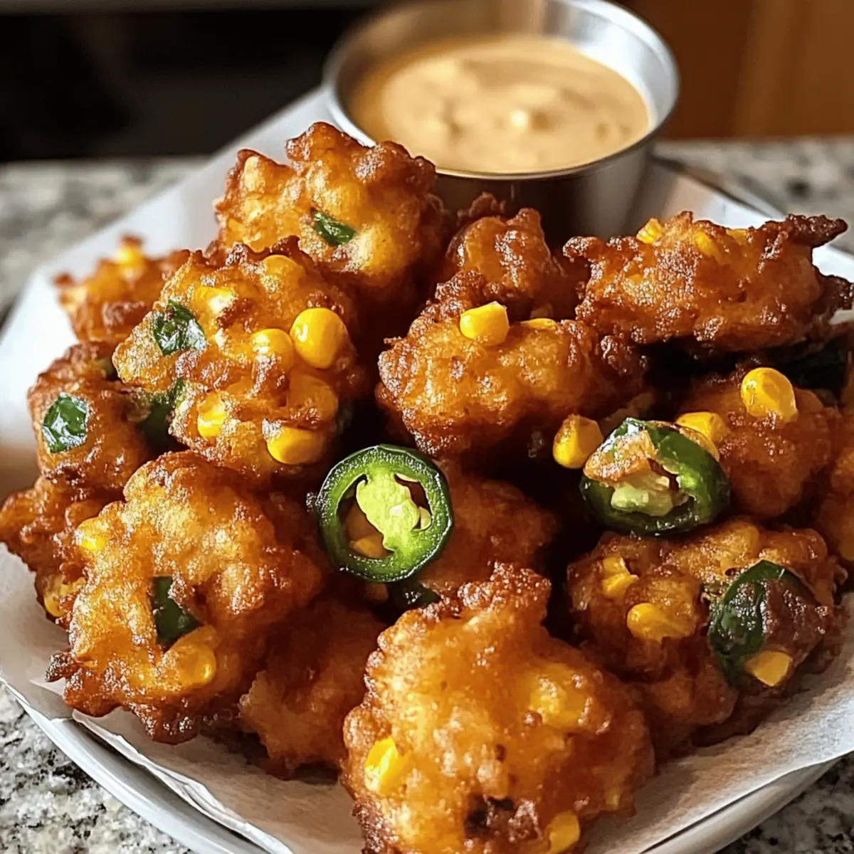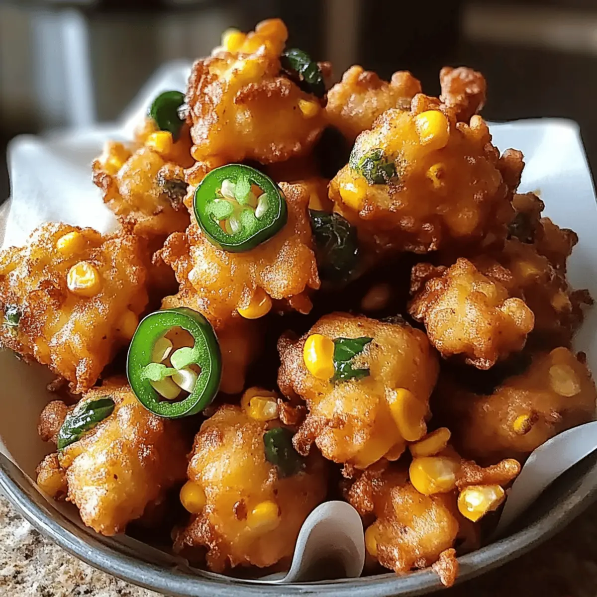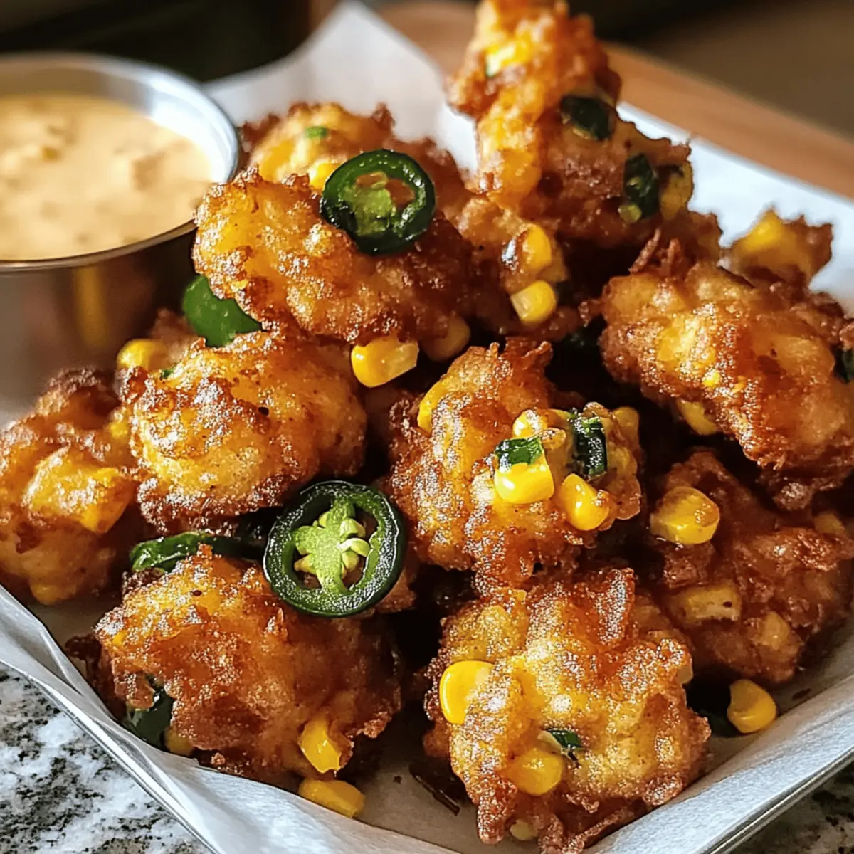 Bei einem geselligen Abend mit Freunden, während der Duft von frisch gebratenen Köstlichkeiten in der Luft liegt, sind Crunchy Jalapeño Corn Fritters der Star des Abends. Diese frittierten Häppchen, goldbraun und knusprig, vereinen süßen Mais und das pikante Feuer frischer Jalapeños – eine perfekte Kombination, die selbst die skeptischsten Foodies überzeugt. Ein weiterer Vorteil? Sie sind nicht nur in kürzester Zeit zubereitet, sondern auch unglaublich anpassbar: Egal, ob Sie die Schärfe erhöhen oder Käse hinzufügen möchten, hier bleibt kein Wunsch offen! Ideal als Snack für den nächsten Spieltag, werden sie garantiert für Begeisterung sorgen. Welche Dips würden Sie wählen, um diese Fritters noch unwiderstehlicher zu machen?