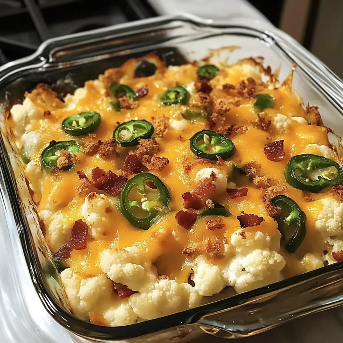 Ein köstlicher Jalapeño-Popper-Blumenkohl-Auflauf, ideal für jeden Anlass und perfekt für Low-Carb-Geniesser.