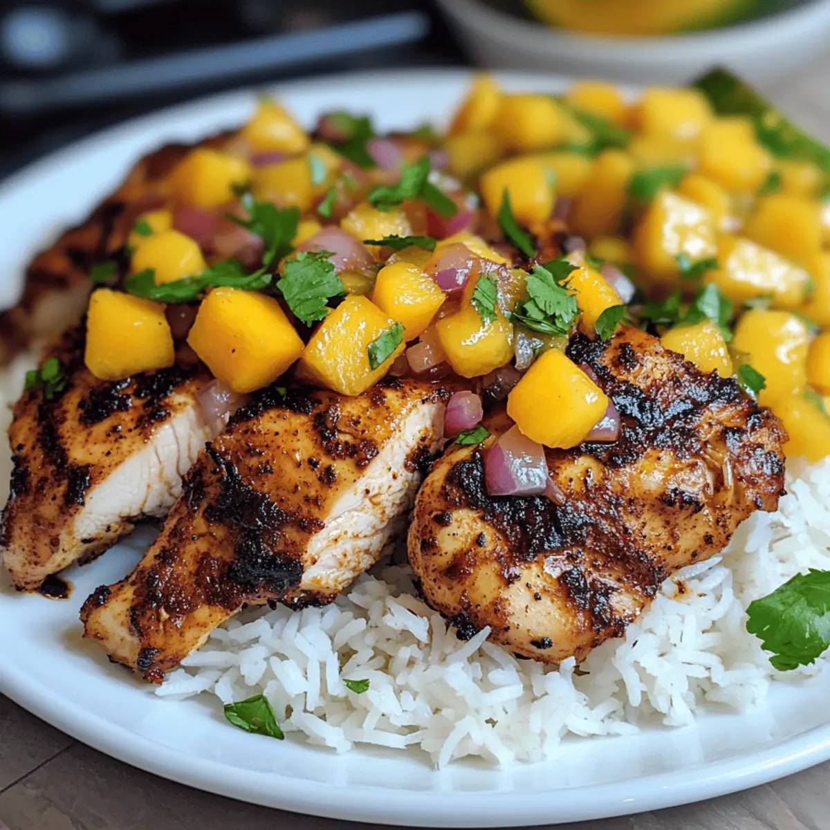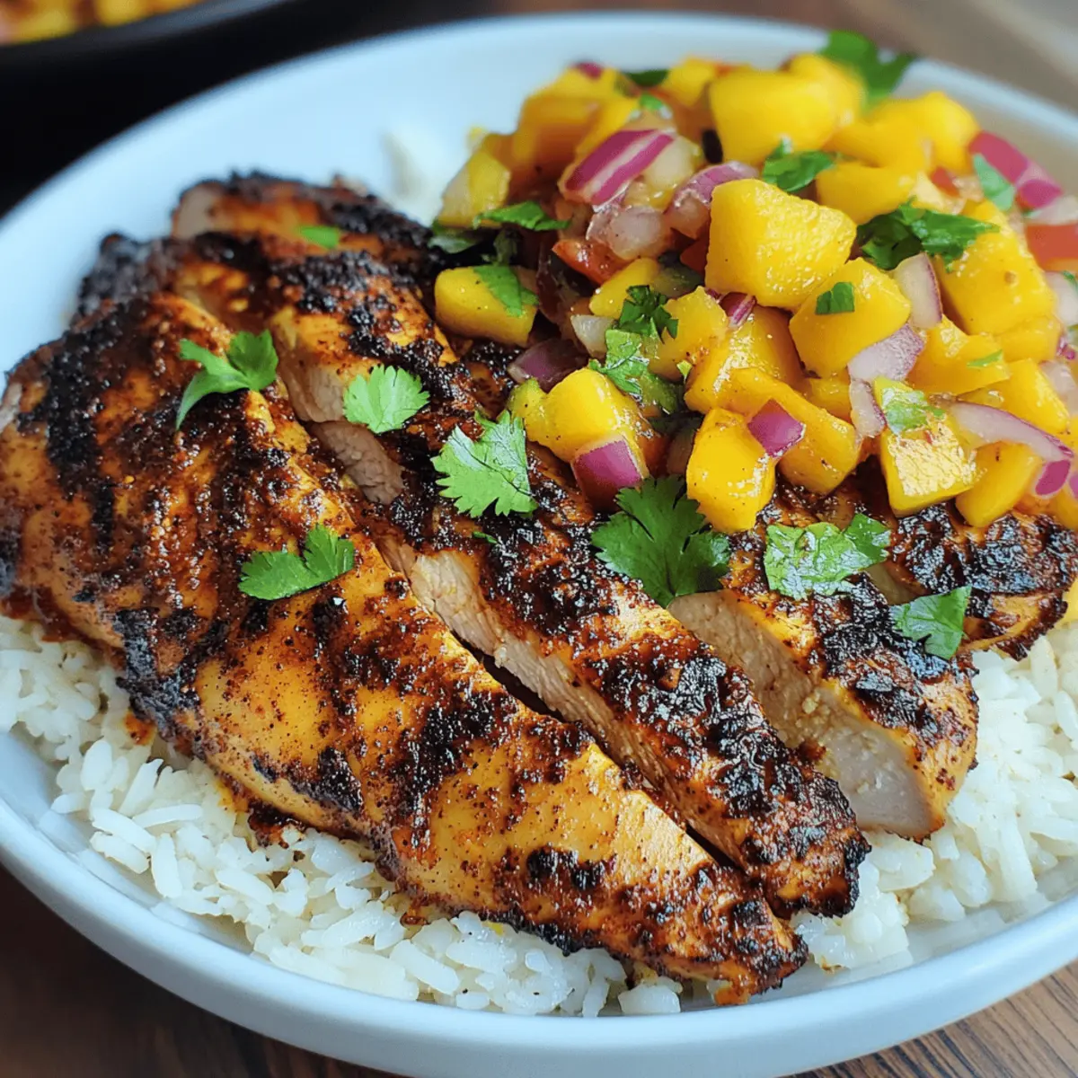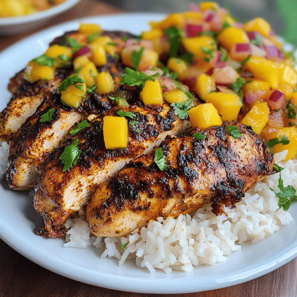 Die Karibik ruft! Wenn ich in meiner Küche stehe und die Aromen von Jerk Chicken mit Mango Salsa und cremigem Kokosreis wahrnehme, fühle ich mich sofort ins Herz der tropischen Inseln versetzt. Diese köstliche Kombination aus würzigem Hähnchen und süßer, erfrischender Salsa bietet nicht nur ein Fest für die Sinne, sondern ist auch das perfekte Rezept für ein gesundes Abendessen an einem Wochentag. Schnell zubereitet und vollgepackt mit Nährstoffen, wird dieses Gericht sicherlich zur neuen Lieblingsspeise in deinem Zuhause. Bist du bereit, deine Geschmacksknospen auf ein neues Abenteuer einzuladen? Warum wirst du dieses Rezept lieben? Einfachheit, die begeistert: Die Zubereitung dieses Gerichts ist kinderleicht, sodass du ohne viel Aufwand ein köstliches Abendessen zaubern kannst. Aromen, die unter die Haut gehen: Die Kombination aus würzigem Jerk Chicken, cremigem Kokosreis und süßer Mango Salsa sorgt für ein Geschmacksfeuerwerk, das deine Sinne verzaubert. Gesund und nährstoffreich: Mit hochwertigen Zutaten wie Hähnchenbrust und Kokosmilch ist dieses Gericht nicht nur lecker, sondern auch super gesund. Vielseitig und anpassbar: Ob du Grapefruit oder Mango für die Salsa verwendest, dieses Rezept lässt Raum für Kreativität – vielleicht mit einem Mango Sago Rezept oder zusätzlichen Gewürzen für eine ungeahnte Note. Schnelle Zubereitung: In weniger als 30 Minuten beginnt deine Karibikreise direkt von deiner Küche aus. Perfekt für jede Gelegenheit: Ob für ein schnelles Abendessen oder ein festliches Beisammensein – dieses Gericht wird deine Gäste beeindrucken! Jerk Chicken Zutaten • Entdecke die geheimen Zutaten für dein nächstes Lieblingsgericht! Für das Hähnchen Hähnchenbrust ohne Haut – Zart und mager, perfekt, um die Gewürze aufzunehmen. Jerk-Gewürz – Sorgt für intensiven, würzigen Geschmack; selbstgemacht ist oft ein Hit! Olivenöl – Ideal zum Braten; probiere auch Kokosöl für einen zusätzlichen Tropenflair. Für den Kokosreis Basmati-Reis – Fluffig und geschmackvoll, kann leicht durch Jasminreis ersetzt werden. Kokosmilch – Verleiht dem Reis eine cremige Textur; leichte Kokosmilch ist eine kalorienbewusste Wahl. Wasser – Essenziell zum Kochen des Reises; achte auf das richtige Verhältnis für perfekte Ergebnisse. Salz – Verstärkt die Aromen; Meersalz sorgt für einen subtileren Geschmack. Für die Mango Salsa Mangos – Süß und saftig, ein Muss für die Salsa; ersetze sie in der Nebensaison durch Pfirsiche. Rote Zwiebel – Füge eine knackige Schärfe hinzu; verwende grünen Zwiebel für eine mildere Variante. Koriander – Frische Note für die Salsa; Petersilie kann eine schmackhafte Alternative sein. Limettensaft – Bringt die Süße ins Gleichgewicht; verwenden kannst du auch Zitronensaft für eine alternative Frische. Salz – Zum Würzen der Salsa; nach Geschmack anpassen ist hier immer eine gute Idee. Schritt-für-Schritt-Anleitung für Jerk Chicken mit Mango Salsa und Kokosreis Step 1: Reis Kochen Koche den Basmati-Reis, indem du ihn zusammen mit der Kokosmilch, dem Salz und dem Wasser in einem Kochtopf vermischst. Bringe die Mischung bei mittlerer Hitze zum Kochen und reduziere dann die Hitze, um das Ganze sanft zu köcheln. Decke den Topf ab und lasse den Reis für etwa 15 Minuten oder gemäß Verpackungsanweisung garen. Nimm den Topf dann vom Herd und lasse ihn weiterhin abgedeckt stehen. Step 2: Hähnchen Zubereiten Würze die Hähnchenbrust großzügig mit dem Jerk-Gewürz, damit das Hähnchen optimal Geschmack aufnimmt. Erhitze in einer Pfanne bei mittlerer Hitze das Olivenöl und füge das gewürzte Hähnchen hinzu. Brate jede Seite für ca. 5-7 Minuten an, bis das Hähnchen goldbraun ist und eine Innentemperatur von 74°C erreicht hat. Lasse das Hähnchen anschließend ruhen, bevor du es in Scheiben schneidest. Step 3: Salsa Zubereiten Bereite die frische Mango Salsa zu, indem du die geschälten und gewürfelten Mangos in einer Schüssel mit der gehackten roten Zwiebel, dem Koriander, dem Limettensaft und einer Prise Salz kombinierst. Mische alles gut durch, um sicherzustellen, dass die Aromen gleichmäßig verteilt sind. Lass die Salsa einige Minuten stehen, damit sich die Geschmäcker entfalten können. Step 4: Anrichten Beginne mit der Anrichtung, indem du eine Portion des fluffigen Kokosreises auf einem Teller platzierst. Lege die geschnittenen Hähnchenstückchen darauf und toppe das Ganze großzügig mit der Mango Salsa. Achte darauf, dass die Farben und Texturen harmonisch zur Geltung kommen. Für einen zusätzlichen frischen Geschmack kannst du Limettenkeile an die Seite legen. Zeit sparen mit der Vorbereitung von Jerk Chicken, Mango Salsa und Kokosreis Die Zubereitung von Jerk Chicken mit Mango Salsa und Kokosreis lässt sich wunderbar im Voraus planen, was dir an hektischen Wochentagen viel Zeit spart! Du kannst das Hähnchen bis zu 24 Stunden im Voraus marinieren, um den Geschmack zu intensivieren; einfach mit dem Jerk-Gewürz einreiben, in Frischhaltefolie wickeln und im Kühlschrank lagern. Die Mango Salsa kann ebenfalls bereits 2-3 Tage vorher zubereitet werden, achte darauf, sie in einem luftdichten Behälter im Kühlschrank aufzubewahren, um die Frische zu bewahren. Der Kokosreis kann direkt vor dem Servieren in der Mikrowelle aufgewärmt werden, um ihn fluffig zu halten. Bei Bedarf einfach die Zutaten kombinieren und du erhältst ein köstliches Gericht mit minimalem Aufwand! Expertentipps für Jerk Chicken Perfekte Hähnchenbrust: Achte darauf, dass das Hähnchen vollständig durchgegart ist; eine Innentemperatur von 74°C ist unerlässlich für die Sicherheit. Ruhen lassen: Lasse das Hähnchen nach dem Braten ruhen, damit die Säfte gleichmäßig verteilt werden und das Fleisch saftig bleibt. Gewürz anpassen: Experimentiere mit der Menge des Jerk-Gewürzes, um die gewünschte Schärfe zu finden; es kann eine große Geschmacksentfaltung ergeben. Salsa frisch halten: Bereite die Mango Sa