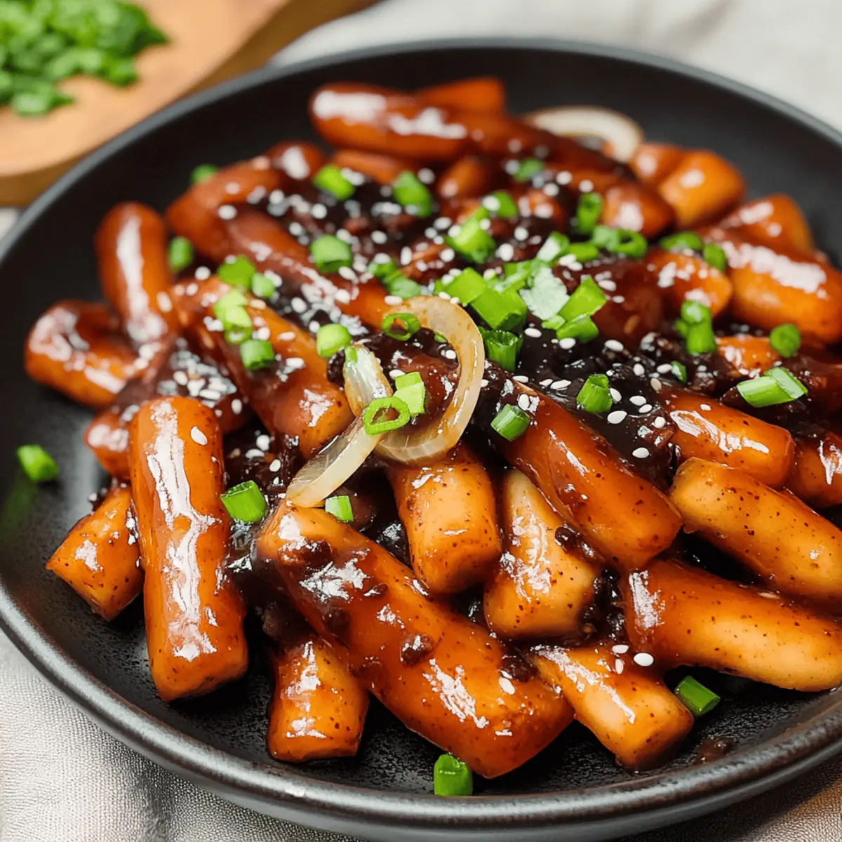 Hast du jemals an einem gemütlichen Abend zu Hause gesessen und dir gewünscht, etwas ganz Besonderes zu essen, das nicht nur lecker, sondern auch einfach in der Zubereitung ist? Die veganen Jjajang Tteokbokki sind die Antwort! Diese verführerische, nicht scharfe Version der klassischen koreanischen Reisnudeln begeistert mit ihrer einzigartigen Kombination aus chewy Reis-Kuchen und einer aromatischen, dunklen Bohnensoße, die deine Geschmacksknospen auf eine umami-reiche Reise mitnimmt. Perfekt für ein schnelles Mittagessen oder ein herzhaftes Abendessen, bietet dieses Rezept nicht nur eine einfache Zubereitung in nur einer Pfanne, sondern auch eine köstliche, gesunde Möglichkeit, sich von Fast Food zu verabschieden. Bist du bereit, die Geheimnisse eines authentischen koreanischen Comfort Foods zu entdecken? Warum wirst du Jjajang Tteokbokki lieben? Einfachheit, die begeistert: Dieses Rezept erfordert keine speziellen Kochkünste und lässt sich in nur einer Pfanne zubereiten. Veganer Genuss: Genuss ohne tierische Produkte – perfekt für alle, die pflanzliche Alternativen suchen. Aromatische Vielfalt: Die Kombination aus schwarzer Bohnensoße und frischem Gemüse bringt Schwung in deine Mahlzeiten. Einfache Anpassungen: Du kannst ganz nach Belieben Tofu oder Gemüse hinzufügen und die Süße anpassen – jeder Biss ist individuell! Zeitersparnis: In weniger als 30 Minuten steht ein köstliches Gericht auf dem Tisch, das Familie und Freunde gleichermaßen begeistert. Wenn du nach weiteren köstlichen Rezepten suchst, probiere doch auch unser Minestrone Suppe Rezept oder die Zitronen Brownies Einfach, um dein kulinarisches Repertoire zu erweitern! Jjajang Tteokbokki Zutaten Hinweis: Für dieses köstliche Jjajang Tteokbokki-Rezept benötigst du nur 7 Zutaten. Für die Sauce Öl – Verleiht Geschmack und hilft beim Garen der Aromen. Ersetze es durch Pflanzen- oder Sesamöl für zusätzlichen Geschmack. Knoblauch – Sorgt für aromatische Tiefe. Frischer Knoblauch ist am besten; vermeide Ersatzstoffe. Schwarzbohnensauce – Der Schlüssel zu einer herzhaften Basis. Authentizität ist wichtig; vermeide Ersatzstoffe für den echten Jjajang-Geschmack. Zucker – Balanciert die herzhaften Aromen im Gericht. Kann durch unraffinierten Zucker oder Ahornsirup ersetzt werden. Sojasauce – Verstärkt Umami und Salzgehalt. Verwende natriumarme Sojasauce für eine gesündere Option. Für die Hauptzutaten Koreanische Reis-Kuchen – Der Hauptbestandteil, der für die Zähigkeit sorgt. Frische Reis-Kuchen bieten die beste Textur; gefrorene können ebenfalls verwendet werden (vor dem Kochen auftauen). Zwiebel – Fügt Süße und Komplexität hinzu. Jede Zwiebelart funktioniert, aber gelbe oder weiße sind vorzuziehen. Chopped Green Onions – Fügt Frische und Farbe hinzu. Verwende die weißen Teile für das Kochen und die grünen Teile zur Garnierung. Wasser – Notwendig zum Simmern. Passe die Menge je nach gewünschter Soßendicke an. Schritt-für-Schritt-Anleitung für Vegane Jjajang Tteokbokki Schritt 1: Öl erhitzen und Aromen anbraten Erhitze etwas Öl in einer großen Pfanne bei mittlerer Hitze. Füge den gehackten Knoblauch und die geschnittenen Zwiebeln hinzu und brate sie für etwa 2 Minuten an, bis sie duftend und leicht goldbraun sind. Achte darauf, dass der Knoblauch nicht anbrennt, da er sonst bitter wird. Schritt 2: Sauce zubereiten Gib die Schwarzbohnensauce, den Zucker und die Sojasauce in die Pfanne. Rühre die Mischung gründlich um und lasse alles 2 Minuten kochen, damit sich die Aromen gut verbinden und die Sauce leicht eindickt. Du solltest eine reichhaltige, schimmernde Soße sehen, die deine Jjajang Tteokbokki umhüllen wird. Schritt 3: Reis-Kuchen und Zwiebeln hinzufügen Integriere die ungekochten koreanischen Reis-Kuchen und die in Streifen geschnittenen Zwiebeln in die Pfanne. Gieße genug Wasser dazu, um alles zu bedecken. Rühre die Mischung vorsichtig um, damit die Reis-Kuchen gleichmäßig mit der Sauce überzogen werden. Schritt 4: Köcheln lassen Bring die Mischung zum Simmern und lasse sie unbedeckt für 15-17 Minuten kochen. Rühre regelmäßig um, damit die Reis-Kuchen nicht am Boden der Pfanne kleben bleiben. Du möchtest eine dicke, glänzende Sauce erhalten und sicherstellen, dass die Reis-Kuchen weich und zart sind. Schritt 5: Garnieren und servieren Sobald die Sauce eingedickt ist und die Reis-Kuchen den richtigen Gargrad erreicht haben, nimm die Pfanne vom Herd. Garniere die Vegan Jjajang Tteokbokki mit gerösteten Sesamsamen und gehackten grünen Zwiebeln, bevor du das Gericht servierst. Genieße die köstlichen Aromen dieses herzhaften Gerichts! Was serviert man zu veganen Jjajang Tteokbokki? Harmonische Beilagen machen das Essen zu einem unvergesslichen Erlebnis. Lass dich von diesen köstlichen Ideen inspirieren, um dein Hauptgericht zu ergänzen. Eingelegtes Gemüse: Perfekter Kontrast zur cremigen Konsistenz der Jjajang Tteokbokki; bringt Frische und einen Hauch Säure ins Spiel. Dies ist die klassische koreanische Kombination, die das Geschmackserlebnis wirklich hebt. Kimchi: Das würzige, fermentierte Gemüse ergänzt die Aromen der Jjajang Tteokbokki und sorgt für eine interessante Textur. Außerdem gibt es viele gesundheitliche Vorteile, die mit der Fermentation verbunden sind. Gekochter Brokkoli: Bietet eine schöne, knackige Textur und ist gesund. Auf den Reis-Kuchen verteilen, sorgt für zusätzliche Nährstoffe und Farbe auf dem Teller. Gegrillte Tofu-Steaks: Diese proteinreiche Ergänzung bringt Substanz und einen herzhaften Geschmack, der hervorragend mit der würzigen Bohnensoße harmoniert. Tofu ist vielseitig und kann gut mariniert werden, um noch mehr Geschmack zu erzielen. Jasminreis: Serviere eine kleine Portion gekochten Jasminreis als Grundlage, um die köstliche Sauce der Jjajang Tteokbokki aufzusaugen. Die zarte Süße des Reises ergänzt perfekt die reichhaltigen Aromen. Ein kaltes Getränk: Begleite dein Essen mit einem er