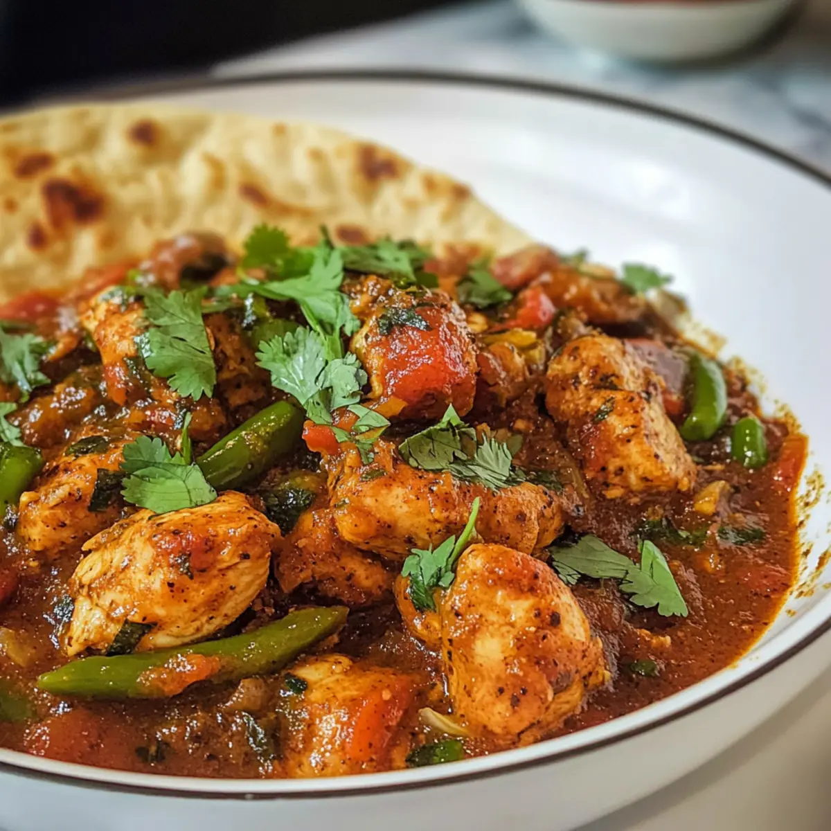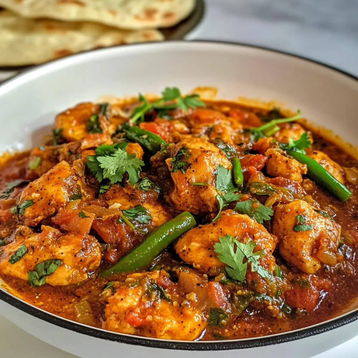 Das Aroma von frisch gebratenem Kadai-Hühnchen ist einfach unwiderstehlich! Als leidenschaftlicher Koch habe ich in der Küche schon viele spannende Gerichte aus verschiedenen Ländern ausprobiert, aber diesen würzigen indischen Klassiker kann ich immer wieder genießen. Kadai-Hühnchen vereint zarte Hühnerstücke mit frischen Tomaten und einer perfekten Mischung aus aromatischen Gewürzen, was dieses Gericht nicht nur supperleicht zuzubereiten macht, sondern auch perfekt für gesellige Abende mit Freunden oder Familie ist. Egal, ob du es mit duftendem Naan oder basmati Reis servierst, dieses Gericht wird deine Geschmacksknospen begeistern! Bist du bereit, das Geheimnis dieses köstlichen Rezepts zu entdecken? Lass uns gemeinsam in die Welt der Aromen eintauchen! Warum wirst du dieses Rezept lieben? Einfachheit: Die Zubereitung von Kadai-Hühnchen ist im Handumdrehen erledigt, perfekt für unter der Woche oder überraschende Gäste. Würziges Aroma: Die Kombination aus frischem Ingwer, Knoblauch und einer Auswahl an Gewürzen sorgt für ein Geschmacksfeuerwerk, das jeden begeistern wird – ein absolutes Muss! Vielseitigkeit: Ob mit Naan, basmati Reis oder sogar Quinoa – dieses Rezept passt sich deinen Vorlieben an. Probiere auch dazu passende Beilagen wie krosse Zwiebelringe Heissluftfritteuse oder krosse Zucchini Chips für ein perfektes Menü! Gesundheitsbewusst: Dieses Gericht ist glutenfrei und reich an Protein, ideal für alle, die eine gesunde Ernährung im Blick haben. Familienfreundlich: Kadai-Hühnchen kommt bei Jung und Alt gleich gut an und bringt alle am Esstisch zusammen. Lass dir diese Gaumenfreude nicht entgehen! Kadai-Hühnchen Zutaten Für das Hähnchen • Hähnchenkeulen – Haut- und knochenlos für zarte, saftige Stücke, die die Aromen gut aufnehmen. • Kochöl – Hoch erhitzbares Öl, wie Avocado- oder Erdnussöl, um richtig anbraten zu können. Für die Aromen • Knoblauch – 6 bis 8 Zehen, zerdrückt oder gerieben; bringt Tiefe und ein wunderbar würziges Aroma. • Frischer Ingwer – 2 Esslöffel frisch gerieben + ein 3 Zoll großes Stück, in Streifen geschnitten; sorgt für einen spicy Kick und bereichert die Aromatik. Für die Tomatensauce • Roma-Tomaten – 1 Pfund, geviertelt; nicht zu saftig, um die dicke Sauce perfekt zu binden. • Salz – Nach Geschmack (ca. 1½ Teelöffel); essentiell für die Geschmacksverstärkung. • Kashmiri-Chilipulver – 1 Teelöffel; alternativ kann Cayenne oder 2 Teelöffel Paprika verwendet werden. Es sorgt für Farbe und moderate Schärfe. Für die Gewürze • Schwarzer Pfeffer – 1½ Teelöffel, frisch gemahlen; verstärkt die Schärfe und komplettiert die Aromen. • Rote Chiliflocken – 1 Teelöffel; für zusätzlichen Schwung und Schärfe. • Garam Masala – 1 Teelöffel, geteilt; unverzichtbare Gewürzmischung für komplexen Geschmack. • Gemahlener Kreuzkümmel – ½ Teelöffel; verleiht eine erdige Note. • Gemahlener Koriander – ½ Teelöffel; bringt citrusartige Untertöne. • Gemahlener Kurkuma – ½ Teelöffel; sorgt für Farbe und Erdigkeit. Für die zusätzlichen Aromen • Lorbeerblätter – 2; verleihen beim Kochen eine subtile Geschmacksnuance. • Grüne Chilischoten – 2, längs aufgeschnitten; für Schärfe und geschmackliche Intensität. • Koriander – ¼ Tasse, gehackt; frisches Kraut, das das Gericht aromatisch aufpeppt. • Kreuzkümmelsamen – ½ Teelöffel, frisch zerstoßen (optional); sorgt für Knusprigkeit und tiefen Geschmack. • Koriandersamen – ½ Teelöffel, frisch zerstoßen (optional); verstärkt das Aroma und die Textur. Für den Abschluss • Butter/Ghee – 1 Esslöffel (optional); verleiht am Ende eine besondere Reichhaltigkeit und Geschmack. Das Kadai-Hühnchen wird deine Geschmacksnerven in ein aromatisches Abenteuer entführen! Mach dich bereit, es nachzukochen! Schritt-für-Schritt-Anleitung für Kadai-Hühnchen Step 1: Hähnchen anbraten Erhitze in einem Wok bei mittlerer bis hoher Hitze etwas Kochöl, bis es schimmert. Tupfe die Hähnchenkeulen trocken und lege sie in einer einzelnen Schicht in den Wok. Erhöhe die Hitze auf hoch und brate die Hähnchenstücke für etwa 3-4 Minuten pro Seite, bis sie goldbraun sind. Step 2: Aromen hinzufügen Füge den zerdrückten Knoblauch und den frisch geriebenen Ingwer zu dem Hähnchen im Wok hinzu. Koche die Mischung für etwa 3-4 Minuten, bis der rohe Geruch verflogen ist und die Aromen sich entfalten. Rühre regelmäßig um, damit nichts anbrennt. Step 3: Tomaten und Gewürze einrühren Rühre die geviertelten Roma-Tomaten, Salz, Kashmiri-Chilipulver, frisch gemahlenen schwarzen Pfeffer, rote Chiliflocken, ½ Teelöffel Garam Masala, Kreuzkümmel, Koriander und Kurkuma unter. Koche das Ganze für 20-25 Minuten, bis das Hähnchen zart ist und die Tomaten ihren Saft freigeben. Step 4: Simmern lassen Füge die restlichen Gewürze, die längs aufgeschnittenen grünen Chilischoten, den gehackten Koriander und die julienned Ingwerstreifen hinzu. Reduziere die Hitze und lasse das Kadai-Hühnchen 5 Minuten lang unbedeckt köcheln, bis überschüssige Flüssigkeit verdampft und die Mischung eingedickt ist. Step 5: Letzte Akzente setzen Rühre die frisch zerstoßenen Kreuzkümmel- und Koriandersamen sowie die Butter oder das Ghee (wenn verwendet) unter. Garniere das Kadai-Hühnchen mit zusätzlichem Koriander und Ingwer für einen frischen und aromatischen Abschluss. Kadai-Hühnchen: Vorbereitung für stressfreies Kochen Kadai-Hühnchen ist ideal für Meal Prep und lässt sich wunderbar im Voraus zubereiten! Du kannst die Hähnchenkeulen bis zu 24 Stunden vorher marinieren, indem du sie mit den Gewürzen und dem Öl vermischst, um die Aromen intensiv einziehen zu lassen. Auch die Gemüsevorbereitungen, wie das Schneiden der Tomaten und das Zerkleinern von Ingwer und Knoblauch, können bis zu 3 Tage im Voraus erledigt werden. Beim Kochen einfach alles nach Anleitung zusammenfügen, und du wirst schnell ein köstlic