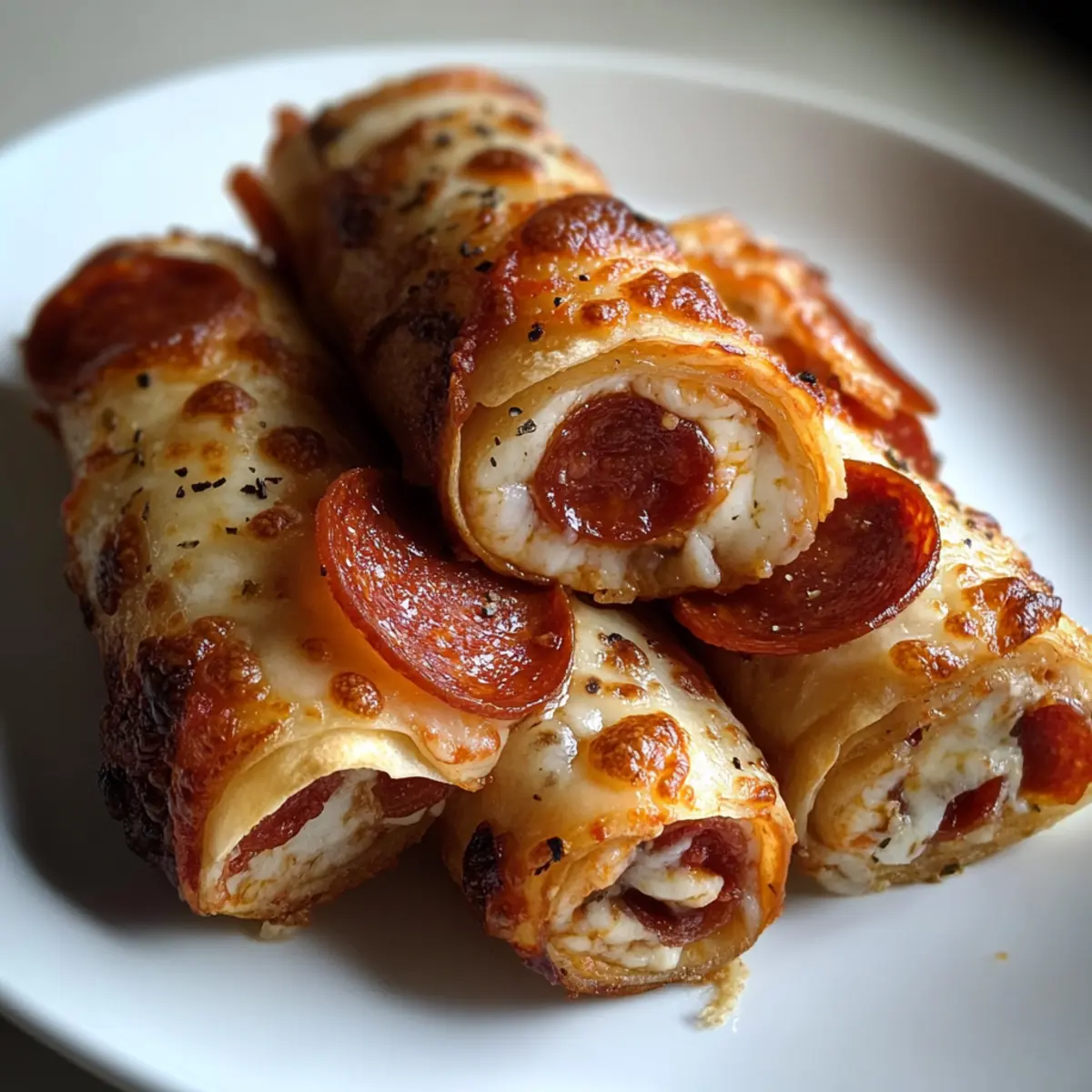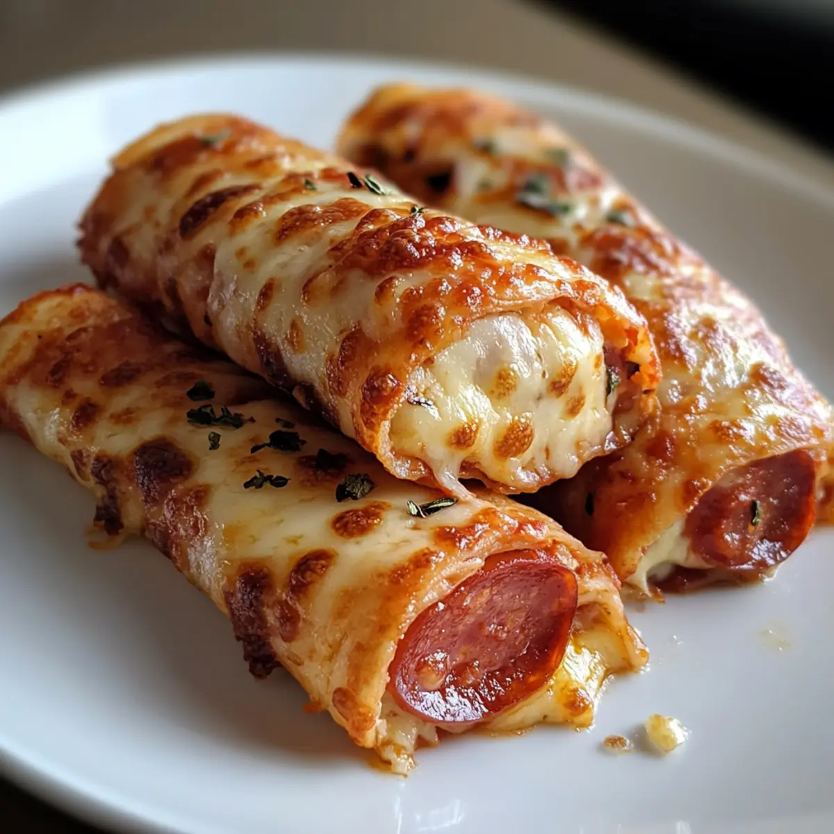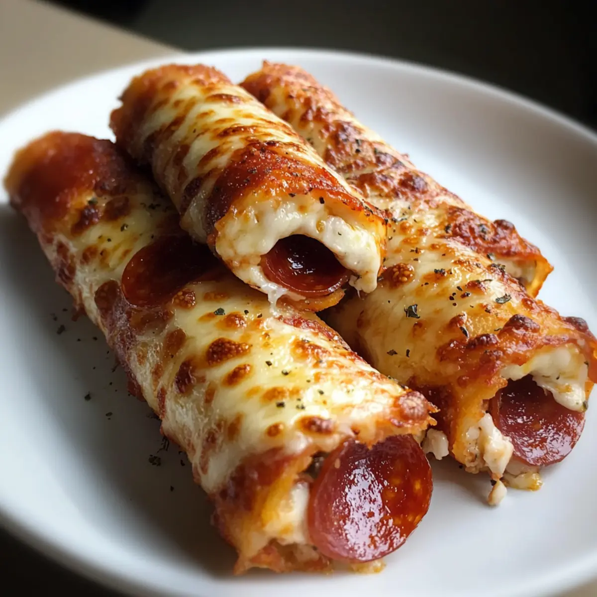 Ein verführerisches Aroma von geschmolzenem Käse und würzigen Pepperoni strömt durch die Küche, während ich die Käse-Pepperoni-Pizza-Rollen zubereite. Diese schnellen und unkomplizierten Snacks sind nicht nur ein echter Genuss, sondern auch eine hervorragende Möglichkeit, Heißhunger auf Pizza zu stillen, ohne dabei von der Diät abzuweichen. In nur 17 Minuten sind diese leckeren kleinen Rollen fertig und eignen sich perfekt für gesellige Abende oder auch für einen spontanen Snack nach der Arbeit. Die Kombination aus knuspriger, low-carb Tortilla und dem geschmolzenen Mozzarella verspricht eine unvergleichliche Geschmackserfahrung. Bleibt mir die Frage: Wie würdet ihr eure eigenen Käse-Pepperoni-Pizza-Rollen gestalten? Warum sind diese Pizza-Rollen unwiderstehlich? Einfachheit: Die Zubereitung könnte nicht einfacher sein – keine speziellen Kochfähigkeiten erforderlich! Vielseitigkeit: Passen Sie die Zutaten ganz nach Ihrem Geschmack an, von Gemüse bis zu verschiedenen Wurstsorten. Eine perfekte Gelegenheit, Kreativität zu zeigen! Köstlicher Genuss: Die Kombination aus geschmolzenem Käse und würziger Pepperoni sorgt für ein Geschmackserlebnis, das alle begeistert. Diese Snacks sind der Hit auf jeder Party! Schnell zubereitet: In nur 17 Minuten sind sie bereit. Ideal für hektische Tage oder unerwartete Gäste. Gesunde Alternative: Die Verwendung von low-carb Tortillas ermöglicht es Ihnen, den Genuss ohne schlechtes Gewissen zu erleben. Für mehr tolle Low-Carb-Ideen könnten Sie einen Blick auf unsere gesunden snack-Rezepte werfen! Käse-Pepperoni-Pizza-Rollen Zutaten • Die perfekten Zutaten für unwiderstehliche Käse-Pepperoni-Pizza-Rollen sind hier! Für die Füllung Low-Carb Tortillas – Ideal als Basis; verwenden Sie Mission’s carb-smart für die besten Ergebnisse. Marinara Sauce – Fügt einen würzigen Geschmack hinzu; 2 Esslöffel pro Tortilla sind ausreichend, um ein Durchweichen zu vermeiden. Geriebener Mozzarella – Sorgt für eine cremige Textur; frisch gerieben schmilzt er am besten und sorgt für köstliche Käsezüge. Pepperoni-Scheiben – Bringt eine würzige Note; passen Sie die Menge je nach Ihrem Geschmack an. Variationen und Extras Frisches Gemüse – Fügen Sie dünn geschnittene Paprika oder schwarze Oliven hinzu, um den Nährwert zu steigern. Würzige Optionen – Ersetzen Sie normale Pepperoni durch scharfe Varianten oder fügen Sie zerstoßene rote Pfefferflocken für zusätzlichen Kick hinzu. Kräuter – Frische Basilikumblätter bringen einen zusätzlichen Aroma-Kick und machen die Pizza-Rollen noch schmackhafter! Schritt-für-Schritt-Anleitung für Käse-Pepperoni-Pizza-Rollen Step 1: Ofen vorheizen Heizen Sie Ihren Ofen auf 190 °C (375 °F) vor. Dies ist wichtig, damit sich die Käse-Pepperoni-Pizza-Rollen gleichmäßig backen und eine goldene, knusprige Außenseite entwickeln. Während der Ofen aufheizt, können Sie mit den Vorbereitungen der Tortillas beginnen. Step 2: Tortillas vorbereiten Legen Sie die low-carb Tortillas flach auf eine saubere Arbeitsfläche. Verteilen Sie gleichmäßig etwa 2 Esslöffel Marinara-Sauce auf jeder Tortilla, wobei Sie einen halben Zoll Rand lassen. So wird die Füllung beim Rollen nicht herausquillen, und die Käse-Pepperoni-Pizza-Rollen bleiben schön kompakt. Step 3: Käse und Pepperoni belegen Streuen Sie eine großzügige Menge von frisch geriebenem Mozzarella über die Marinara-Sauce und achten Sie darauf, dass die gesamte Sauce gut bedeckt ist. Legen Sie anschließend die Pepperoni-Scheiben gleichmäßig darauf, sodass die Ränder sich leicht überlappen. Dies sorgt für eine würzige Füllung in jeder Rolle. Step 4: Rollen formen Beginnen Sie, die Tortilla von einem Ende her fest aufzurollen, bis Sie die andere Seite erreichen. Achten Sie darauf, dass die Füllung dabei gut in der Tortilla eingeschlossen bleibt. Bestreichen Sie die Außenseite der Rolle leicht mit Olivenöl, um eine goldene Kruste beim Backen zu erzielen. Step 5: Backen Legen Sie die gerollten Tortillas mit der Naht nach unten auf ein mit Backpapier ausgelegtes Backblech. Backen Sie die Käse-Pepperoni-Pizza-Rollen für 10 bis 12 Minuten, bis sie goldbraun und sprudelnd sind. Halten Sie ein Auge auf die Rollen, damit sie nicht zu dunkel werden. Step 6: Abkühlen und Servieren Nehmen Sie die Käse-Pepperoni-Pizza-Rollen aus dem Ofen und lassen Sie sie einige Minuten abkühlen. Dadurch können sich die Aromen setzen, und Sie vermeiden, sich beim Schneiden zu verbrennen. Schneiden Sie die Rollen in Stücke und servieren Sie sie warm mit zusätzlicher Marinara-Sauce zum Dippen. Vorbereiten der Käse-Pepperoni-Pizza-Rollen für stressfreies Kochen Diese Käse-Pepperoni-Pizza-Rollen sind ideal für eine vorbereitende Kochsession! Sie können die Tortillas bis zu 24 Stunden im Voraus mit Marinara und Käse belegen, dabei ist es wichtig, dass Sie die Füllung gleichmäßig verteilen, um ein Durchweichen zu vermeiden. Danach einfach die belegten Tortillas in Frischhaltefolie einwickeln und im Kühlschrank aufbewahren. Wenn Sie bereit sind, sie zu genießen, rollen Sie sie einfach auf und backen Sie sie für 10-12 Minuten bei 190 °C (375 °F), bis sie goldbraun und knusprig sind. So sparen Sie wertvolle Zeit an hektischen Abenden, während Sie dennoch köstliche, hausgemachte Snacks genießen. Variationen und Ersatzoptionen für Käse-Pepperoni-Pizza-Rollen Entfesseln Sie Ihre Kreativität in der Küche und passen Sie diese köstlichen Roll-ups nach Ihrem Geschmack an! Gemüse-Mix: Fügen Sie dünn geschnittene Paprika oder Zucchini hinzu, um die Gesundheit zu erhöhen und zusätzlichen Crunch zu bieten. Würzige Variante: Ersetzen Sie normale Pepperoni durch scharfe Chorizo oder fügen Sie Jalapeños für einen feurigen Kick hinzu. Käse-Mischung: Probieren Sie statt Mozzarella eine Mischung aus Cheddar und Gouda für einen intensiveren Käsegeschmack. Das bringt Abwechslung! Kräuter-Kick: Ergänzen Sie frische Kräuter wie O