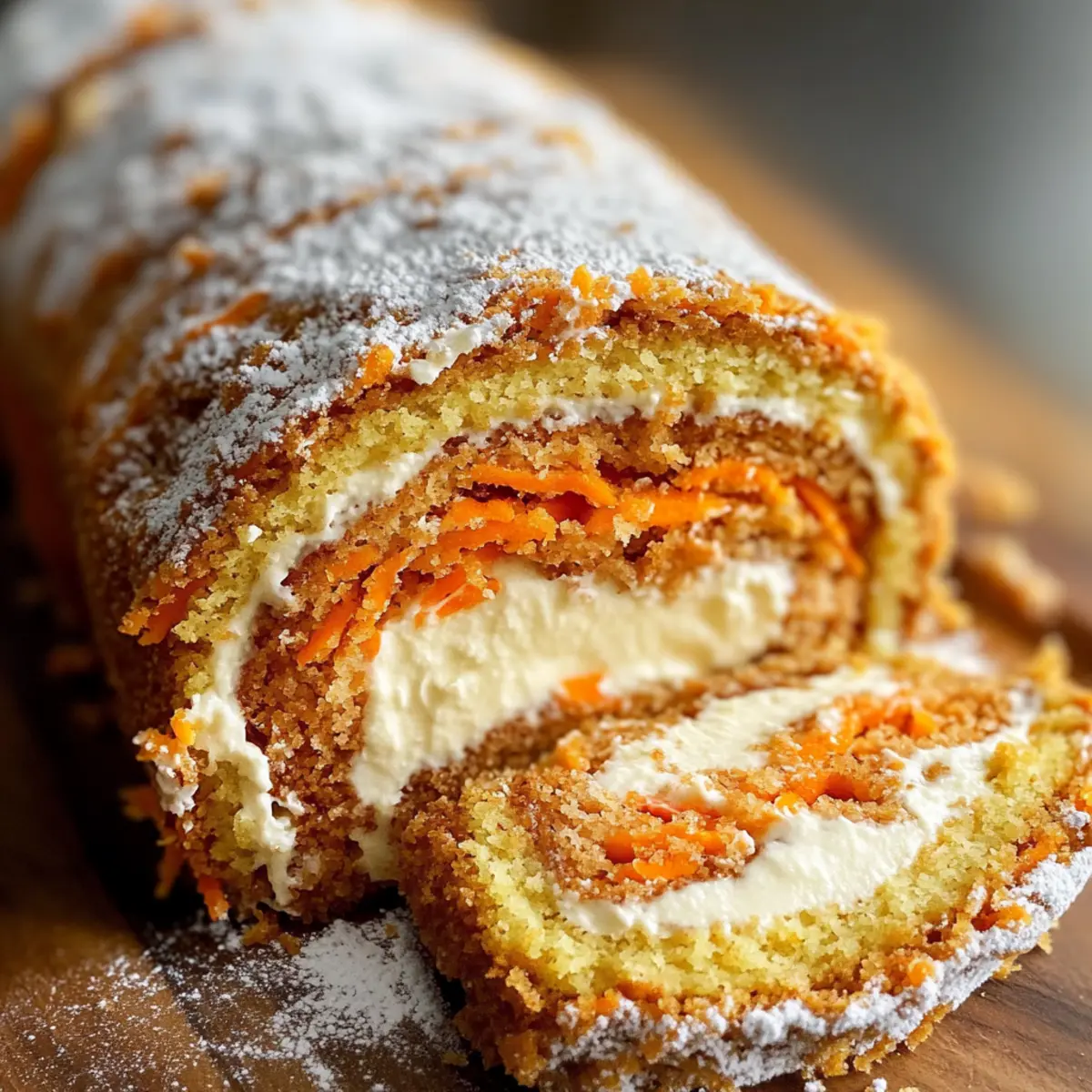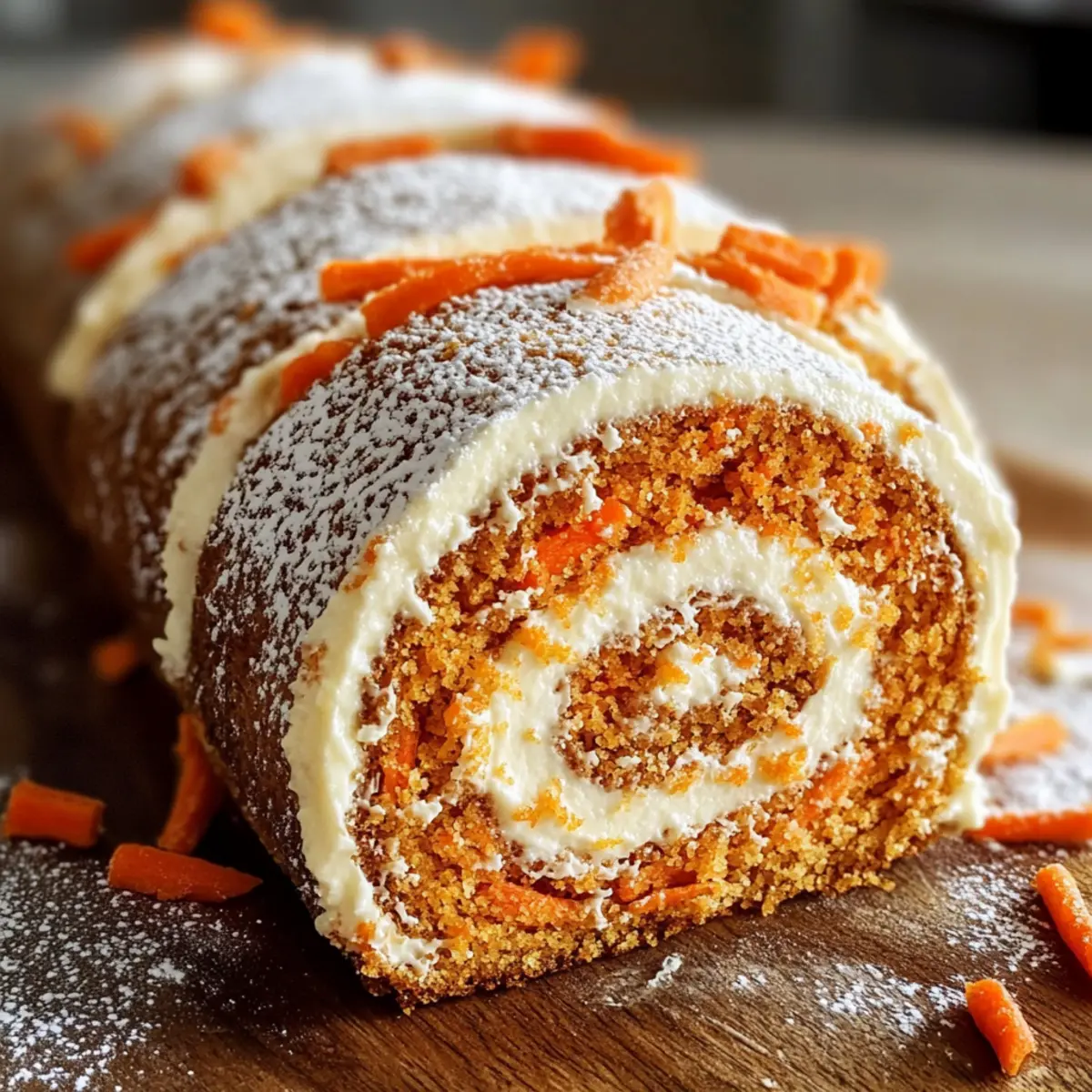 Mit einem Hauch von Frühlingszauber bringen wir dir heute ein ganz besonderes Rezept: die Karottenkuchenrolle mit Frischkäsefrosting-Füllung. Wenn du beim Backen die perfekte Kombination aus Späßen und köstlichen Genüssen suchst, dann ist dieser saftige Karottenkuchen genau das Richtige für dich. Er ist nicht nur ein Blickfang auf jedem Festtagstisch, sondern auch einfach zuzubereiten – perfekt für feierliche Anlässe oder einfach als süße Belohnung nach einem langen Tag. Die zarte Konsistenz des Kuchens, zusammen mit der cremigen Füllung, schafft ein unvergleichliches Geschmackserlebnis. Bist du bereit, mit mir in die Welt des Backens einzutauchen und diesen köstlichen Genuss zu zaubern? Warum wirst du dieses Rezept lieben? Einfachheit: Die Zubereitung der Karottenkuchenrolle ist überraschend unkompliziert und benötigt nur grundlegende Backfähigkeiten. Saftiger Genuss: Die Kombination aus frisch geriebenen Karotten und dem cremigen Frischkäsefrosting sorgt für eine harmonische Balance von Süße und herzhafter Frische. Perfekte Präsentation: Die schönen Swirls der Füllung machen die Rolle zu einem echten Hingucker auf jedem Tisch und werden deine Gäste begeistern. Vielfältige Variationen: Ob mit Nüssen, Ananas oder Kokos – diese Rolle kann ganz nach deinem Geschmack abgewandelt werden, was sie ausgesprochen vielseitig macht. Schnelles Rezept: Die gesamte Zubereitungszeit ist kurz, sodass du dieses köstliche Dessert auch an hektischen Tagen zubereiten kannst. Schau dir auch unser Rezept für Avocado Gefuellte Rezept an, wenn du ein weiteres einfaches und schmackhaftes Gericht ausprobieren möchtest! Karottenkuchenrolle mit Frischkäsefrosting-Zutaten Für den Teig • Allzweckmehl – sorgt für die Struktur und hält den Kuchen leicht. • Backpulver – lässt den Kuchen aufgehen und sorgt für eine luftige Textur. • Natron – arbeitet zusammen mit dem Backpulver für einen optimalen Auftrieb. • Salz – verstärkt den Geschmack und balanciert die Süße. • Gemahlener Zimt – verleiht dem Kuchen eine warme, gemütliche Würze. • Gemahlener Ingwer – sorgt für einen würzigen Kick, der die Karotten ergänzt. • Gemahlene Muskatnuss – bringt erdige Wärme in die Geschmacksnote. • Große Eier – sorgen für Feuchtigkeit und Stabilität im Kuchen. • Zucker – süßt den Kuchen und trägt zu einem leichten, luftigen Teig bei. • Vanilleextrakt – vertieft den Gesamteindruck des Geschmacks. • Fein geriebene Karotten – gibt Feuchtigkeit und Süße; frisch gerieben ist ideal für die Textur. Vermeide vorgeriebene Karotten, da sie oft zu trocken sind. • Pflanzenöl – sorgt für Reichtum und Feuchtigkeit im Kuchen. • Hakkte Walnüsse oder Pekannüsse (optional) – sorgt für Textur und nussigen Geschmack; kann nach Belieben weggelassen werden. • Puderzucker (zum Bestäuben) – verhindert, dass der Kuchen am Tuch beim Rollen kleben bleibt. Für die Frischkäsefüllung • Frischkäse – verwende Vollfett für einen reichen und cremigen Füllungsgeschmack. • Ungesalzene Butter – weich, um sich leicht mit dem Frischkäse zu vermischen. • Puderzucker – süßt die Füllung und sorgt für eine seidige Textur. • Vanilleextrakt – rundet den Geschmack der Füllung mit Wärme ab. Schritt-für-Schritt-Anleitung für Karottenkuchenrolle mit Frischkäsefrosting-Füllung Step 1: Ofen vorheizen und Backform vorbereiten Heize den Ofen auf 175 °C (350 °F) vor. Lege ein 10×15 Zoll großes Backblech mit Backpapier aus und fettiere es leicht, um sicherzustellen, dass die Karottenkuchenrolle nach dem Backen leicht herausgenommen werden kann. Achte darauf, dass das Backpapier die Kanten des Blechs überragt, um das Herausheben zu erleichtern. Step 2: Trockene Zutaten mischen In einer großen Schüssel vermische das Allzweckmehl, Backpulver, Natron, Salz, Zimt, Ingwer und Muskatnuss gründlich. Siebe die Mischung, um Klumpen zu entfernen, und stelle sicher, dass die Gewürze gleichmäßig verteilt sind. Diese Mischung bildet die Grundlage für den köstlichen Geschmack der Karottenkuchenrolle. Step 3: Teig zubereiten Schlage in einer separaten Schüssel große Eier mit Zucker und Vanilleextrakt auf, bis die Mischung dick und blass ist, was etwa 3–5 Minuten dauert. Füge das Pflanzenöl hinzu und rühre gut um. Mische dann die fein geriebenen Karotten unter und falte die trockenen Zutaten vorsichtig unter, um den Teig nicht zu übermixen. Step 4: Backen Verteile den Teig gleichmäßig auf dem vorbereiteten Backblech und stelle sicher, dass die Schicht gleichmäßig dick ist. Backe den Kuchen 10–12 Minuten lang, bis er in der Mitte elastisch ist und leicht zurückspringt, wenn du ihn sanft drückst. Achte darauf, ihn nicht zu überbacken, damit die Rolle beim Formen nicht bricht. Step 5: Kuchen rollen Streue Puderzucker großzügig auf ein sauberes Küchentuch. Stürze den gebackenen Kuchen vorsichtig auf das Tuch und ziehe das Backpapier ab. Rolle den Kuchen vom kurzen Ende her auf, während er noch warm ist, um das Brechen zu verhindern. Lass die Rolle vollständig abkühlen, während sie in einem Handtuch eingewickelt ist. Step 6: Füllung zubereiten Schlage in einer großen Schüssel den Frischkäse und die weiche Butter zusammen, bis die Mischung cremig und glatt ist. Füge nach und nach den Puderzucker und den Vanilleextrakt hinzu, während du weiterschlägst, bis die Füllung leicht und fluffig ist. Diese Füllung wird das Herzstück der Karottenkuchenrolle mit Frischkäsefrosting-Füllung. Step 7: Rolle zusammensetzen Rolle die abgekühlte Karottenkuchenrolle vorsichtig aus und verteile die Frischkäsefüllung gleichmäßig auf der Oberfläche. Achte darauf, die Füllung bis an die Ränder zu bringen, um die beste Geschmackserfahrung zu erzielen. Rolle die Kuchenplatte dann sanft wieder auf, diesmal ohne das Handtuch. Step 8: Kühlen und Servieren Wickle die fertige Karottenkuchenrolle in Plastikfolie ein und stelle sie für mi