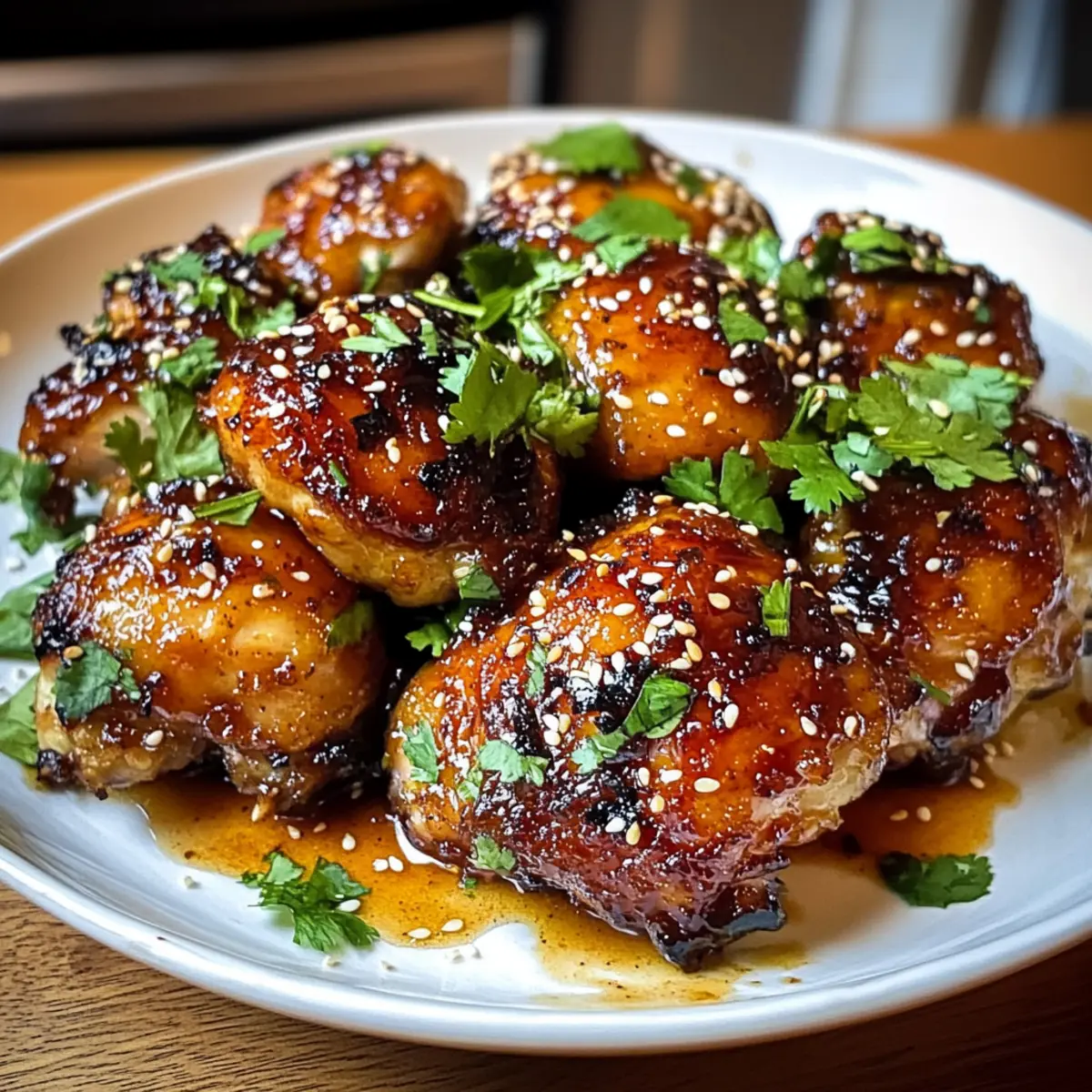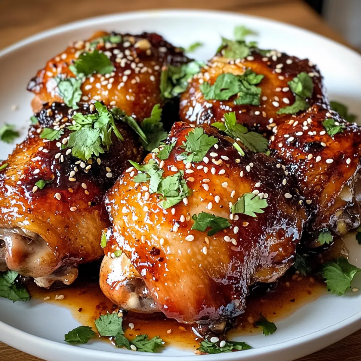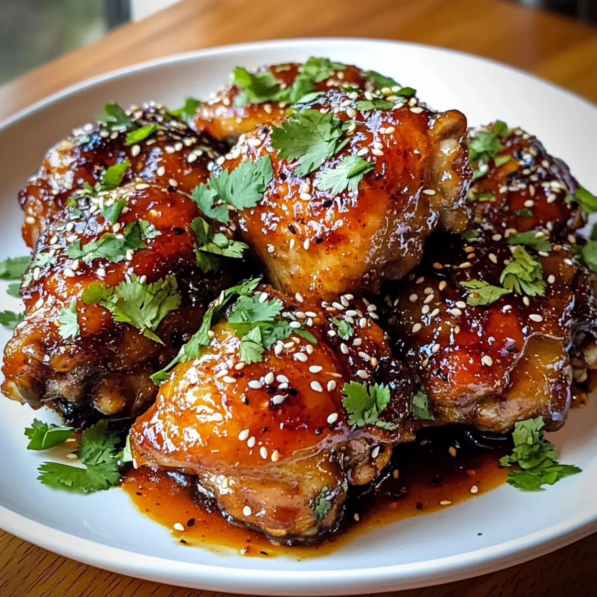 Die Sonne bricht durch die Wolken, während ich in der Küche stehe und die perfekten Zutaten für meine Klebrigen süßen Chili-Hühnchenkeulen vorbereite. Dieser unwiderstehliche Mix aus süßen, herzhaften und würzigen Aromen bringt nicht nur frisch zubereitete Freude auf den Tisch, sondern lässt auch mein Herz höherschlagen! Mit saftigem Fleisch und einer ultra-knusprigen Haut sind diese Hühnchenkeulen nicht nur einfach zuzubereiten, sondern auch ideal für ein schnelles Abendessen unter der Woche. In nur wenigen Schritten könnt ihr mit minimalem Aufwand ein Gericht kreieren, das eure Lieben begeistern wird. Seid ihr bereit, eure Kochkünste auf das nächste Level zu heben und diese Geschmacksexplosion zu erleben? Warum diese Hühnchenkeulen unwiderstehlich sind Einfachheit: Der Prozess ist unkompliziert, sodass auch Anfänger hervorragende Ergebnisse erzielen können. Fantastischer Geschmack: Die harmonische Mischung aus süß, herzhaft und würzig wird euer Geschmackserlebnis revolutionieren. Vielseitigkeit: Ob im Ofen, auf dem Grill oder am Herd – dieses Rezept passt zu verschiedenen Kochmethoden. Perfekte Textur: Die knusprige Haut in Kombination mit dem zarten Fleisch sorgt für eine grandiose Mundfülle. Schnelle Zubereitung: Ideal für stressfreie Abendessen unter der Woche, die keine Kompromisse beim Geschmack eingehen. Crowd-Pleaser: Gerichte wie diese sind ein Hit bei Familie und Freunden – jeder wird nach dem Rezept fragen! Für ein weiteres leckeres Rezept, schaue dir auch meine Zitronen Brownies Rezept an! Klebige süße Chili-Hühnchenkeulen Zutaten Hinweis: Diese Zutaten sorgen für ein geschmackliches Erlebnis, das eure Sinne verzaubern wird! Für die Hühnchenkeulen: Hühnchenkeulen mit Knochen und Haut – Saftiges Fleisch und knusprige Haut sind für die perfekte Textur unerlässlich. Olivenöl – Lässt die Gewürzmischung gut haften und sorgt für eine gleichmäßige Bräunung. Knoblauchpulver – Fügt Tiefe und verstärkt den herzhaften Geschmack. Zwiebelpulver – Sorgt für eine milde Süße, die die Aromen abrundet. Geräuchertes Paprikapulver – Bringt eine rauchige Wärme und satte Farbe in das Gericht. Salz und Pfeffer – Essenziell für die Würze, um die natürlichen Aromen des Huhns zu heben. Süße Chilisauce – Die Hauptzutat für die klebrige Textur und süßen Geschmack; sie ist eine wunderbare Kombination aus Chili und Zucker. Sojasauce – Fügt Umami hinzu, um die Süße auszubalancieren. Reisessig – Verleiht der Glasur säuerliche Frische und sorgt für eine ausgewogene Note. Honig – Trag zur Karamellisierung der Glasur bei und hebt die natürliche Süße. Frischer Ingwer – Gibt einen pikanten Kick, der der Süße entgegenwirkt. Gehackter Koriander (optional) – Fügt frische Kräuter und Farbe hinzu. Sesamsamen (optional) – Bringt einen nussigen Crunch und visuelle Anziehungskraft. Schritt-für-Schritt-Anleitung für Klebrige süße Chili-Hühnchenkeulen Step 1: Ofen vorheizen Heizen Sie den Ofen auf 200 °C (400 °F) vor und bereiten Sie ein Backblech vor, indem Sie es mit Alufolie auslegen. Platzieren Sie ein Drahtgitter auf dem Blech, damit die Luft zirkulieren kann und die Hühnchenkeulen von allen Seiten gleichmäßig bräunen. Dies sorgt für eine knusprige Haut und macht das Endergebnis der klebrigen süßen Chili-Hühnchenkeulen perfekt. Step 2: Gewürzmischung herstellen Mischen Sie in einer kleinen Schüssel das Olivenöl, Knoblauchpulver, Zwiebelpulver, geräuchertes Paprikapulver, Salz und Pfeffer, bis eine gleichmäßige Paste entsteht. Diese aromatische Gewürzmischung wird dafür sorgen, dass Ihre Hühnchenkeulen den köstlichen Geschmack der klebrigen süßen Chili-Sauce perfekt aufnehmen. Step 3: Hühnchen vorbereiten Lösen Sie vorsichtig die Haut der Hühnchenkeulen, ohne sie abzureißen, damit Platz für die Gewürzmischung entsteht. Reiben Sie nun die vorbereitete Paste großzügig unter und über die Haut der Hühnchenkeulen, sodass sie gut bedeckt sind. Dies sorgt für einen intensiven Geschmack bei den klebrigen süßen Chili-Hühnchenkeulen. Step 4: Hühnchen backen Legen Sie die eingelegten Hühnchenkeulen mit der Hautseite nach oben auf das vorbereitete Drahtgitter. Backen Sie die Hühnchenkeulen im vorgeheizten Ofen für etwa 30 Minuten, bis die Haut goldbraun und knusprig ist. Überprüfen Sie dabei gerne den Gargrad, damit Sie sicherstellen, dass sie perfekt gebacken werden. Step 5: Glasur zubereiten Während die Hühnchenkeulen im Ofen sind, können Sie die Glasur vorbereiten. Geben Sie die süße Chilisauce, Sojasauce, Reisessig, Honig und den geriebenen Ingwer in einen kleinen Topf. Lassen Sie die Mischung bei mittlerer Hitze köcheln und reduzieren Sie diese für ca. 5 Minuten, bis sie eindickt und eine sirupartige Konsistenz annimmt. Step 6: Hühnchen glasieren Nachdem die Hühnchenkeulen 30 Minuten gebacken sind, nehmen Sie sie aus dem Ofen und bestreichen Sie sie großzügig mit der vorbereiteten Glasur. Stellen Sie sicher, dass jeder Teil der Hühnchenkeulen gut bedeckt ist. Dadurch entsteht der süße, klebrige Effekt, der die klebrigen süßen Chili-Hühnchenkeulen ausmacht. Step 7: Fertig backen Legen Sie die glasierten Hühnchenkeulen wieder in den Ofen und backen Sie sie für weitere 15-20 Minuten. Achten Sie darauf, dass die Glasur schön karamellisiert und leicht prickelnd wird. Halten Sie die Hühnchenkeulen während dieser letzten Phase im Auge, um ein Anbrennen zu vermeiden. Step 8: Anrichten und garnieren Entnehmen Sie die Hühnchenkeulen schließlich aus dem Ofen und lassen Sie sie kurz ruhen. Garnieren Sie die klebrigen süßen Chili-Hühnchenkeulen mit frischem, gehacktem Koriander und Sesamsamen, um einen zusätzlichen Geschmack und optische Anziehungskraft zu verleihen. Servieren Sie sie warm mit Beilagen wie gedämpftem Reis oder geröstetem Gemüse. Vorbereitung der klebrigen süßen Chili-Hühnchenkeulen Die klebrigen süßen Chili-Hühnchenkeulen sind ideal für di