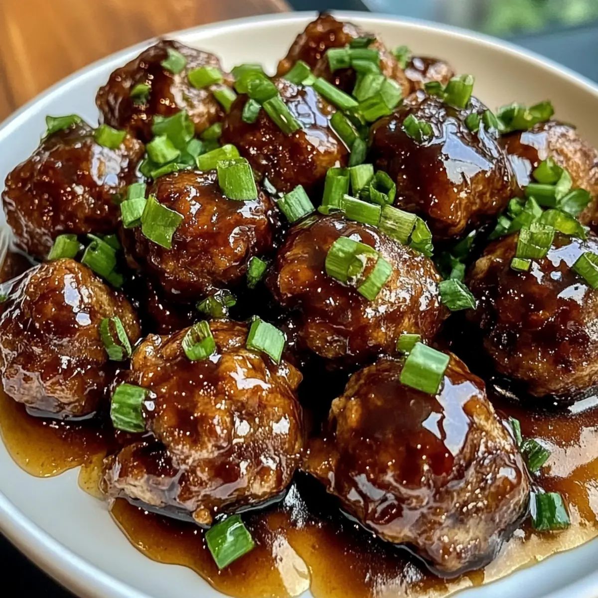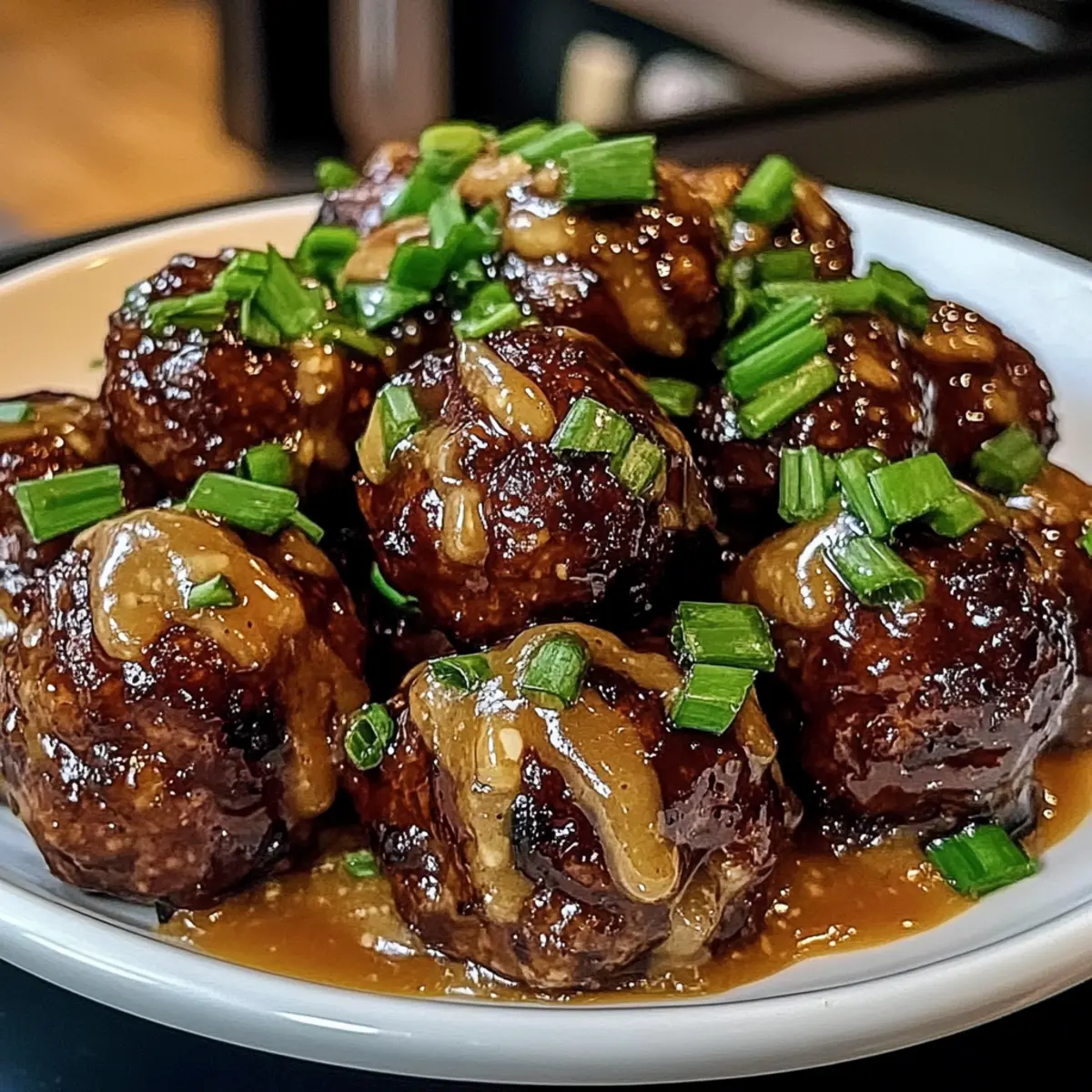 Eine geschmackliche Entdeckung wartet auf euch! Diese Klebrigen Hoisin-Fleischbällchen mit Frühlingszwiebelsoße sind nicht nur wahre Geschmacksexplosionen, sondern auch eine schnelle Lösung für stressige Abende. Die Kombination aus saftigem Fleisch, umhüllt von einer glänzenden, süß-sauren Glasur, wird von der frischen und knusprigen Frühlingszwiebelsoße perfekt ergänzt. Egal, ob für ein gemütliches Familienessen oder als unwiderstehlicher Snack beim nächsten Treffen mit Freunden – diese Fingerfood-Delikatesse überzeugt in jeder Situation. Abgesehen von der schnellen Zubereitung ist es dank der glutenfreien Optionen auch eine großartige Wahl für jeden, der gesunde Alternativen sucht. Seid ihr bereit, euch von den Aromen der asiatischen Küche verführen zu lassen? Warum sind diese Fleischbällchen so besonders? Einfachheit: Die Zubereitung ist kinderleicht und erfordert keine besonderen kulinarischen Fähigkeiten. Jeder kann diese köstlichen Klebrigen Hoisin-Fleischbällchen zaubern! Vielfalt: Ob mit Schwein oder Rind, diese Rezeptur ist flexibel. Ihr könnt auch magerere Optionen wie Pute oder Hühnchen wählen, um den Kaloriengehalt zu reduzieren. Großer Geschmack: Die Kombination aus Hoisin-Sauce und Frühlingszwiebeln sorgt für eine harmonische Verbindung aus Süße und Frische – perfekt als Fingerfood für Partys oder als herzhaftes Abendessen. Glutenfreie Option: Mit Tamari anstelle von Sojasauce bleibt ihr glutenfrei und könnt dennoch in den Genuss dieser Aromen kommen. Schnell und Sättigend: In weniger als 30 Minuten könnt ihr ein befriedigendes Gericht auf den Tisch bringen, ideal für stressige Tage! Überlegt auch, diese Fleischbällchen mit einer Seite von Spinatsalat mit Feta zu servieren, um die Mahlzeit abzurunden! Zutaten für Klebrige Hoisin-Fleischbällchen • Hier ist alles, was ihr für dieses köstliche Rezept braucht! Für die Fleischbällchen Schweine- oder Rinderhackfleisch – Die Basis für die Fleischbällchen; Schwein hat einen klassischen Geschmack, während Rind eine reichhaltige Note bietet. Paniermehl – Bindet die Fleischmasse; kann durch gemahlene Haferflocken für eine glutenfreie Version ersetzt werden. Hoisin-Sauce – Essentiell für die süße und herzhafte Tiefe; sorgt für die charakteristische Glasur. Sojasauce – Verstärkt umami; verwendet Tamari für die glutenfreie Option. Gehackter Knoblauch – Fügt Aroma und Geschmack hinzu. Gehackter Ingwer – Bringt Wärme und einen Hauch von Würze. Ei – Dient als Bindemittel für die Fleischbällchen. Sesamöl – Verleiht ein nussiges Aroma; wichtig für die Fleischbällchen und die Soße. Reisessig – Bringt Säure ins Spiel, um die Aromen in beiden Soßen auszubalancieren. Wasser – Justiert die Glasurkonsistenz. Frühlingszwiebeln – Frische für die Frühlingszwiebelsoße; gibt einen lebhaften Geschmacksgegensatz. Schritt-für-Schritt-Anleitungen für Klebrige Hoisin-Fleischbällchen mit Frühlingszwiebelsoße Schritt 1: Fleischbällchen vorbereiten In einer großen Schüssel das Hackfleisch, Paniermehl, Hoisin-Sauce, Sojasauce, gehackten Knoblauch, Ingwer, Ei, Sesamöl, Salz und Pfeffer sanft vermengen, bis alles gerade so kombiniert ist. Achte darauf, die Mischung nicht zu überarbeiten, um zarte Fleischbällchen zu erhalten. Forme aus der Mischung 16-20 golfballgroße Fleischbällchen und lege sie beiseite. Schritt 2: Fleischbällchen braten Erhitze eine große Pfanne bei mittlerer bis hoher Hitze und gib einen Schuss neutrales Öl hinzu. Die Fleischbällchen in Chargen für etwa 5-7 Minuten braten, bis sie auf allen Seiten gut gebräunt sind. Achte darauf, genug Platz zwischen den Bällchen zu lassen, um eine gleichmäßige Bräunung zu gewährleisten. Übertrage die gebräunten Fleischbällchen auf einen Teller. Schritt 3: Glasur zubereiten Senke die Hitze leicht ab und füge Hoisin-Sauce, Sojasauce, Reisessig, Sesamöl und Wasser in die Pfanne hinzu. Rühre die Zutaten gut um und lass die Sauce bei mittlerer Hitze etwa 2-3 Minuten köcheln, bis sie glänzend und leicht eingedickt ist. Der süß-herzhafte Duft der Glasur wird sich in deiner Küche verbreiten und Vorfreude erzeugen. Schritt 4: Fleischbällchen glasieren Gib die gebräunten Fleischbällchen wieder in die Pfanne und wende sie vorsichtig in der Glasur, sodass sie gleichmäßig überzogen sind. Decke die Pfanne ab und lasse die Fleischbällchen bei niedriger Hitze 4-6 Minuten köcheln, bis sie durchgegart sind. Die Fleischbällchen sollten eine Innentemperatur von 75 °C für Schweinefleisch oder 74 °C für Rindfleisch erreichen. Schritt 5: Frühlingszwiebelsoße anrühren In einer separaten Schüssel die Zutaten für die Frühlingszwiebelsoße gut verquirlen. Diese würzige, frische Soße wird eine perfekte Ergänzung zu den Klebrigen Hoisin-Fleischbällchen sein. Stelle die Soße beiseite, während die Fleischbällchen fertig gegart werden. Schritt 6: Servieren und genießen Serviere die heißen Klebrigen Hoisin-Fleischbällchen sofort auf einem schönen Teller und beträufle sie mit der Frühlingszwiebelsoße kurz vor dem Servieren. Diese köstlichen Bällchen sind ideal als Fingerfood oder für ein herzhaftes Wochenendessen und warten darauf, von der ganzen Familie genossen zu werden. Hilfreiche Tricks für Klebrige Hoisin-Fleischbällchen Sanfte Handhabung: Vermeide es, die Fleischmischung zu überarbeiten. Zu viel Druck macht die Bällchen zäh anstatt zart. Richtige Bräunung: Achte darauf, dass die Bällchen gleichmäßig gebräunt sind. Dies sorgt für einen intensiveren Geschmack durch die Karamellisierung der Oberfläche. Temperaturüberprüfung: Verwende ein Fleischthermometer, um sicherzustellen, dass die Innentemperatur 75 °C für Pork oder 74 °C für Beef beträgt – so sind die Fleischbällchen sicher und perfekt gegart. Glasur anpassen: Wenn die Glasur zu dick ist, füge etwas Wasser hinzu, um die Konsistenz zu verbessern. Dies sorgt dafür, dass die klebrigen Hoisin-Fleis