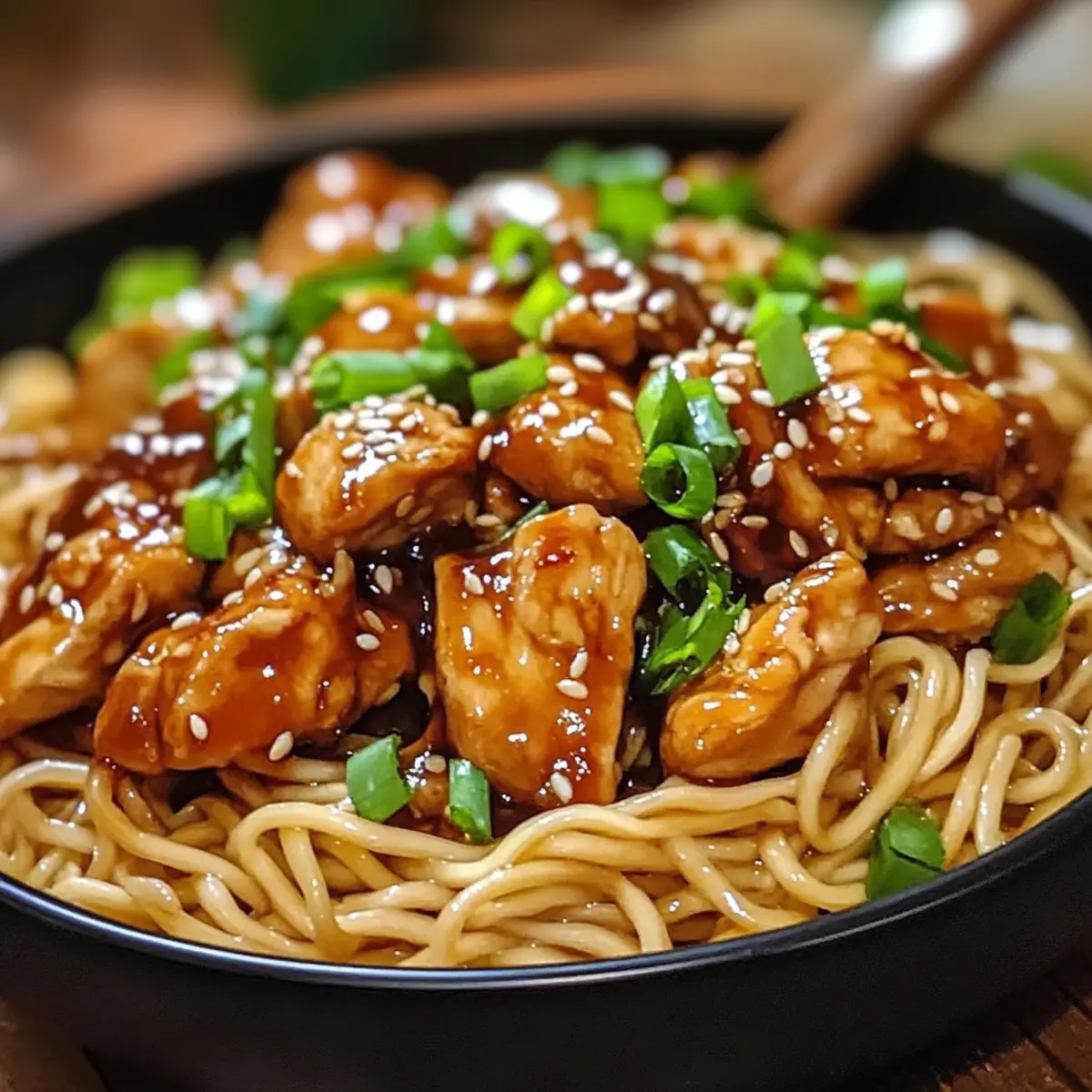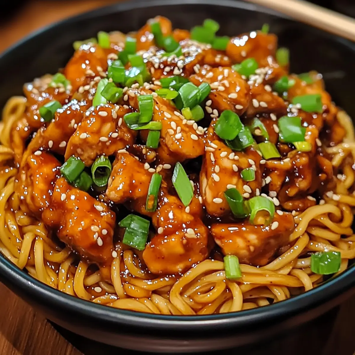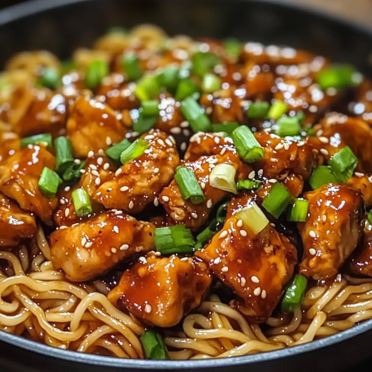 Eines Abends, während ich in meiner Küche die Zutaten für das Abendessen zusammenstellte, kam mir die Idee für die Klebrigen Knoblauch-Hühnchen-Nudeln. Die Vorstellung, zartes Hühnchen in einer würzigen Knoblauchsoße zu genießen, die sich perfekt mit den zarten Nudeln verbindet, ließ mir das Wasser im Mund zusammenlaufen. Mit nur 30 Minuten Zubereitungszeit ist dieses Gericht ideal für stressige Werktage und bietet einen köstlichen Ausgleich zum hektischen Alltag. Zudem lässt es sich wunderbar anpassen: Ob mit Gemüse, einer glutenfreien Variante oder einer anderen Proteinquelle – der Kreativität sind keine Grenzen gesetzt. Ich kann es kaum erwarten, euch die Schritte zu zeigen, die zu diesem Genuss führen. Führt euer Geschmackssinn euch bereits zu diesen unwiderstehlichen Nudeln? Warum sind diese Nudeln unwiderstehlich? Schnelligkeit: In nur 30 Minuten zubereitet, ist dieses Rezept ideal für hektische Abende. Vielseitigkeit: Ob mit Hühnchen, Tofu oder Garnelen, jeder findet hier seinen Favoriten. Aromen: Die Kombination aus Knoblauch und Honig verleiht einen köstlich süß-salzigen Geschmack. Einfachheit: Mit wenigen Zutaten erreicht man ein beeindruckendes Ergebnis. Dieses Gericht wird garantiert zum Star eures nächsten Abendessens, besonders wenn ihr es mit einer frischen Gurkensalat oder gedünstetem Gemüse begleitet. Erfahrt mehr über diese köstliche Kombination von Aromen. Klebrige Knoblauch-Hühnchen-Nudeln Zutaten • Um diese köstlichen Klebrigen Knoblauch-Hühnchen-Nudeln zuzubereiten, benötigt ihr folgende Zutaten: Für das Hühnchen Hühnchenbrust – liefert die Hauptproteinquelle und sorgt für zarte Stücke. Ihr könnt auch Garnelen, Rindfleisch oder Tofu verwenden. Maisstärke – sorgt für eine knusprige Außenfläche des Hühnchens. Optional kann sie mit einem glutenfreien Verdicker ersetzt werden. Für die Soße Sojasoße – liefert eine salzige und umami Geschmackstiefe. Tamari ist eine glutenfreie Alternative. Honig – fügt eine süße Note hinzu, die die würzigen Aromen ausgleicht. Für eine vegane Option kann Ahornsirup verwendet werden. Knoblauch (gehackt) – der Schlüsselgeschmackgeber, der das Gericht unvergesslich macht. Verwendet mehr, für intensiveren Knoblauchgeschmack. Geriebener Ingwer – bringt eine warme, würzige Note ins Spiel; frischer Ingwer ist für das beste Aroma bevorzugt. Rote Chiliflocken – sorgen für eine angenehme Schärfe; die Menge kann je nach Geschmack angepasst werden. Für die Nudeln Nudeln (Reis- oder Eiernudeln) – bilden die Basis des Gerichts und nehmen die Soßenaromen auf. Wählt je nach diätetischen Bedürfnissen; auch Vollkorn- oder Gemüsenudeln sind eine gute Wahl. Für die Garnitur Frühlingszwiebeln – bringen frische Farbe und milden Zwiebelgeschmack; ihr könnt sie durch Schnittlauch ersetzen. Sesamkörner – optional für einen knusprigen Effekt; können für eine nussfreie Variante weggelassen werden. Mit diesen Zutaten seid ihr auf dem besten Weg, ein köstliches Gericht zuzubereiten, das alle begeistert! Schritt-für-Schritt-Anleitung für Klebrige Knoblauch-Hühnchen-Nudeln Step 1: Knoblauchsoße zubereiten Mische in einer Schüssel die Sojasoße, den Honig, den gehackten Knoblauch, den geriebenen Ingwer und die roten Chiliflocken, um die aromatische Knoblauchsoße herzustellen. Rühre die Zutaten gut um, bis sie sich gleichmäßig verbinden. Lass die Soße beiseite, während du mit dem Hühnchen fortfährst. Step 2: Hühnchen vorbereiten Schneide dein Hühnchen in mundgerechte Stücke und gib sie in eine Schüssel. Bestreue das Hühnchen gleichmäßig mit der Maisstärke und mische alles gut, damit das Fleisch durchgehend beschichtet ist. Diese Schicht sorgt für eine knusprige Textur, die perfekt zur Soße der Klebrigen Knoblauch-Hühnchen-Nudeln passt. Step 3: Hühnchen anbraten Erhitze in einer großen Pfanne oder einem Wok bei mittlerer bis hoher Hitze etwas Pflanzenöl. Füge das vorbereitete Hühnchen hinzu und brate es für etwa 6-8 Minuten an, bis es goldbraun und durchgegart ist. Rühre dabei regelmäßig um, sodass das Hühnchen gleichmäßig bräunt und nicht anbrennt. Step 4: Soße hinzufügen Sobald das Hühnchen goldbraun ist, gieße die vorbereitete Knoblauchsoße darüber und reduziere die Hitze auf mittlere Stufe. Lass alles für 2-3 Minuten köcheln, damit die Soße eindickt und das Hühnchen schön glasiert wird. Achte darauf, dass die Soße schön blubbert, um die Aromen zu intensivieren. Step 5: Nudeln kochen Während das Hühnchen kocht, koche die Nudeln gemäß den Anweisungen auf der Verpackung. Verwende ein großes Kochwasser und achte darauf, die Nudeln al dente zu garen, damit sie beim anschließenden Tossieren die Soße gut aufnehmen. Nach dem Kochen abgießen und kurz mit kaltem Wasser abspülen, um das Garen zu stoppen. Step 6: Nudeln und Hühnchen kombinieren Gib die abgetropften Nudeln in die Pfanne mit dem Hühnchen und der Soße. Verwende eine Zange oder zwei große Gabeln, um alles vorsichtig zu vermengen, sodass die Nudeln gleichmäßig mit der köstlichen Knoblauchsoße und dem Hühnchen bedeckt werden. Diese Kombination sorgt für ein fantastisches Geschmackserlebnis. Step 7: Anrichten und garnieren Serviere die Klebrigen Knoblauch-Hühnchen-Nudeln direkt auf Tellern. Garniere das Gericht mit frisch geschnittenen Frühlingszwiebeln und bestreue es nach Belieben mit Sesamkörnern für einen zusätzlichen Crunch. Sofort servieren und genießen! Maßt die Vorbereitung für Klebrige Knoblauch-Hühnchen-Nudeln! Die Klebrigen Knoblauch-Hühnchen-Nudeln sind ideal für die Vorbereitung, was die Zubereitung an einem hektischen Abend erleichtert! Ihr könnt die Knoblauchsoße bis zu 3 Tage im Voraus zubereiten und im Kühlschrank aufbewahren. Das Hühnchen lässt sich ebenfalls bereits in mundgerechte Stücke schneiden und mit Maisstärke bestreuen; so ist es bereit für die Pfanne. Wenn ihr die Nudeln im Voraus kocht, spült sie kurz mit kaltem 
