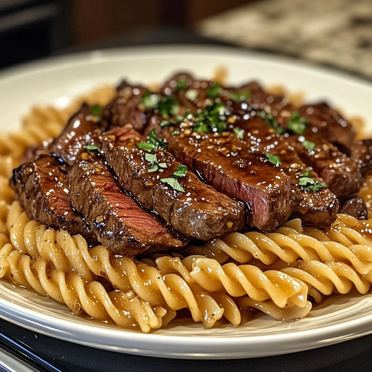 Wenn ich an einfache, aber unglaublich schmackhafte Gerichte denke, kommt mir sofort das Bild von meinem Klebrigen Honig-Knoblauch-Steak mit Rotini in den Sinn. Dieses Gericht ist wie eine kulinarische Umarmung – zartes Steak, umhüllt von einer süß-würzigen Sauce und serviert auf einem Bett aus herzhaftem Rotini. Es braucht weniger als 30 Minuten, um es zuzubereiten, was es perfekt für hektische Wochentage macht. Egal, ob du ein Freizeitchef bist oder einfach nur eine schnelle Mahlzeit zubereiten möchtest – diese Kombination ist ein Hit, der selbst die hartnäckigsten Fast-Food-Liebhaber überzeugen wird. Und wenn du das Rezept anpassen möchtest, stehen dir unzählige Optionen offen, von verschiedenen Proteinen bis hin zu köstlichen Gemüsebeigaben. Bist du bereit, dein nächstes Lieblingsgericht zu entdecken? Warum wirst du dieses Rezept lieben? Einfachheit: Die Zubereitung ist kinderleicht und benötigt nur grundlegende Kochfähigkeiten – perfekt für jede Woche! Vielfältige Anpassungen: Ob du Hähnchen, Garnelen oder Tofu verwenden möchtest, die Optionen sind grenzenlos, sodass für jeden etwas dabei ist. Schnell und schmackhaft: Mit einer Zubereitungszeit von unter 30 Minuten kannst du im Handumdrehen ein köstliches Essen zaubern. Aromatische Kombination: Die süß-würzige Honig-Knoblauch-Sauce umhüllt das Steak, während die Rotini die Aromen perfekt aufnimmt. Familienfreundlich: Dieses Gericht wird sicherlich bei allen am Tisch beliebt sein und selbst die kritischsten Esser überzeugen. Schau dir auch diese schnellen Rezepte an, um weitere köstliche Ideen für hektische Abende zu entdecken! Klebriger Honig-Knoblauch-Steak Zutaten Für das Steak • Rindersteak – Verwende Ribeye, Sirloin oder Flanksteak für die besten Ergebnisse. Für die Pasta • Rotini – Diese Pastaform nimmt die köstliche Sauce auf; du kannst sie jedoch auch durch jede andere Pasta ersetzen. Für die Sauce • Frischer Knoblauch – Mince ihn, um das maximale Aroma zu entfalten. • Honig – Gibt der Sauce die nötige Süße; du kannst auch Maple Syrup oder Agavendicksaft verwenden. • Sojasauce – Rollt umami Geschmack und Salz in die Sauce; nutze glutenfreies Tamari für eine glutenfreie Variante. • Olivenöl – Ideal zum Anbraten des Steaks; kann durch Pflanzenöl ersetzt werden. • Salz und Pfeffer – Grundlegende Gewürze, die nach Geschmack angepasst werden. • Rote Paprikaflocken – Optional für einen würzigen Kick; nach Vorliebe dosieren. Für die Garnitur • Frische Petersilie – Füge Farbe und Frische hinzu. Mit diesen Zutaten bist du gut gerüstet, um dein eigenes Klebriges Honig-Knoblauch-Steak zuzubereiten, das alle am Tisch begeistern wird! Schritt-für-Schritt-Anleitung für Klebriger Honig-Knoblauch-Steak Schritt 1: Pasta Kochen Koche die Rotini in einem großen Topf mit kochendem, gesalzenem Wasser, bis sie al dente sind (ca. 8–10 Minuten). Rühre gelegentlich um, um ein Zusammenkleben zu verhindern. Sobald die Pasta fertig ist, gieße sie ab und stelle sie beiseite, während du etwas Nudelwasser für später aufbewahrst. Schritt 2: Steak Zubereiten Würze das Rindersteak auf beiden Seiten großzügig mit Salz und Pfeffer. Erhitze eine große, schwere Pfanne bei mittlerer bis hoher Hitze und gib einen Esslöffel Olivenöl hinzu. Brate das Steak 4–5 Minuten pro Seite an, bis es eine schöne Kruste hat und die gewünschte Garstufe erreicht ist. Nimm das Steak aus der Pfanne und lass es kurz ruhen, damit der Saft sich setzen kann. Schritt 3: Sauce Zubereiten Zerhacke den frischen Knoblauch fein und gib ihn in die gleiche Pfanne, in der du das Steak zubereitet hast. Sauté den Knoblauch bei mittlerer Hitze für etwa 1 Minute, bis er duftet, aber nicht verbrannt ist. Füge dann den Honig und die Sojasauce hinzu. Optional kannst du jetzt auch die roten Paprikaflocken einstreuen. Lasse die Sauce 2–3 Minuten köcheln, bis sie leicht eindickt. Schritt 4: Kombinieren Gib die gekochte Rotini in die Pfanne mit der Sauce und mische alles gründlich, sodass die Pasta von der klebrigen Honig-Knoblauch-Sauce umhüllt wird. Wenn die Sauce zu dick ist, kannst du nach Belieben etwas vom aufbewahrten Nudelwasser hinzufügen. Mische auch die in Scheiben geschnittenen Steakstücke unter die Pasta und erwärme die Mischung für eine weitere Minute. Schritt 5: Servieren und Garnieren Löffel das Klebrige Honig-Knoblauch-Steak und die Rotini auf Teller. Garniere das Gericht mit frisch gehackter Petersilie für einen Farbtupfer und optional mit zusätzlichem Honig oder roten Paprikaflocken für einen zusätzlichen Kick. Sofort servieren und genießen! Expertentipps für Klebriges Honig-Knoblauch-Steak Steak Ruhen Lassen: Lasse das Steak nach dem Braten einige Minuten ruhen, damit die Säfte verteilt werden und das Fleisch saftig bleibt. Knoblauch Aufpassen: Überwache den Knoblauch genau, da er schnell verbrennen kann und Bitterkeit erzeugt. Sauté ihn bei mittlerer Hitze. Pasta Nicht Überkochen: Koche die Rotini al dente, damit sie beim Mischen mit der Sauce nicht matschig werden. Variationen Einfügen: Experimentiere mit verschiedenen Proteinen oder füge Gemüse hinzu, um das Klebrige Honig-Knoblauch-Steak zu diversifizieren. Sauce Perfekt Abstimmen: Ergänze die Sauce nach Geschmack mit mehr Honig oder Sojasauce, um die gewünschte Süße oder Salzigkeit zu erreichen. Variationen und Alternativen für Klebriger Honig-Knoblauch-Steak Gestalte dieses Rezept ganz nach deinem Geschmack und schaffe eine neue Geschmackserfahrung, die deine Sinne begeistern wird. Proteinwechsel: Tausche das Rindersteak gegen Hähnchen, Garnelen oder Tofu aus, um das Gericht jeder Geschmackrichtung anzupassen. Mit zartem Hähnchen wird es ebenso köstlich! Gemüse-Zugaben: Füge buntes Gemüse wie Paprika, Pilze oder Brokkoli hinzu, um zusätzliche Nährstoffe und eine schöne Farbvielfalt zu integrieren. Je mehr Farbe, desto besser für deine Platte! Cremige Variante: Rühre etwas Sahne für e
