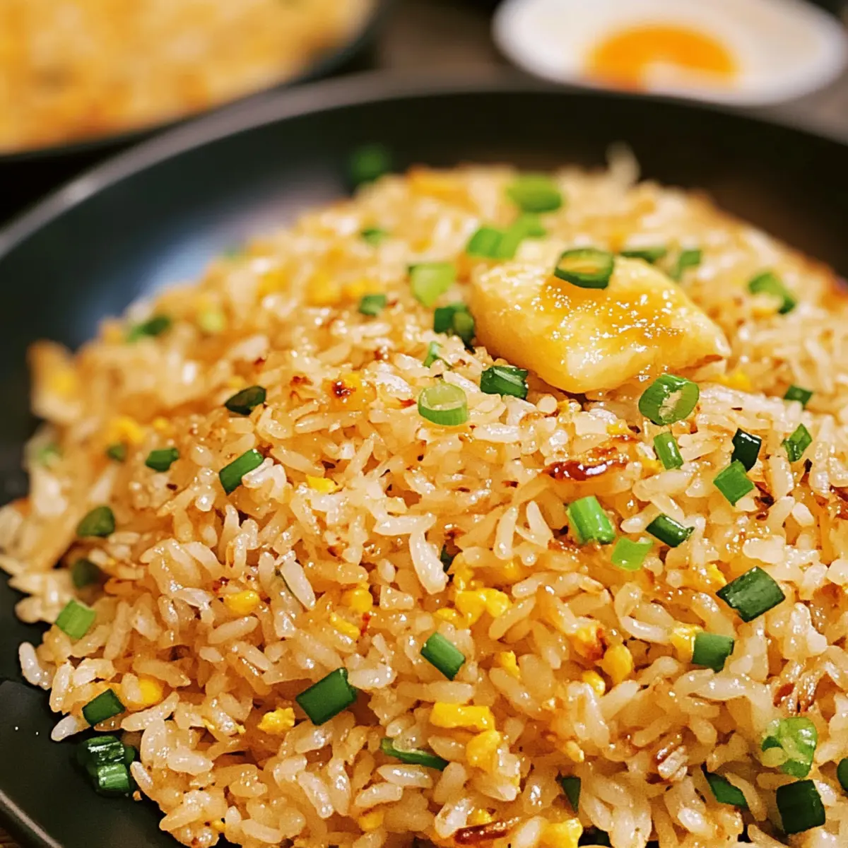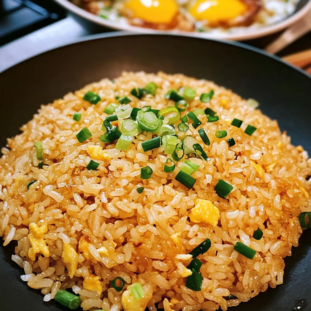 Die sämige Köstlichkeit von Knoblauchbutter Bratreis zaubert mir sofort ein Lächeln ins Gesicht! Diese schmackhafte Speise bringt den verführerischen Duft von frisch angebratenem Knoblauch und zarten Frühlingszwiebeln in meine Küche und ist in nur 20 Minuten zubereitet – perfekt für hektische Abende. Was mich an dieser vegetarischen Delikatesse wirklich begeistert, ist ihre Vielseitigkeit: Man kann sie mit verschiedenen Proteinen wie Hähnchen, Garnelen oder Schweinefleisch anpassen, sodass jeder Biss ein neues Geschmackserlebnis bietet. Zudem eignet sich Knoblauchbutter Bratreis hervorragend für Meal Prep, da er auch am nächsten Tag noch köstlich schmeckt! Was würdet ihr gerne zu eurem persönlichen Bratreis hinzufügen? Warum wird dieser Bratreis dein Favorit? Einfachheit: In nur 20 Minuten zubereitet, ist dieser Knoblauchbutter Bratreis die ideale Lösung für schnelle Abendessen. Köstlicher Geschmack: Die Kombination aus frisch angebratenem Knoblauch und zarten Frühlingszwiebeln sorgt für eine Aromenexplosion. Vielseitigkeit: Perfekt anpassbar mit verschiedenen Proteinen – egal ob Hähnchen, Garnelen oder sogar Tofu, jeder Biss wird zum Genuss. Meal Prep-freundlich: Unser Bratreis bleibt auch am nächsten Tag frisch und lecker, ideal für die Arbeitswoche. Zufriedenstellend: Die warme, wärmende Textur erinnert an heimische Küche und wird bei jeder Gelegenheit zum Hit bringen! Probiere es aus und füge deine Lieblingszutaten hinzu für noch mehr Genuss! Knoblauchbutter Bratreis Zutaten • Hinweis: Hier sind die köstlichen Zutaten für deinen Knoblauchbutter Bratreis, der in nur 20 Minuten zubereitet werden kann! Für den Bratreis • Kalte, gekochte Reis – Verwende am besten Tag-old Reis, um die ideale Textur zu erzielen. • Knoblauch – Frisch gehackter Knoblauch sorgt für das beste Aroma und Geschmack. • Butter (gesalzen) – Verleiht Cremigkeit und verstärkt den Geschmack; für eine vegane Alternative kann Kokosöl verwendet werden. • Öl – Neutraler Öl hilft beim Braten und sorgt für eine knusprige Textur; kann durch jedes andere geschmacksneutrale Öl ersetzt werden. • Frühlingszwiebel – Die zarten grünen Spitzen werden zum Garnieren verwendet, die weißen Teile zum Kochen. • Eier – Sie bringen eine reiche Textur; die Eigelbe werden mit dem Reis vermischt und sorgen für eine schöne Farbe. • Sojasoße – Fügt Tiefe und ein wenig Salzigkeit hinzu; Tamari kann für eine glutenfreie Variante verwendet werden. • Weißer Pfeffer – Gibt eine milde Schärfe; schwarzer Pfeffer ist ein guter Ersatz, falls nötig. Für zusätzliche Zutaten • Gemüse – Erweitere dein Gericht mit Erbsen, Karotten oder Paprika für mehr Nährstoffe. • Proteine – Füge Hähnchen, Garnelen oder Tofu hinzu, um dein Gericht zu vervollständigen. Schritt-für-Schritt-Anleitung für Knoblauchbutter Bratreis Step 1: Eier vorbereiten Trenne die Eigelbe von den Eiweißen und verrühre die Eigelbe gründlich mit dem kalten, gekochten Reis. Würze die Mischung mit einer Prise Salz. Diese Basis sorgt dafür, dass der Knoblauchbutter Bratreis eine reiche Textur erhält und beim Braten schön gefärbt wird. Step 2: Aromaten anbraten Erhitze eine große Pfanne bei mittlerer Hitze und füge die Butter sowie etwas Öl hinzu. Sobald die Butter geschmolzen ist und beginnt zu brutzeln, gib den frisch gehackten Knoblauch und die weißen Teile der Frühlingszwiebel hinzu. Brate diese für 2-3 Minuten an, bis sie aromatisch und leicht goldbraun sind. Step 3: Eiweiße zubereiten Schiebe den Knoblauch zur Seite und gib die geschlagenen Eiweiße in die Pfanne. Lass sie für etwa 20 Sekunden stocken, bevor du sie sorgfältig verrührst und leicht anbrätst, bis sie fest sind. Dies stellt sicher, dass der Knoten des Knoblauchbutter Bratreis perfekt mit Ei verbunden ist. Step 4: Reis kombinieren Füge nun die Ei-beschichtete Reis-Mischung, die Sojasauce und den weißen Pfeffer in die Pfanne hinzu. Erhöhe die Hitze auf hoch und brate alles für 2-3 Minuten, während du gut umrührst, damit die Aromen sich verbinden und der Reis leicht knusprig wird. Step 5: Mit Frühlingszwiebeln vollenden Integriere die restlichen grünen Teile der Frühlingszwiebel in die Pfanne und brate alles für weitere 1-2 Minuten, bis der Knoblauchbutter Bratreis durchgewärmt und leicht knusprig ist. Achte darauf, dass alle Zutaten gleichmäßig verteilt und die Farben leuchtend sind. Was passt gut zu Knoblauchbutter Bratreis? Die perfekte Ergänzung zu deinem Knoblauchbutter Bratreis macht jedes Essen zu einem unvergesslichen kulinarischen Erlebnis. Knusprige Gemüsepfanne: Leicht angebratenes Gemüse bringt frische Textur und Farbvielfalt auf den Teller. Diese knackigen Beilagen harmonisieren perfekt mit dem cremigen Reis. Gegrillte Hähnchenbrust: Saftiges, gegrilltes Hähnchen fügt reichhaltigen Geschmack und Protein hinzu, wodurch dein Gericht sättigender wird. Ideal für ein vollwertiges, nahrhaftes Abendessen. Frisch gebratene Tofuwürfel: Eine hervorragende vegetarische Proteinquelle, die die Aromen des Bratreises aufnimmt und eine herzliche, zufriedenstellende Textur schafft. Perfekt für eine ausgewogene Mahlzeit. Schmackhafte Frühlingsrollen: Knusprige Frühlingsrollen ergänzen den weichen Bratreis ideal, während sie für zusätzlichen Crunch sorgen. Sie werden deine Gäste begeistern! Ein frischer Gurkensalat: Ein leichter, erfrischender Gurkensalat bringt eine knackige Kühle mit und sorgt für einen herrlichen Kontrast zur warmen Reisfolie. Eisgekühlter grüner Tee: Ein erfrischendes Getränk, das die Aromen deines Gerichts schön ausbalanciert und für Entspannung sorgt. Der Grüntee vervollständigt das asiatische Flair deines Menüs. Knoblauchbutter Bratreis Variationen Lass deiner Kreativität freien Lauf und passe dieses Gericht genau nach deinem Geschmack an! Vegetarisch: Mixe frisches Gemüse wie Erbsen, Karotten oder Paprika hinein, um mehr Nährstoffe und Farben hinzuzuf
