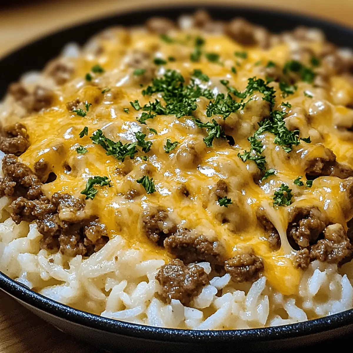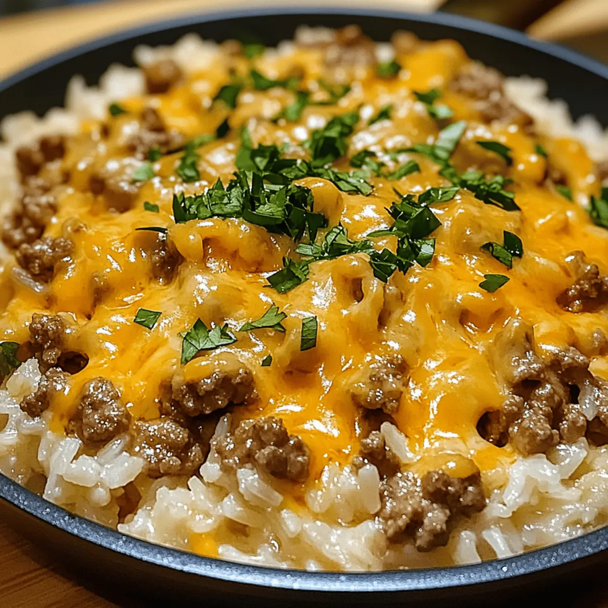 Nehme die Pfanne vom Herd und garniere das Gericht mit frisch gehackter Petersilie für ein wenig Farbe und Frische. Serviere die knoblauchbutterige Rinderreis-Pfanne heiß direkt aus der Pfanne, idealerweise mit einem grünen Salat oder warmem Brot, um die köstliche Käsesauce aufzunehmen.