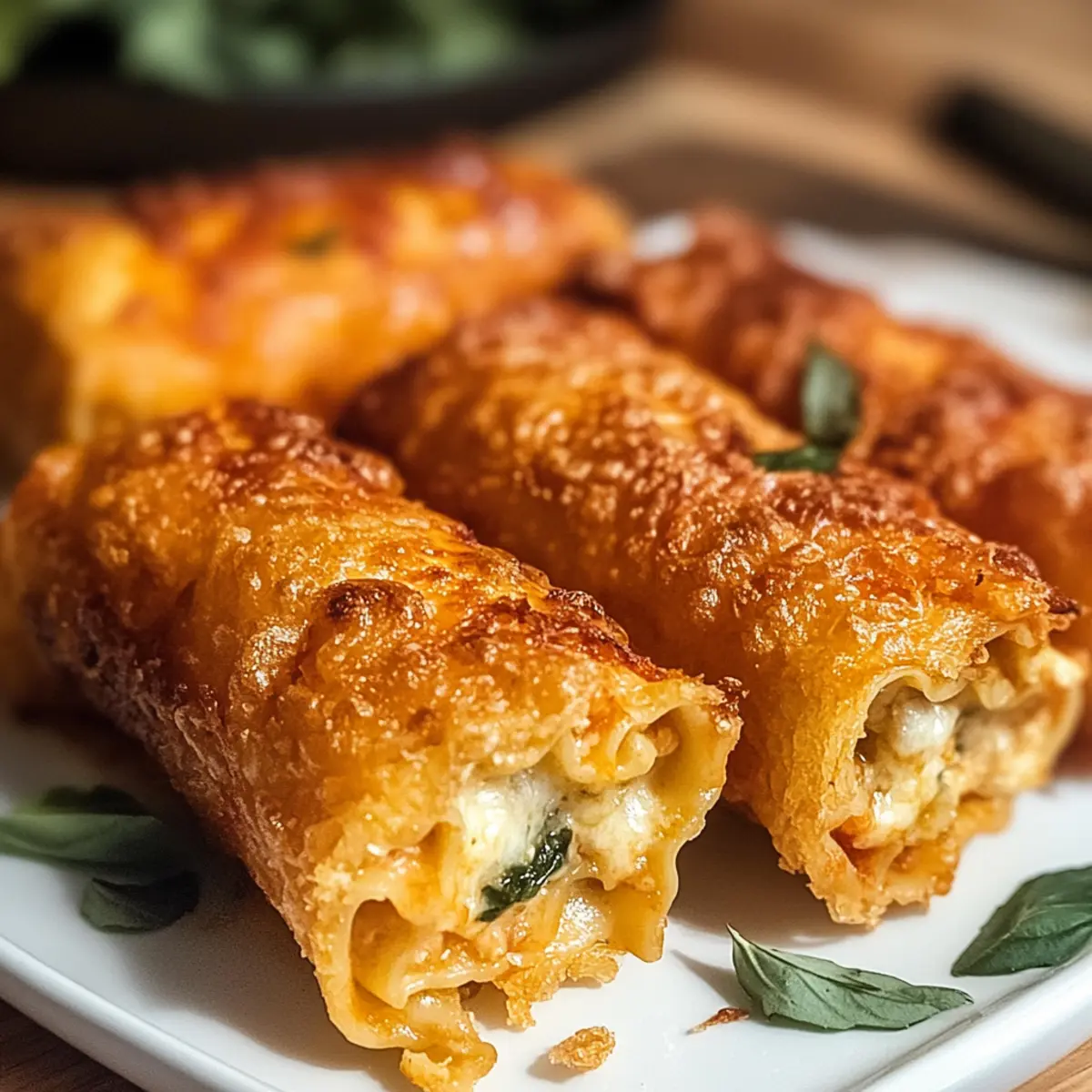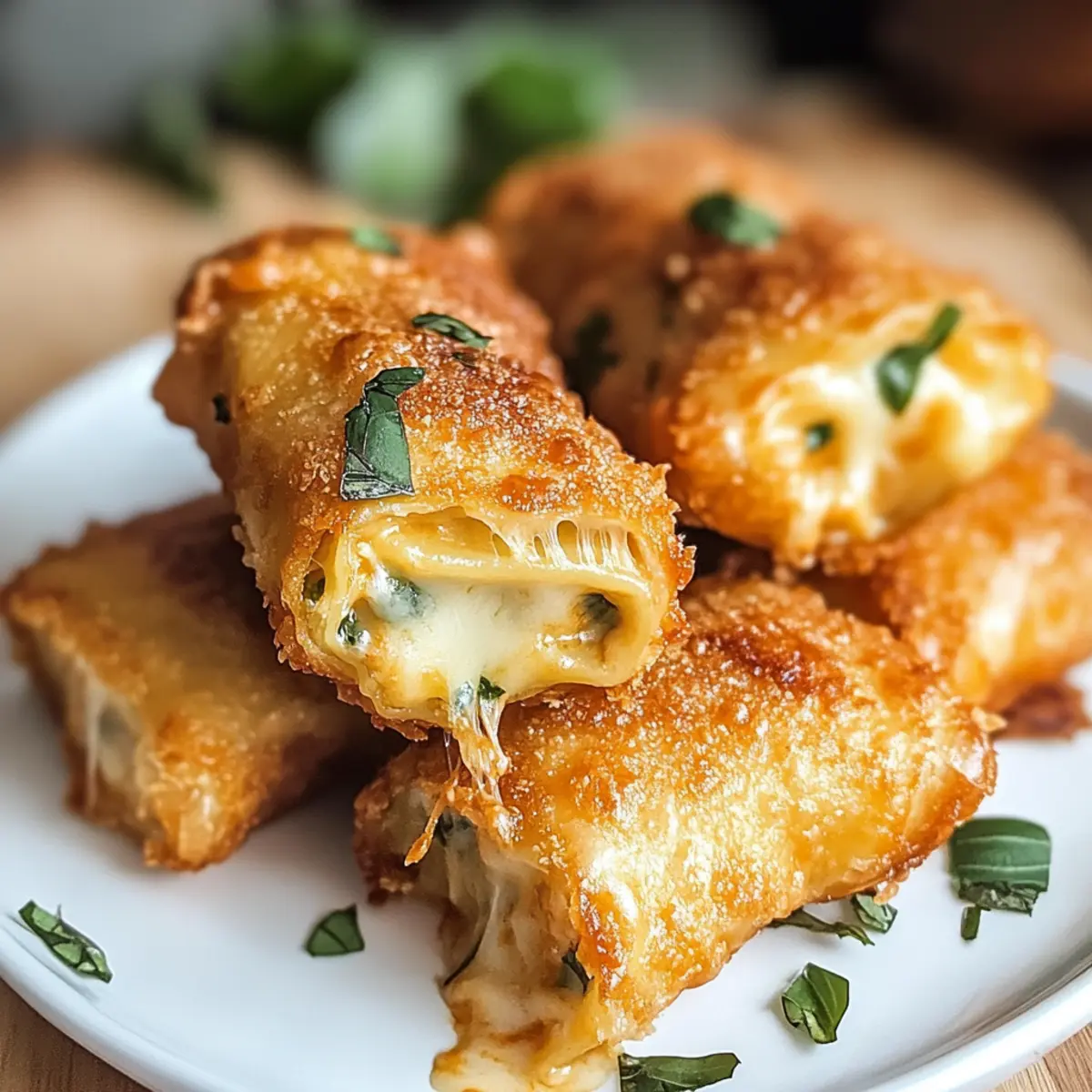 Wenn ich an aufregende Familienfeiern oder gesellige Abende mit Freunden denke, kommen mir sofort die knusprigen frittieren Lasagne-Röllchen in den Sinn. Diese kleinen, goldenen Köstlichkeiten vereinen die Aromen von cremigem Ricotta, schmelzendem Mozzarella und würziger Marinara-Sauce – eine perfekte Kombination, die einfach begeistert. Die Zubereitung ist nicht nur schnell und unkompliziert, sondern sie sorgen auch dafür, dass jeder Bissen ein Lächeln auf die Gesichter zaubert. Egal, ob du sie als herzhafte Vorspeise oder als Hauptgericht servierst, diese Lasagne-Röllchen sind eine willkommene Abwechslung, die jeden Gaumen erfreut. Bist du bereit, dich in die Kunst des Frittierens zu stürzen und deine Gäste zu beeindrucken? Lass uns gemeinsam in die Zubereitung eintauchen! Warum sind diese Lasagne-Röllchen so besonders? Knusprige Textur: Der goldene, knusprige Teig umhüllt eine warmes, schmelzendes Käseinneres – ein wahrer Genuss für alle Sinne. Vielfältig und anpassbar: Du kannst die Füllung je nach Geschmack variieren – ob mit Pesto, Spinat oder einer scharfen Note, die Möglichkeiten sind endlos! Schnell zubereitet: Mit nur wenigen Schritten und einer kurzen Kochzeit sind diese Röllchen blitzschnell fertig und bereit für deine Gäste. Perfekte Portionen: Ideal als Fingerfood für Partys oder gesellige Abende; jeder kann nach Belieben zugreifen und genießen. Klassische Aromen, neu interpretiert: Diese Röllchen bringen die vertrauten Aromen der italienischen Küche in einem unterhaltsamen, modernen Format – perfekt für alle, die sich nach einer Abwechslung sehnen. Wenn du nach weiteren interessanten Rezepten suchst, schaue dir doch auch die Cheese Protein Kekse an! Knusprige Lasagne-Röllchen Zutaten Um die perfekten knusprigen frittierte Lasagne-Röllchen zuzubereiten, sind die richtigen Zutaten entscheidend. Hier findest du alles, was du benötigst! Für die Röllchen Lasagne-Nudeln – Sie geben den Röllchen Struktur; koche sie al dente, um ein einfaches Rollen zu ermöglichen. Ricotta-Käse – Für Cremigkeit und Geschmack; kann durch Hüttenkäse ersetzt werden, wenn du eine leichtere Variante wünschst. Mozzarella-Käse – Er sorgt für den schmelzenden Effekt; Provolone kann verwendet werden, wenn du einen kräftigeren Geschmack bevorzugst. Marinara-Sauce – Für zusätzlichen Geschmack und Feuchtigkeit; selbstgemacht oder aus dem Laden ist beides in Ordnung. Für die Panade Semmelbrösel – Sie geben der äußeren Schicht die perfekte Knusprigkeit; Panko-Semmelbrösel machen die Röllchen noch knuspriger. Ei – Dient als Bindemittel für die Füllung; Ei-Alternativen können für vegane Optionen verwendet werden. Mache dich bereit, deine Geschmacksknospen mit diesen knusprigen Lasagne-Röllchen zu verwöhnen! Schritt-für-Schritt-Anleitung für Knusprige frittierte Lasagne-Röllchen Step 1: Nudeln vorbereiten Koche die Lasagne-Nudeln in einem großen Topf mit kochendem Salzwasser für etwa 8-10 Minuten, bis sie al dente sind. Gieße sie ab und lege sie vorsichtig auf ein sauberes Küchentuch, damit sie abkühlen und nicht zusammenkleben. Achte darauf, dass die Nudeln vollständig abgekühlt sind, bevor du mit dem Rollen beginnst. Step 2: Füllung zubereiten In einer großen Schüssel vermischst du den Ricotta-Käse, den geriebenen Mozzarella und einen Schuss Marinara-Sauce. Mit Salz und Pfeffer abschmecken, um den Geschmack zu verstärken. Rühre alles gut durch, bis die Mischung cremig und homogen ist. Diese Füllung wird das innere Highlight deiner knusprigen frittierte Lasagne-Röllchen sein. Step 3: Röllchen zusammensetzen Lege eine Lasagne-Nudel flach auf eine saubere Fläche und verteile etwa 2-3 Esslöffel der Füllung gleichmäßig darauf. Rolle die Nudel von einer langen Seite her auf, bis sie gut gefüllt ist, und achte darauf, die Füllung nicht herauszudrücken. Wenn nötig, sichere die Röllchen mit einem Zahnstocher, damit sie während des Frittierens nicht aufgehen. Step 4: Röllchen panieren Bereite eine flache Schüssel mit verquirltem Ei und eine weitere mit Semmelbröseln vor. Tauche jedes Röllchen zuerst in das Ei, sodass es gleichmäßig bedeckt ist. Wälze es anschließend in den Semmelbröseln, bis es rundum gut bedeckt ist. Diese panierte Schicht sorgt dafür, dass die knusprigen frittierte Lasagne-Röllchen beim Frittieren schön braun werden. Step 5: Röllchen frittieren Erhitze in einer großen Pfanne ausreichend Öl (etwa 2-3 cm hoch) bei mittlerer Hitze auf etwa 180 °C. Lege vorsichtig die panierten Röllchen in das heiße Öl und frittiere sie für 3-4 Minuten auf jeder Seite, bis sie goldbraun und knusprig sind. Verwende eine Zange, um die Röllchen zu wenden, und achte darauf, dass sie nicht zu viele auf einmal sind, um ein gleichmäßiges Frittieren zu gewährleisten. Step 6: Servieren Nimm die fertigen Röllchen mit einer Schaumkelle aus der Pfanne und lasse sie kurz auf Küchenpapier abtropfen, um überschüssiges Öl zu entfernen. Serviere die knusprigen frittierte Lasagne-Röllchen warm, zusammen mit extra Marinara-Sauce zum Dippen. Sie sind die perfekte Vorspeise oder Hauptgericht, die für unvergessliche Genussmomente sorgen werden. So bereitest du die Knusprigen frittierte Lasagne-Röllchen im Voraus vor Die Knusprigen frittierte Lasagne-Röllchen sind ideal für die Vorbereitung im Voraus und sparen dir wertvolle Zeit an einem hektischen Tag. Du kannst die Nudeln bis zu 24 Stunden vor der Zubereitung kochen und abkühlen lassen, indem du sie sorgfältig in einer einzelnen Schicht auf ein Küchentuch legst. Auch die Füllung aus Ricotta, Mozzarella und Marinara kannst du bis zu 3 Tage im Voraus zubereiten und in einem luftdichten Behälter im Kühlschrank aufbewahren. Achte darauf, die Röllchen vor dem Frittieren frisch zu panieren, um sicherzustellen, dass sie knusprig bleiben. Beim Frittieren solltest du darauf achten, dass das Öl die richtige Temperatur hat, um das köstliche Ergebnis zu gewährle