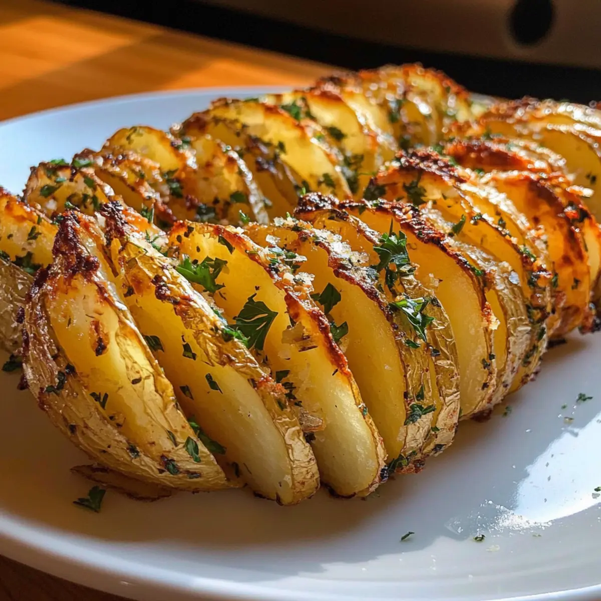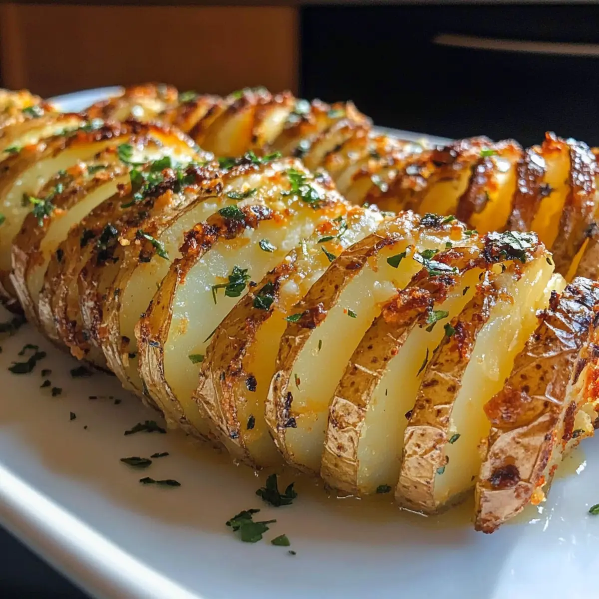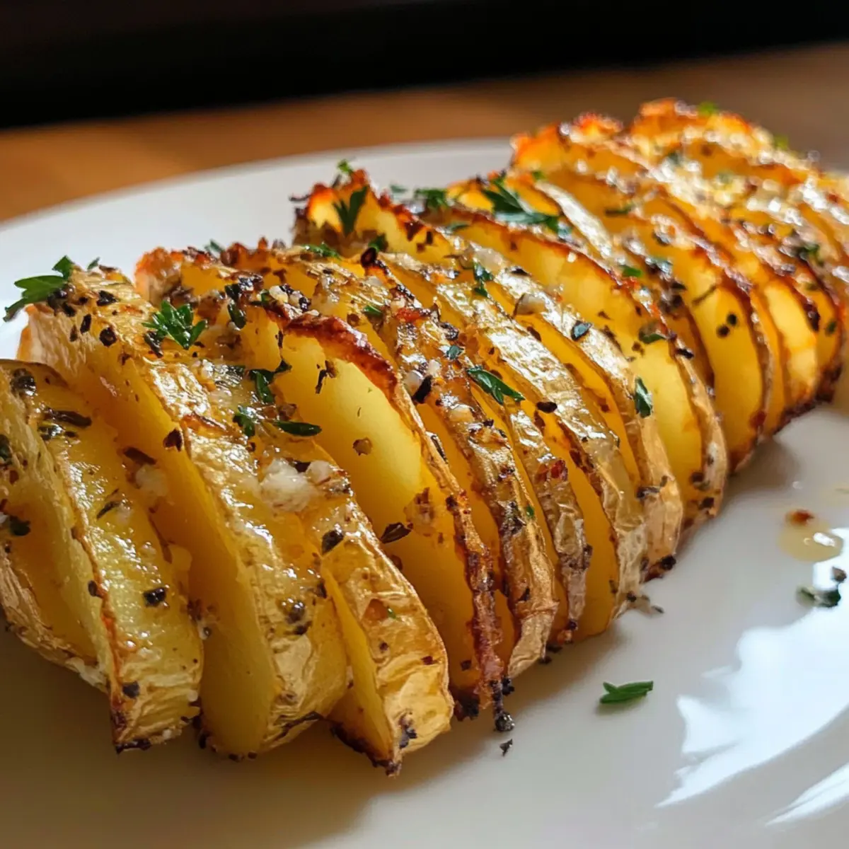 Verwandle einfache Kartoffeln in knusprige Knoblauchbutter-Akkordeon-Kartoffeln – ein perfekter Genuss für jeden Anlass.
