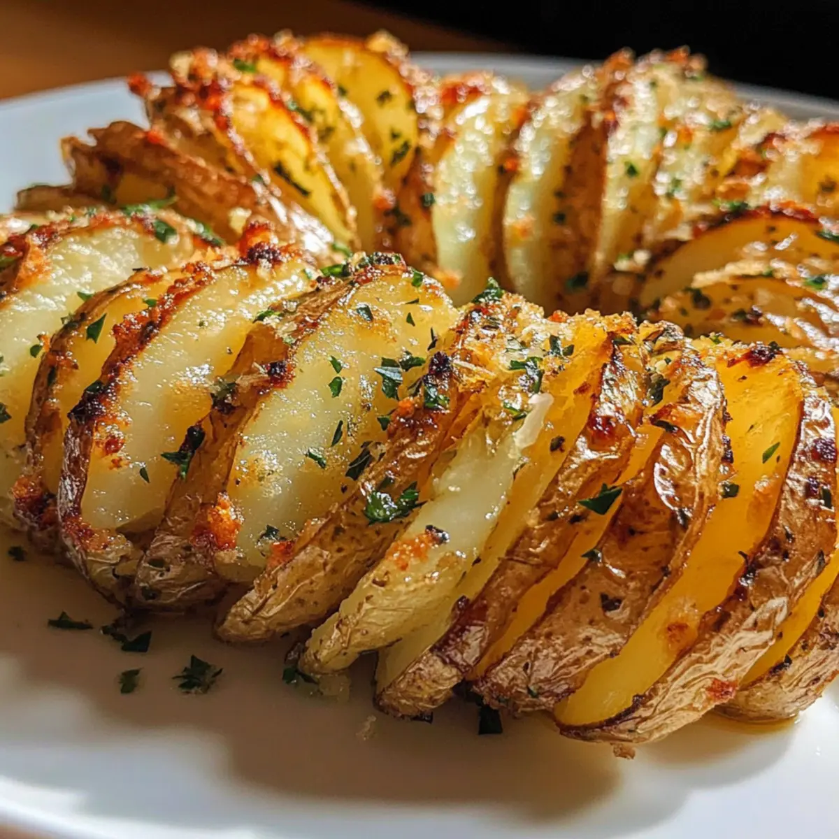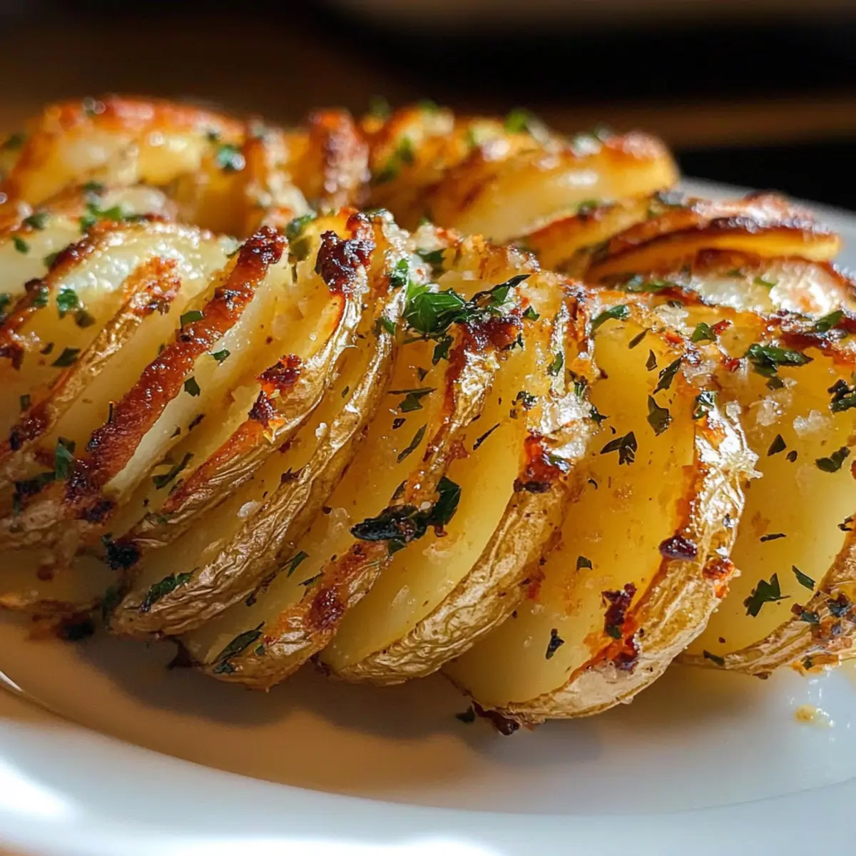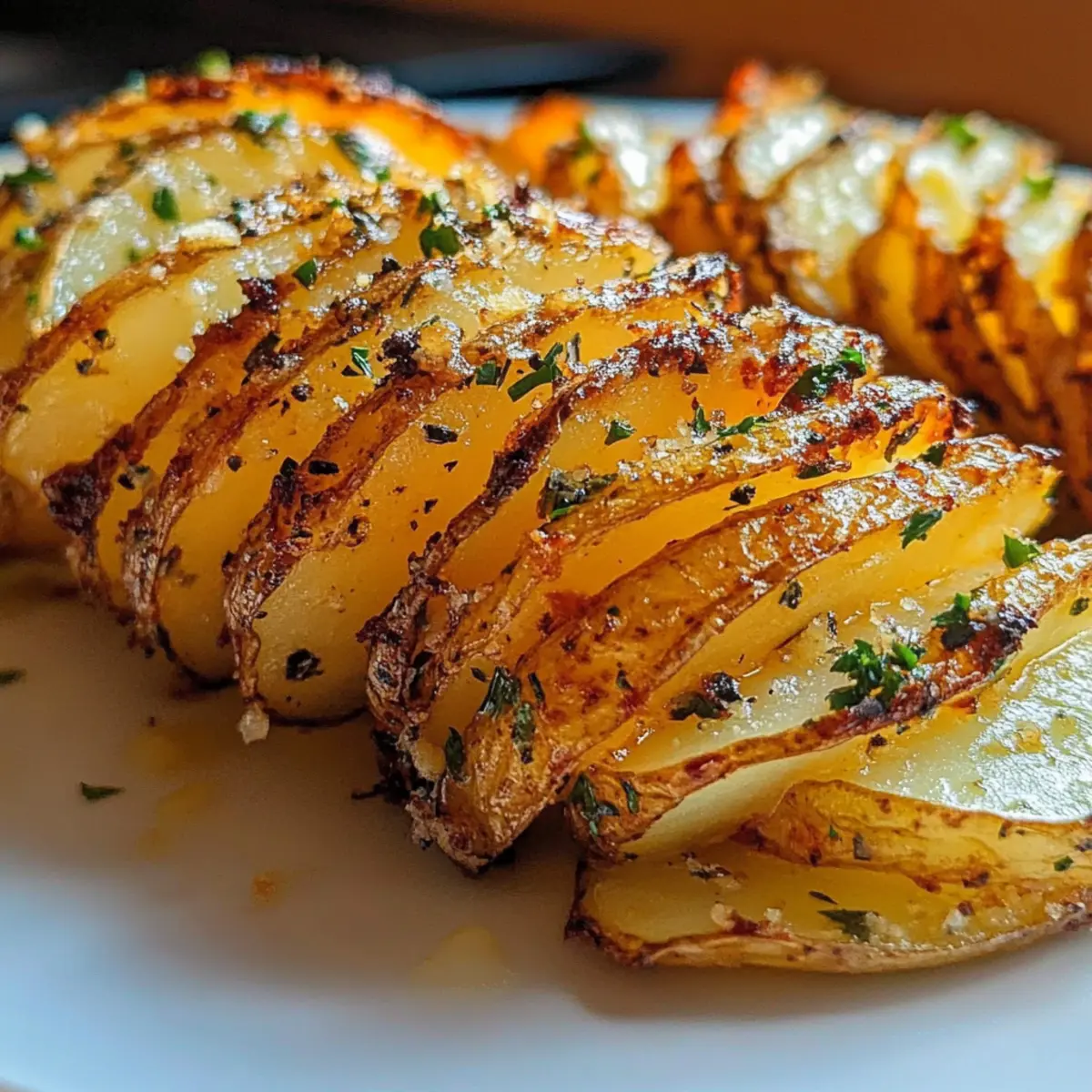 Hast du jemals den perfekten Snack gesucht, der sowohl einfach zuzubereiten als auch beeindruckend aussieht? Nichts schlägt die knusprigen Knoblauchbutter-Akkordeon-Kartoffeln, die nicht nur ein wahrer Augenschmaus sind, sondern auch eine Geschmacksexplosion in jedem Bissen bieten. Diese köstlichen Kartoffeln schaffen es, alltägliche Zutaten in ein außergewöhnliches Erlebnis zu verwandeln – ideal für gesellige Zusammenkünfte oder ein entspanntes Abendessen zu Hause. Mit minimalem Aufwand und maximaler Belohnung sind sie perfekt für jeden Kochliebhaber, der die schnellen, ungesunden Alternativen hinter sich lassen möchte. Möchtest du wissen, wie du diese knusprigen Köstlichkeiten selbst kreieren kannst? Warum sind diese Kartoffeln so besonders? Einfachheit pur: Die Zubereitung erfordert nur grundlegende Kochfähigkeiten, sodass jeder schnell zum Erfolg kommt. Knuspriger Genuss: Die Kombination aus knusprigen Kanten und zartem Inneren sorgt für ein unerreichtes Geschmackserlebnis. Vielseitig: Ob als Snack für Gäste oder als perfekte Beilage zu Fleisch- oder Fischgerichten – diese Kartoffeln passen zu jedem Anlass. Schnell zubereitet: In nur 30-40 Minuten sind deine Kartoffeln fertig und bereit, genossen zu werden! Eindrucksvoller Anblick: Das ansprechende Erscheinungsbild dieser Akkordeon-Kartoffeln wird garantiert alle Beeindrucken. Perfekte Würze: Durch die Kombination von frischem Knoblauch und Parmesan entfaltet sich ein unvergleichlich reichhaltiger Geschmack, der süchtig macht. Schau dir auch unsere anderen Rezepte wie Knusprige Brokkoli Kaese oder Gebackene Kartoffelscheiben Rezept an, um deine Kochkünste weiter zu verfeinern! Zutaten für Knusprige Knoblauchbutter-Akkordeon-Kartoffeln • Um die perfekte Geschmacksexplosion zu erreichen, hier sind die wichtigsten Zutaten! Für die Kartoffeln Kartoffeln – Ideal sind Russet- oder Yukon-Gold-Kartoffeln für die beste Textur; alternativ können rote oder Fingerling-Kartoffeln verwendet werden. Salz und Pfeffer – Unverzichtbare Gewürze zum Verstärken des Geschmacks; nach Belieben anpassen. Für die Knoblauchbutter Ungesalzene Butter – Sorgt für einen reichhaltigen, buttrigen Geschmack; kann durch ghee für eine milchfreie Option ersetzt werden. Frischer Knoblauch – Für einen intensiven Geschmack ist frisch gehackter Knoblauch essenziell; Knoblauchpulver verändert den Geschmack. Parmesankäse – Fügt einen herzhaften, käsigen Kick hinzu; unter Verwendung von Nährhefe kann eine milchfreie Variante zubereitet werden. Frische Petersilie – Bringt Frische und Farbe; kann durch getrocknete Petersilie ersetzt werden, wobei frische bevorzugt wird. Diese Knusprigen Knoblauchbutter-Akkordeon-Kartoffeln sind nicht nur einfach zuzubereiten, sondern verzaubern auch durch ihren unwiderstehlichen Geschmack – perfekt für dein nächstes Kochabenteuer! Schritt-für-Schritt-Anleitung für Knusprige Knoblauchbutter-Akkordeon-Kartoffeln Step 1: Ofen vorheizen Heize deinen Ofen auf 200°C (400°F) vor und lege ein Backblech mit Backpapier aus. Dies erleichtert die Reinigung später und sorgt dafür, dass deine Knusprigen Knoblauchbutter-Akkordeon-Kartoffeln gleichmäßig gebacken werden. Wenn der Ofen die Temperatur erreicht hat, kannst du mit der Vorbereitung der Kartoffeln beginnen. Step 2: Kartoffeln vorbereiten Wasche die Kartoffeln gründlich, ohne sie zu schälen. Um gleichmäßige, dünne Scheiben zu schneiden, lege eine Holzlöffelstiel neben die Kartoffel und schneide sie in Abständen von etwa 1/8 Zoll, wobei du darauf achtest, nicht ganz durchzuschneiden. Dies sorgt dafür, dass die Kartoffeln beim Backen die feine Akkordeonform behalten. Step 3: Knoblauchbutter-Mischung zubereiten Schmelze in einer Schüssel die ungesalzene Butter und füge den frisch gehackten Knoblauch, den geriebenen Parmesan, die fein gehackte Petersilie sowie Salz und Pfeffer hinzu. Rühre die Mischung gut durch, bis alles gleichmäßig verteilt ist. Dies wird der aromatische Belag für deine Knusprigen Knoblauchbutter-Akkordeon-Kartoffeln. Step 4: Kartoffeln zusammenstellen Fächer die Kartoffelscheiben vorsichtig auf und bestreiche sie großzügig mit der Knoblauchbutter-Mischung. Achte darauf, dass etwas Butter zwischen die Scheiben gelangt, damit sie saftig und geschmackvoll bleiben. Diese Fächerform sorgt für eine ansprechende Präsentation und einen knusprigen Genuss. Step 5: Backen Lege die vorbereiteten Kartoffeln mit der Schnittseite nach oben auf das Backblech und backe sie 30 bis 40 Minuten lang. Halte ein Auge auf sie, bis sie goldbraun und knusprig sind. Um noch mehr Knusprigkeit zu erreichen, kannst du die Kartoffeln während des Backens einmal mit zusätzlicher Knoblauchbutter bestreichen. Step 6: Servieren Nehme die Knusprigen Knoblauchbutter-Akkordeon-Kartoffeln aus dem Ofen und lasse sie kurz abkühlen. Serviere sie heiß und genieße die knusprigen und herzhaften Bissen. Diese Kartoffeln sind ein perfekter Snack oder eine köstliche Beilage zu deinen Lieblingsgerichten. Tipps für die besten Knusprigen Knoblauchbutter-Akkordeon-Kartoffeln Schneidetechnik: Verwende einen scharfen Messer, um die Kartoffeln gleichmäßig zu schneiden und ein Durchschneiden zu vermeiden. So bleibt die Akkordeonform erhalten. Richtige Temperatur: Stelle sicher, dass der Ofen gut vorgeheizt ist. Eine unzureichende Temperatur kann dazu führen, dass die Kartoffeln nicht knusprig genug werden. Luftzirkulation: Achte darauf, die Kartoffeln nicht zu dicht auf das Backblech zu legen. Zu viele Kartoffeln auf einmal können die Knusprigkeit beeinträchtigen. Würzvielfalt: Experimentiere mit Gewürzen wie geräuchertem Paprika oder Chili für eine zusätzliche Geschmacksdimension, um deine Knusprigen Knoblauchbutter-Akkordeon-Kartoffeln aufzupeppen. Halbwegs drehen: Wenn du das Backblech während des Backens drehst, sorgt das für eine gleichmäßige Bräunung und Knusprigkeit der Kartoffeln. Was passt zu Knusprigen Knoblauchbutter-Akkordeon-