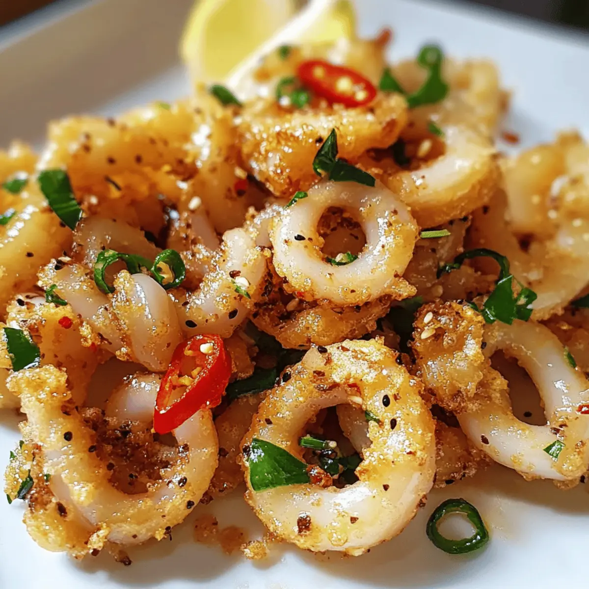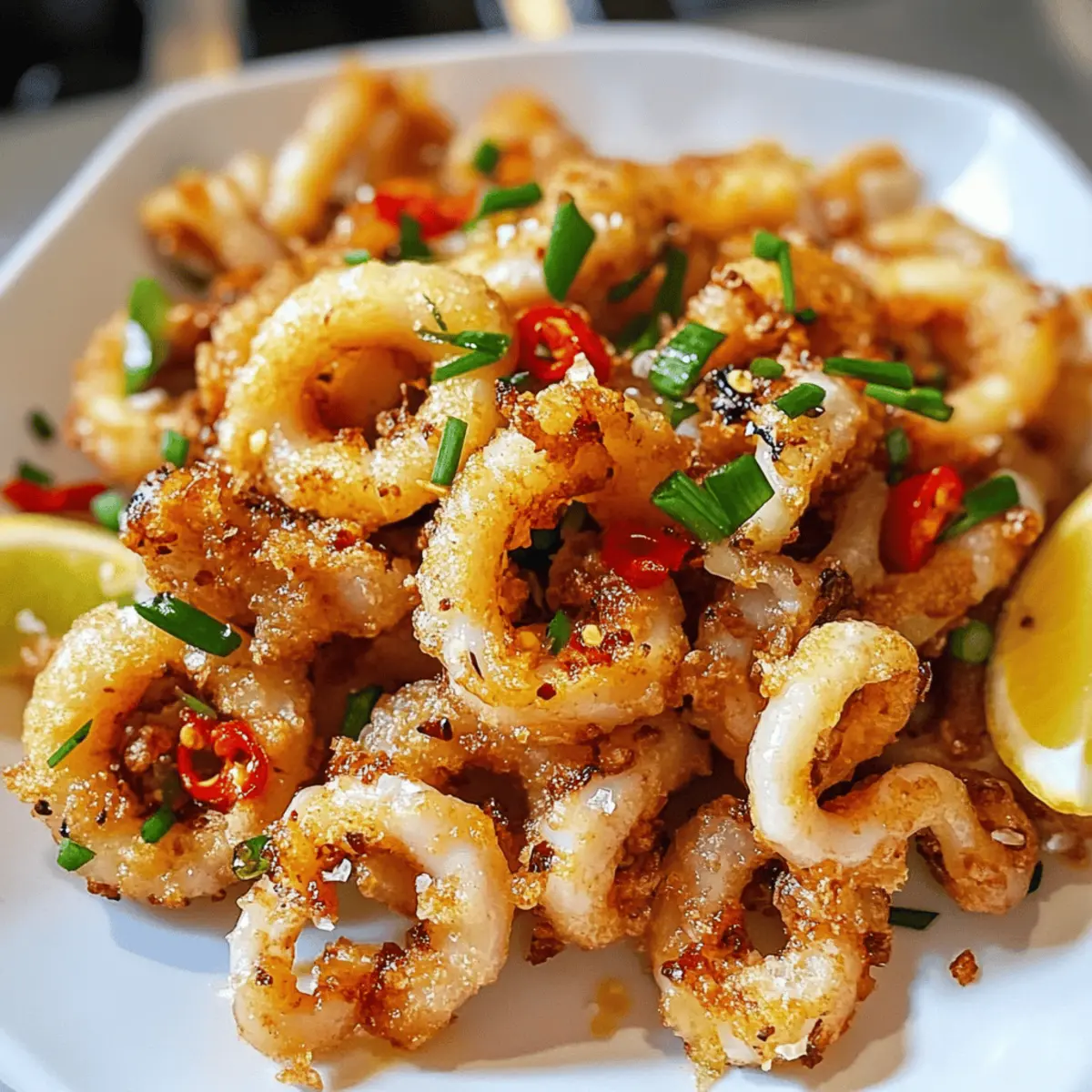 Als ich kürzlich an einem kleinen Straßenmarkt entlang schlenderte, wurde ich sofort von dem verlockenden Duft knusprig gebratener Tintenfische angezogen. Es war der perfekte Moment, um meine eigene Version von crispy salt and pepper squid auszuprobieren. Diese einfach zuzubereitende Meeresfrüchte-Leckerei bringt das Restaurant-Feeling direkt in deine Küche. Mit nur wenigen hochwertigen Zutaten zauberst du im Handumdrehen einen leckeren Appetizer, der sowohl Gäste begeistert als auch dich selbst verwöhnt. Das Beste daran? Dieses Rezept ist nicht nur schnell, sondern auch wunderbar lecker und sorgt für den perfekten Crunch! Bist du bereit, deine Familie und Freunde mit diesem köstlichen Snack zu überraschen? Warum wirst du dieses Rezept lieben? Einfachheit in voller Pracht: Dieses Rezept ist schnell umzusetzen und erfordert nur wenige Schritte, sodass auch Kochanfänger problemlos mitmachen können. Unglaublicher Geschmack: Die Kombination aus zartem Tintenfisch und einer knusprigen, gewürzten Panade sorgt für ein Geschmackserlebnis, das an die besten Restaurantgerichte erinnert. Vielseitig einsetzbar: Ob als eigenständiger Snack oder Teil eines üppigen Meeresfrüchte-Platters – die knusprigen Salz-Pfeffer-Tintenfische passen zu jeder Gelegenheit. Schnell zubereitet: In weniger als 30 Minuten kannst du eine geschmackvolle und beeindruckende Vorspeise auf den Tisch bringen. Für Abwechslung kannst du Bacon Ranch Huehnchen oder Jalapeno Pommes Rezept ausprobieren! Perfekte Textur: Der Kontrast zwischen der knackigen Hülle und dem zarten Innenteil sorgt für ein unvergessliches Genusserlebnis bei jedem Biss! Ideal für jede Feier: Ob beim gemütlichen Abendessen oder feierlichen Anlässen, diese Tintenfische sind ein Hit, der jeden begeistert. Zutaten für knusprige Salz-Pfeffer-Tintenfische Für den Tintenfisch Tintenfischröhren – Wähle frischen, zarten Tintenfisch für eine leckere Hauptzutat. Für den Teig Allzweckmehl – Sorgt für eine knusprige Panade; achte darauf, dass es frisch und klumpenfrei ist. Maisstärke – Verbessert die Knusprigkeit und sorgt für eine leichte Textur. Backpulver – Hilft, die gewünschte luftige Teigstruktur zu erreichen. Eiweiß – Dient als Bindemittel, damit der Teig am Tintenfisch haftet. Wasser – Passt die Konsistenz des Teigs für eine gleichmäßige Beschichtung an. Für die Würze Salz – Verstärkt den Geschmack der Panade; ideal ist Meersalz. Gemahlener weißer Pfeffer – Fügt eine subtile Schärfe hinzu; benutze frisch gemahlenen Pfeffer für das beste Aroma. Für den Geschmack Frühlingszwiebeln – Bringen einen frischen, milden Zwiebelgeschmack und Farbe ins Gericht. Rote Chilischoten – Fügen Würze hinzu; passe die Menge nach gewünschtem Schärfegrad an. Zum Frittieren Öl zum Frittieren – Unverzichtbar für eine perfekt knusprige goldene Kruste. Genieße diese knusprigen Salz-Pfeffer-Tintenfische als köstlichen Snack! Schritt-für-Schritt-Anleitung für knusprige Salz-Pfeffer-Tintenfische Schritt 1: Vorbereitung Spüle die Tintenfischröhren gründlich ab und tupfe sie mit einem Küchentuch trocken, um überschüssige Feuchtigkeit zu entfernen. Dies ist wichtig, damit die Panade beim Frittieren knusprig bleibt und sich nicht löst. Schneide die Röhren in Ringe und bereite die Frühlingszwiebeln und roten Chilischoten vor. Schritt 2: Teigbereitung Mische in einer Schüssel das Allzweckmehl, die Maisstärke, das Backpulver und das Salz. In einer separaten Schüssel das Eiweiß mit Wasser verquirlen, bis es schaumig ist. Füge die Flüssigkeit schrittweise zur trockenen Mischung hinzu, während du rührst, um eine glatte und homogene Teigkonsistenz zu erreichen. Achte darauf, keine Klumpen zu haben. Schritt 3: Frittiertechnik Erhitze das Öl in einem tiefen Topf oder einer tiefen Pfanne auf etwa 175°C (350°F). Tauche die Tintenfischringe in den Teig, sodass sie gleichmäßig beschichtet sind, und gib sie vorsichtig ins heiße Öl. Frittiere sie in kleinen Portionen für 2-3 Minuten, bis sie goldbraun und knusprig sind. Verwende dabei einen Drahtsieb, um ein Zusammenkleben der Tintenfische zu verhindern. Schritt 4: Geschmacksverstärkung Lass die frittierten Tintenfische auf Küchenpapier abtropfen, um überschüssiges Öl zu entfernen. Erhitze eine Pfanne auf mittelhoher Stufe und füge die geschnittenen Frühlingszwiebeln und roten Chilischoten hinzu. Sauté sie kurz, bis sie duften, und füge dann die frittierten Tintenfische hinzu. Mit etwas Salz und weißem Pfeffer würzen und alles gut vermengen. Schritt 5: Servieren Serviere die knusprigen Salz-Pfeffer-Tintenfische sofort, solange sie heiß und frisch sind, um die beste Textur und den besten Geschmack zu gewährleisten. Plattiere sie ansprechend auf einem großen Teller und genieße sie als köstlichen Snack oder Teil eines Meeresfrüchte-Platters. Lagerungstipps für knusprige Salz-Pfeffer-Tintenfische Raumtemperatur: Die Tintenfische sollten nicht bei Raumtemperatur gelagert werden, da sie sonst schnell weich werden. Kühlschrank: Reste in einem luftdichten Behälter bis zu 2 Tage im Kühlschrank aufbewahren. Vor dem Servieren auf einem Blech im Ofen bei 180°C für 10 Minuten aufwärmen, um die Knusprigkeit wiederherzustellen. Tiefkühler: Frittierten Tintenfisch für bis zu 1 Monat in einem luftdichten Gefrierbeutel einlagern. Vor dem Verzehr im Kühlschrank auftauen und dann im Ofen aufwärmen. Wiedererwärmen: Vermeide die Mikrowelle, da sie die knusprige Textur ruiniert. Stattdessen im Ofen oder in einer Heißluftfritteuse aufwärmen, damit die Tintenfische knusprig bleiben. Variationen und Alternativen Lass deiner Kreativität freien Lauf und kreiere deine persönliche Version dieser köstlichen Tintenfische! Glutenfrei: Verwende Reis- oder Kichererbsenmehl anstelle von Allzweckmehl für eine glutenfreie Panade. Du wirst den Unterschied kaum bemerken! Dairy-Free: Statt Eigelb kannst du ungesüßte Mandelmilch verwenden, um eine luftige Teigbas