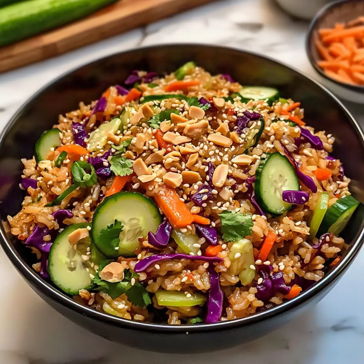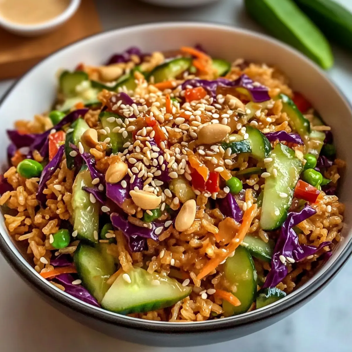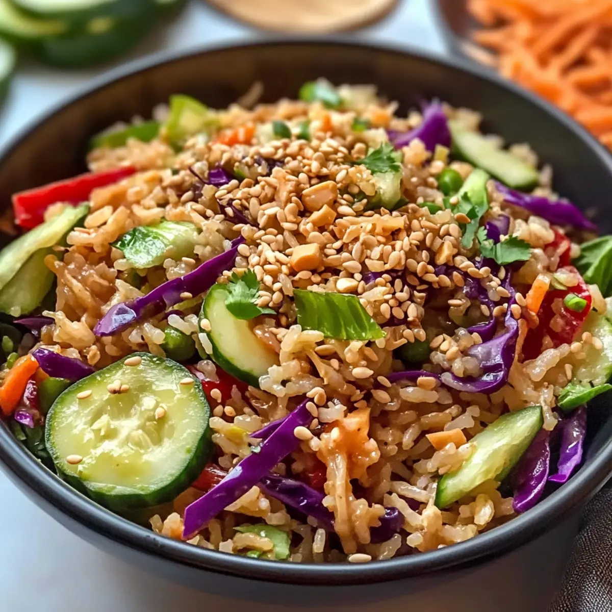 Dieser knusprige Reissalat mit Erdnuss-Sesam-Dressing wird nicht nur deine Geschmacksknospen erfreuen, sondern ist auch eine hervorragende Möglichkeit, frische Zutaten zu genießen!
