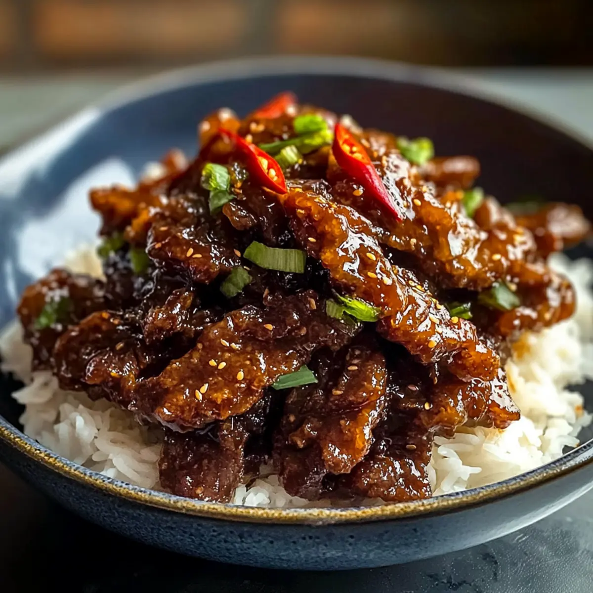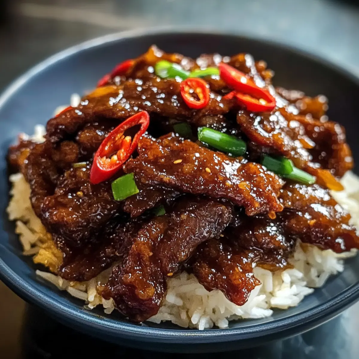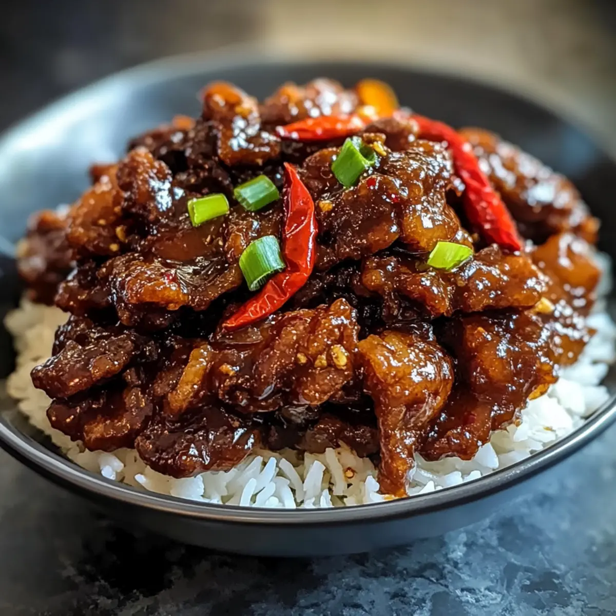Nehmt das knusprige Chili-Rindfleisch vom Herd und garniert es mit den geschnittenen Chilischoten und frischen Frühlingszwiebeln. Serviert das Gericht sofort zusammen mit gedämpftem Reis oder Nudeln für ein unvergessliches Geschmackserlebnis, das jeder genießen wird.