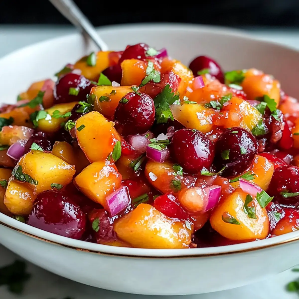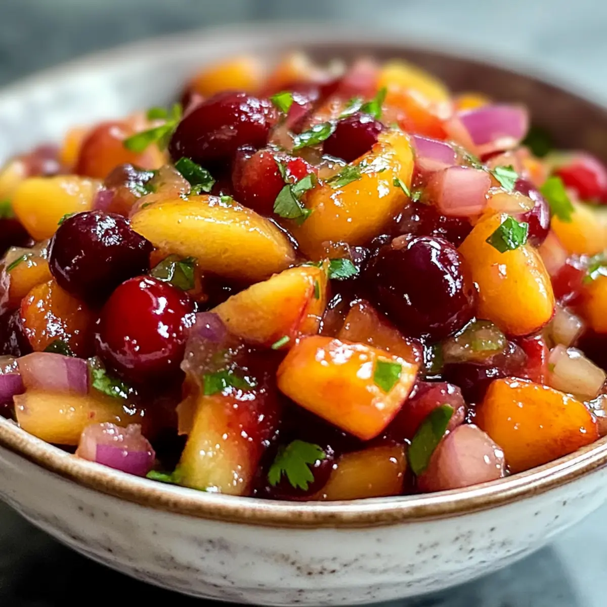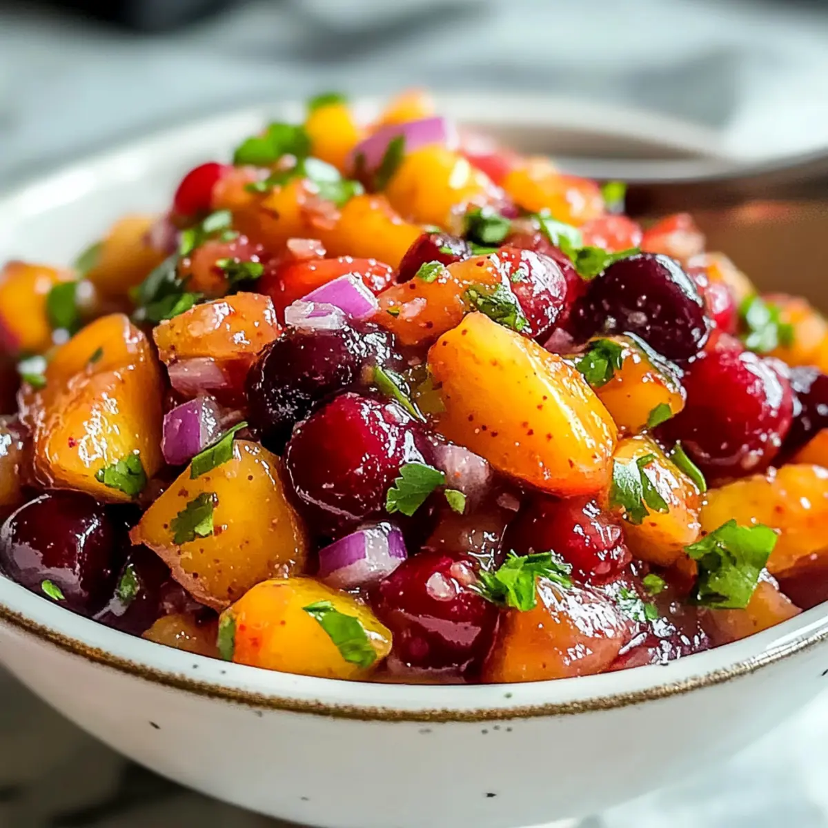 Als ich letztens bei einem Freund eine Grillparty besuchte, fragte jemand nach Beilagen, die das Essen aufpeppen könnten. “Was wäre mit einer Salsa?” schlug ich vor. Und genau das ist der Moment, in dem ich an meine köstliche Pfirsich-Kirsch-Salsa dachte, die ich seit Jahren liebe. Mit ihrer perfekten Kombination aus fruchtiger Süße und einem Hauch von Schärfe wird diese sommerliche Salsa zum absoluten Liebling jeder Zusammenkunft. Sie ist schnell zubereitet und bietet eine erfrischende Abwechslung zu den üblichen Dips. Und das Beste? Sie ist glutenfrei und perfekt für heiße Tage! Bist du bereit, deine Grillabende auf das nächste Level zu heben? Lass uns gemeinsam in die Zubereitung eintauchen! Warum wirst du diese Salsa lieben? Frische Aromen: Die Kombination aus süßen Pfirsichen und säuerlichen Kirschen bringt den perfekten Sommergeschmack auf den Tisch. Einfach und schnell: In nur wenigen Minuten zubereitet, eignet sich diese Salsa ideal für spontane Grillpartys. Vielseitig: Ob als Dip für Tortilla-Chips, Topping für gegrilltes Hähnchen oder einfach als Beilage – die Einsatzmöglichkeiten sind endlos! Gesund und lecker: Die frischen Zutaten bieten nicht nur köstlichen Geschmack, sondern auch wichtige Vitamine und Nährstoffe. Glutenfrei: Diese Salsa ist eine perfekte Wahl für alle, die glutenfreie Optionen suchen. Entdecke auch unsere anderen leckeren Rezepte wie Würzige Chinakohl Rinderhack und Knoblauch Champignon Blumenkohl, um deine Sommermenüs zu erweitern! Köstliche Pfirsich-Kirsch-Salsa Zutaten • Hinweis: Bereite dich darauf vor, deine Sinne mit dieser köstlichen Pfirsich-Kirsch-Salsa zu verwöhnen – perfekt für warme Sommertage! Für die Salsa Pfirsiche – Die Hauptzutat für eine süße und saftige Basis; wähle feste, reife gelbe Pfirsiche. Hinweis: Um das Schälen zu erleichtern, blanchiere sie kurz. Kirschen – Sie fügen eine angenehme Säure hinzu; verwende frische Kirschen, die halbiert und entkernt sind. Jalapeño – Gibt einen Schärfekick; passe die Menge nach deinem Schärfewunsch an und entferne die Samen für weniger Hitze. Rote Zwiebel – Für einen scharfen und knackigen Geschmack; fein würfeln sorgt für gleichmäßige Verteilung. Koriander – Bringt Frische in die Mischung; kann nach Belieben durch Petersilie ersetzt werden. Knoblauch – Steigert die Geschmacksintensität; fein gehackt sorgt für ein einheitliches Geschmackserlebnis. Limettensaft und -schale – Fügt Säure und Helligkeit hinzu, um die Aromen zu harmonisieren; frisch gepresst wird für den besten Geschmack empfohlen. Salz – Verstärkt die Aromen; Meersalz ist bevorzugt für einen helleren Geschmack. Entdecke die erfrischende Köstlichkeit, die diese Pfirsich-Kirsch-Salsa mit sich bringt! Schritt-für-Schritt-Anleitung für Köstliche Pfirsich-Kirsch-Salsa Step 1: Zutaten vorbereiten Zuerst bereitest du alle Zutaten vor. Schäle die Pfirsiche, indem du sie kurz blanchierst, und schneide sie in kleine Würfel. Halbiere und entkerne die Kirschen, würfle die rote Zwiebel fein und hacke den Koriander. Mische auch den Knoblauch und schneide den Jalapeño nach Wunsch in kleine Stücke – entferne die Samen, wenn du es milder magst. Step 2: Zutaten kombinieren Gib in eine große Rührschüssel die gewürfelten Pfirsiche, Kirschen, den gehackten Knoblauch, Koriander, Jalapeño und die rote Zwiebel. Vermische alles sanft, damit die Früchte ihre Form behalten. Diese Kombination bildet die Basis für deine köstliche Pfirsich-Kirsch-Salsa und bringt die frischen, sommerlichen Aromen zusammen. Step 3: Würzen Jetzt ist es Zeit, die Salsa zu würzen! Presse frischen Limettensaft über die Mischung, füge die Limettenschale hinzu und streue eine Prise Salz darüber. Diese Zutaten verleihen der Salsa eine angenehme Säure und verstärken die Aromen. Schmecke nach und passe die Gewürze nach deinem persönlichen Geschmack an, damit die Pfirsich-Kirsch-Salsa perfekt harmoniert. Step 4: Zart vermengen Mit einem großen Löffel solltest du die Zutaten vorsichtig vermengen. Achte darauf, dass die Fruchtstücke ganz bleiben und nicht zerdrückt werden. Setze die Salsa danach beiseite, damit sich die Aromen gut entfalten können. Diese Sanftheit hilft, die Frische der Zutaten zu bewahren und gibt der salsa den besten Geschmack. Step 5: Kühlen Decke die Schüssel mit Frischhaltefolie ab und stelle die Salsa mindestens 15 Minuten in den Kühlschrank. Dies erlaubt den Aromen, sich vollständig miteinander zu verbinden und die Salsa noch köstlicher zu machen. Du kannst die Kühlzeit auch verlängern, um die Aromen weiter zu intensivieren, bevor du sie servierst. Bereite deine Köstliche Pfirsich-Kirsch-Salsa im Voraus vor! Egal, ob du wenig Zeit hast oder einfach nur für eine Grillparty präparieren möchtest, diese Köstliche Pfirsich-Kirsch-Salsa lässt sich hervorragend im Voraus zubereiten. Du kannst die Pfirsiche, Kirschen, Zwiebeln, Jalapeños und Knoblauch bis zu 3 Tage im Voraus schneiden und in einem luftdichten Behälter im Kühlschrank aufbewahren. Um frischere Aromen zu garantieren, kombiniert die Salsa ihre Zutaten erst 24 Stunden vor dem Servieren; so bleibt die Frucht knackig und der Geschmack frisch. Denke daran, die Limette erst kurz bevor du servierst hinzuzufügen, um eine Oxidation zu verhindern und die Qualität zu erhalten. So hast du eine köstliche und frische Beilage, die mit minimalem Aufwand immer wieder Genuss bringt! Lagerungstipps für Köstliche Pfirsich-Kirsch-Salsa Bewahrung im Kühlschrank: Bewahre die Salsa in einem luftdichten Behälter auf und genieße sie innerhalb von bis zu 3 Tagen. Frische Zutaten wie Pfirsiche und Kirschen halten die Aromen lebendig. Vorbereiten im Voraus: Du kannst die köstliche Pfirsich-Kirsch-Salsa mehrere Stunden im Voraus zubereiten. Dadurch verbessern sich die Aromen und sie wird noch schmackhafter. Frostschutz: Wenn du die Salsa länger aufbewahren möchtest, kannst du sie in einem gefrierfesten Behälter